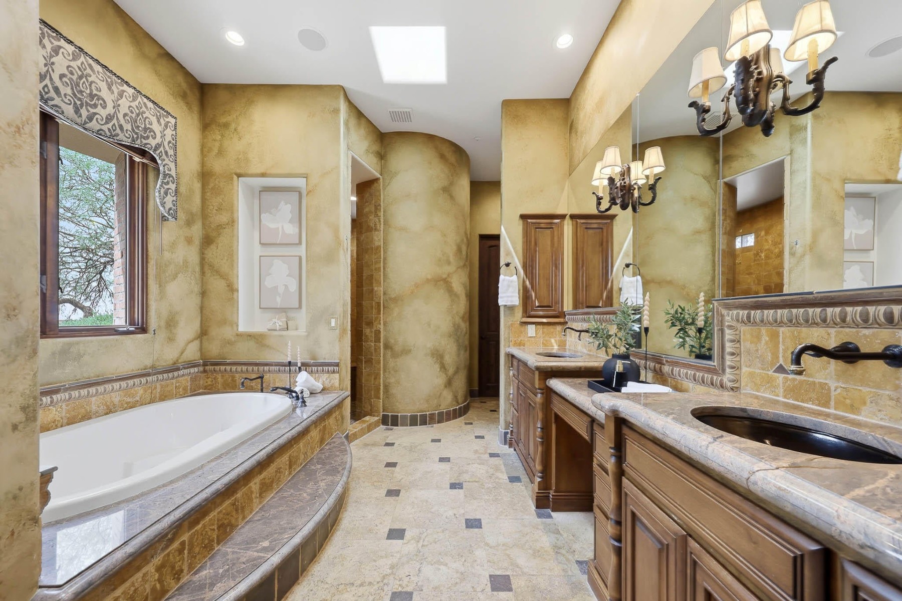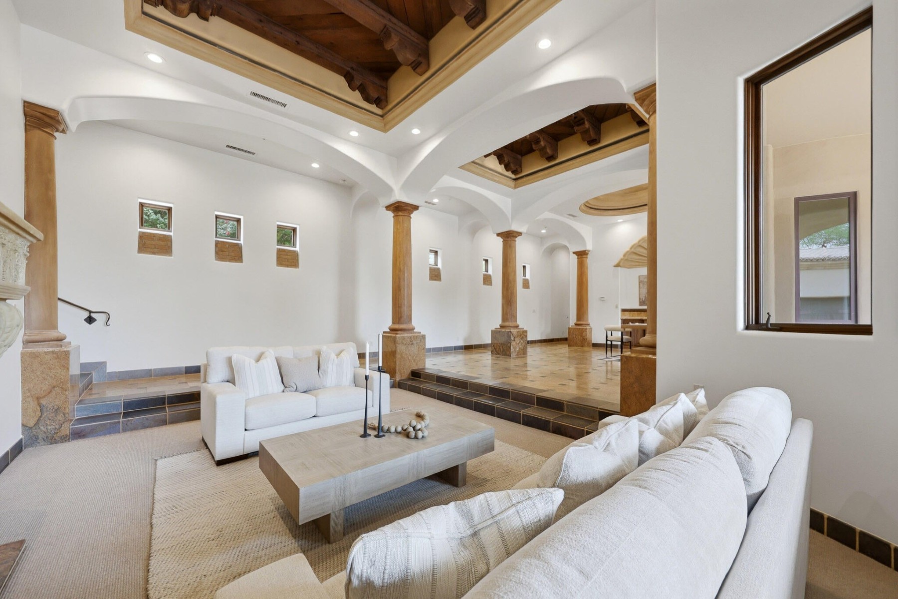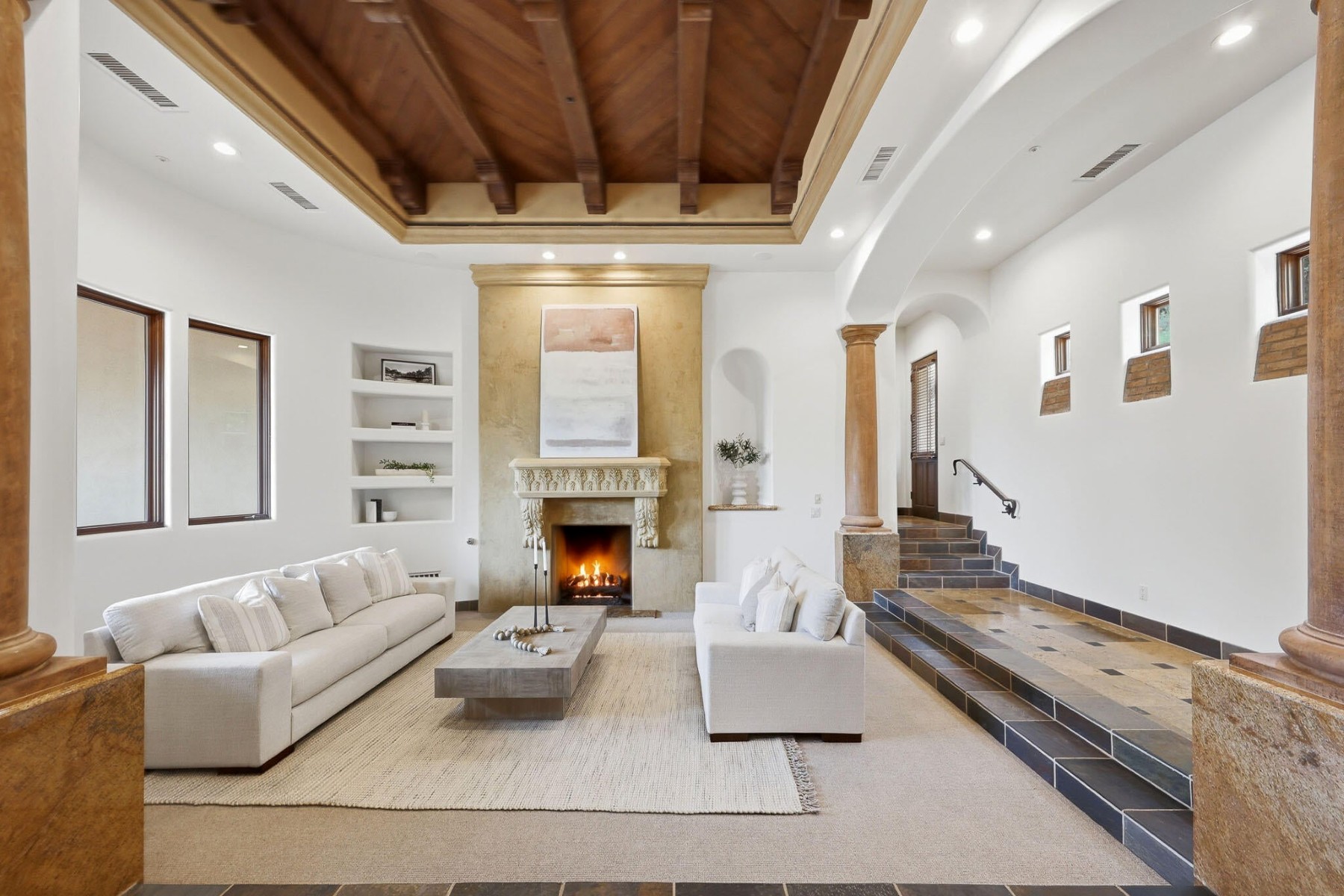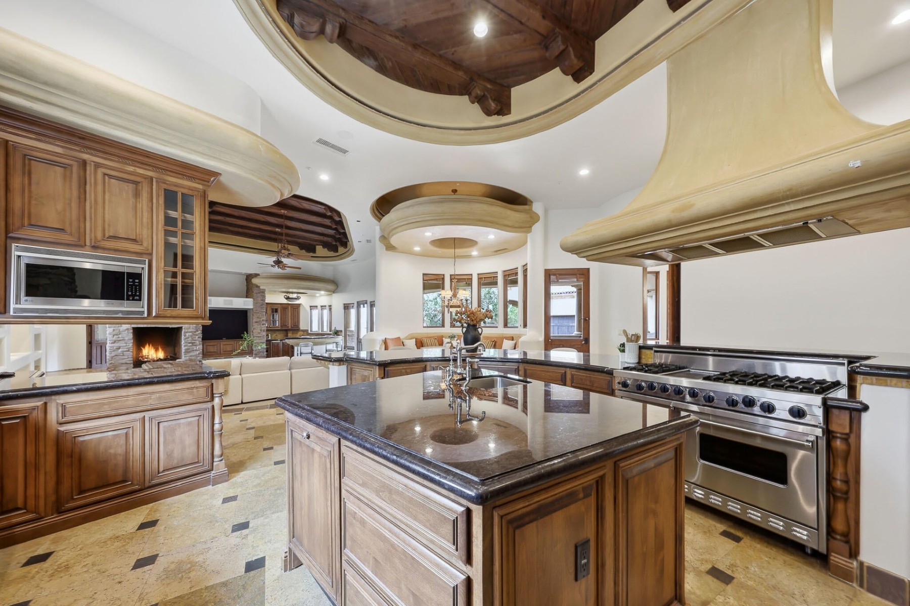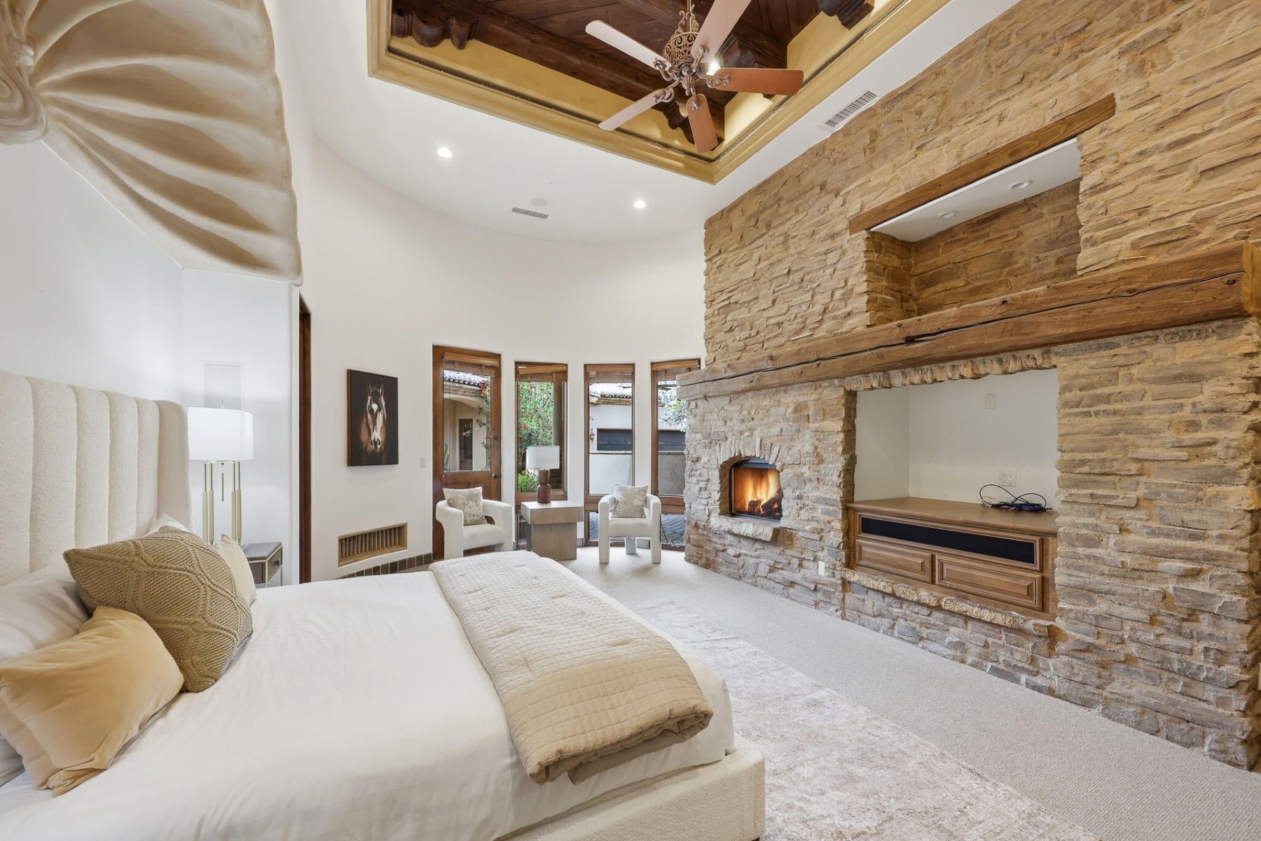 Rare opportunity to own within the guard-gated community of Ancala Country Club. Privately tucked on a quiet cul-de-sac, this exceptional Randy Cozins custom estate captures breathtaking city light and mountain views, with a private gated entry and expansive circular stone driveway setting the tone for the privacy and scale found throughout. Inside, soaring ceilings, hand-applied plaster finishes, and thoughtful custom details create a warm, refined atmosphere. The split floor plan is both functional and well-designed, featuring a dedicated guest wing with three ensuite bedrooms and a private sitting area for added separation. The chefs kitchen serves as the heart of the home, complete with premium appliances, generous workspace, and a large island, all opening seamlessly to the great room. The primary suite offers a true retreat with dual closets, private laundry, a fireplace, and direct access to the outdoor living spaces. Outdoors, the front-facing pool and spa, built-in BBQ, and multiple seating areas are perfectly positioned to take in both city light and mountain views. An oversized garage with double-height ceilings provides flexibility for additional vehicle storage with lifts. Come experience the privacy, thoughtful design, and timeless quality that define this exceptional Ancala residence.