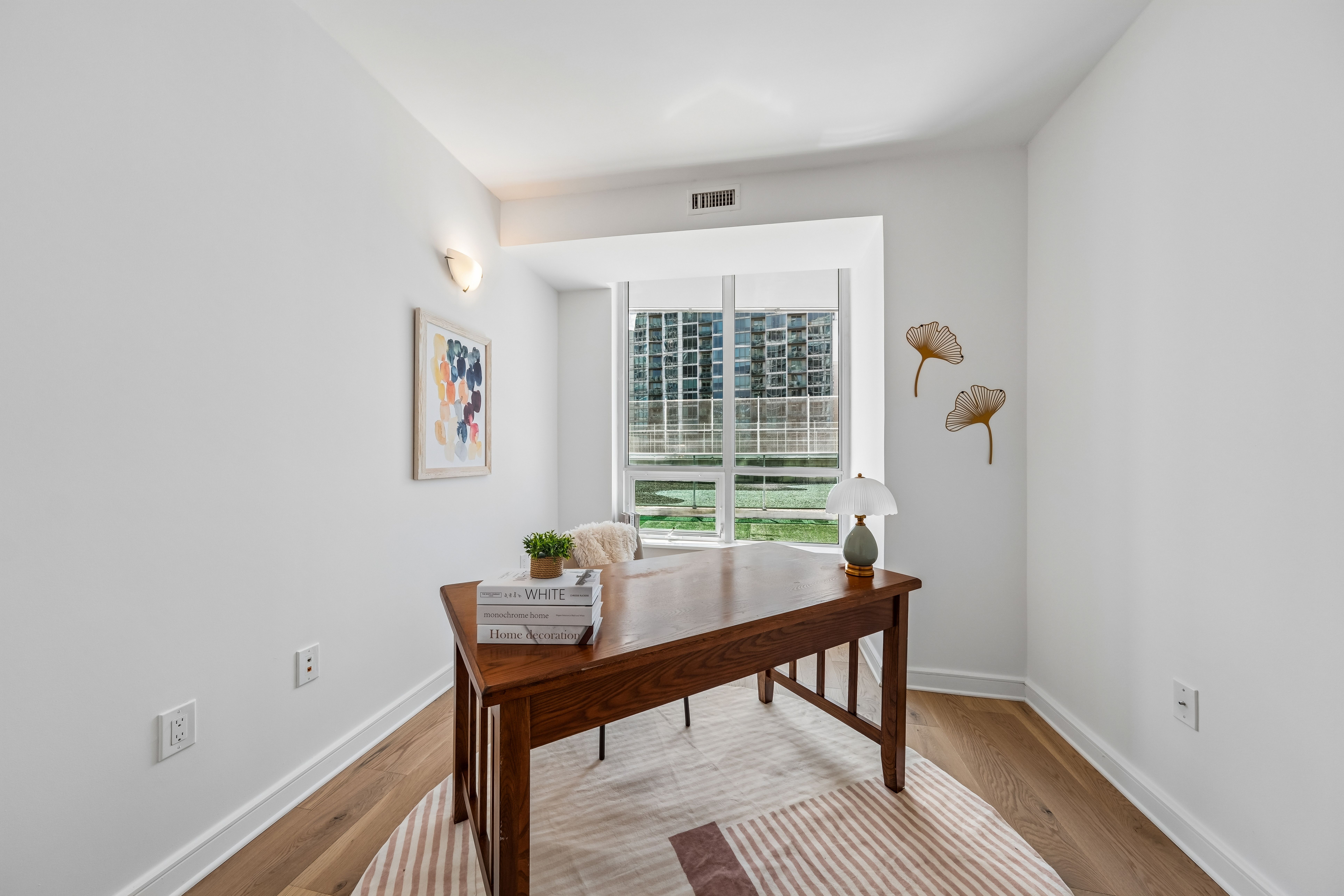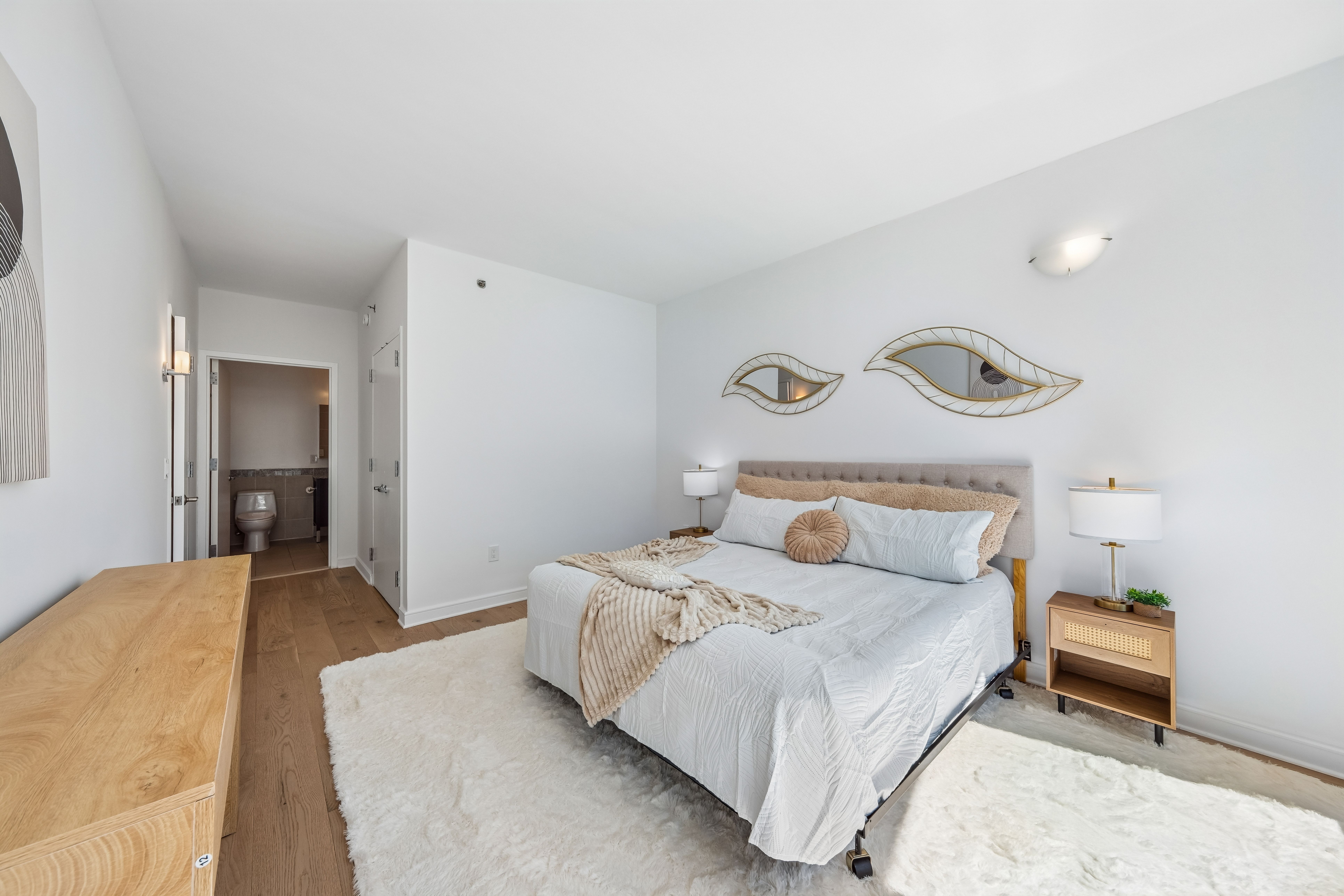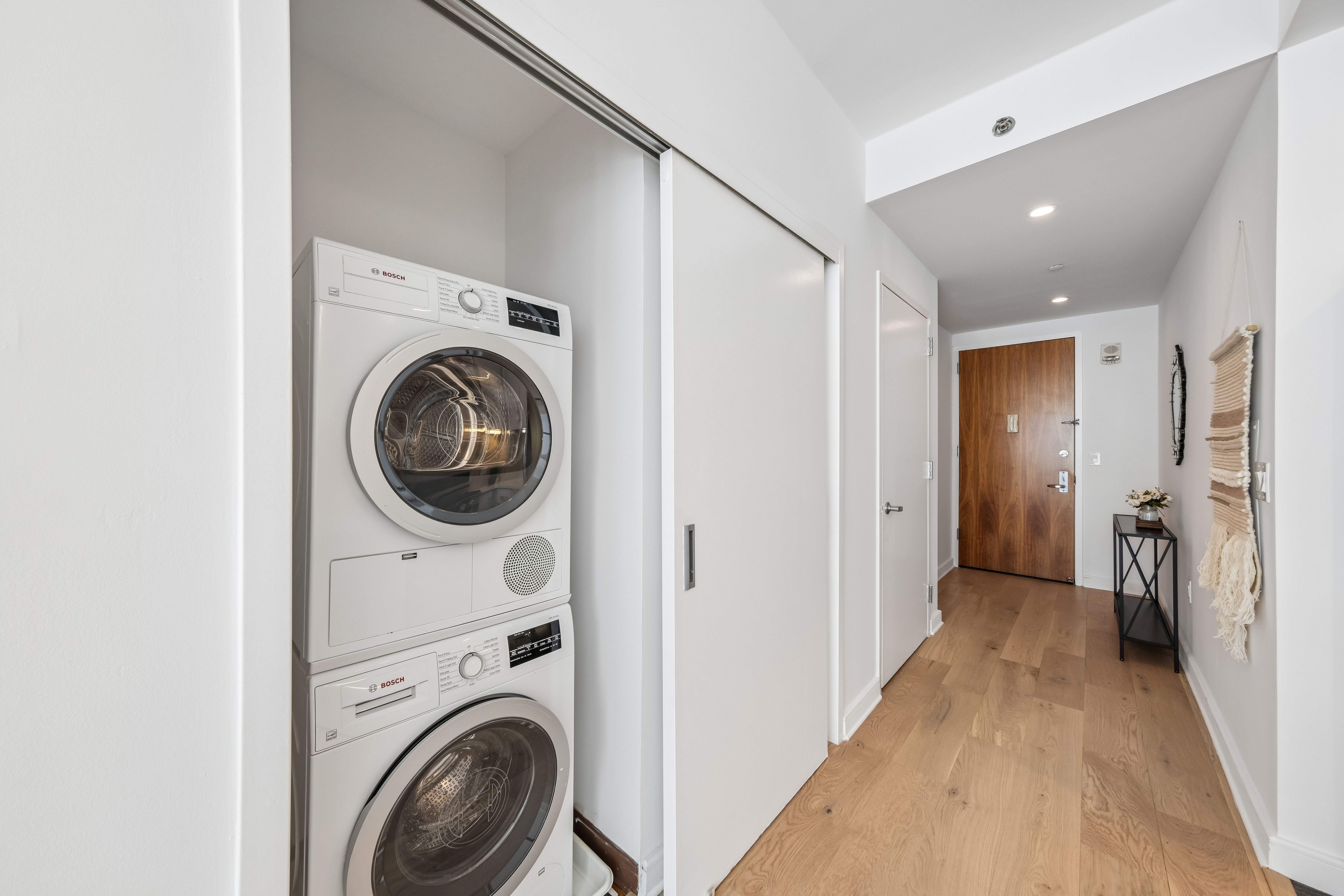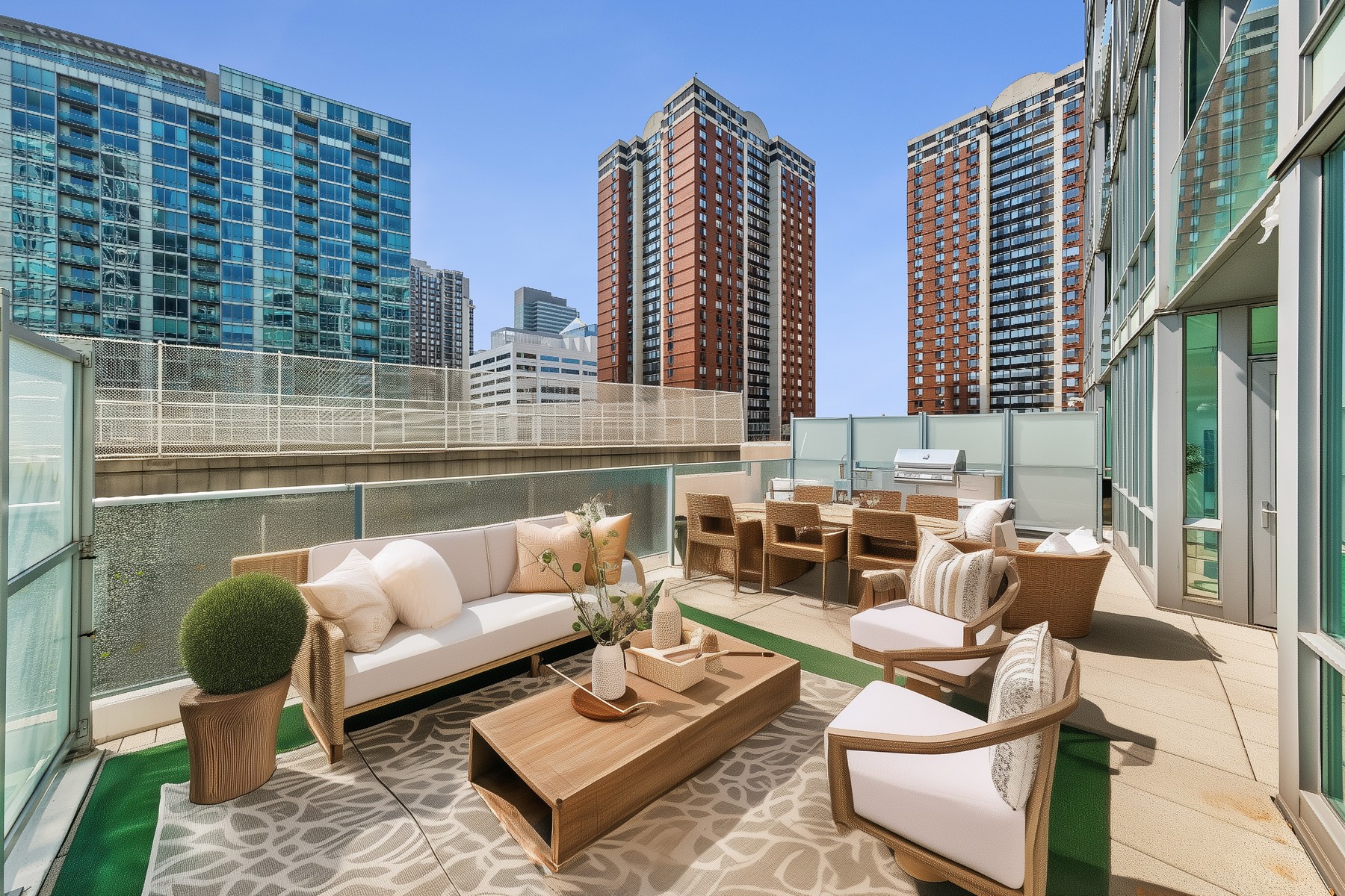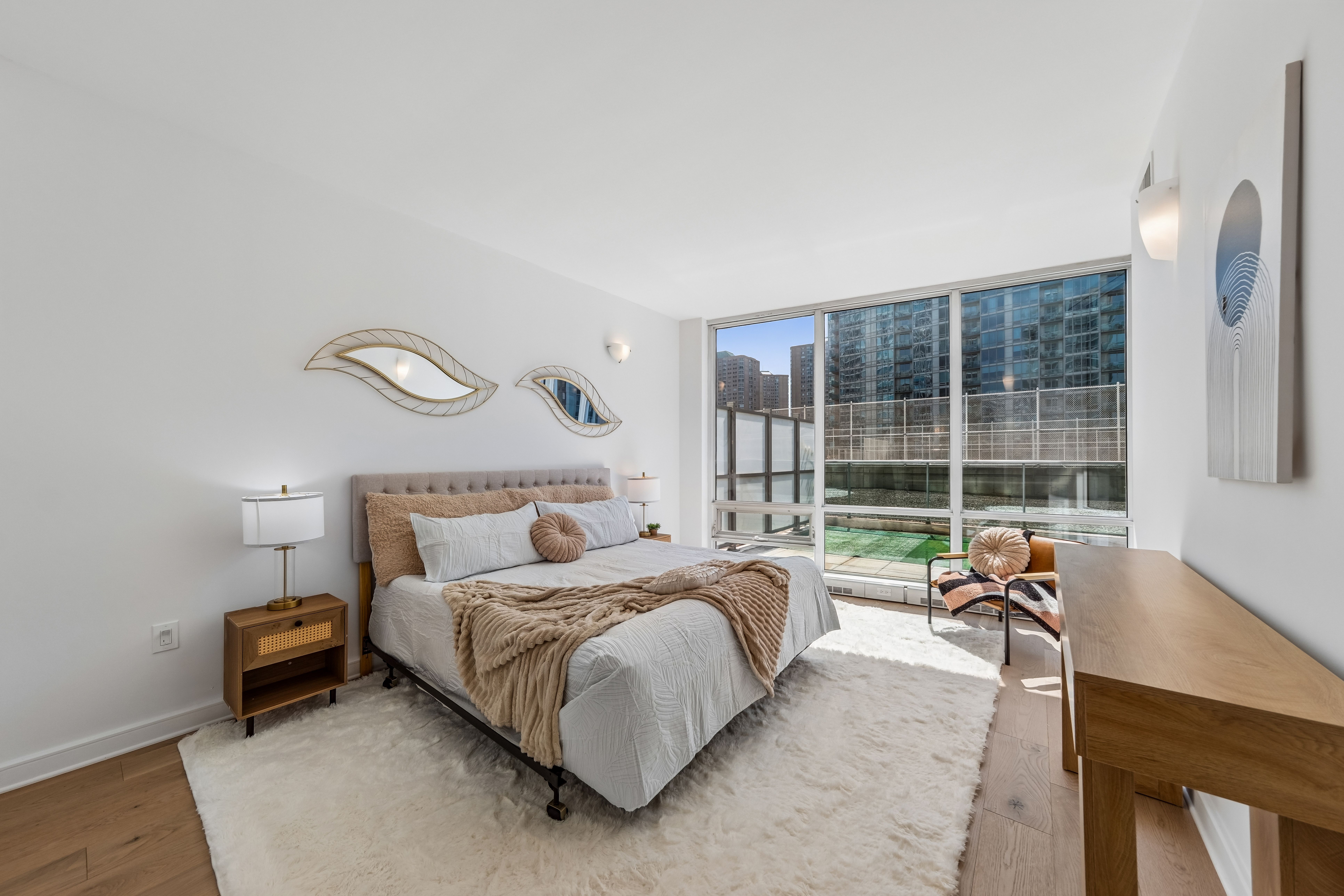 Experience modern sophistication in this sun-drenched 1,270 sq. ft. residence at the Shore Club, one of Newport’s most coveted luxury condominiums. The centerpiece of this home is a massive, nearly 600 sq. ft. private terrace—a rare urban oasis perfectly suited for grand-scale entertainment, a safe outdoor play area for kids, and relaxed family gatherings. In this unique space, barbecuing is permitted (electric/non-open flame) during designated hours, making it the ultimate setting for summer hosting. The interior has been meticulously renovated with brand-new premium white oak wide-plank flooring and freshly smoothed ceilings throughout. The fully upgraded gourmet kitchen is a showstopper, featuring a sleek U-shaped layout with white lacquer cabinetry, pristine white quartz countertops, a KitchenAid gas range (2021), and a newly upgraded Samsung dishwasher (2025). This home features a seamless open-concept design with South and East exposures, framed by floor-to-ceiling windows that flood the space with natural light and showcase a striking NYC skyline backdrop. The primary suite serves as a serene retreat, offering breathtaking Lower Manhattan and Freedom Tower views, a spacious walk-in closet plus an additional closet, and an en-suite bathroom with a double vanity, soaking tub, and walk-in shower. The guest bedroom is equally inviting, with generous proportions and a layout versatile enough to accommodate a queen-size bed. Additional conveniences include an in-unit Bosch washer/dryer (2021). Situated in a neighborhood designed for families and professionals alike, you are steps away from Newport Green Park, summer movie nights, and playgrounds. For families, Bright Horizons daycare is located just across the street, while Stevens Cooperative School is within easy walking distance. Commuting is a breeze with quick access to the Hoboken and Newport PATH stations, Ferry, and Light Rail. The Shore Club’s attentive staff ensures a worry-free living experience with 24-hour concierge, fitness center, sauna, and a rooftop deck. With on-site garage parking available and some of the lowest HOA fees on the waterfront, this residence offers outstanding value and the very best of Hudson River living. Schedule your private viewing today!