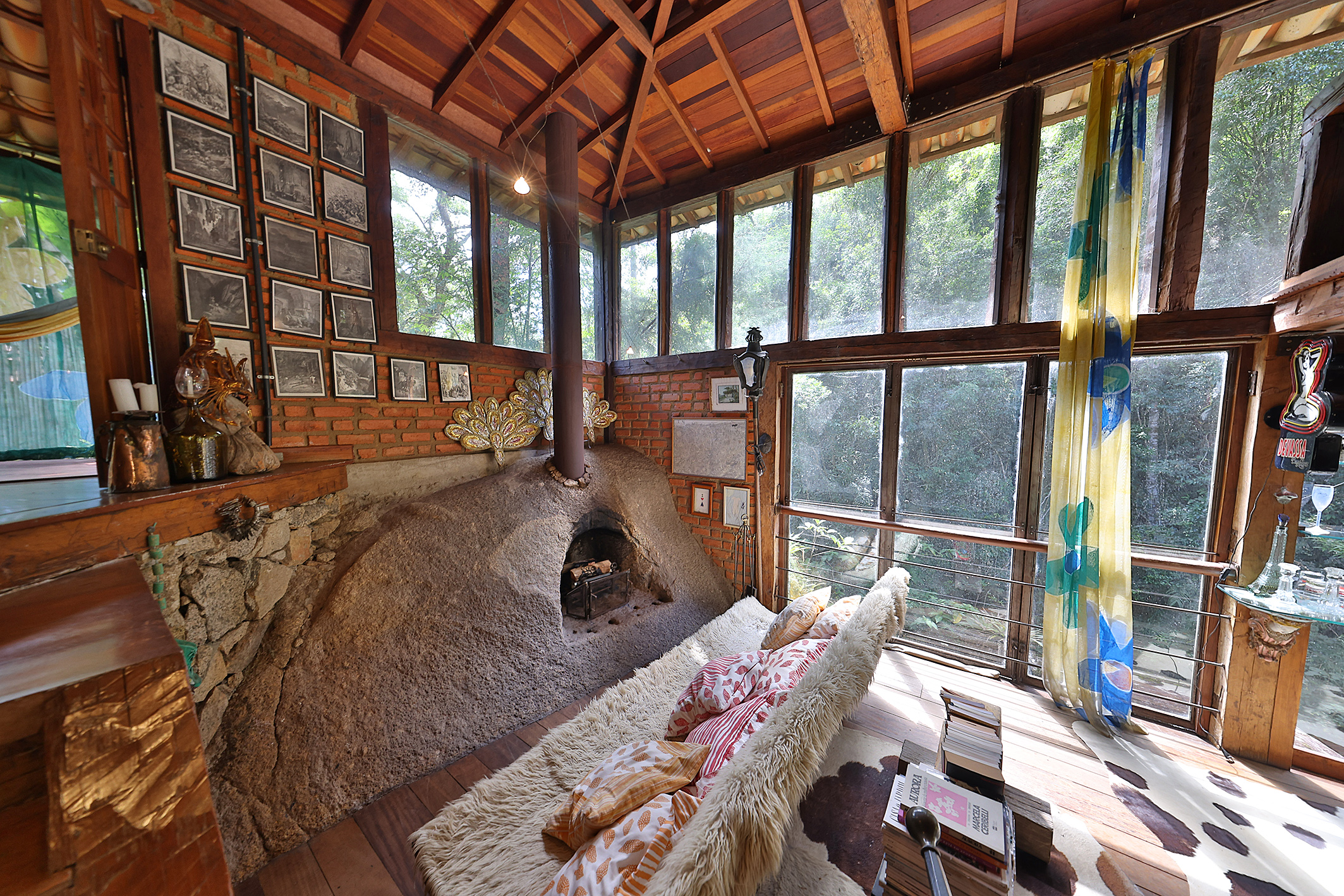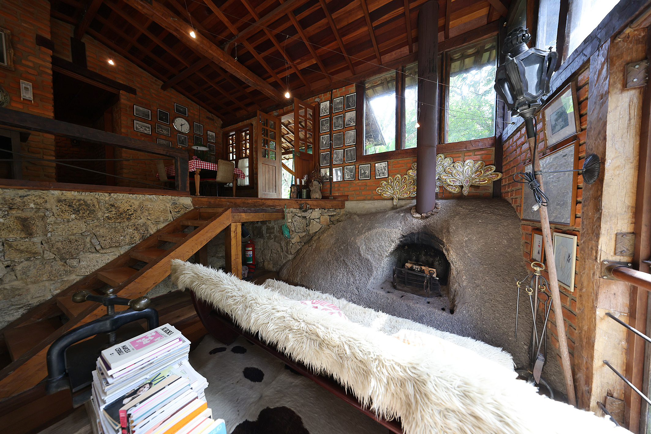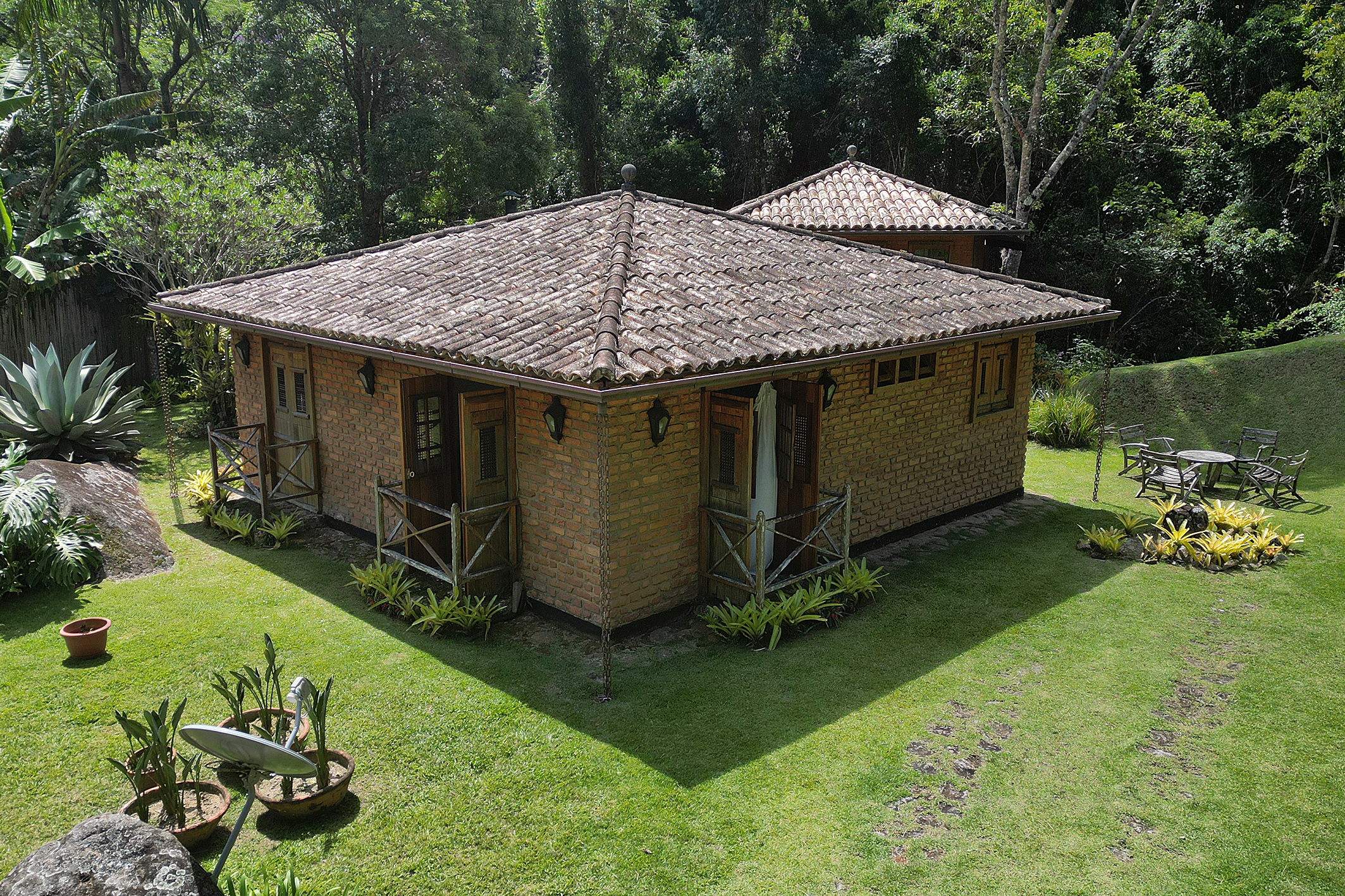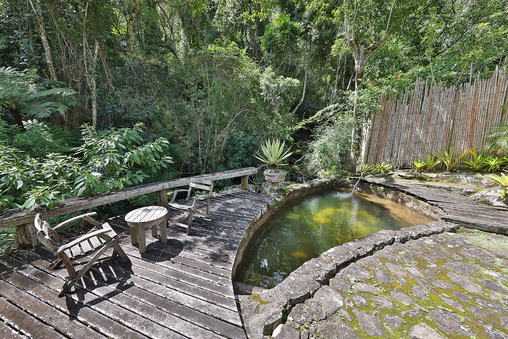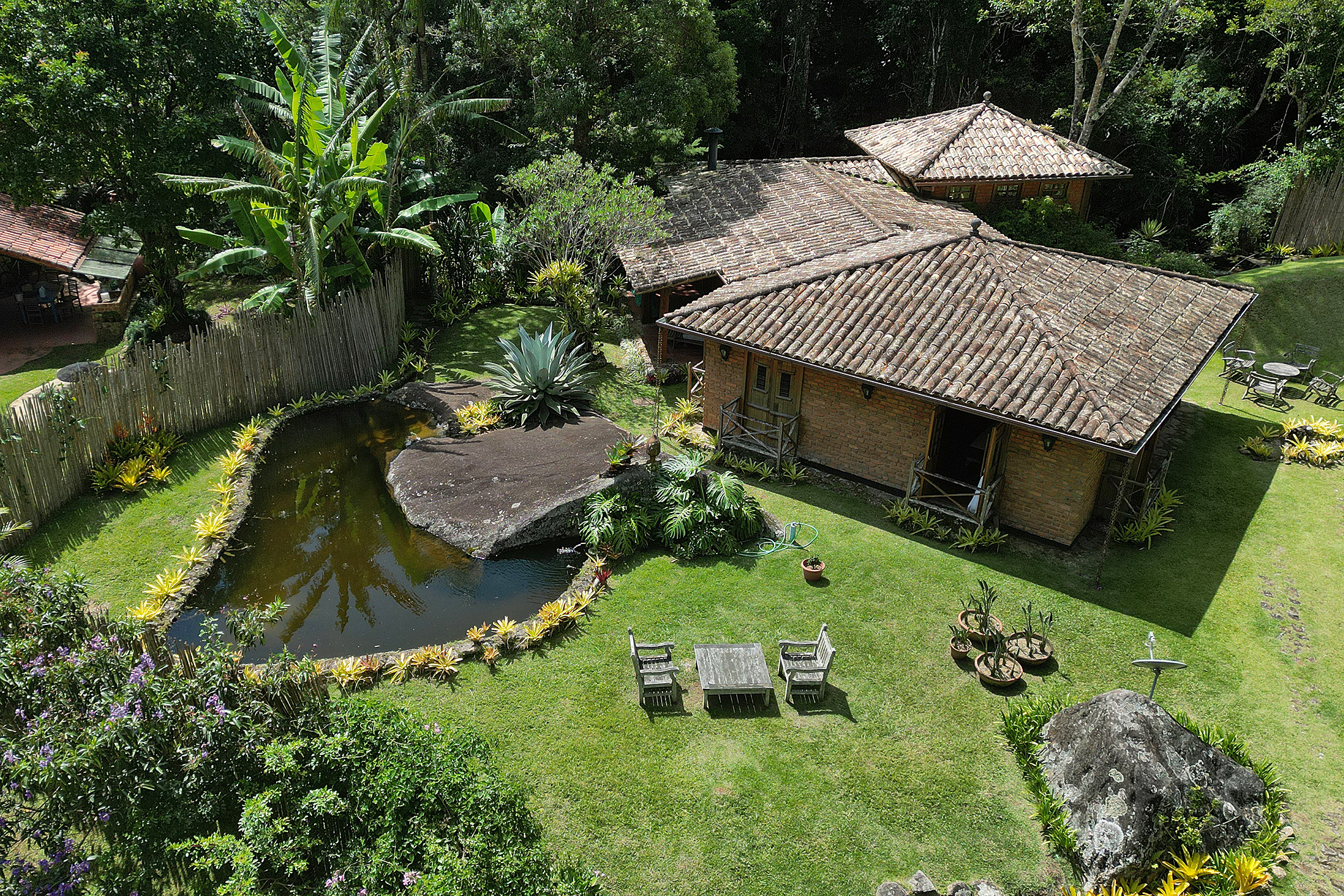 Set on a plot bordering a river, this residence is immersed in a nature-surrounded setting, defined by its connection to the landscape. Built entirely in wood, the architecture reinforces this relationship, while large windows frame constant views and allow natural light to flow throughout the interiors. The social area includes a living room connected to the entrance veranda, as well as a second lounge with a stone-carved fireplace, creating a warm and inviting atmosphere. A mezzanine level features an additional terrace overlooking the river, extending the experience of the surroundings. The private quarters comprise two bedrooms, including one suite, along with an additional bathroom. The property also includes a kitchen and a landscaped garden with an outdoor shower and a pond with fish, complementing the outdoor experience. The residence offers two parking spaces, completing a setting defined by privacy, natural elements, and a slower pace of living.