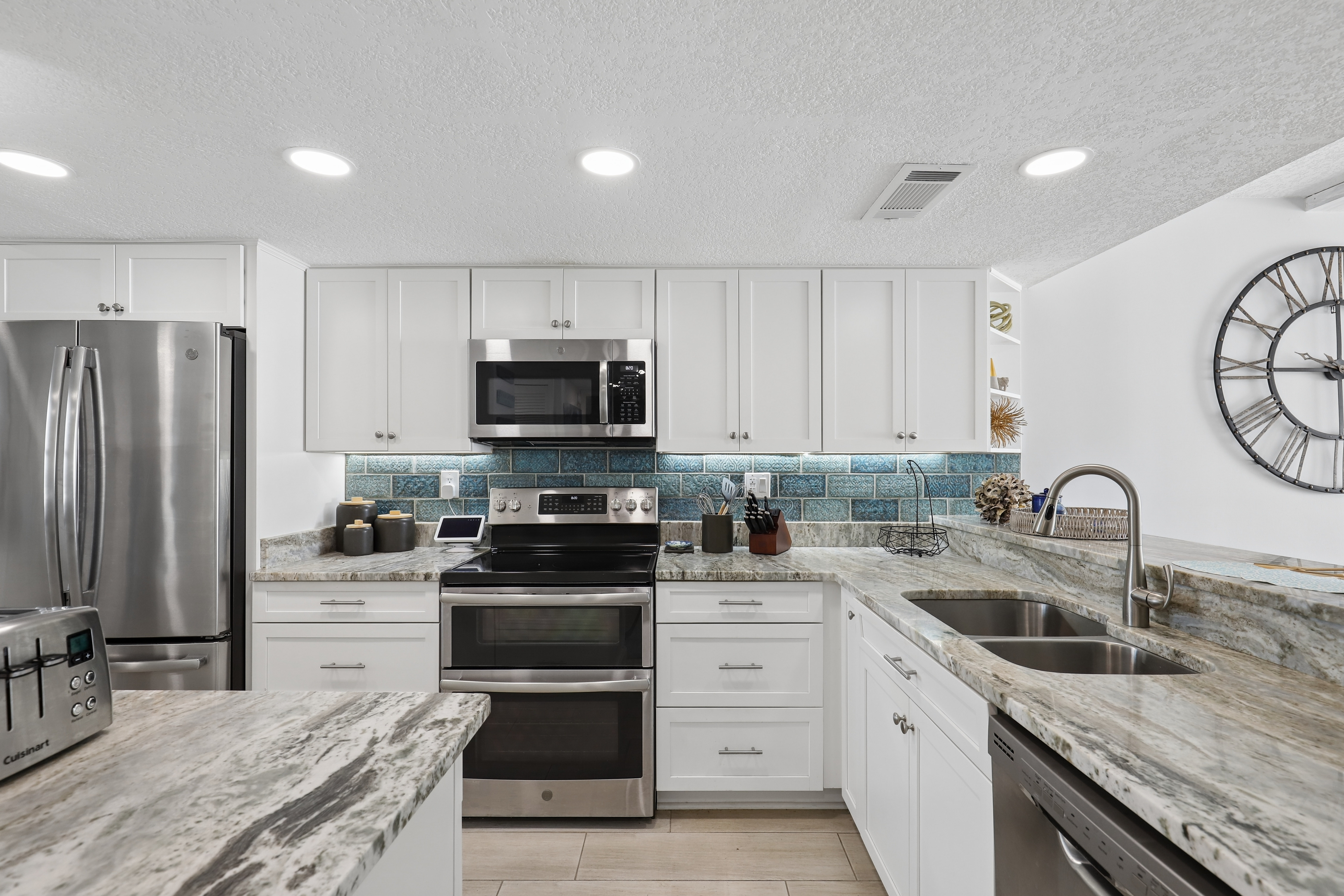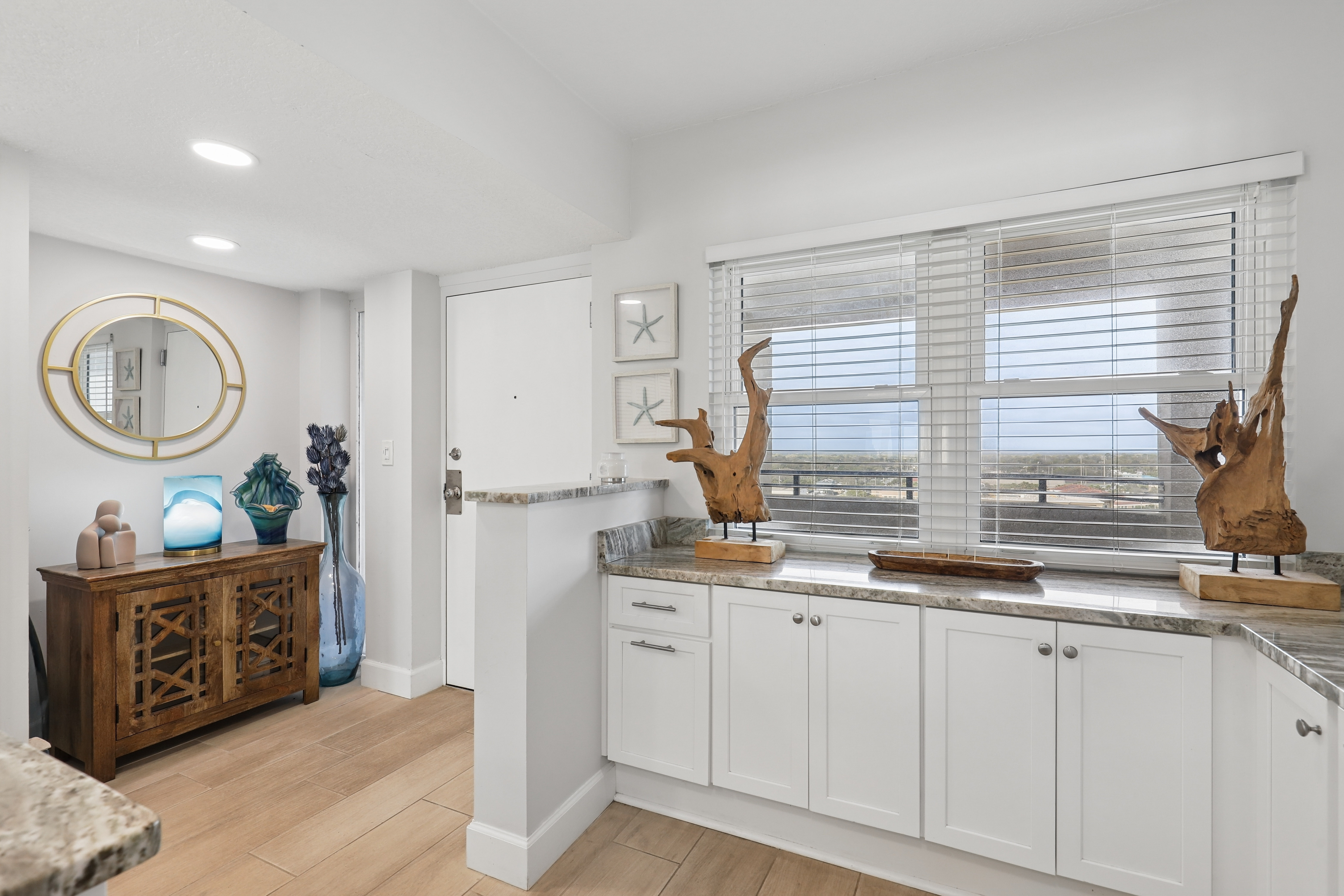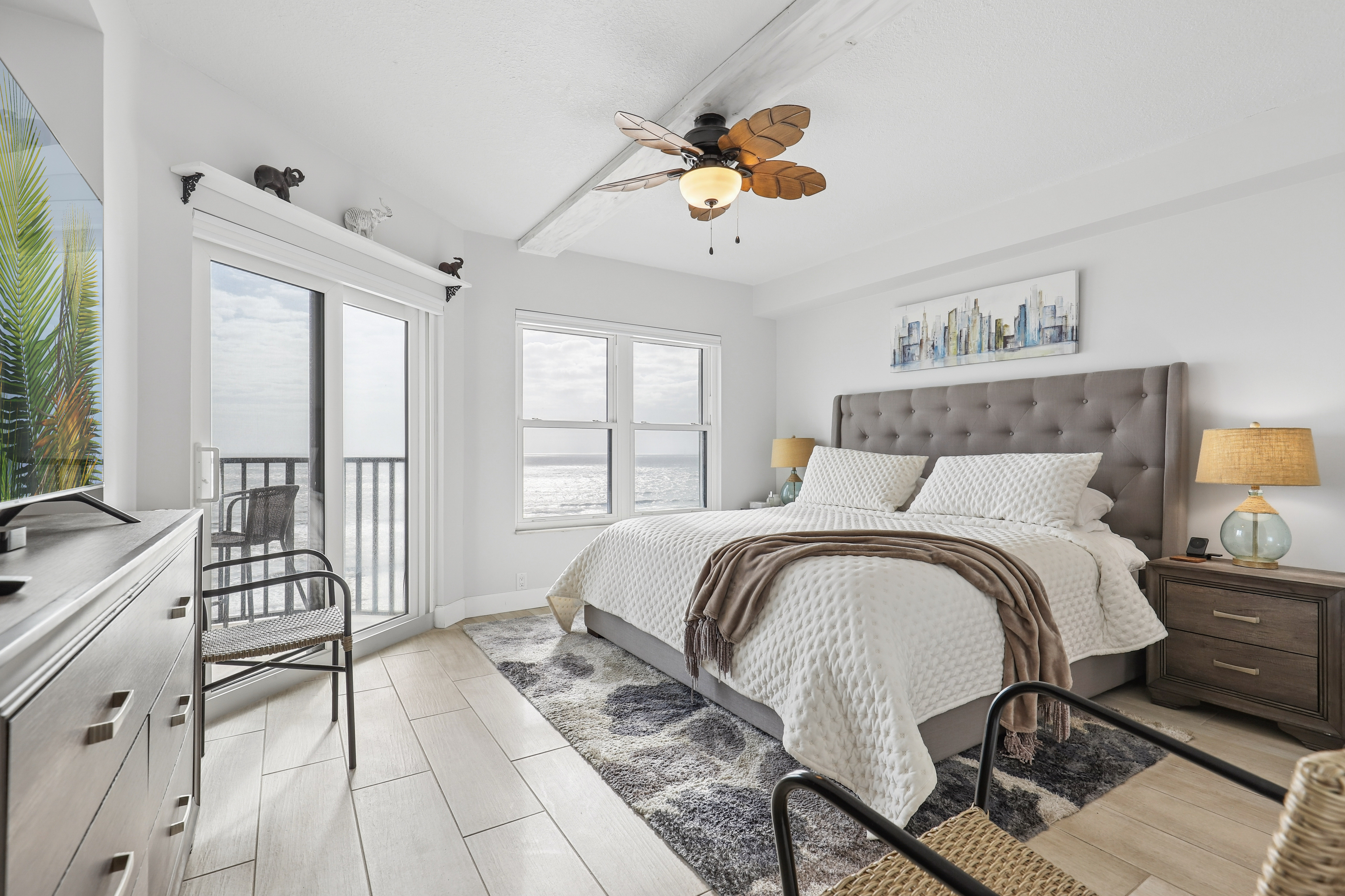 Wake up to panoramic Atlantic views from this beautifully updated 11th-floor condo in Pelican Point, where each day begins with a sunrise over the ocean and ends with a peaceful coastal sunset.Completely renovated down to the studs, this move-in-ready unit offers both peace of mind and a fresh, modern feel throughout. Recent updates include a brand-new A/C in 2025 and a beautiful new kitchen backsplash that adds the perfect coastal touch. The kitchen also features stainless steel appliances and granite countertops, while the bathrooms have been thoughtfully customized.Additional highlights include wood-look tile flooring throughout, ceiling fans in every room, and the convenience of an in-unit washer and dryer. The property also includes a private garage space and a downstairs storage unit. This is the kind of place you walk into and instantly feel at home. Just move in, relax, and enjoy. The perfect vantage point to take in the Blue Angels, Jacksonville Beach fireworks, and even the downtown skyline displays.