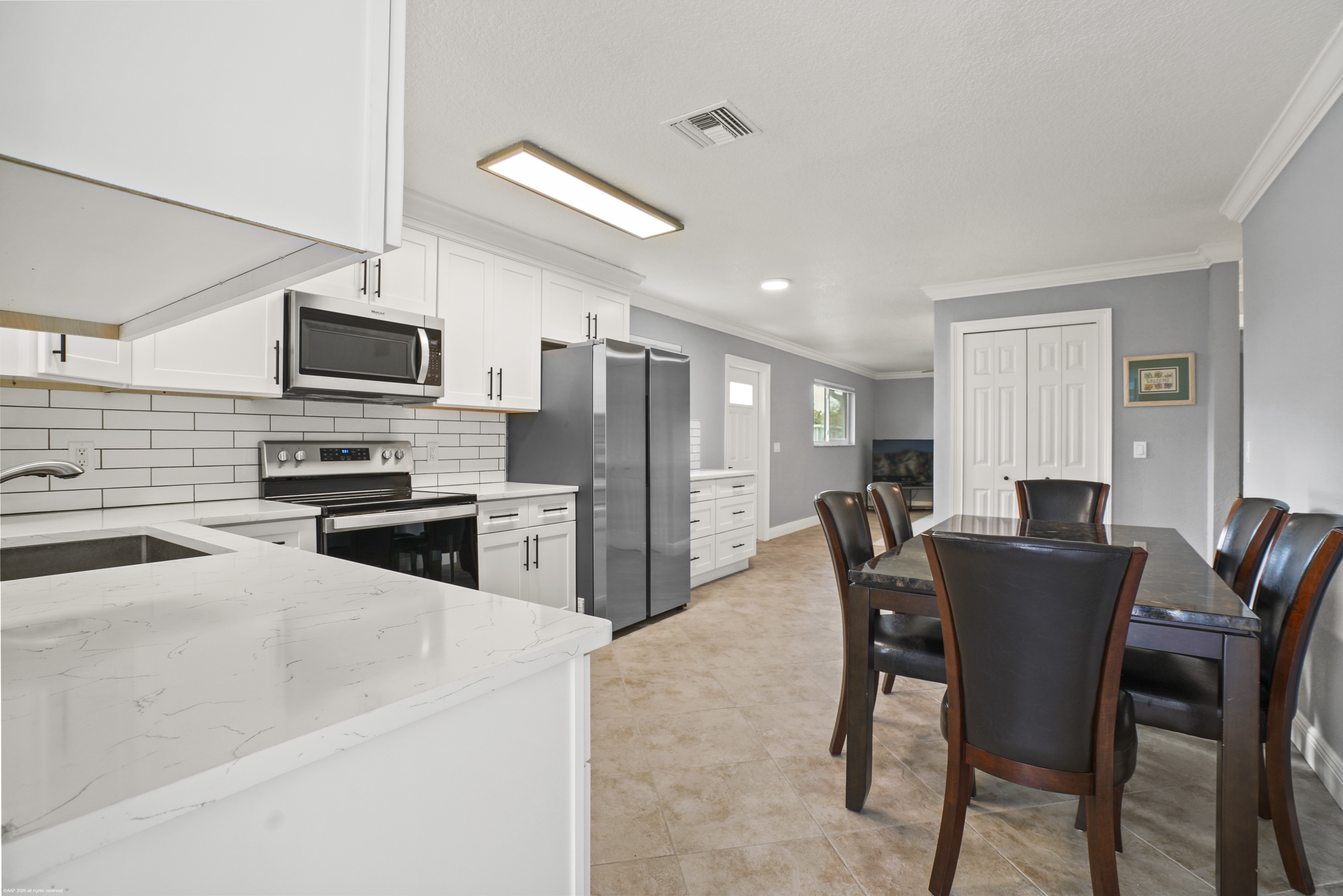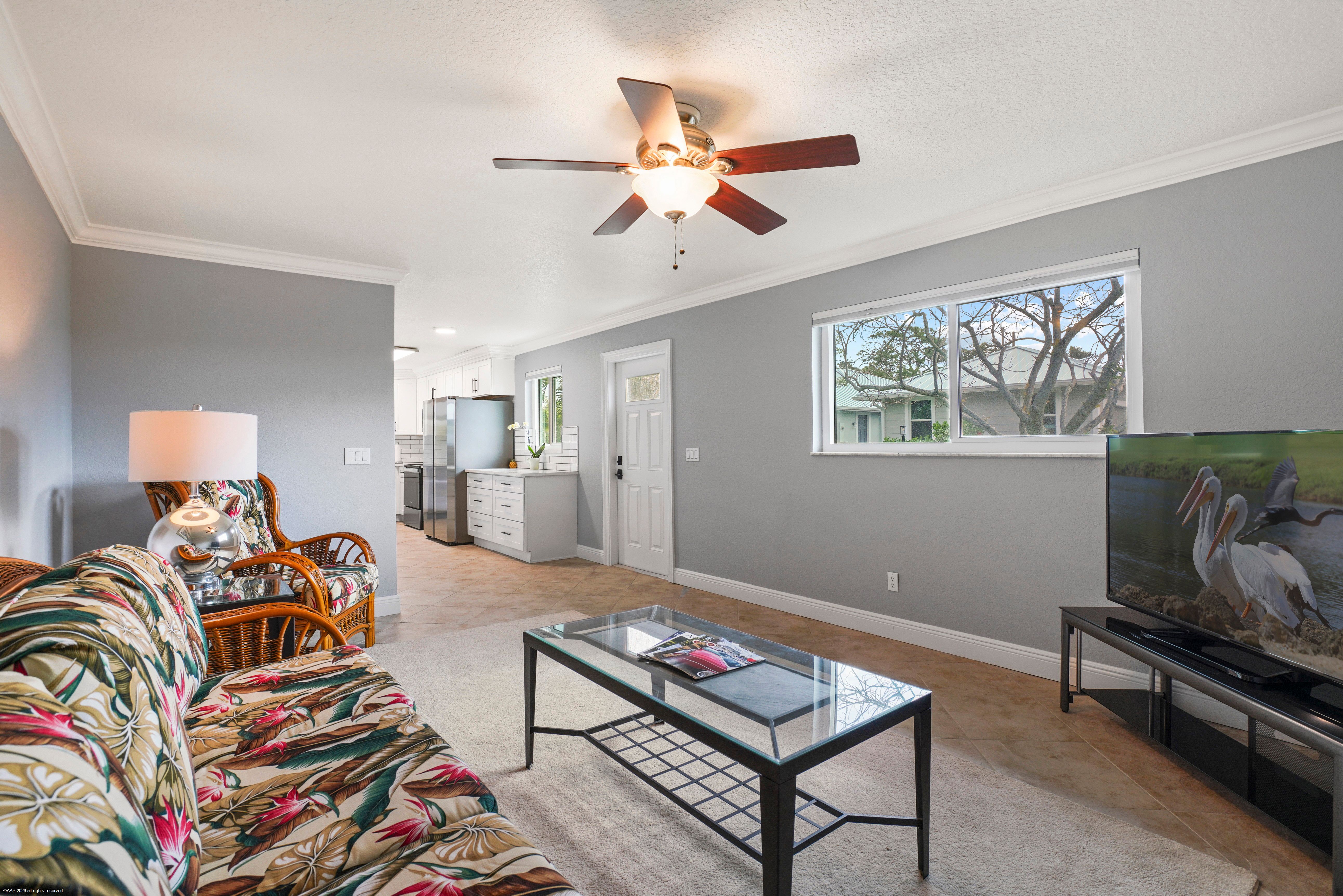 Beautifully updated, move-in ready home located in the Rio area of Jensen Beach. This 2-bedroom, 1-bathroom home has been thoughtfully upgraded throughout. Recent (2022) improvements include a complete kitchen renovation with new appliances, cabinets, and countertops; tankless hot water heater; updated electrical panel; new smoke detectors; and city water/sewer conversion. Hurricane impact windows and doors (2020-2022). Metal roof and A/C (2020). Features a spacious polyaspartic-coated carport, perfect for outdoor living, with built-in storage and laundry area. No detail has been overlooked. Situated on a recently repaved street in a prime location with strong nearby development. Move-in ready and offered partially furnished with all major updates already completed. A must-see in the desirable Jensen Beach Rio neighborhood.