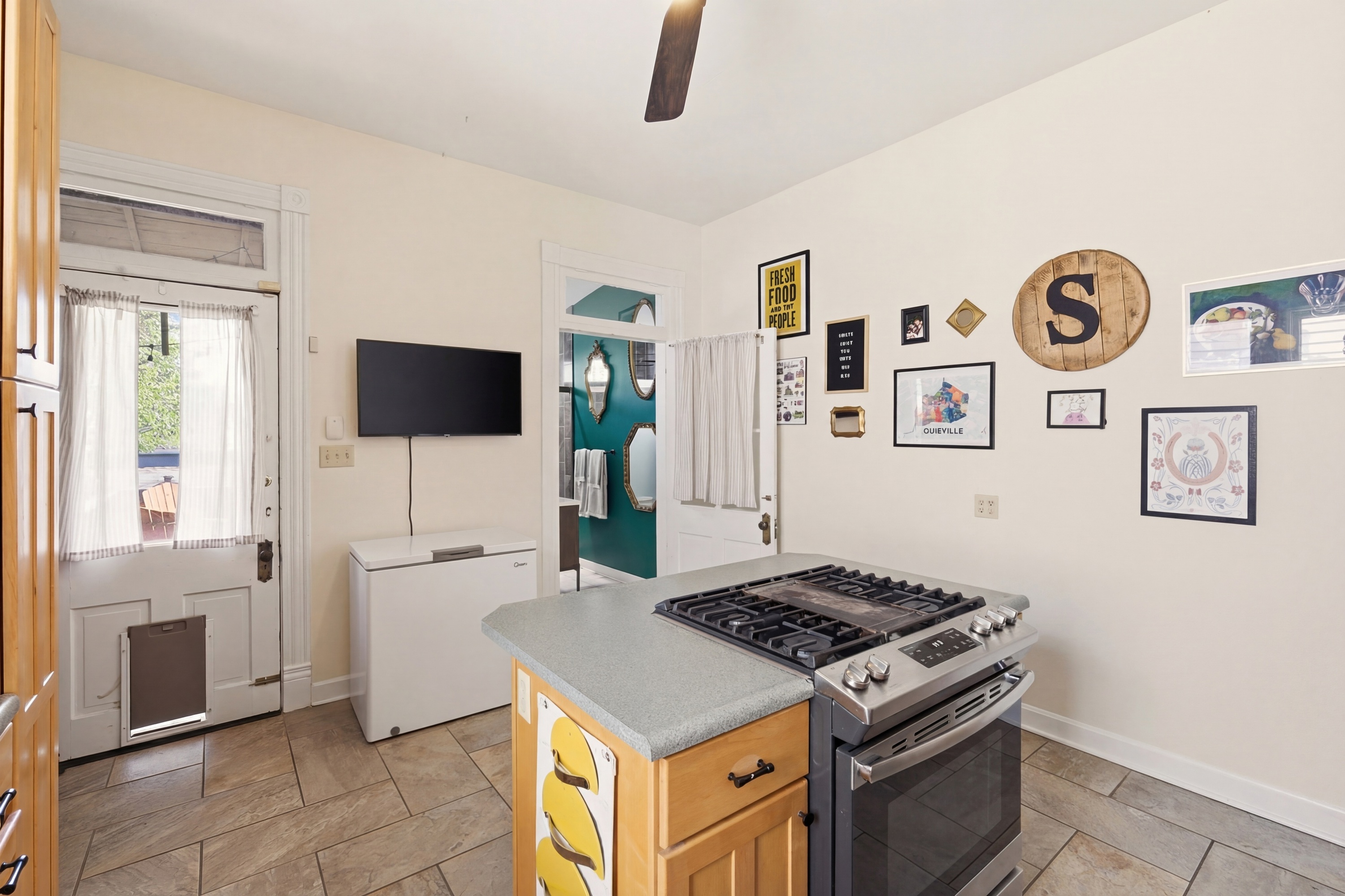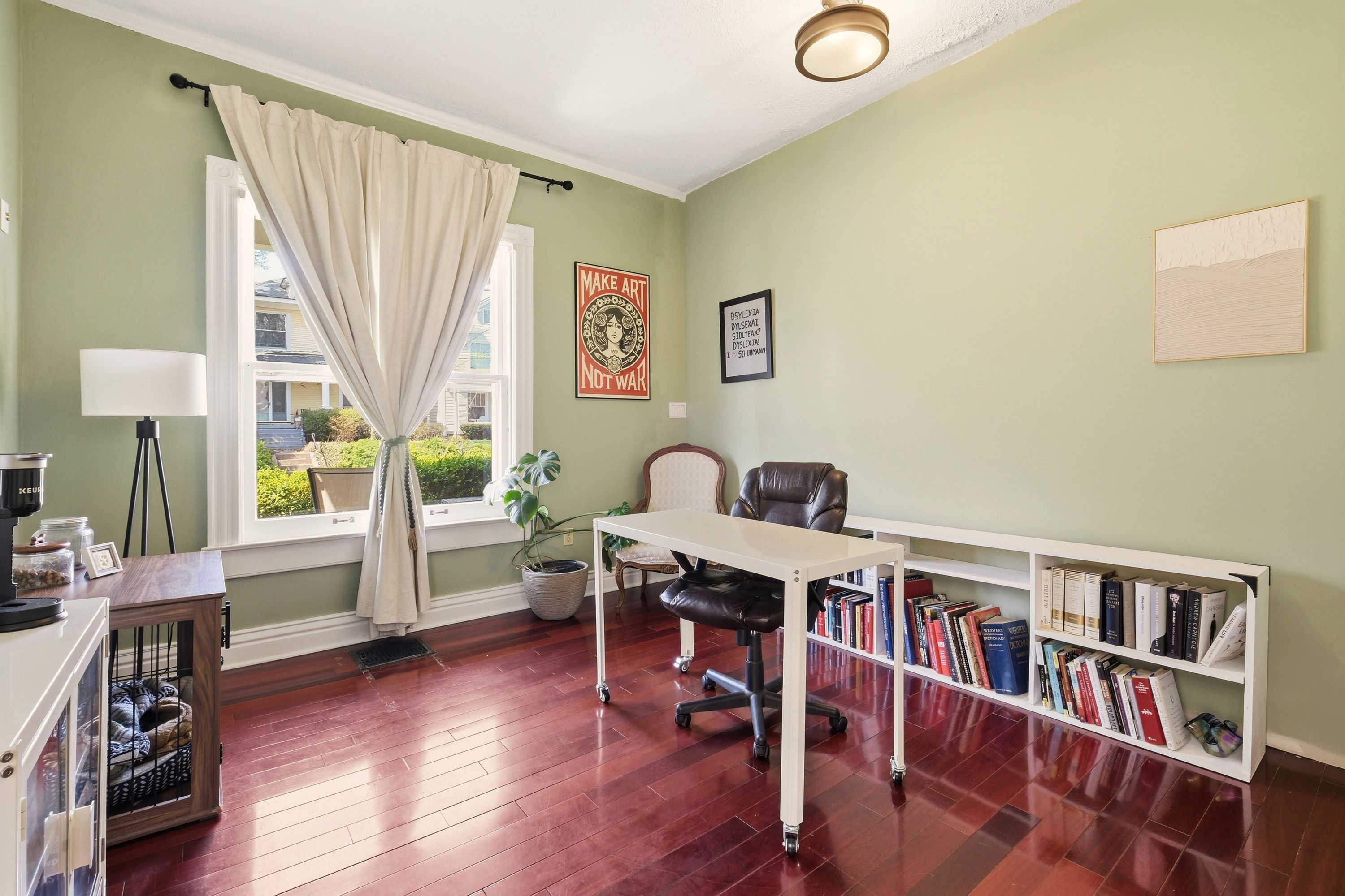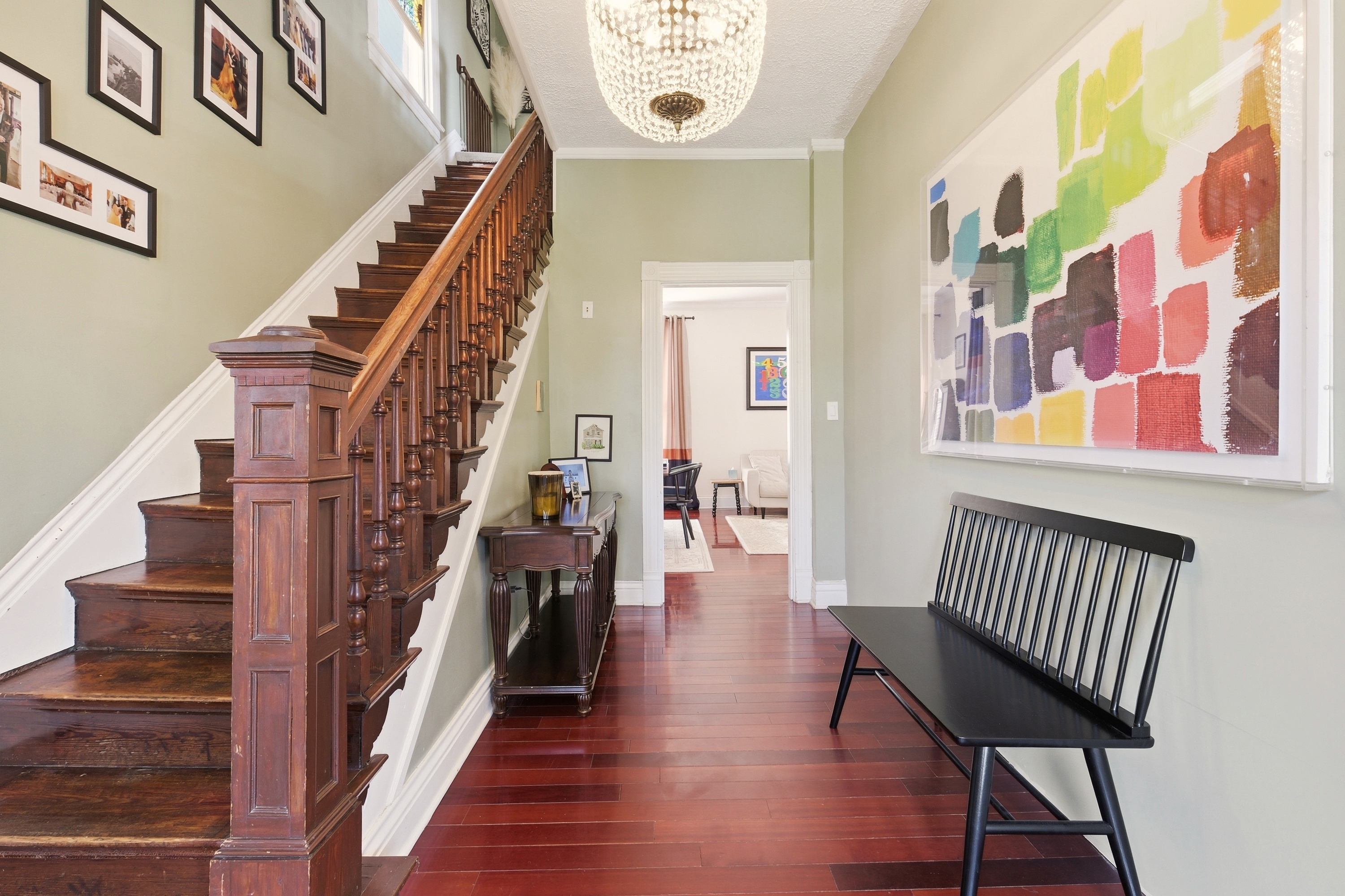 This Highlands home truly has it all. Ideally located between Bardstown Road and Tyler Park, it sits in one of Louisville's most sought-after areas. The current owners thoughtfully renovated the home to include a first-floor bedroom, now used as a home office. Featuring three bedrooms and two full bathrooms, the home offers spacious rooms filled with natural light from large windows. Brazilian cherry hardwood floors run through the entryway, living room, and first-floor bedroom. The staircase and landing have been recently carpeted, while the upstairs bedrooms showcase classic wood parquet flooring. Conveniently, the laundry is also located on the second floor. The kitchen provides ample cabinet space and storage. Just off the kitchen, you'll find a covered porch and deck that overlook a fully fenced backyard. A newly added fish pond creates a peaceful, relaxing setting—perfect for unwinding at the end of the day.
