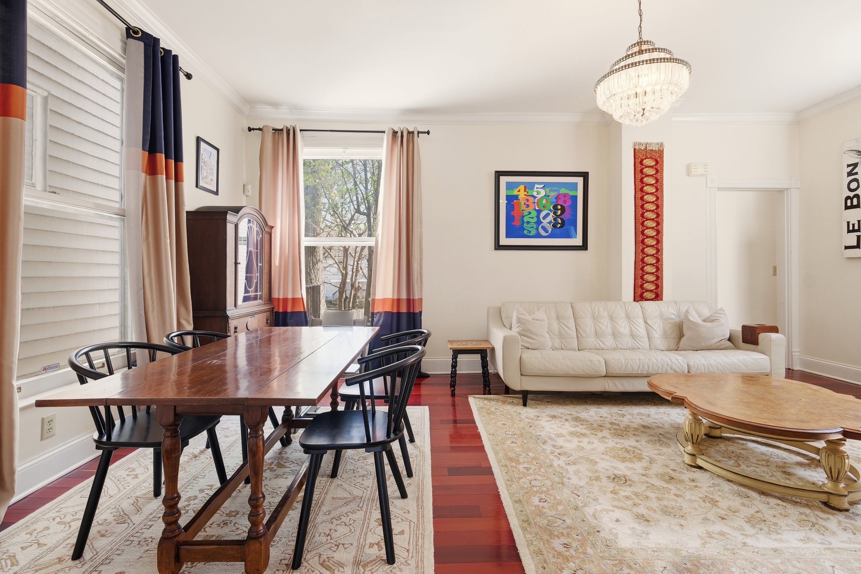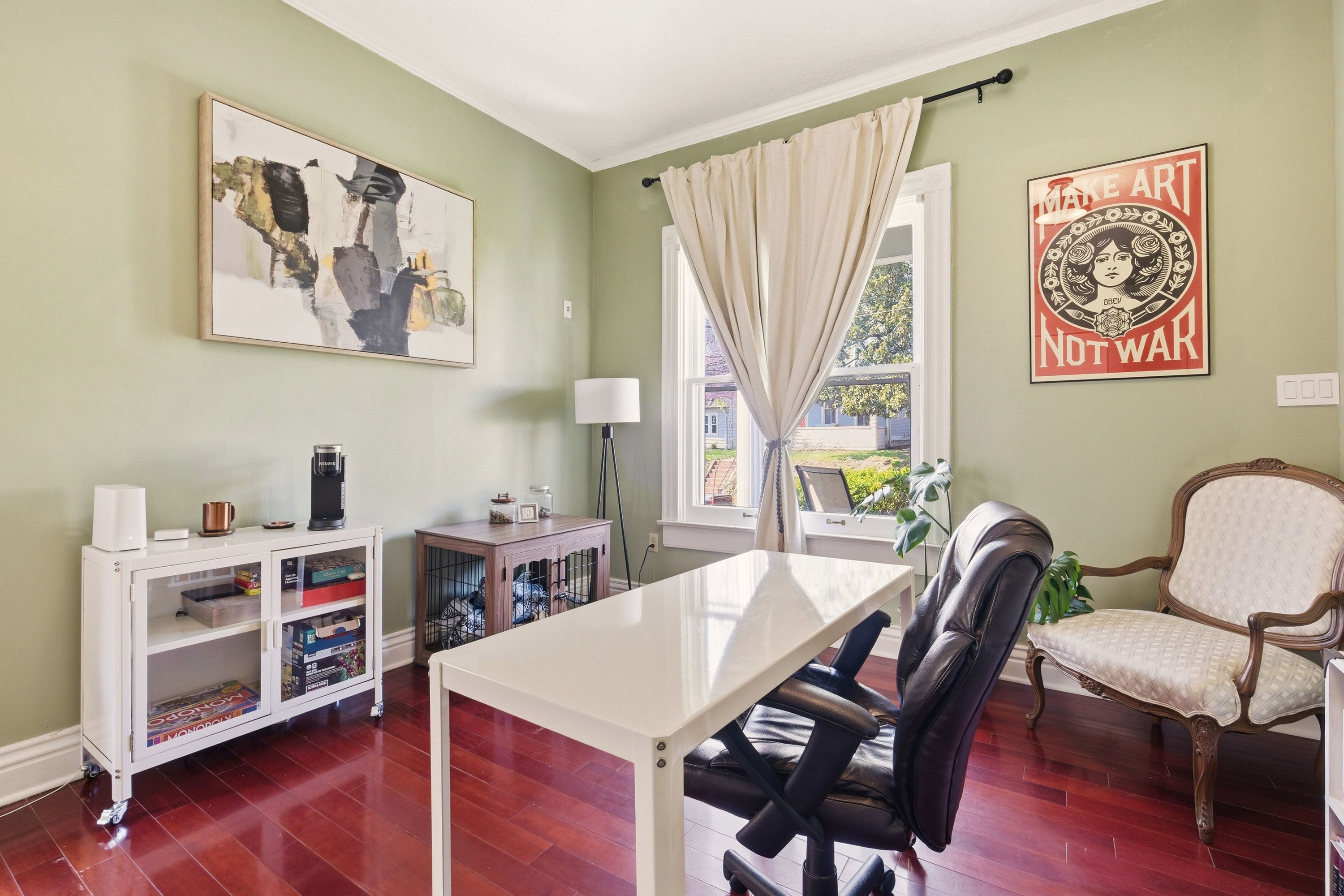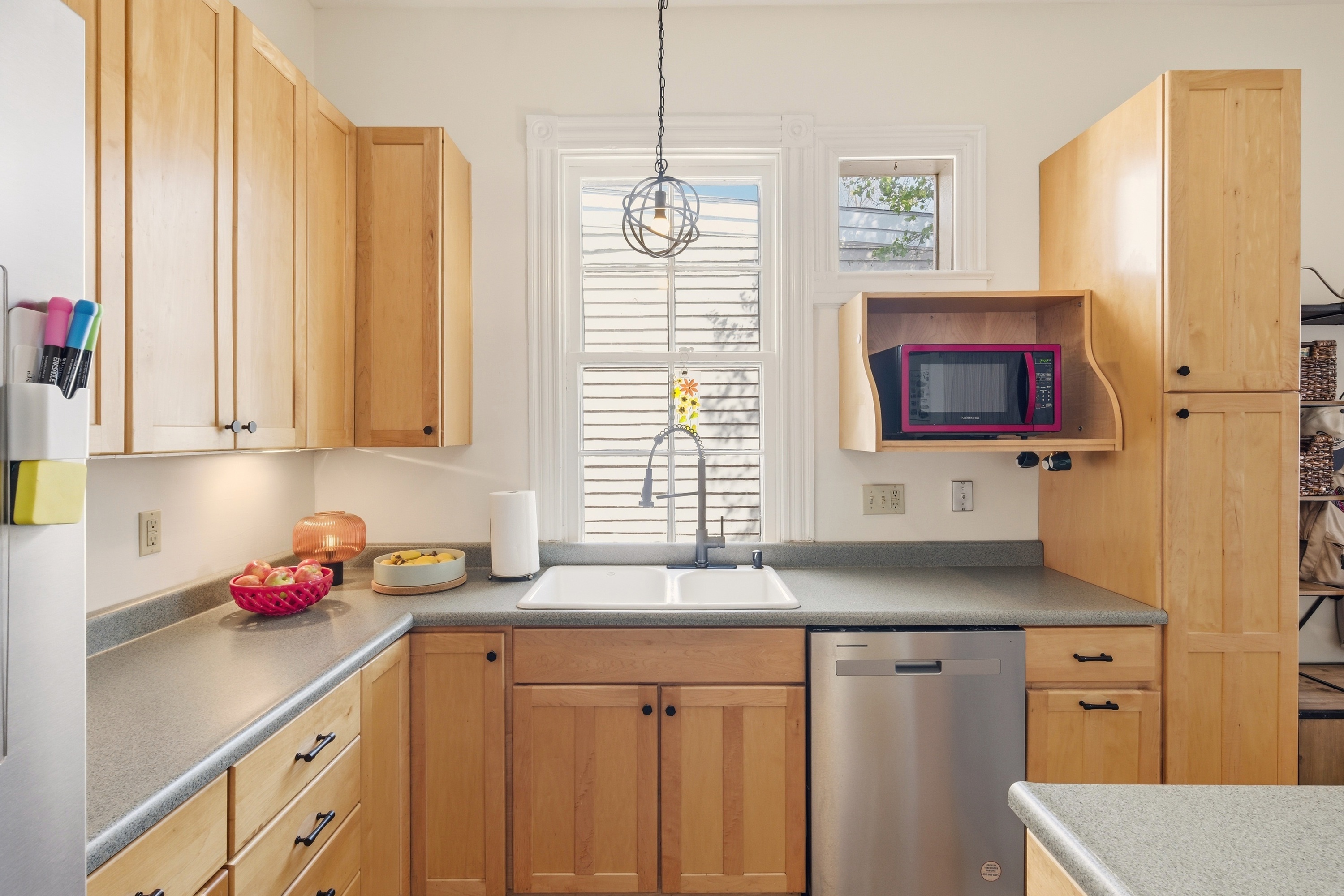 This Highlands home truly has it all. Ideally located between Bardstown Road and Tyler Park, it sits in one of Louisville's most sought-after areas. The current owners thoughtfully renovated the home to include a first-floor bedroom, now used as a home office. Featuring three bedrooms and two full bathrooms, the home offers spacious rooms filled with natural light from large windows. Brazilian cherry hardwood floors run through the entryway, living room, and first-floor bedroom. The staircase and landing have been recently carpeted, while the upstairs bedrooms showcase classic wood parquet flooring. Conveniently, the laundry is also located on the second floor. The kitchen provides ample cabinet space and storage. Just off the kitchen, you'll find a covered porch and deck that overlook a fully fenced backyard. A newly added fish pond creates a peaceful, relaxing setting—perfect for unwinding at the end of the day.