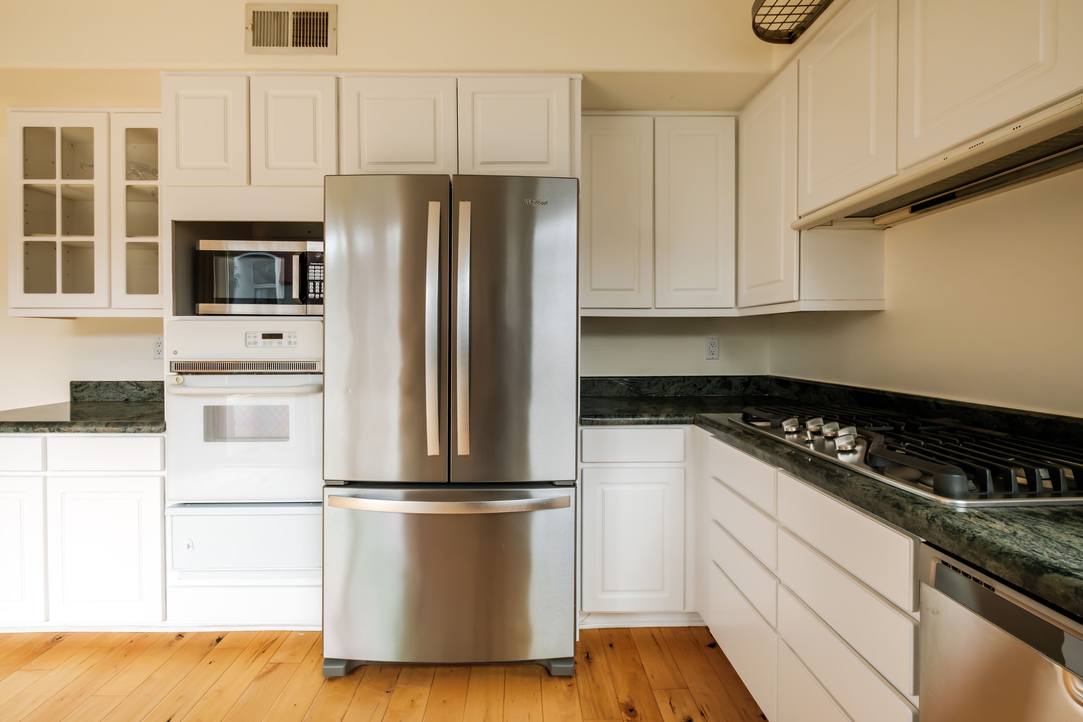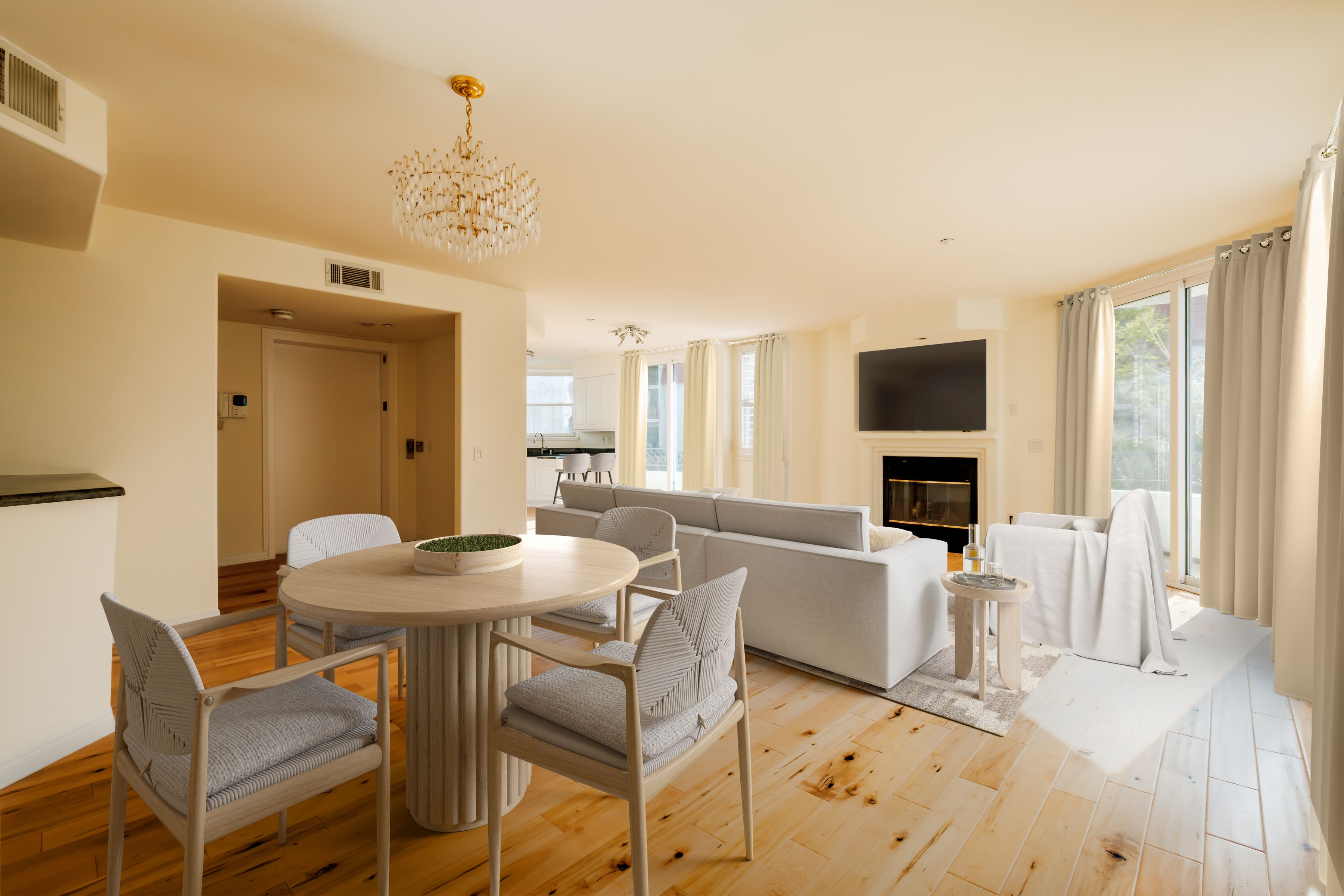 Ideally situated in the heart of Westwood, this beautifully maintained 3-bedroom, 2.5-bath residence offers privacy, scale, and refined living with only one unit per floor, a rare configuration for those who value both space and quiet. Direct elevator access opens into the home, while a secured lobby with controlled entry provides an added layer of privacy and peace of mind. The expansive living and dining areas are filled with natural light and feature a fireplace, along with a built-in bar and sink, equally suited for focused remote work, everyday living, or effortless entertaining. The open kitchen is appointed with Italian granite countertops and connects to a private balcony, enhancing the home's bright and airy feel. The spacious primary suite serves as a private retreat, complete with its own decorative fireplace and a newly renovated bath featuring a new soaking tub, new dual-sink vanities, and modern finishes throughout. Two additional bedrooms share a well-appointed full bath, and a separate powder room accommodates guests. A large in-unit laundry room with newer washer and dryer adds everyday functionality. Recently painted and featuring a brand-new HVAC system, this move-in-ready residence also includes gated side-by-side parking with a Tesla charger. Set on a quiet, tree-lined street just moments from Westwood Village and some of the area's best dining and shopping, this is a rare long-term lease opportunity for established professionals seeking a permanent home base in one of Westwood's most desirable locations.