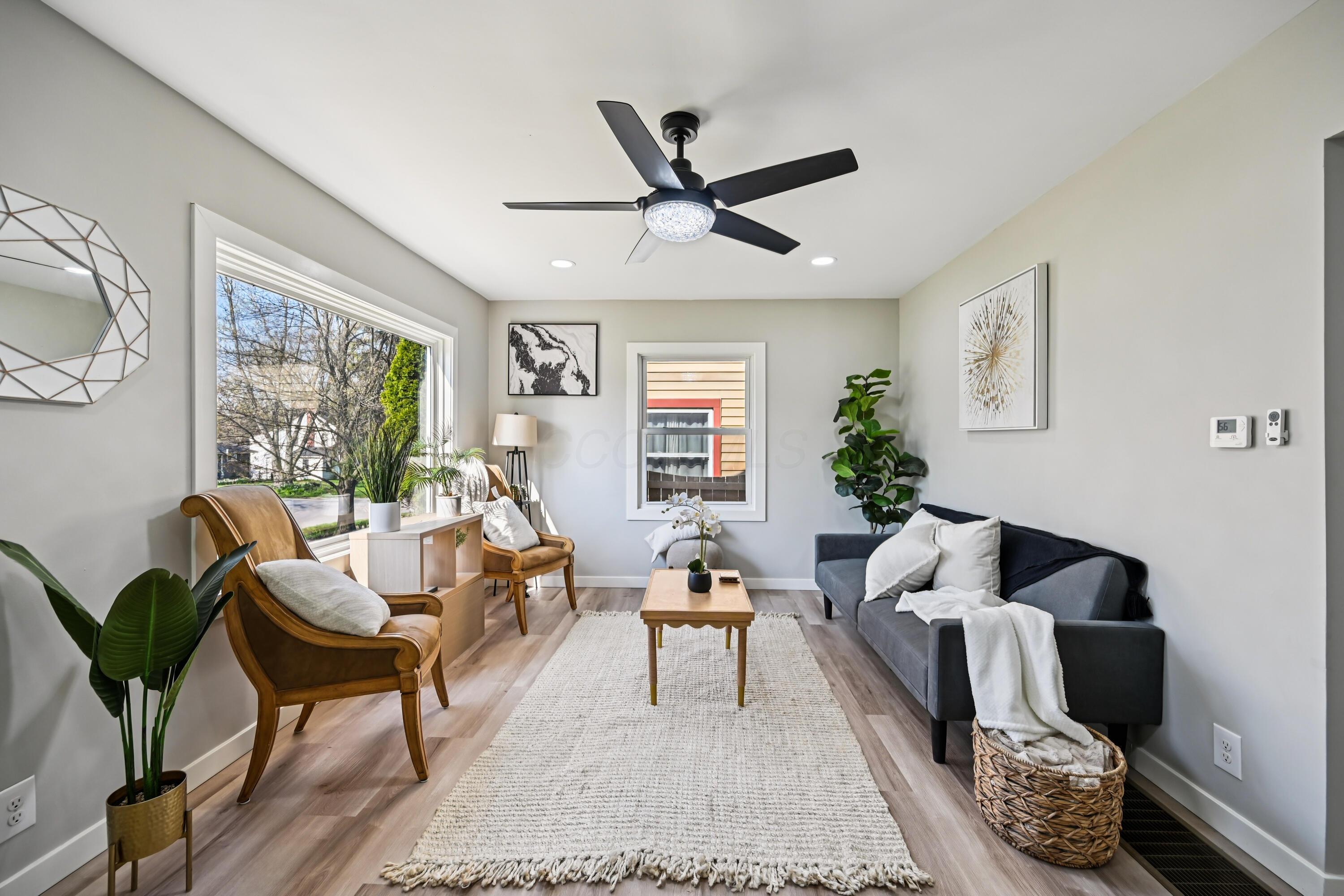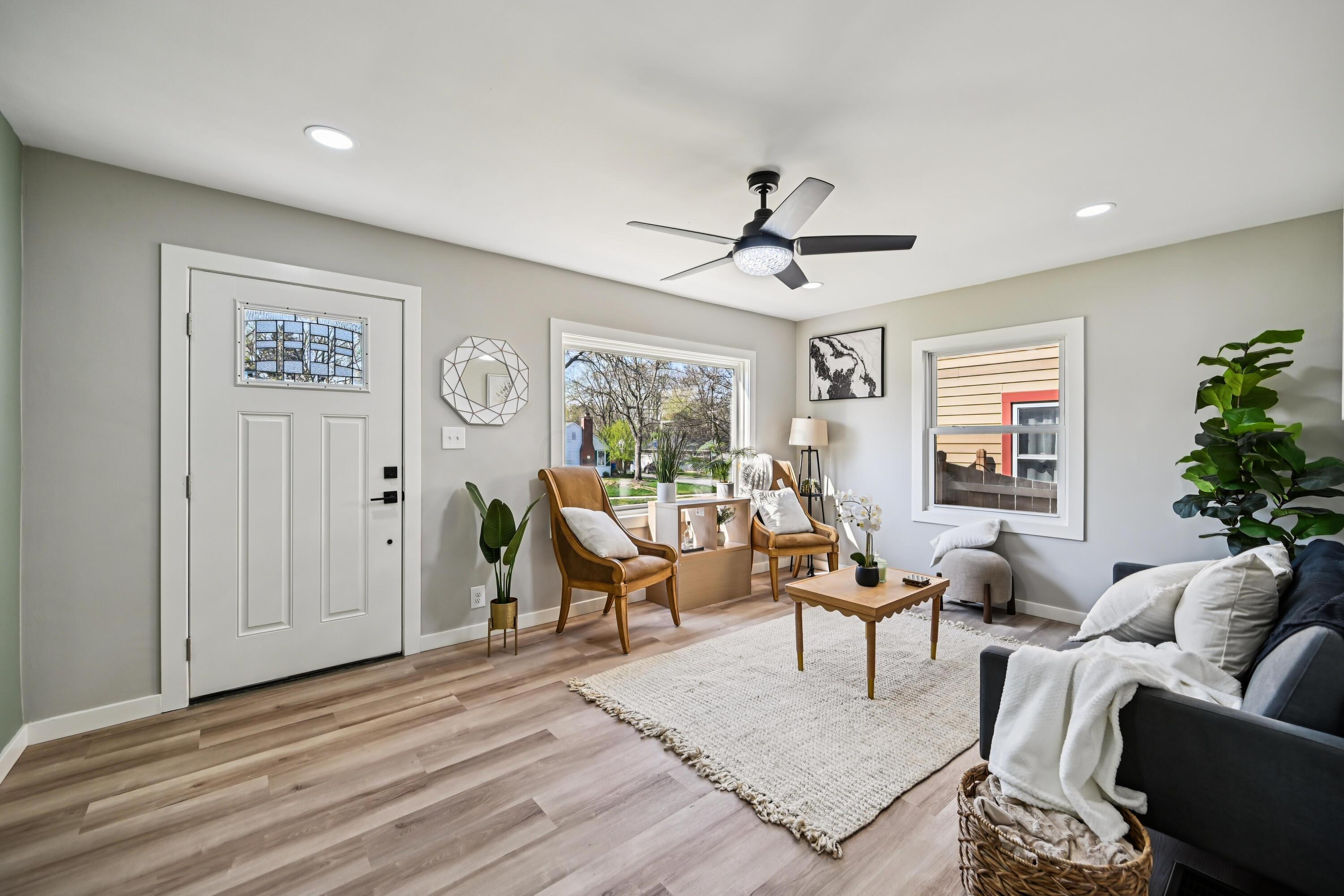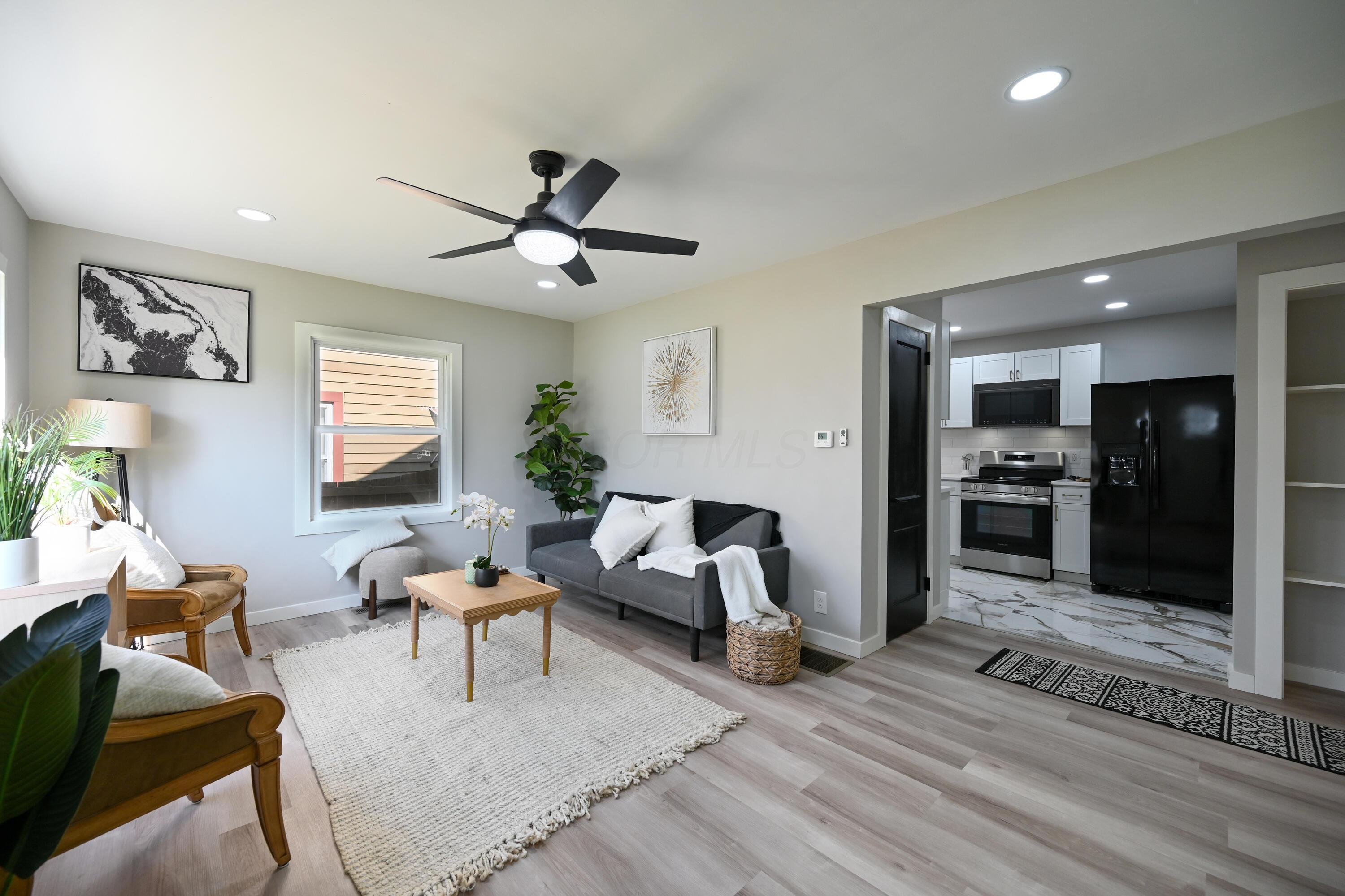 Beautifully updated and move-in ready Clintonville one story blends clean modern finishes with a long list of major improvements, offering a polished feel and true peace of mind. Step inside to a bright, refreshed interior where natural light, fresh paint, and updated flooring create an easy, comfortable flow throughout. The kitchen features new cabinetry, quartz countertops, updated hardware, ceramic tile backsplash & flooring, and an upgraded appliance package that combines style and function. The bathroom is finished with sleek ceramic tile, while updated lighting, fans, trim, and clean details carry throughout the home. Major improvements include a new furnace (2026), new A/C (2026), new roof (2026), and new siding (2026), along with updated electrical, waterproofing with sump pump, newer vinyl windows, glass block windows, and new exterior doors. Outside, the property continues to impress with a new privacy fence, fresh landscaping, new 10x10 concrete patio, new garage door opener, and a new concrete apron with an added one-car gravel driveway for additional parking. A well-finished home with high-quality updates and the important work already completed, offering a clean, low-maintenance living experience from day one. Wonderful location close to OSU, Park of roses and all of the Clintonville amenities.