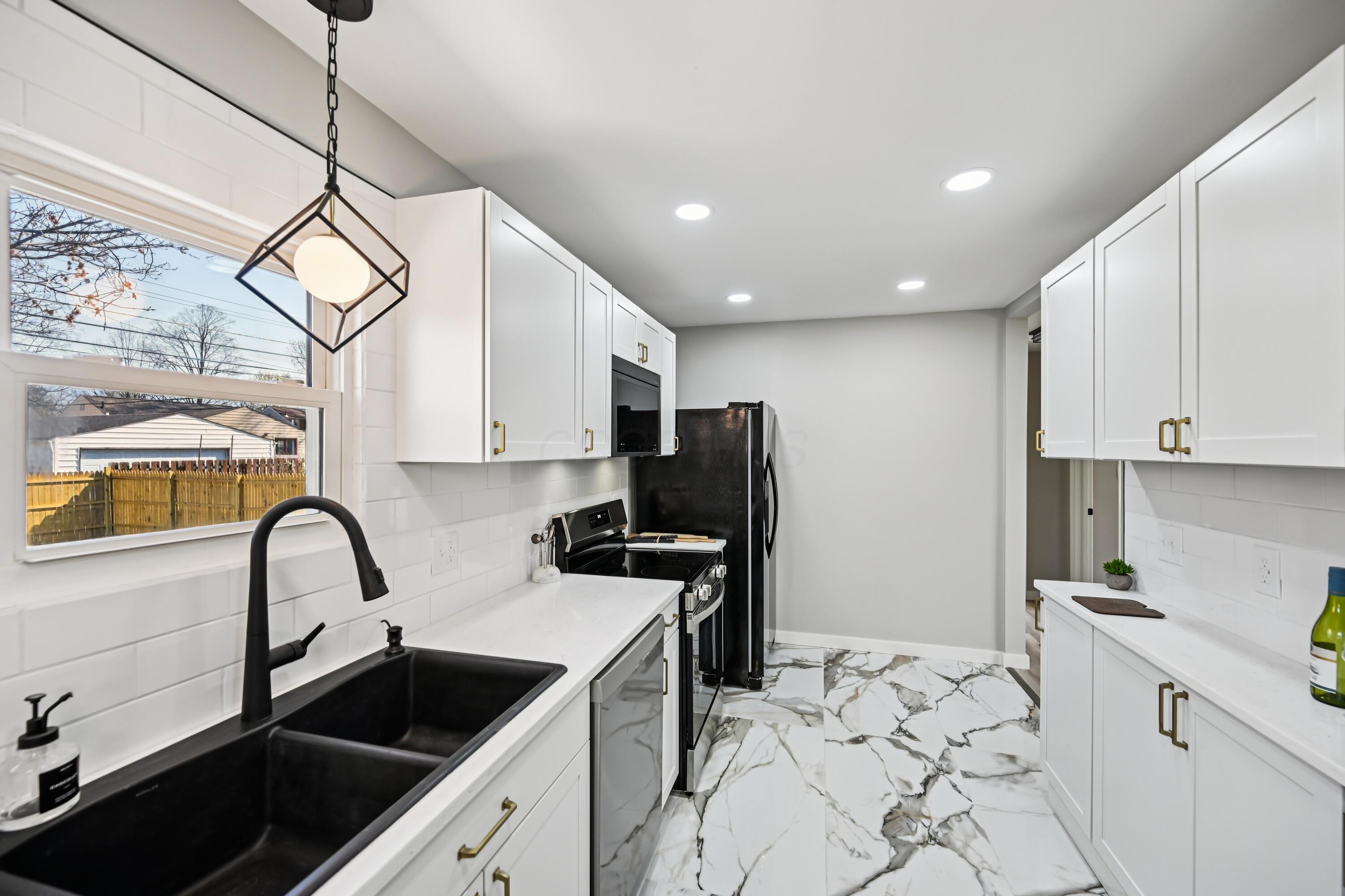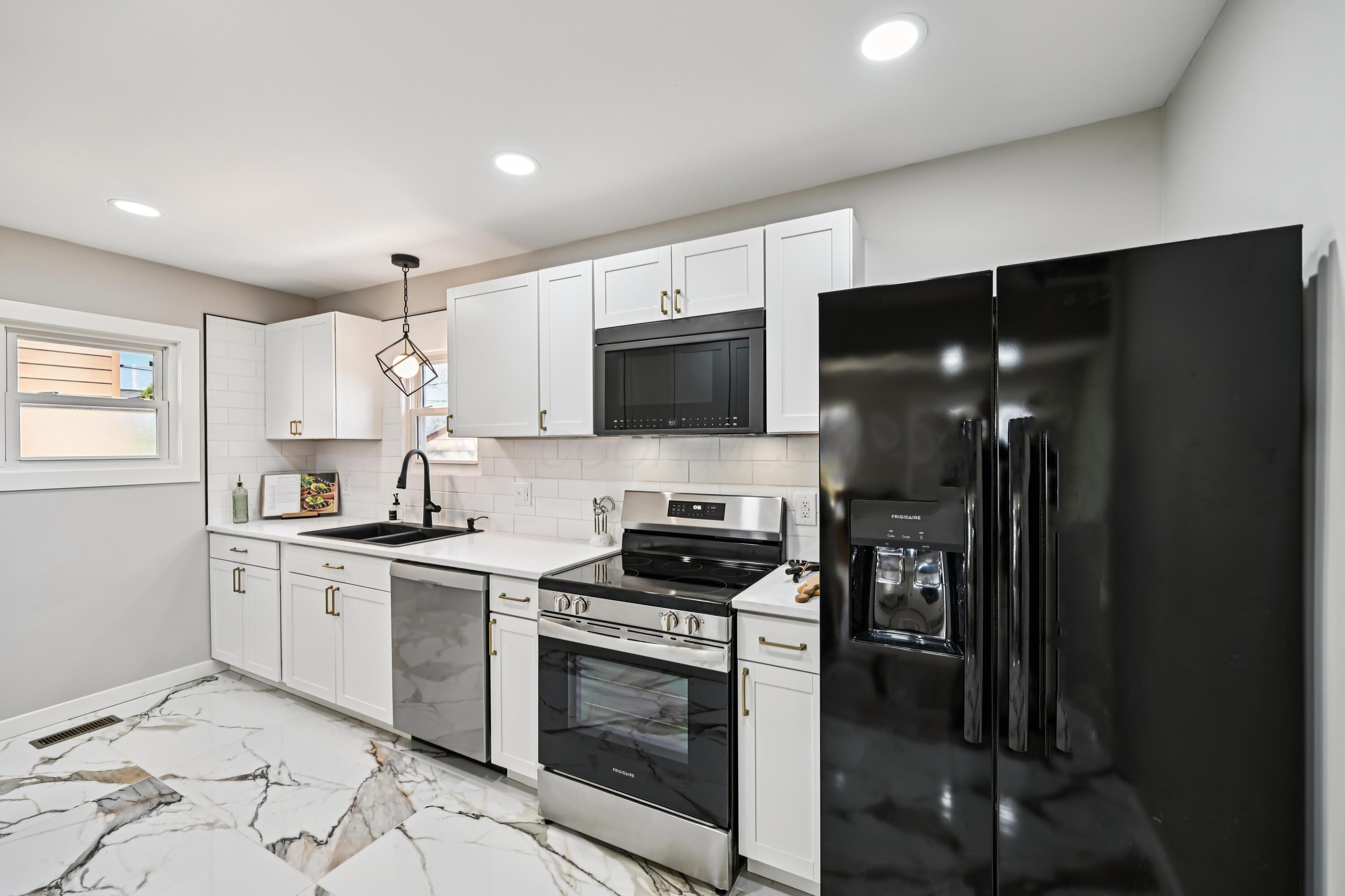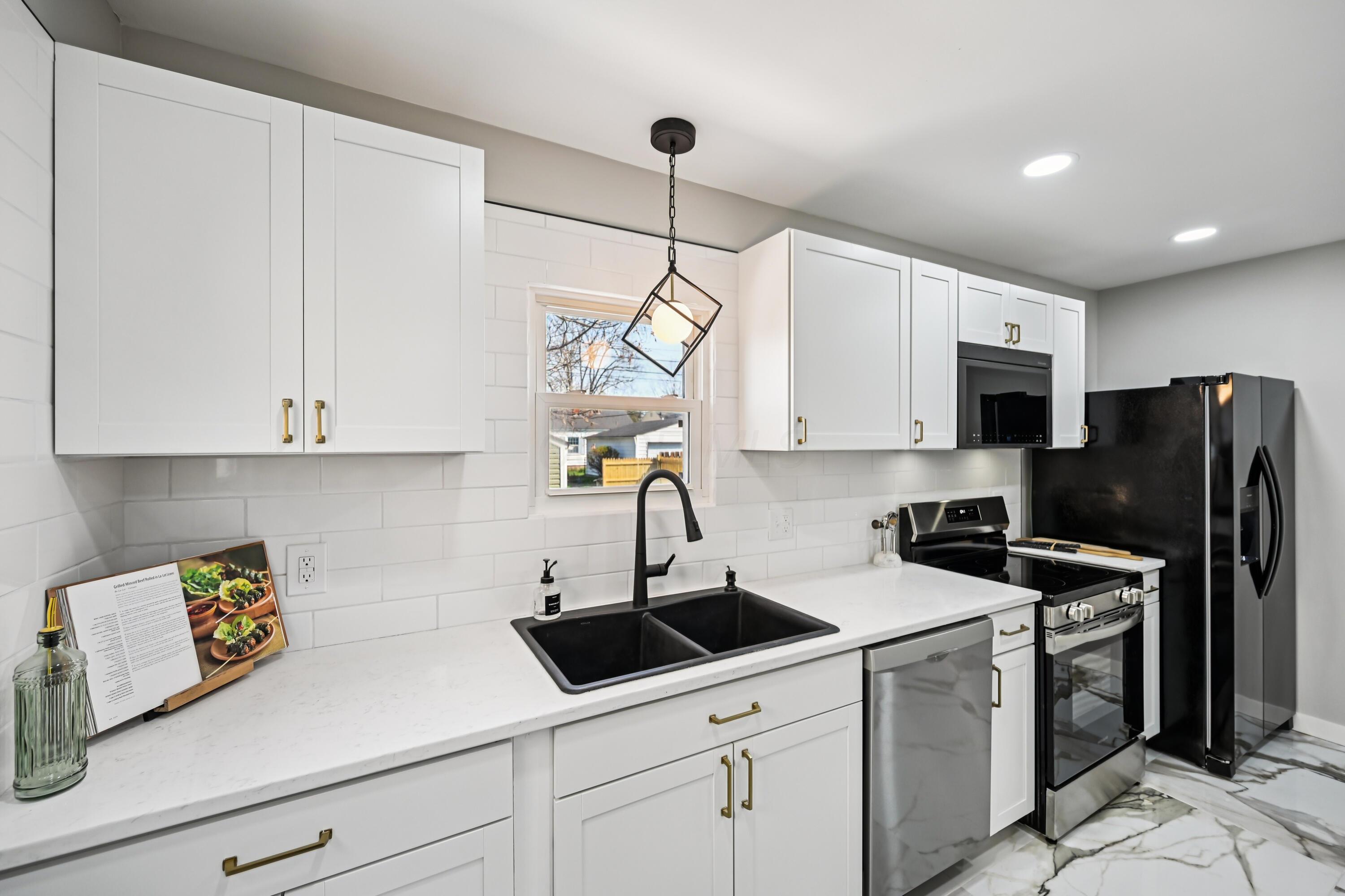 Beautifully updated and move-in ready Clintonville one story blends clean modern finishes with a long list of major improvements, offering a polished feel and true peace of mind. Step inside to a bright, refreshed interior where natural light, fresh paint, and updated flooring create an easy, comfortable flow throughout. The kitchen features new cabinetry, quartz countertops, updated hardware, ceramic tile backsplash & flooring, and an upgraded appliance package that combines style and function. The bathroom is finished with sleek ceramic tile, while updated lighting, fans, trim, and clean details carry throughout the home. Major improvements include a new furnace (2026), new A/C (2026), new roof (2026), and new siding (2026), along with updated electrical, waterproofing with sump pump, newer vinyl windows, glass block windows, and new exterior doors. Outside, the property continues to impress with a new privacy fence, fresh landscaping, new 10x10 concrete patio, new garage door opener, and a new concrete apron with an added one-car gravel driveway for additional parking. A well-finished home with high-quality updates and the important work already completed, offering a clean, low-maintenance living experience from day one. Wonderful location close to OSU, Park of roses and all of the Clintonville amenities.