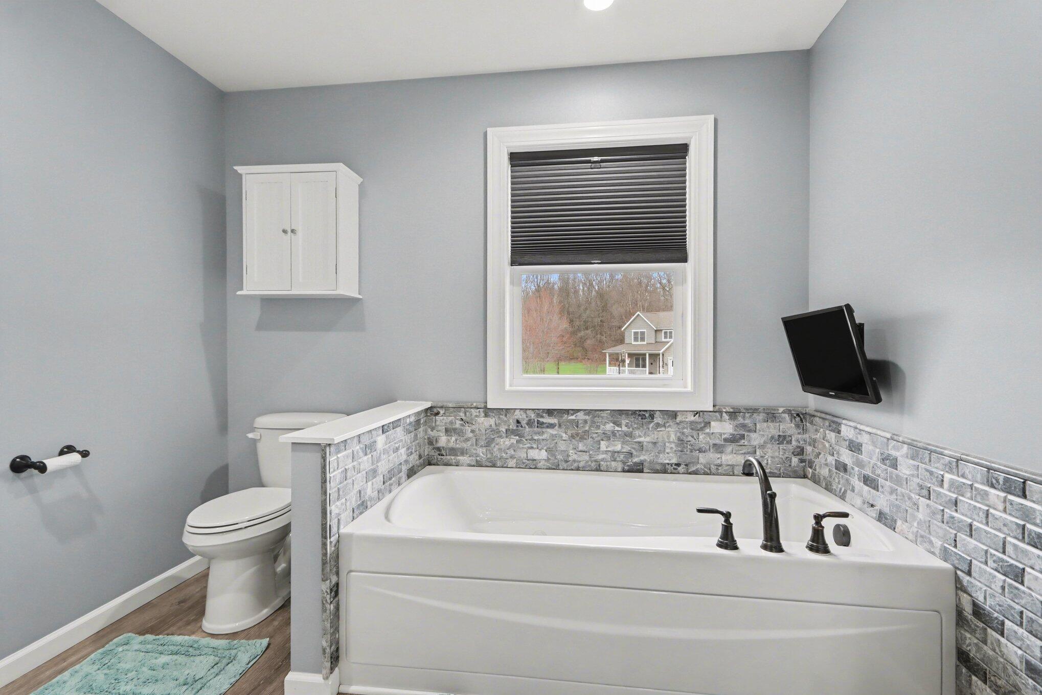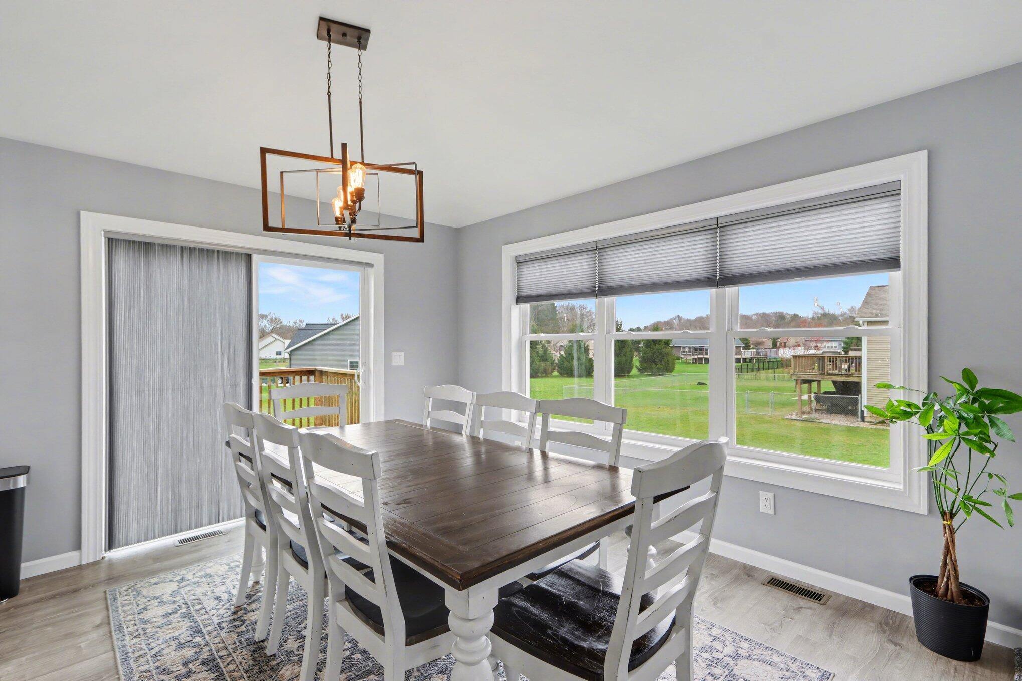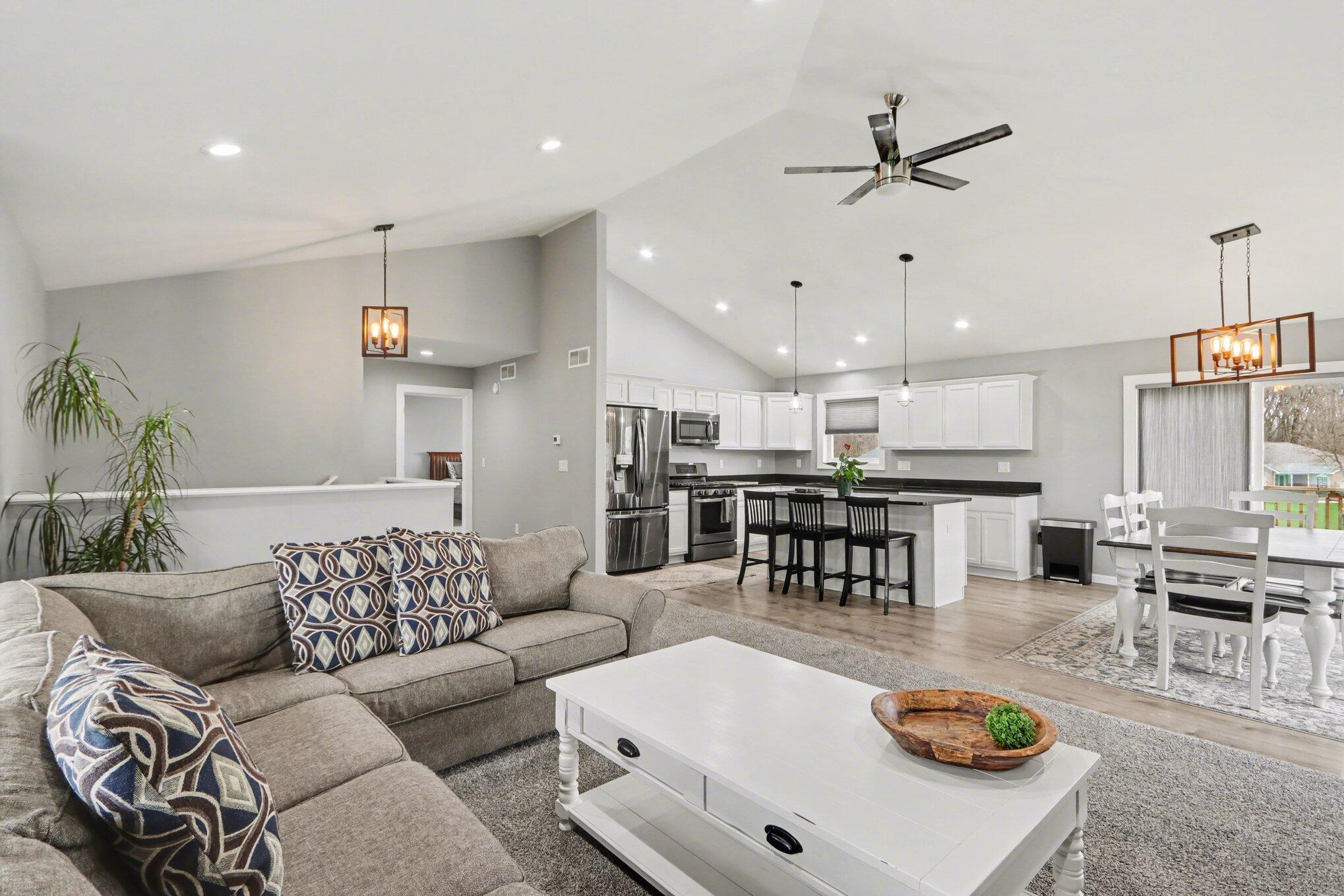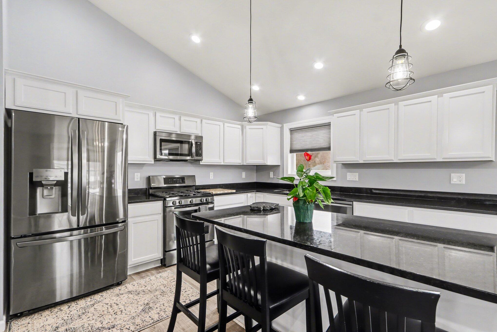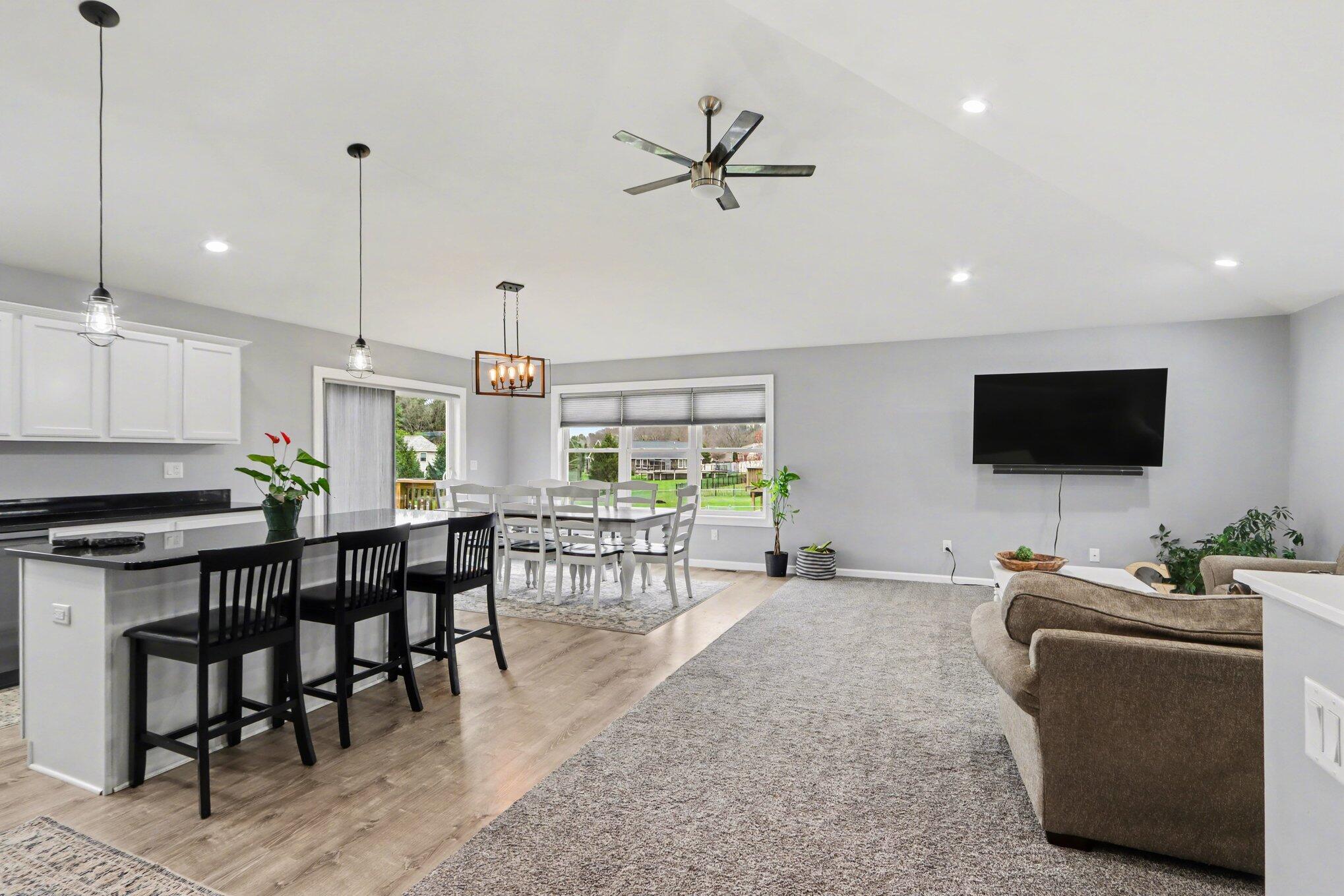 Open house Saturday, April 11th 10:00 - 11:30 am. Beautifully appointed home with an abundance of light with vaulted ceiling. Main floor features open-concept kitchen that is an entertainer's dream, seamlessly flowing into living area with it's high-end granite countertops, center island, stainless appliances (included) and tons of counter space and cabinets, eating area, large living room and dream primary ensuite with exterior deck. Lower level features 4 additional bedrooms, two full baths and large rec room. Exterior features deck off the kitchen, attached 3 car garage, concrete driveway and neighborhood baseball field and tennis court. Showings after 3:00 on weekdays due to pets. Reserved - Water Softener, RO system and ring doorbell.