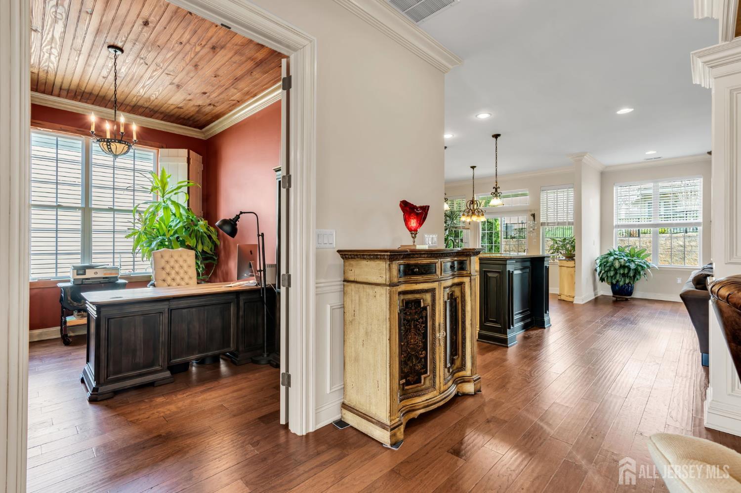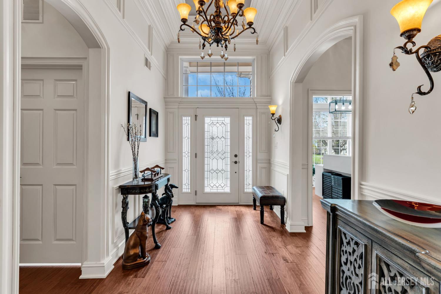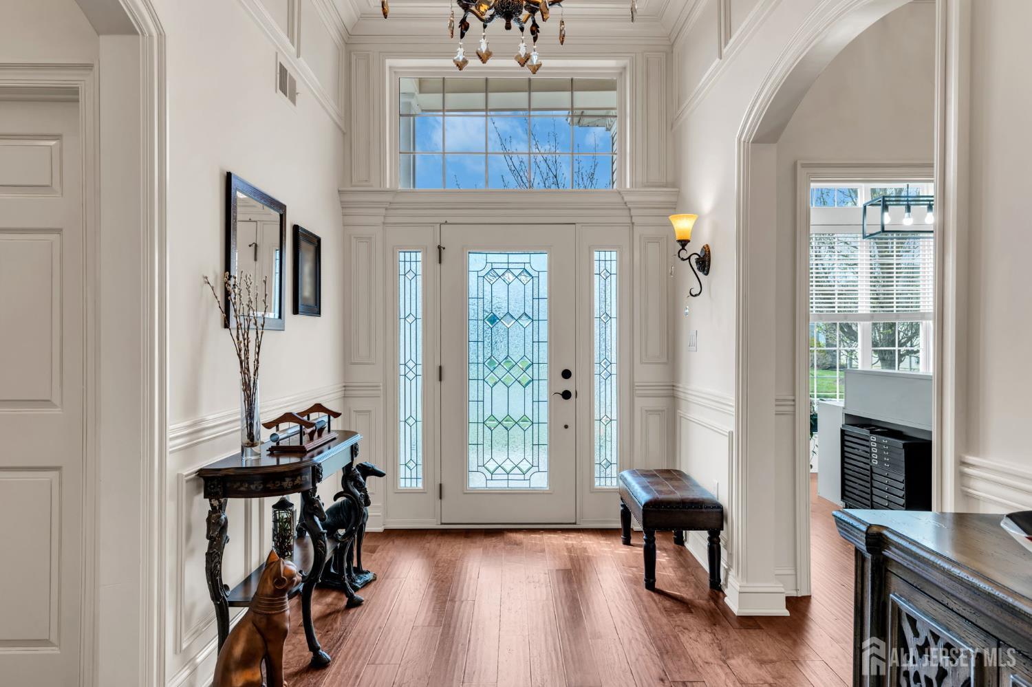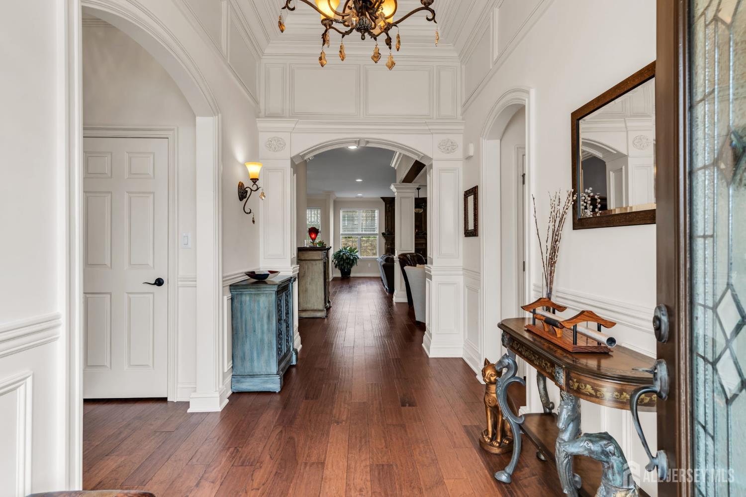 Regency @ Monroe's popular Bayhill model features elegant, custom trim work throughout, with its soaring coffered ceiling in the entry foyer, leaded glass front door, wood floors, full walk-up attic staircase, top-of-the-line center-island kitchen w/stainless steel range hood & appliances including wall-oven, large breakfast area w/slider to yard, great rm w/gas fireplace & french door to a covered patio, dining rm, library/den/opt'l 3rd bdrm, master bdrm w/walk-in closet. master bath w/tub & stall shower. Spacious attic storage above garage. Regency is central jersey's premier active adult community w/9-hole executive golf course, newly renovated clubhouse, indoor & outdoor pools, grill, spa/salon & so much more!