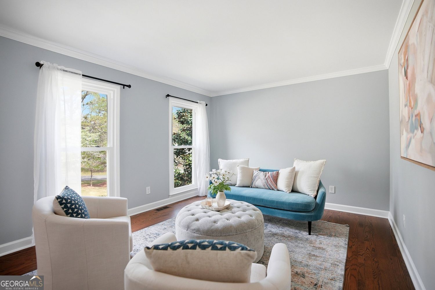 Set on a private and beautifully landscaped 2 acre lot, this updated 4 bedroom, 2.5 bathroom home offers 2,815 square feet of bright, open living space just minutes from Downtown Milton Crabapple District, Downtown Woodstock, and Alpharetta. The main level features new hardwood flooring throughout, a formal dining room, living room, and a fireside family room that opens to a fully remodeled kitchen with white cabinetry, quartz counters, tile backsplash, stainless appliances, and a redesigned walk-in pantry. Upstairs, all bedrooms are thoughtfully positioned, including a spacious primary suite and a full laundry room for everyday convenience, along with a renovated hall bath. Extensive upgrades by the current owners include all new energy efficient windows, new HVAC with updated ductwork, updated staircases, recessed LED lighting, remodeled powder room, custom closet systems, and smart home features including Nest thermostats and a Ring doorbell. Experience serene outdoor living that is just as inviting with a covered porch, rear spacious deck, and a fenced area ideal for pets, all overlooking the expansive yard. Located in an established neighborhood with larger lots and no heavy congestion, this home offers both privacy and accessibility, just 8 minutes to Scottsdale Farms, Publix, shopping, dining, and Atlanta National Golf Club.
