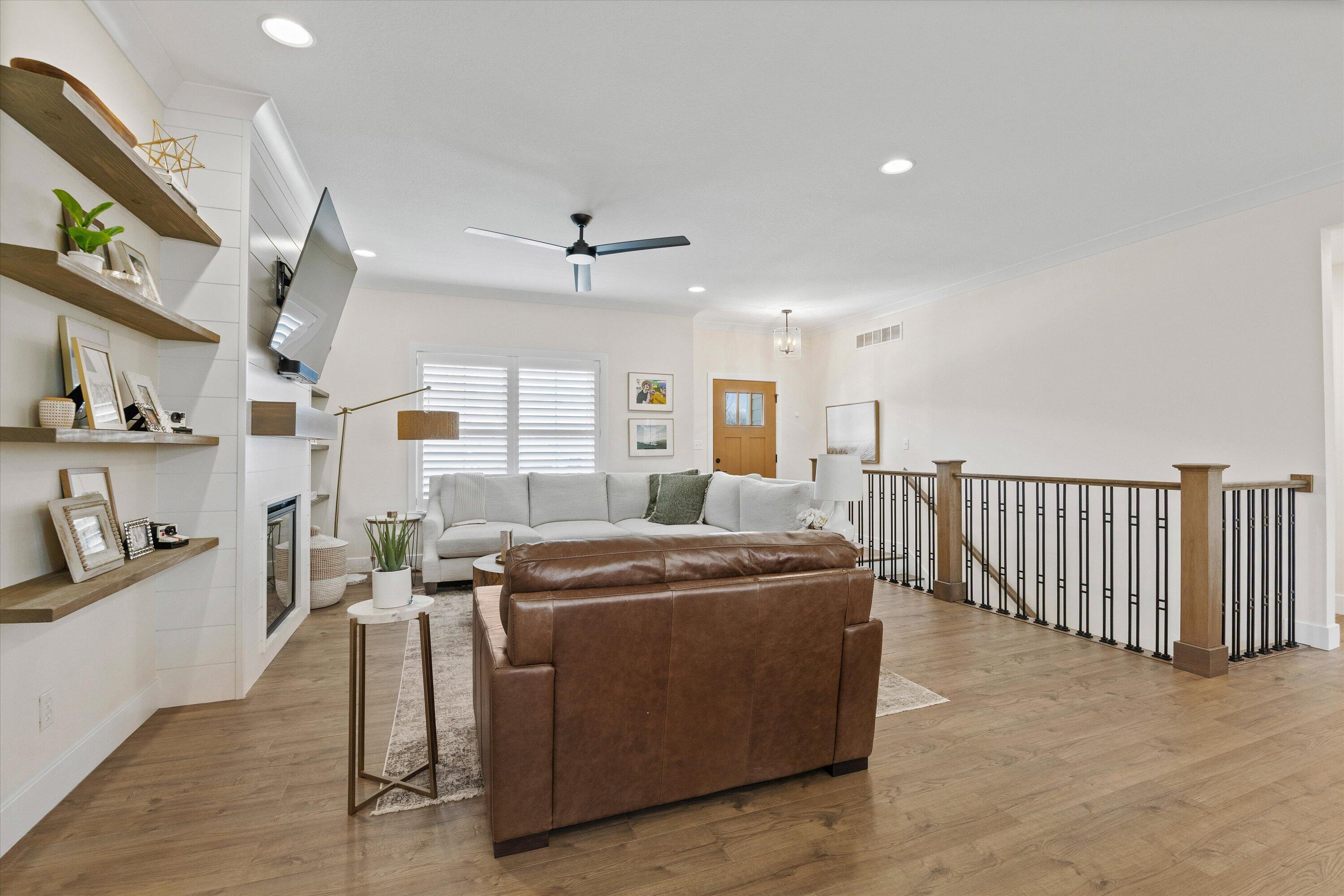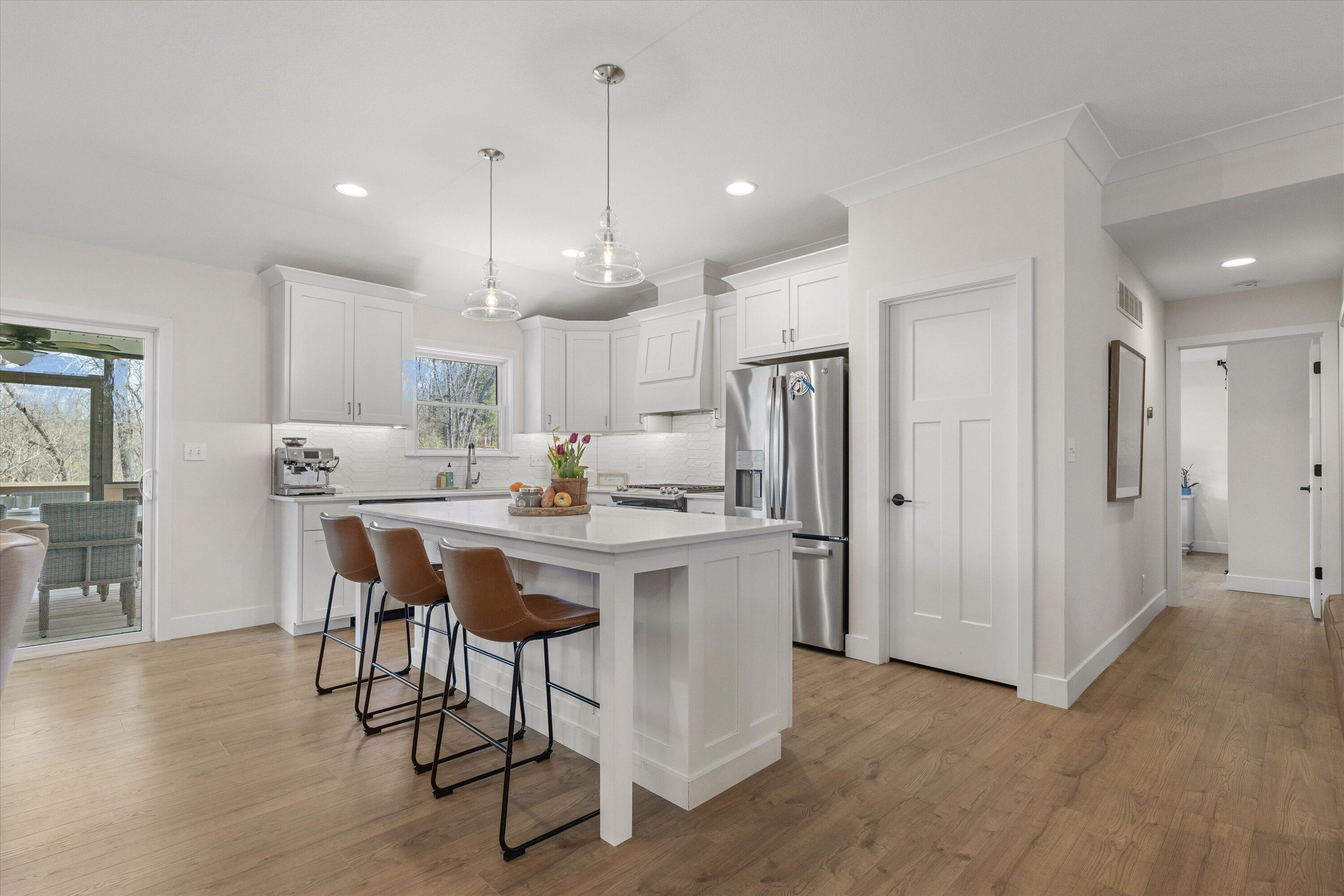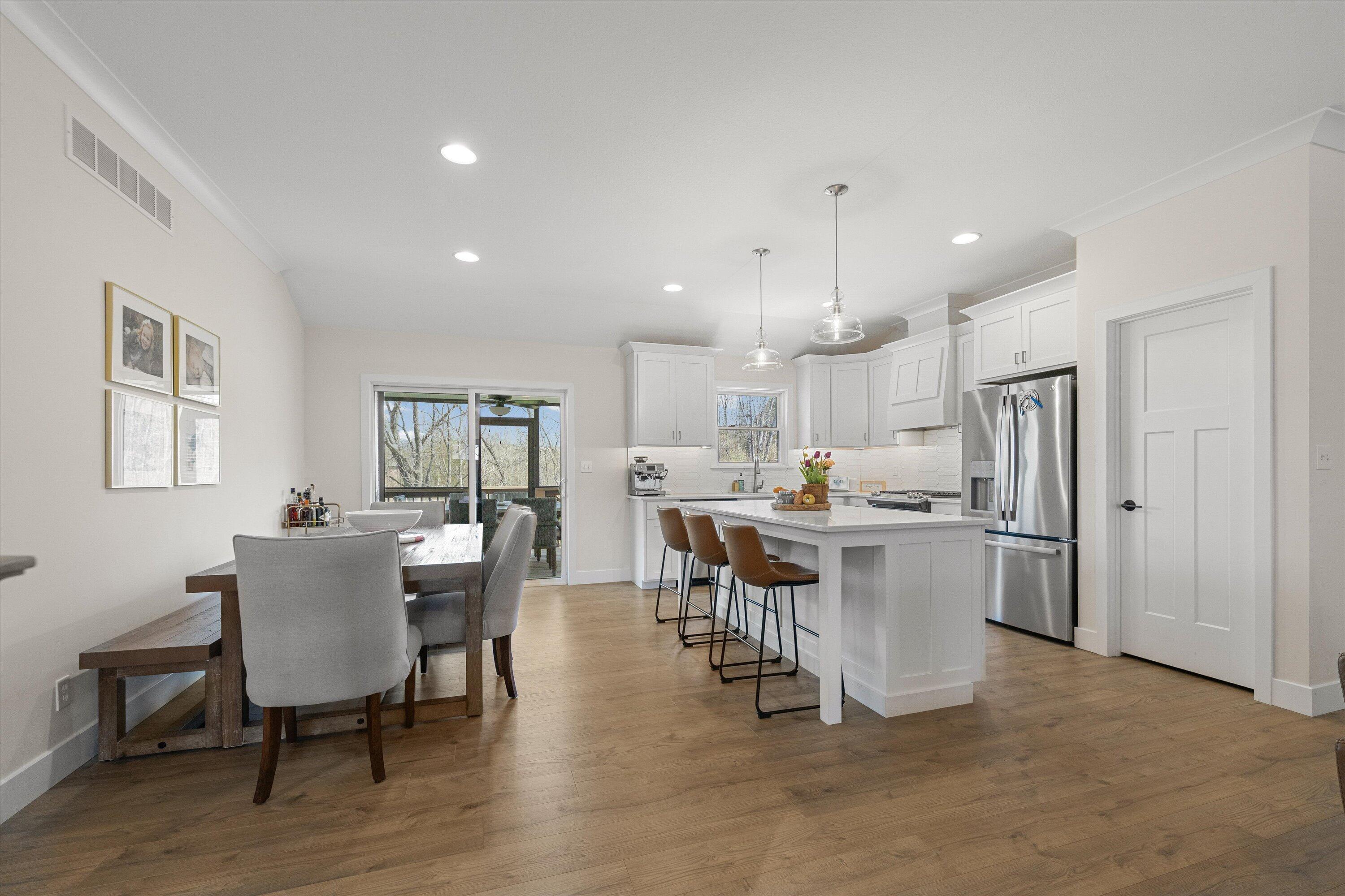 This beautifully designed 5-bedroom, 3-bath home in the desirable Creeks Ridge subdivision offers the perfect blend of space, style, and convenience. The kitchen is a standout feature, complete with quartz countertops, a gas range, and a spacious walk-in pantry--ideal for both everyday living and entertaining. Enjoy the outdoors year-round from the large screened-in back porch, perfect for relaxing or hosting guests. The home also includes a generous 3-car garage, providing ample storage and parking. The finished lower level is designed for comfort and functionality, featuring a large family room, two oversized bedrooms, a wet bar, a secure safe room, and a John Deere room/workshop--perfect for hobbies, storage, or projects.