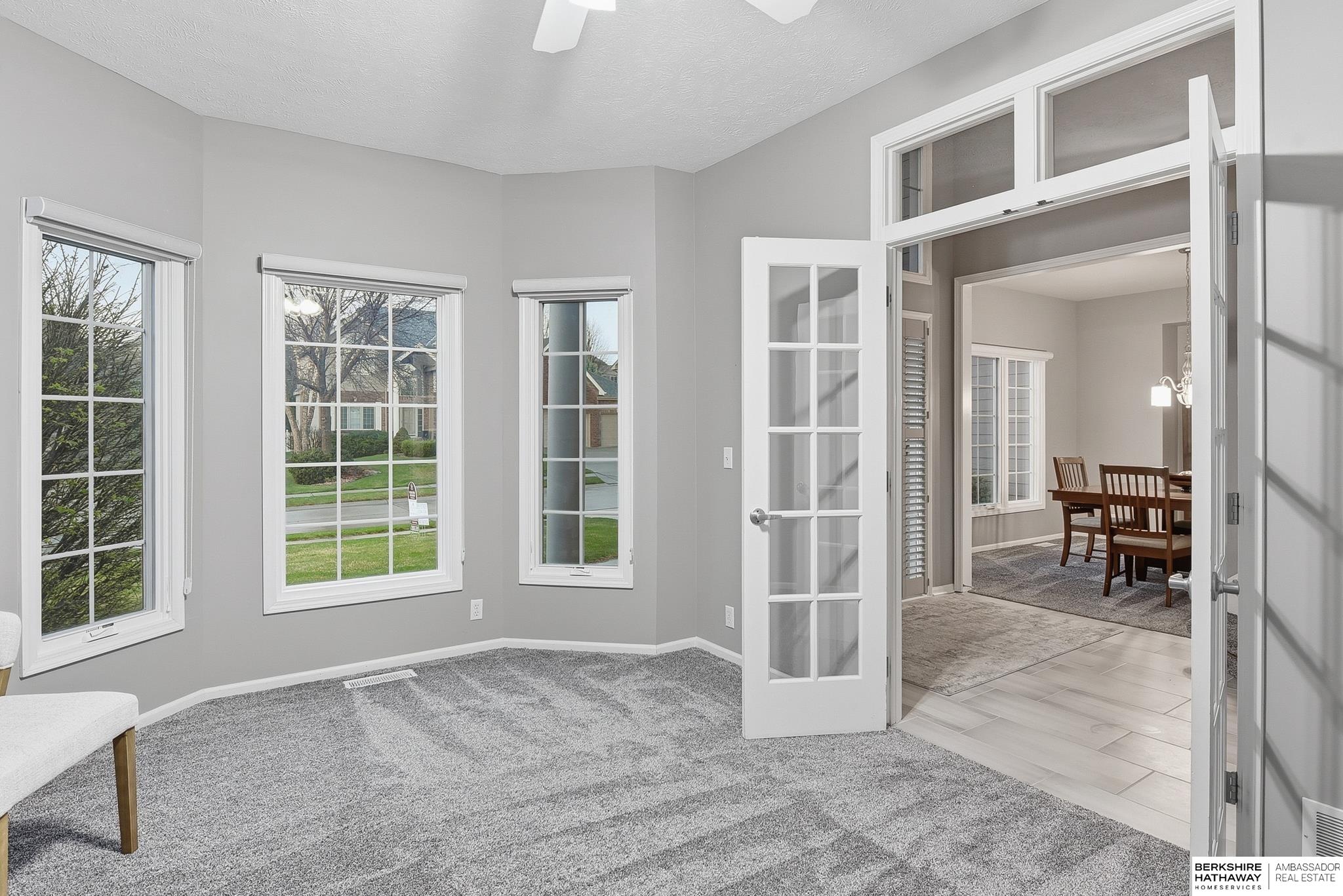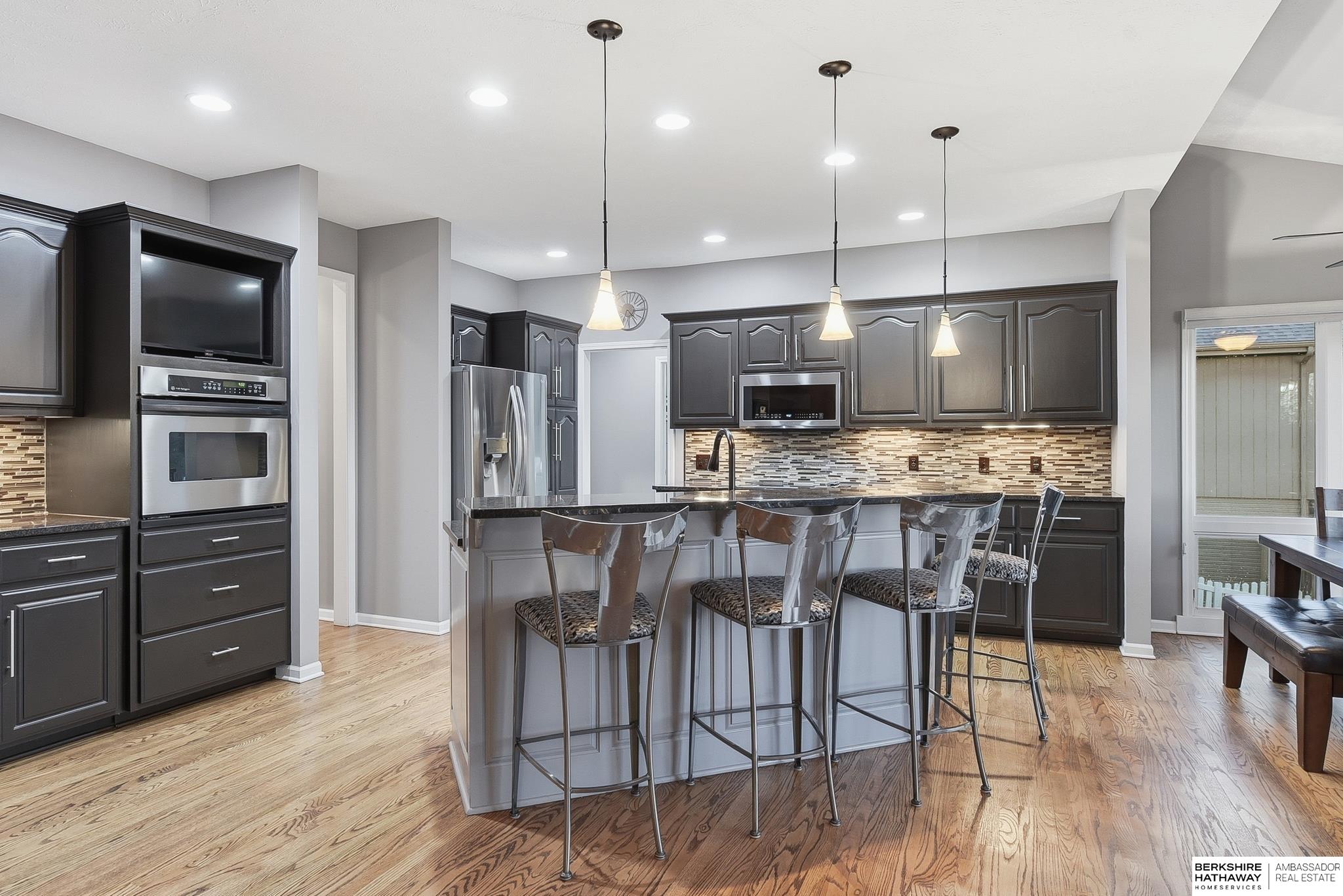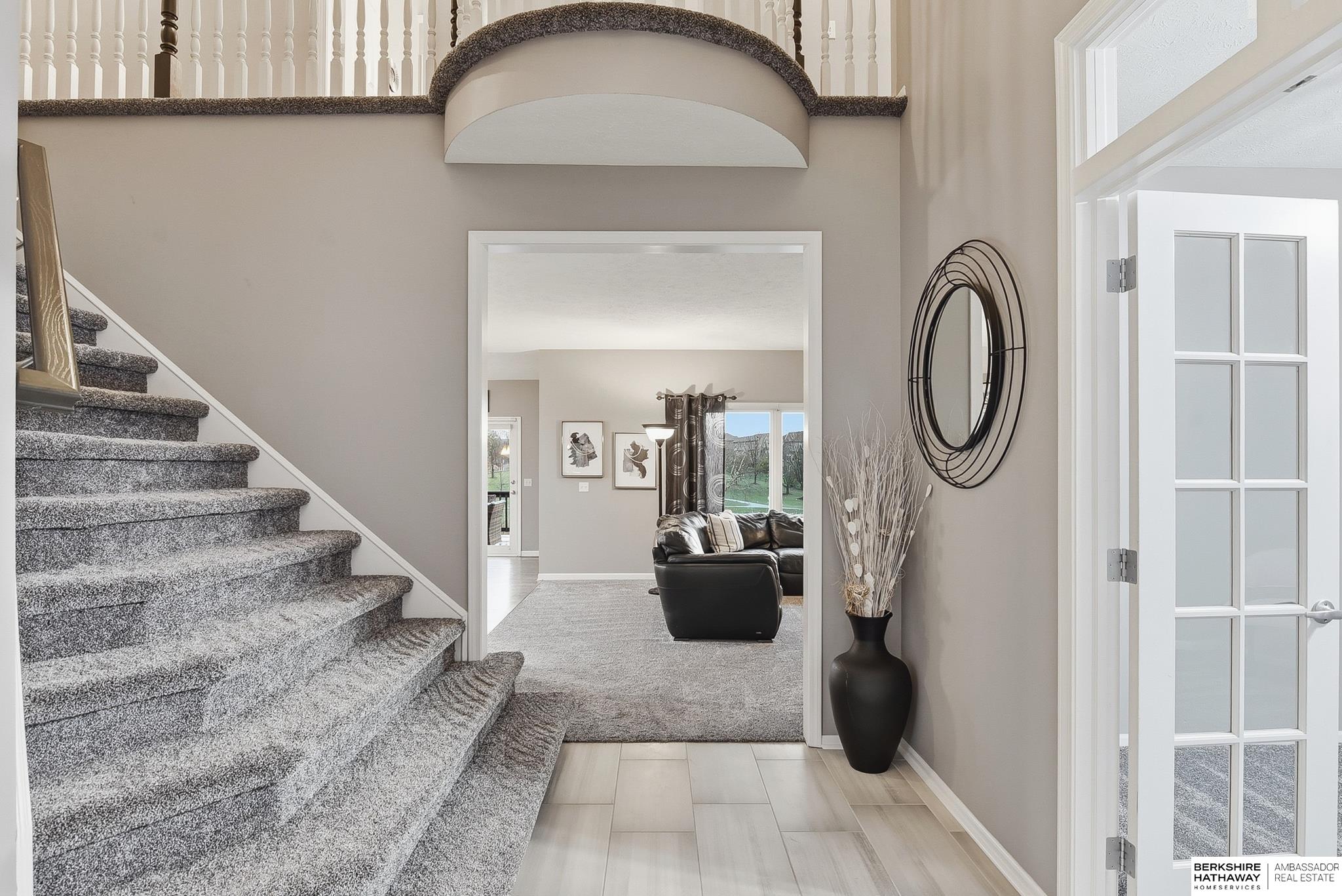 Open House CANCELLED 4/12 12:30-2:30** Home under contract. This impeccable, well-cared-for 5 Bed/5Bath home shows pride of ownership. The floor plan offers versatility for entertaining & family living. Not to mention NO BACK neighbors, fenced flat backyard & the WOW view of the neighborhood lake w/fountain. The Kitchen w/large center island w/seating, granite countertops, wood floors, & tons of cabinet space. Expansive Primary Suite w/massive walk-in closet, 2 sinks, corner tub, & private H20 closet. All 2nd-floor beds have W/I closets & Bedroom 2 has its own en-suite. A Formal DR & Front Office. The deck has just been maintained & will be stained before closing. Newer interior paint, carpet, & many updated windows. W/O lower level w/5th bed/bath, sit-down bar, & if you are a sports fan, the TV set-up is for you! All 3 Millard schools are conveniently located .8 mile or less from the home. 2019 roof.