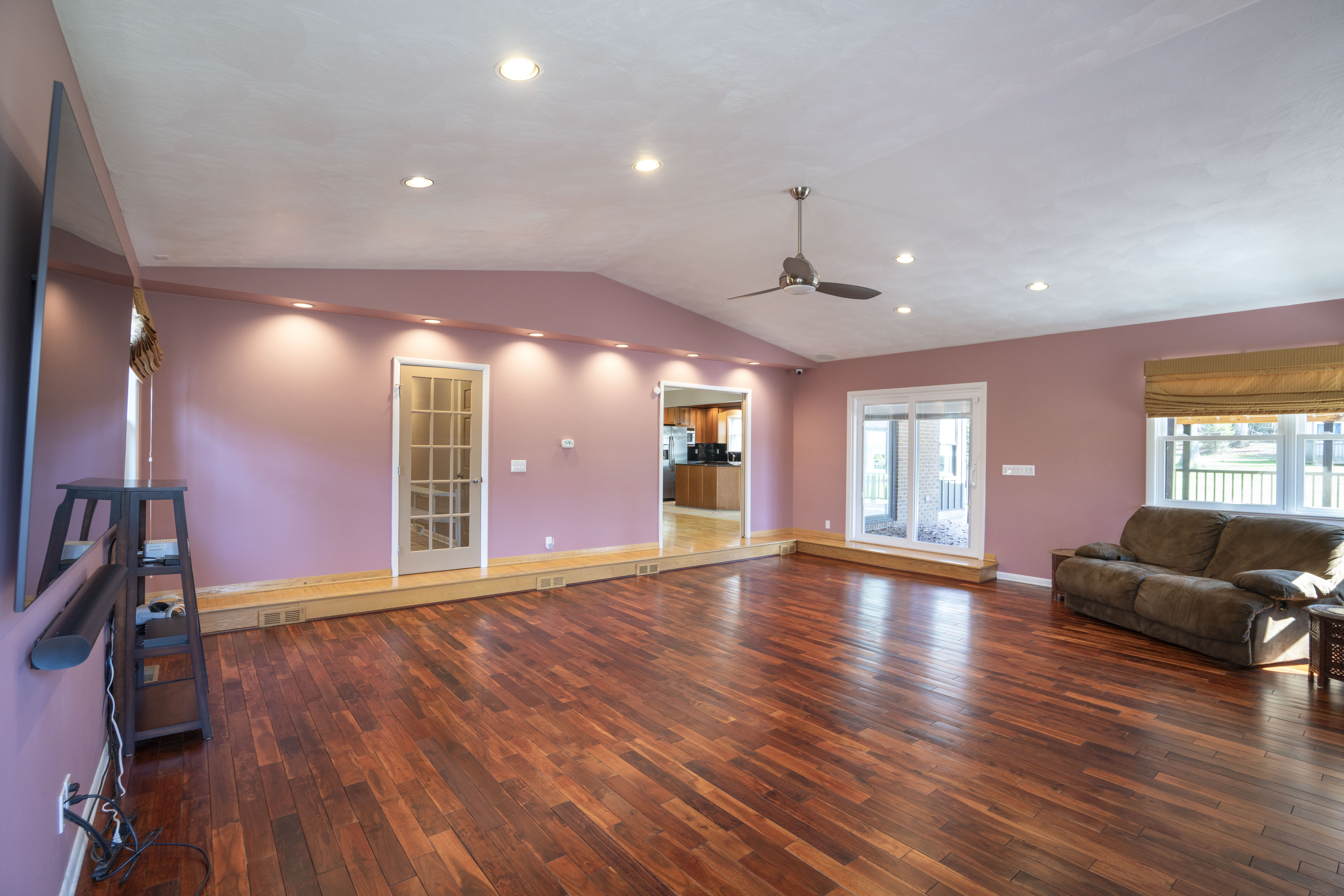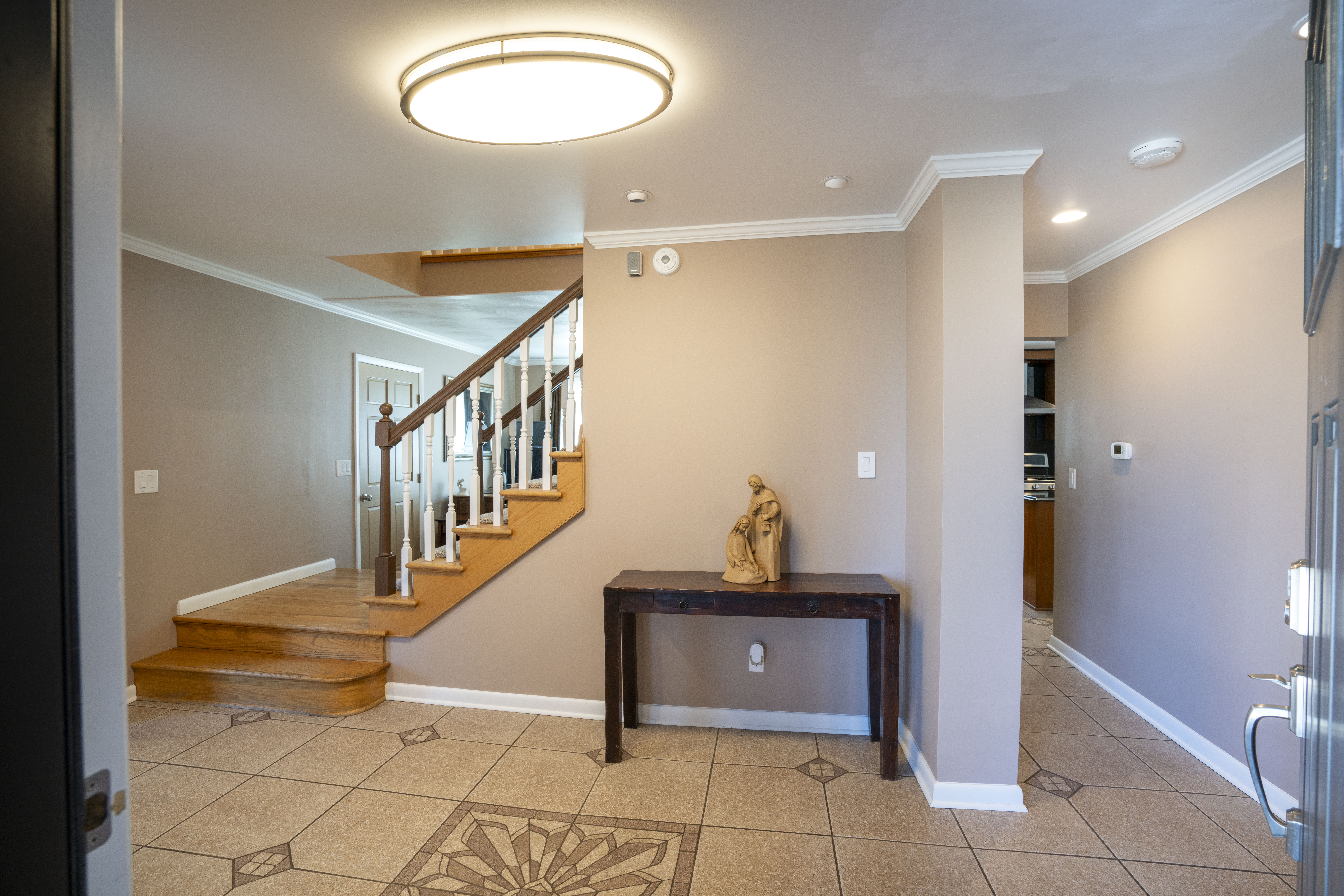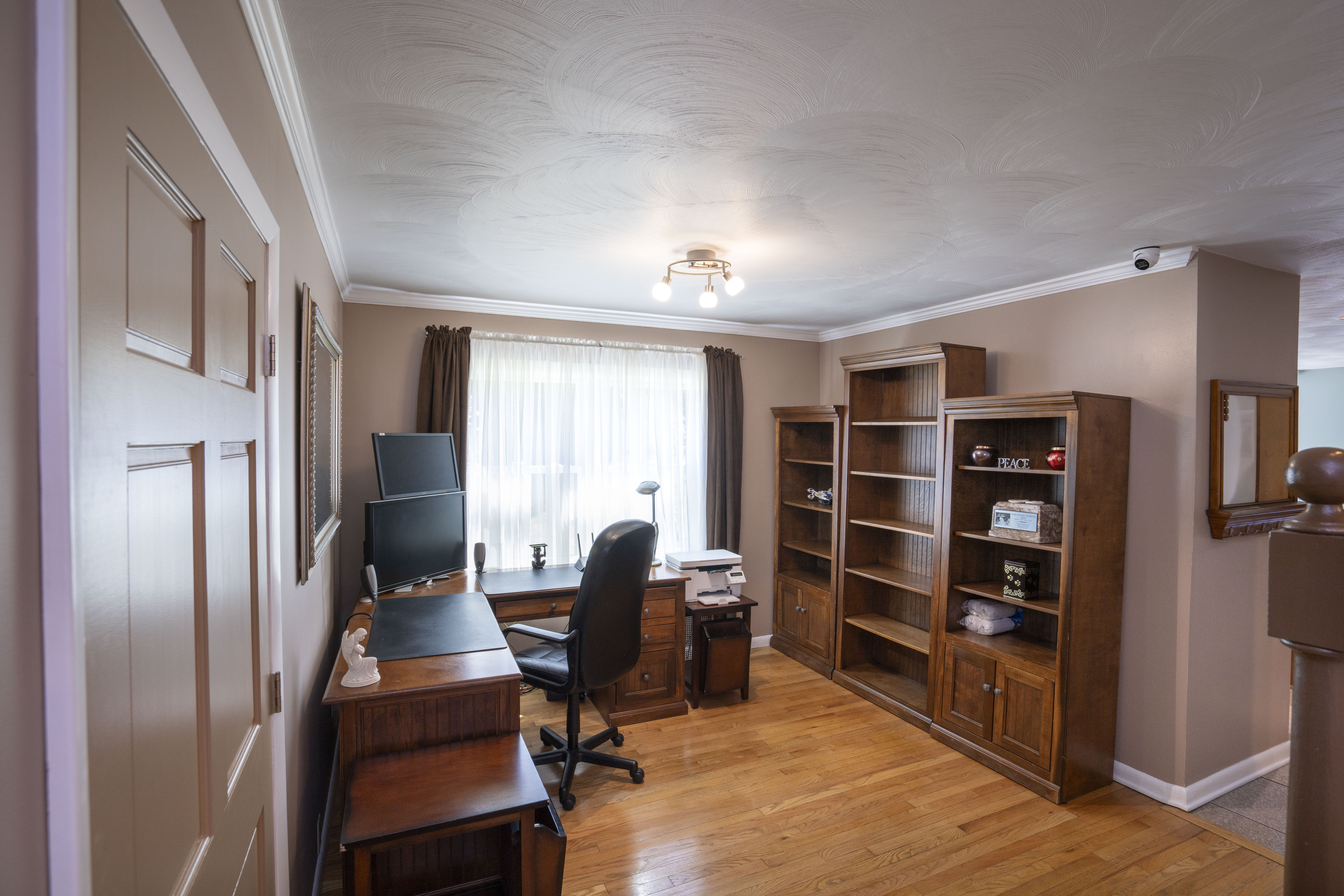 Offering a rare combination of land, privacy, and recreation, this extensively updated residence spans two parcels totaling 1.03 acres within a desirable neighborhood setting in Forest Manor. The interior is defined by generous proportions and a thoughtful layout that supports both daily life and entertaining. The main living spaces unfold with ease—anchored by a well-appointed kitchen with breakfast nook, a formal dining room with gas fireplace, and an expansive family room that opens to a covered deck overlooking the grounds. Hardwood and tile flooring extend throughout, reinforcing a clean, cohesive aesthetic. A private office and an oversized main-level room provide flexibility for guests or additional living space, while the upper level offers four bedrooms, including a primary suite with walk-in closet and en-suite bath. A secondary bath features a walk-in wraparound shower, adding a level of finish not often found in comparable homes. The outdoor setting distinguishes the property. A fenced section off the patio offers a defined space for everyday use, complemented by a stone fire pit. The additional parcel introduces a sense of openness and separation, while a full tennis court with dual basketball hoops creates a rare recreational amenity that elevates the property beyond the typical. The finished lower level adds further versatility, offering space for recreation, fitness, or media, along with a bonus room and dedicated laundry area. Nearly the entire home was updated in 2017, including the roof. A circular driveway and attached garage complete the offering. A distinctive property offering scale, flexibility, and amenities rarely found together—thoughtfully updated and well suited for modern living. Buyer to verify all square footage.