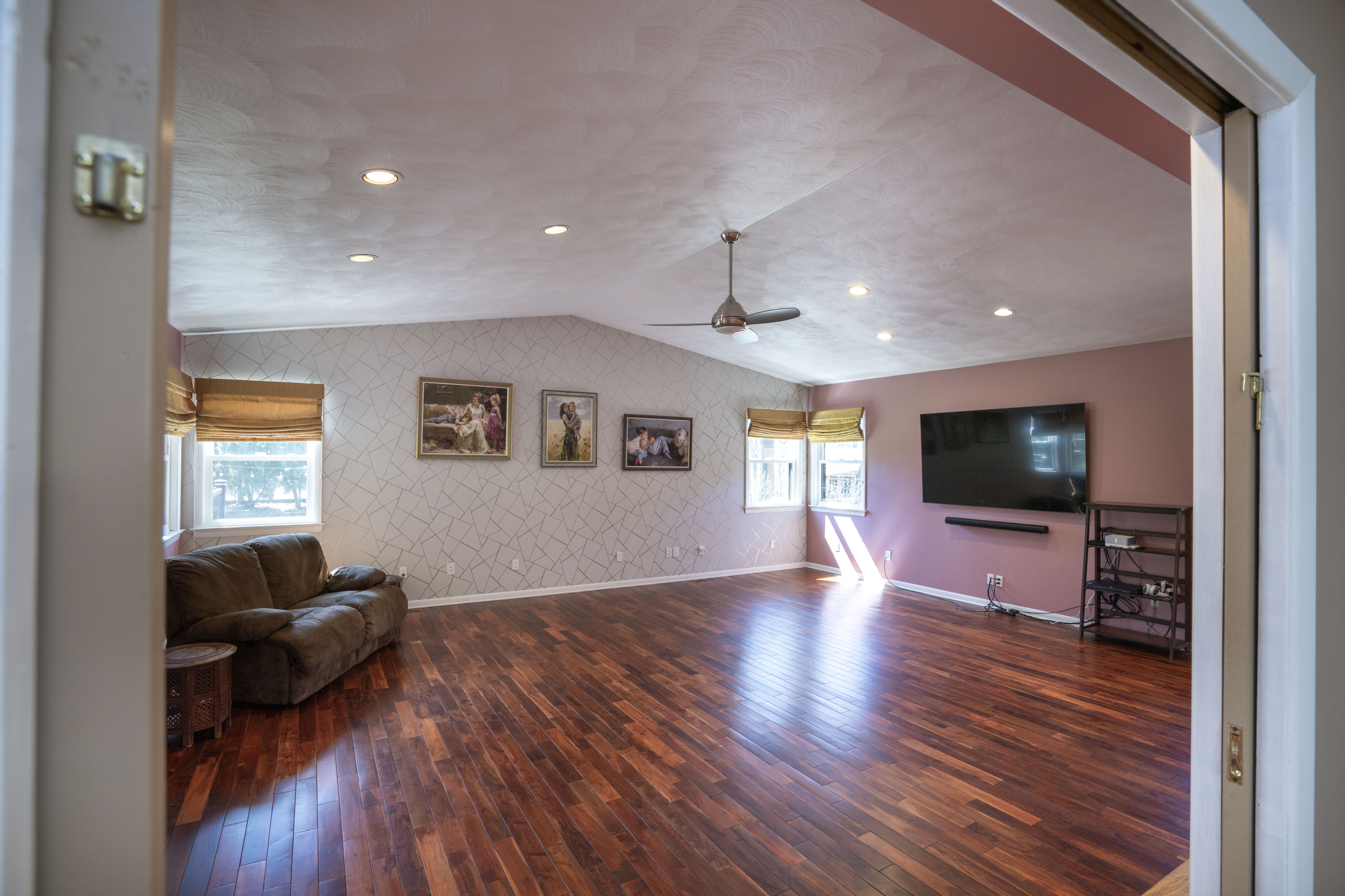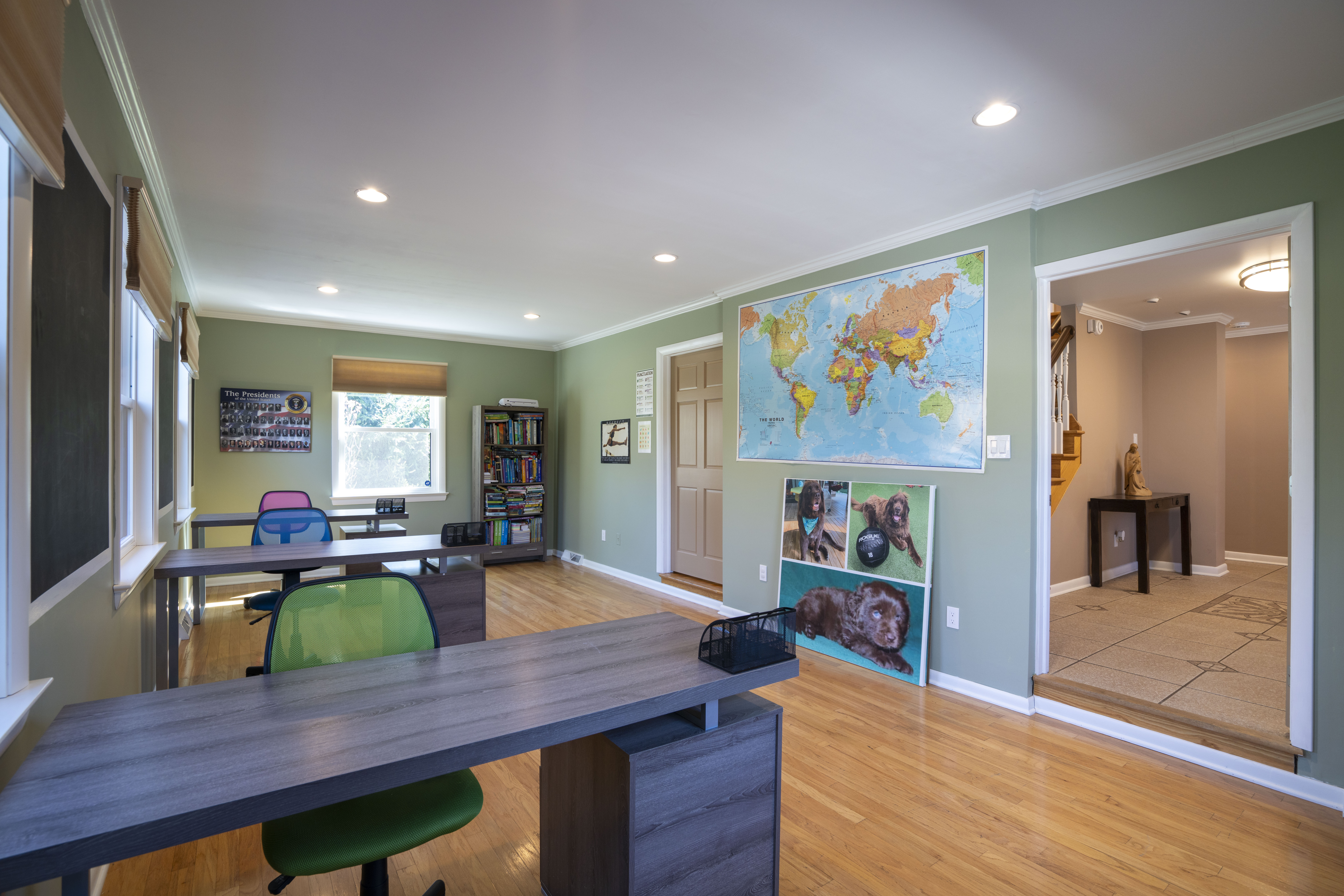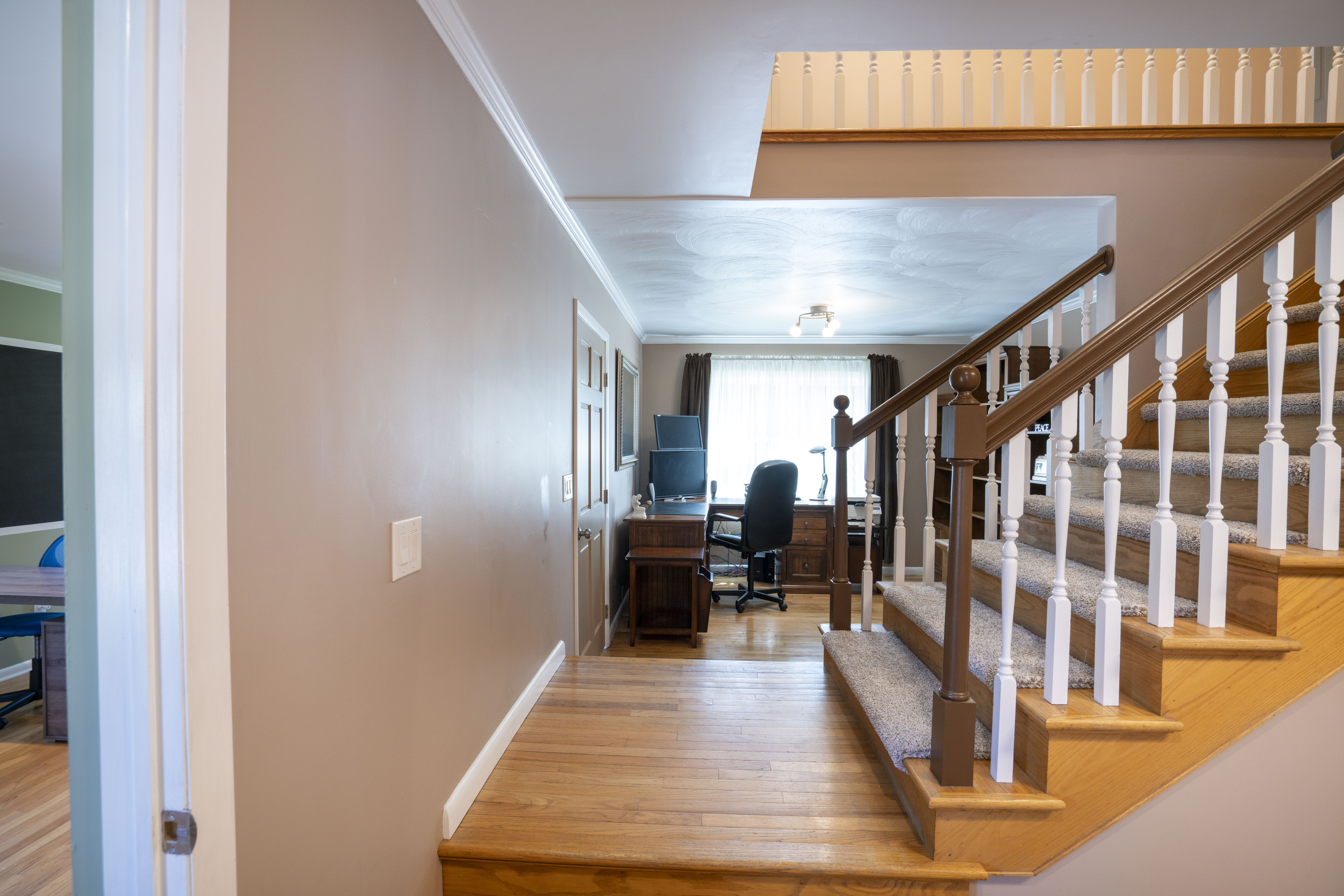Offering a rare combination of land, privacy, and recreation, this extensively updated residence spans two parcels totaling 1.03 acres within a desirable neighborhood setting in Forest Manor. The interior is defined by generous proportions and a thoughtful layout that supports both daily life and entertaining. The main living spaces unfold with ease—anchored by a well-appointed kitchen with breakfast nook, a formal dining room with gas fireplace, and an expansive family room that opens to a covered deck overlooking the grounds. Hardwood and tile flooring extend throughout, reinforcing a clean, cohesive aesthetic. A private office and an oversized main-level room provide flexibility for guests or additional living space, while the upper level offers four bedrooms, including a primary suite with walk-in closet and en-suite bath. A secondary bath features a walk-in wraparound shower, adding a level of finish not often found in comparable homes. The outdoor setting distinguishes the property. A fenced section off the patio offers a defined space for everyday use, complemented by a stone fire pit. The additional parcel introduces a sense of openness and separation, while a full tennis court with dual basketball hoops creates a rare recreational amenity that elevates the property beyond the typical. The finished lower level adds further versatility, offering space for recreation, fitness, or media, along with a bonus room and dedicated laundry area. Nearly the entire home was updated in 2017, including the roof. A circular driveway and attached garage complete the offering. A distinctive property offering scale, flexibility, and amenities rarely found together—thoughtfully updated and well suited for modern living. Buyer to verify all square footage.