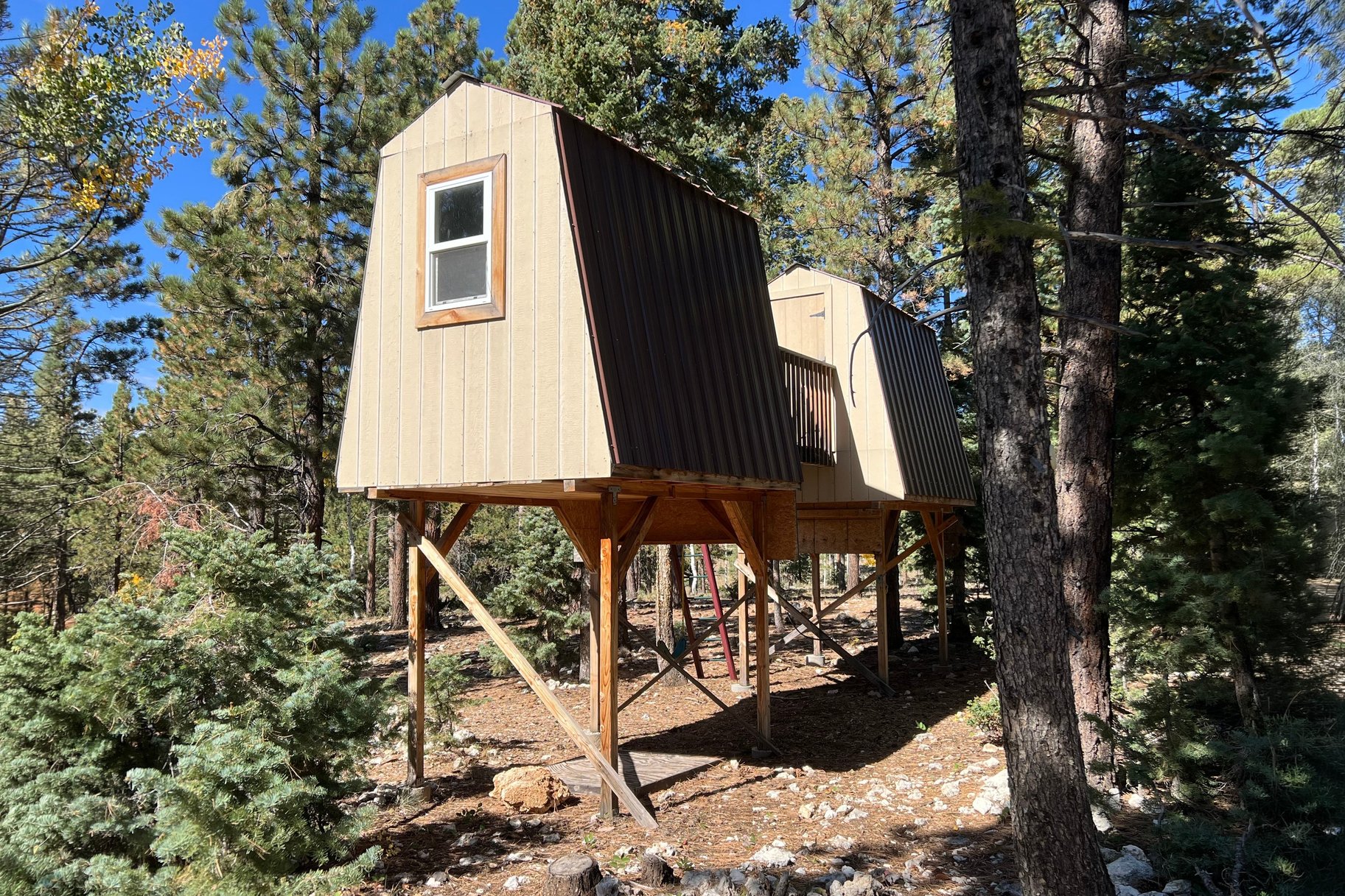 The property invites both relaxation and creativity, featuring a cozy detached 12x16 shed ideal for a studio, workshop, or flexible use because of it's natural light from windows and wood flooring and insulation. Two elevated treehouse-style cabins add a unique and memorable element, offering additional space for a variety of uses. There is also a bonus extra 12 x 16 shed that can be used for storage.