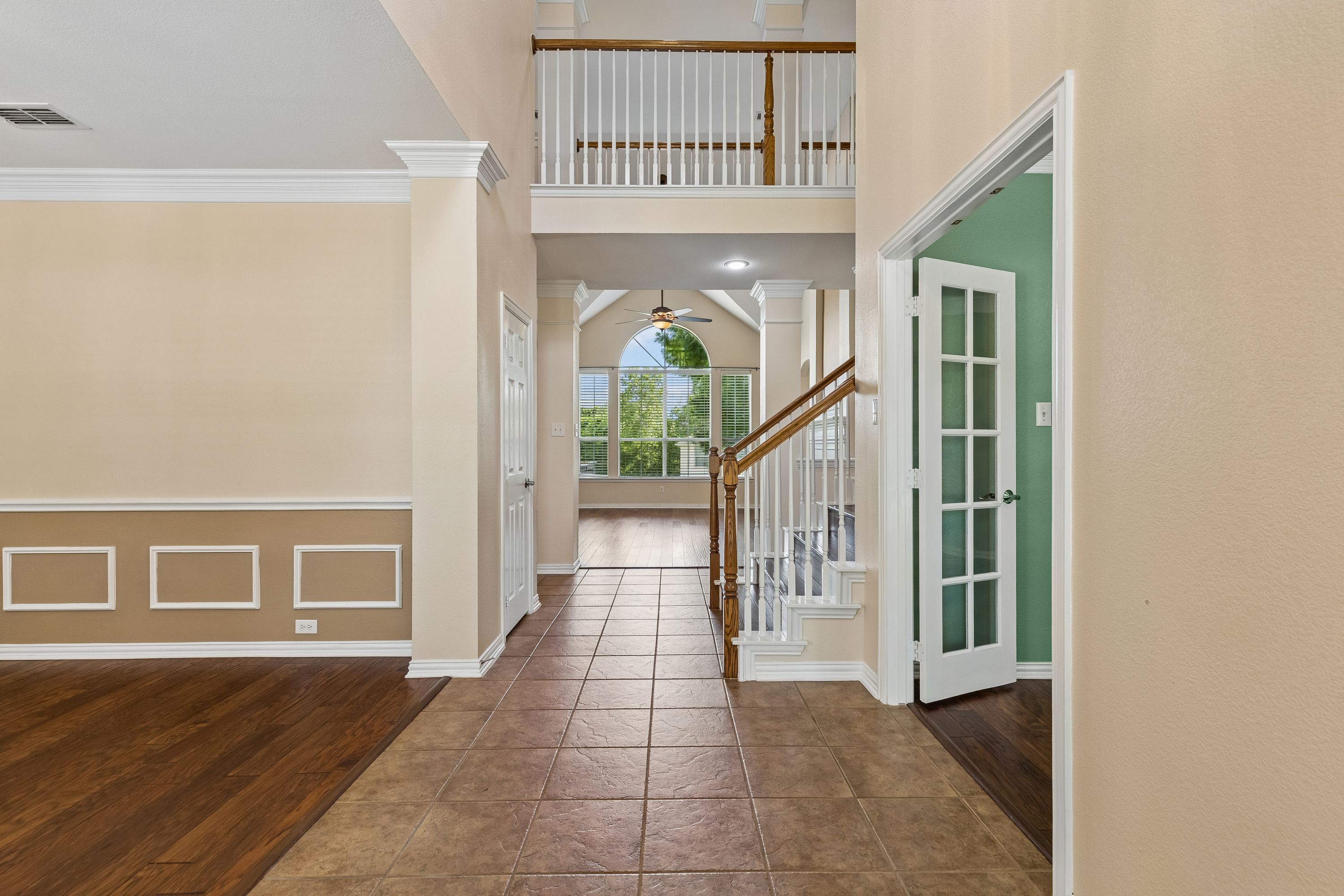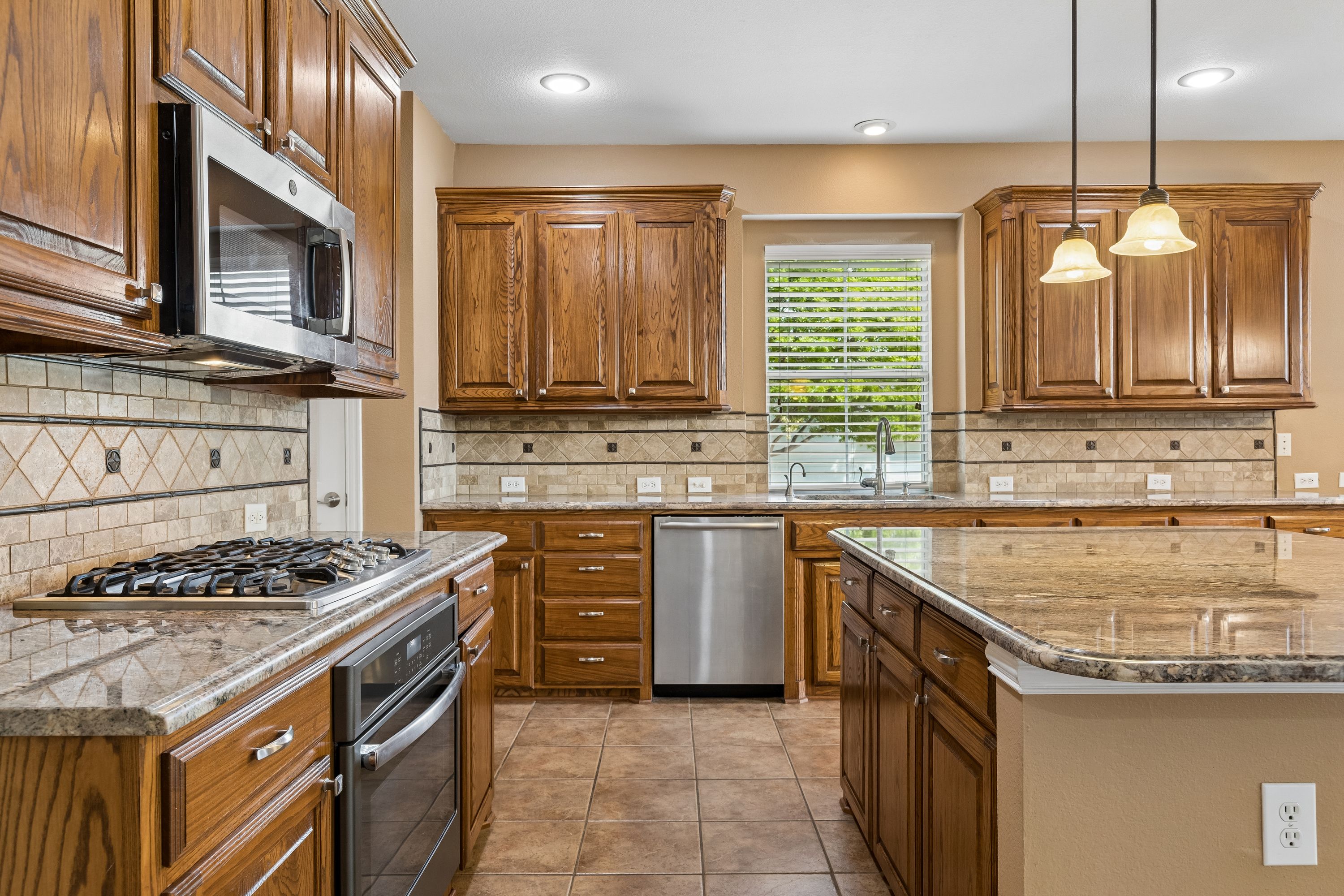 A rare opportunity in the highly sought after HomeTown community, zoned to Walker Creek Elementary, 8120 Bridge Street offers a seamless blend of charm, space and an effortless lifestyle in the heart of North Richland Hills. Perfectly positioned, this five bedroom residence welcomes you with a timeless front porch, an invitation to slow down, unwind and connect with the neighborhoods walkable, small town feel.Inside, the home balances comfort and versatility with thoughtfully designed living spaces. The kitchen is both beautiful and functional, featuring granite countertops, stainless steel appliances, and a gas cooktop, perfect for everyday living and entertaining alike. A standout feature unique to this home is the 400+ square feet of finished bonus space above the garage, offering endless possibilities as a game room, creative studio, or private retreat, bringing the total living space to over 3,200 square feet. Completely carpet free, the home provides a clean, low maintenance foundation for modern living, and a tankless water heater adds an extra layer of efficiency and everyday comfort.Step outside to a generously sized backyard, ready for quiet evenings, lively gatherings or your own personalized outdoor escape.Life in HomeTown is about connection and convenience, with over 25 acres of parks, lakes, scenic trails, and green spaces just moments away. Enjoy easy access to the NRH Centre, the local library, and a quick five minute drive to the TexRail station—bringing the entire metroplex within reach.