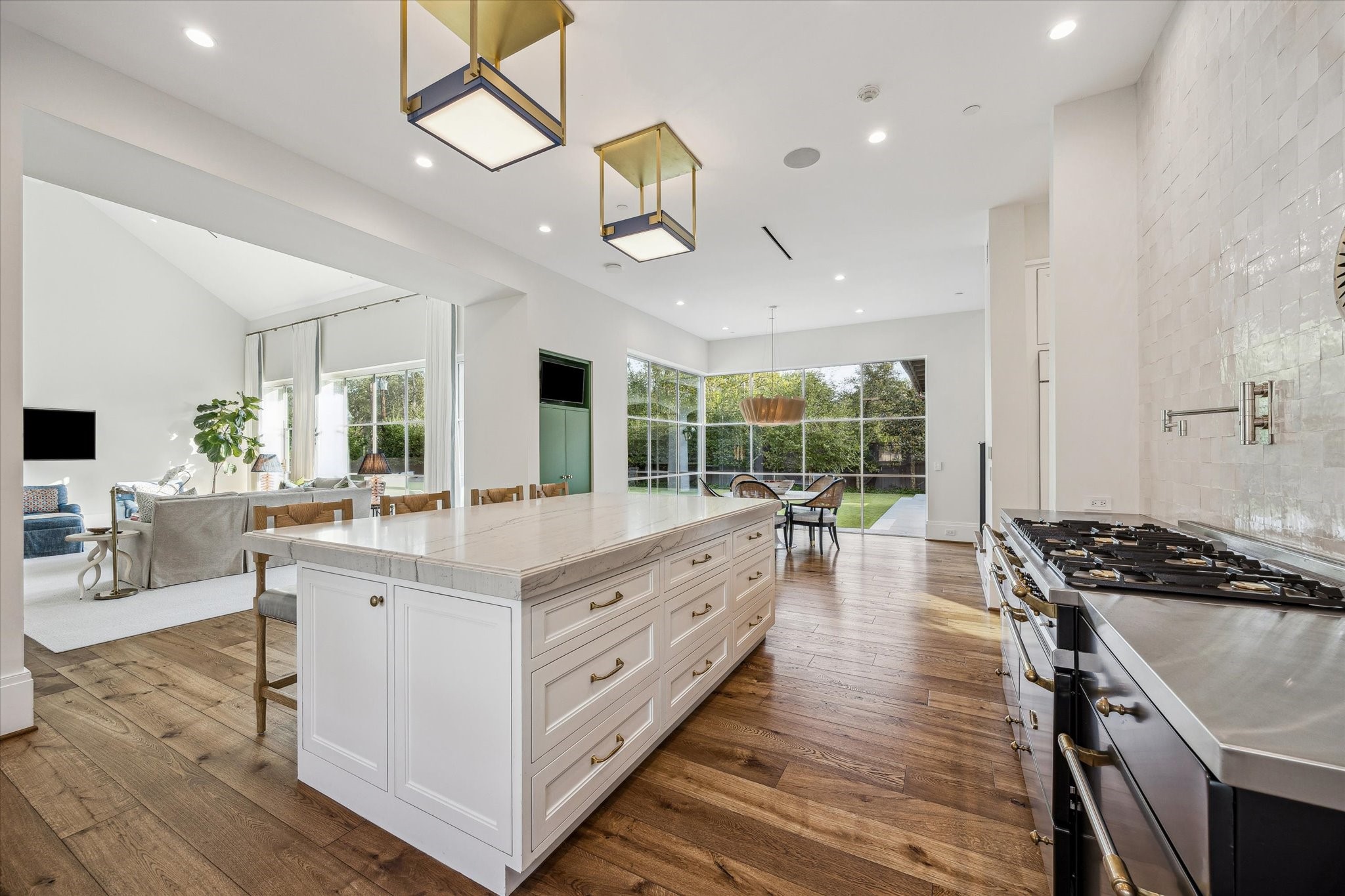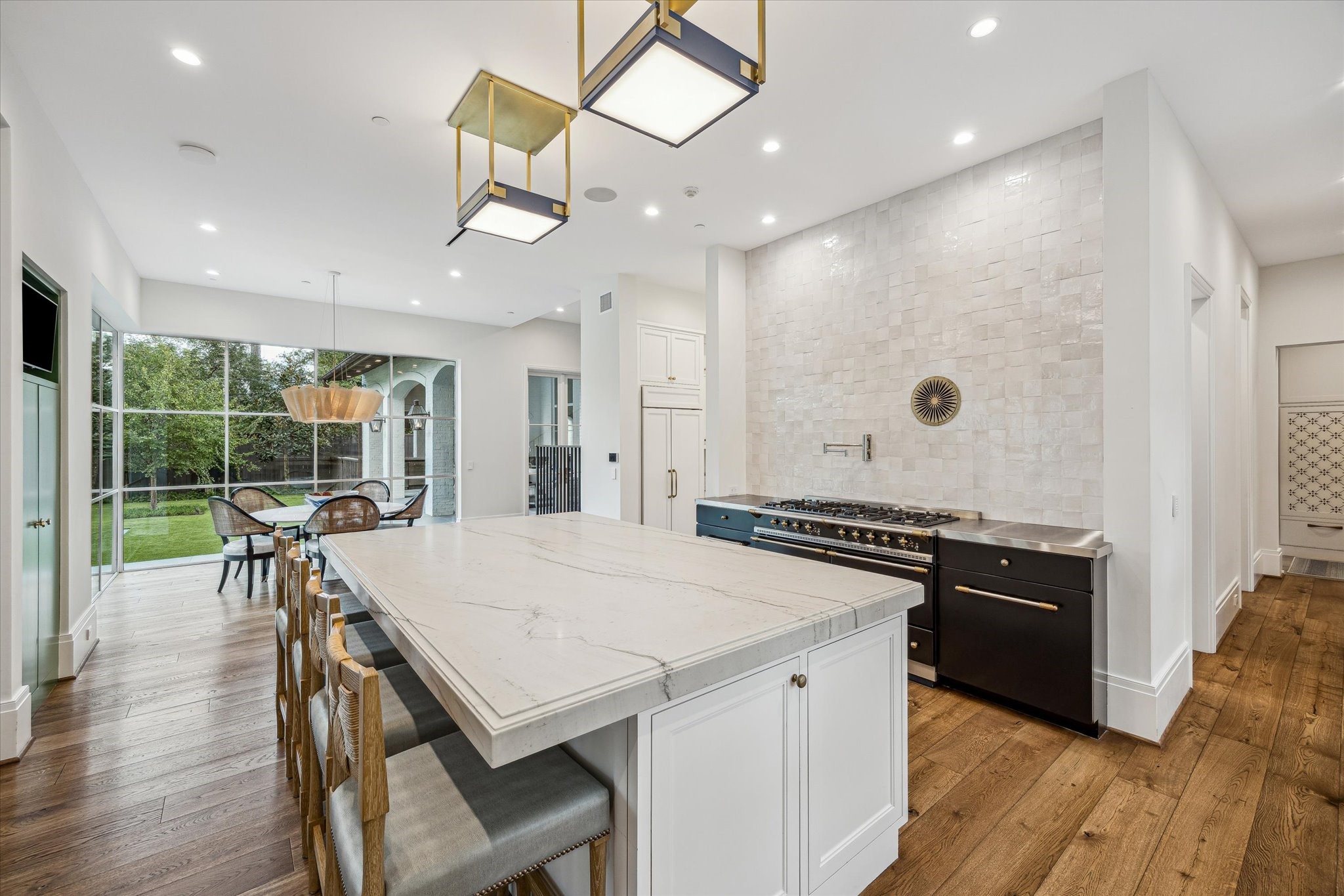 Coming Soon - An extraordinary Piney Point estate, designed by Robert Dame, is situated on a village-acre lot and offers 8,213 square feet of thoughtfully designed living space. The home features five bedrooms, five full bathrooms, and two half baths. The formal dining room showcases upholstered walls and ceilings, an antique chandelier, and a temperature-controlled 664-bottle wine cellar. The chef’s kitchen centers on a Mont Blanc quartzite island and includes a Lacanche range with double ovens, Sub-Zero refrigerator and freezer, and two Miele dishwashers. The first-floor primary suite offers a marble bathroom with separate vanities and a soaking tub. A game room features cathedral ceilings and opens to a covered loggia with fireplace and grill overlooking the backyard. The outdoor space includes a plaster pool with spa and swim jets. Additional highlights include a paneled study, golf simulator, and exercise room.