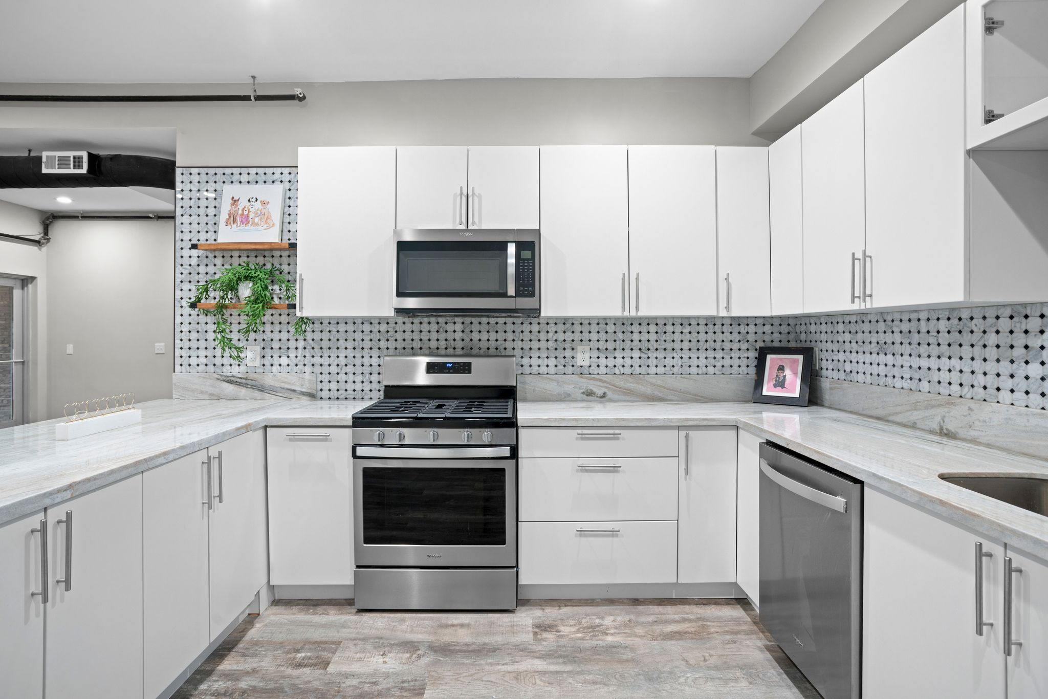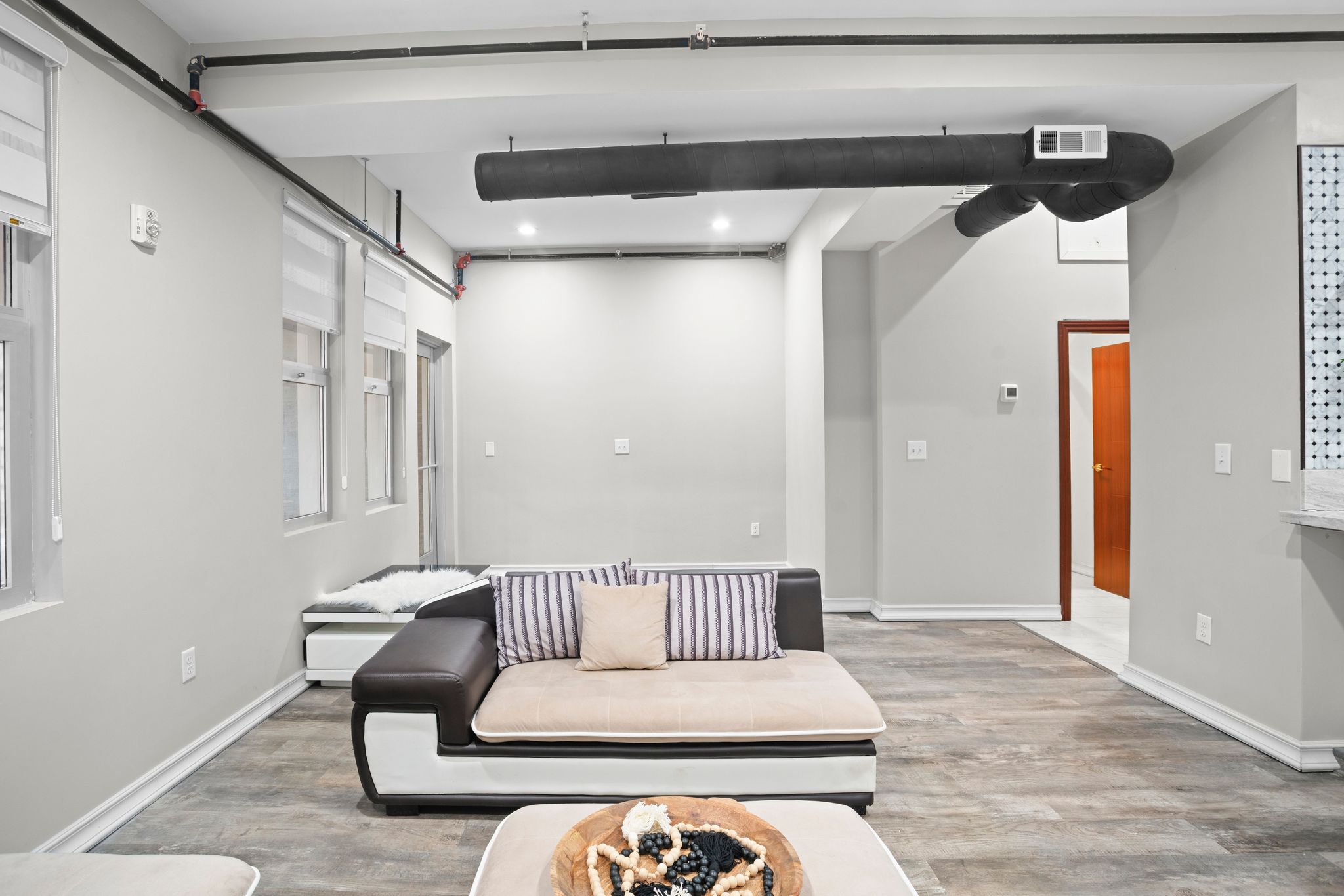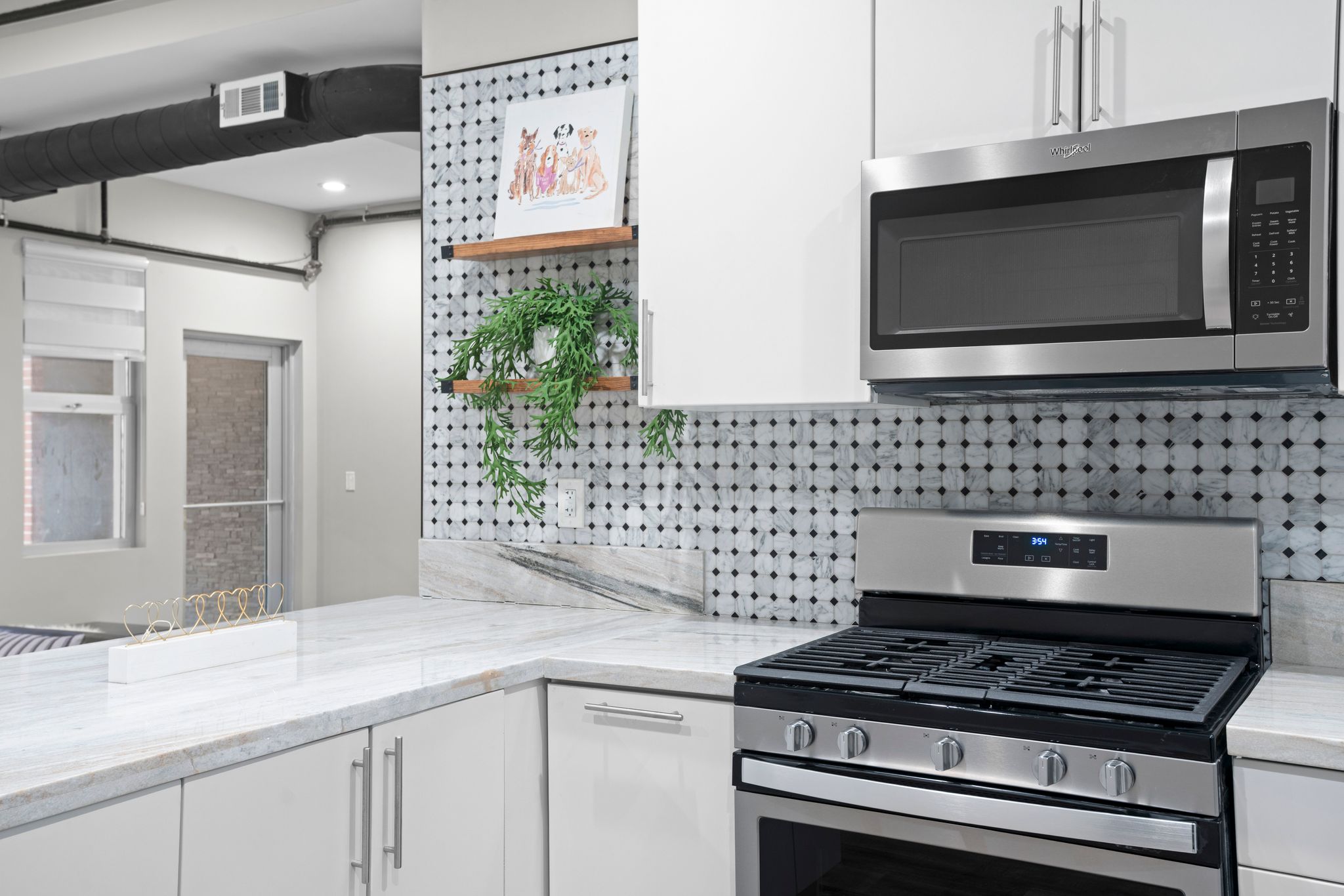 Welcome to this beautifully renovated one-bedroom, one-bath condo in Pittsburgh’s vibrant South Side neighborhood. This stylish unit features a bright, open-concept layout with modern industrial touches, including exposed 10-ft ceilings, recessed lighting, and sleek luxury vinyl plank flooring throughout. The contemporary kitchen is a true highlight, offering ample cabinetry, stainless steel appliances, quartz-style countertops, a custom backsplash, and seating—perfect for entertaining or casual dining. The spacious living area flows seamlessly from the kitchen and is filled with natural light from oversized windows. The bedroom is generously sized with ample closet space and room for a king bed and a sitting area. The spa-inspired bathroom boasts a glass-enclosed walk-in shower with a marble tiled bench seat, modern fixtures, and an LED mirror above the vanity. Additional features include in-unit laundry and a private gated porch to enjoy the outdoors. Located just steps from South Side’s restaurants, shops, nightlife, and riverfront trails, with easy access to downtown and major roadways. Move-in ready and full of style—this is urban living at its best.