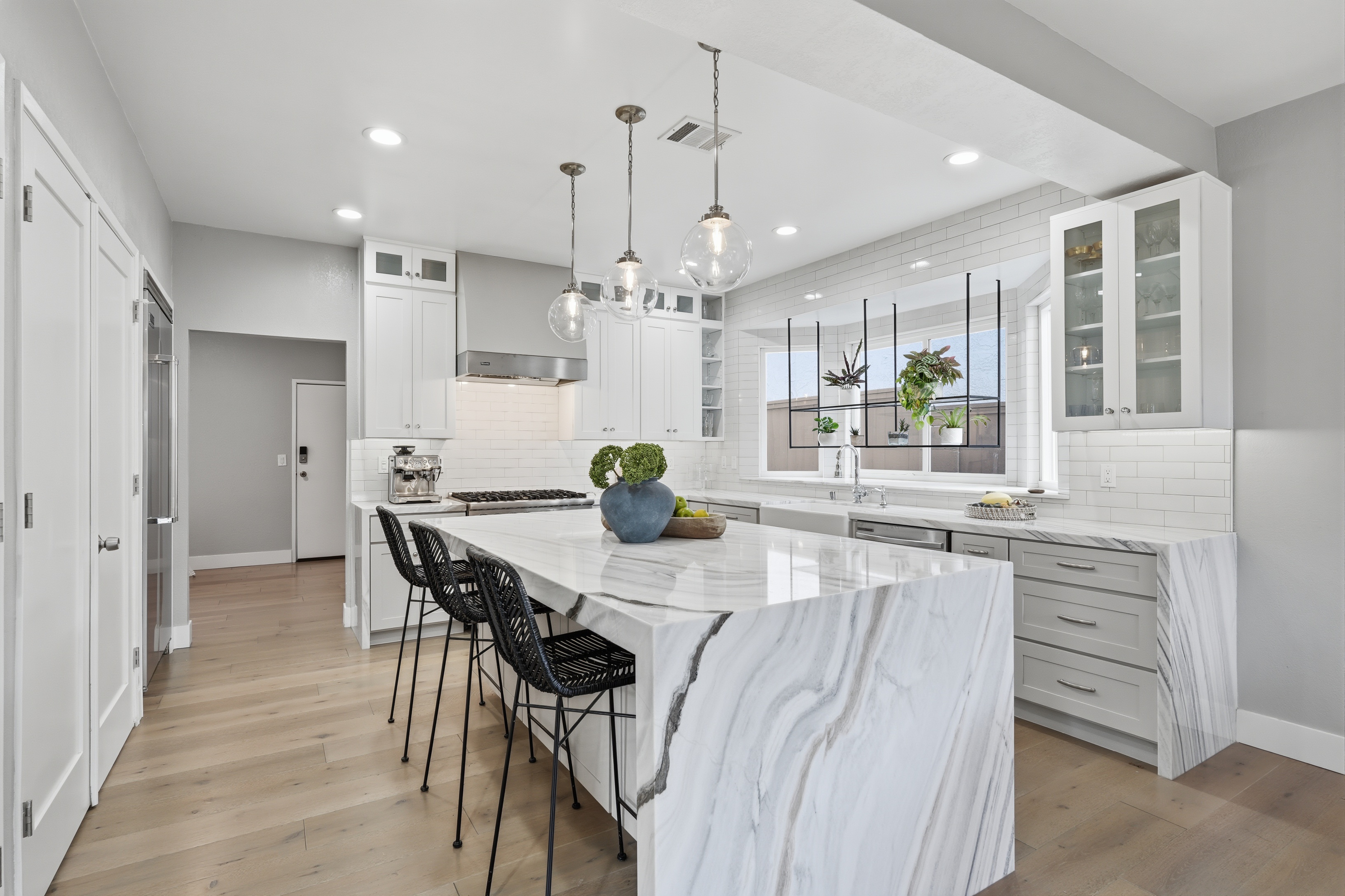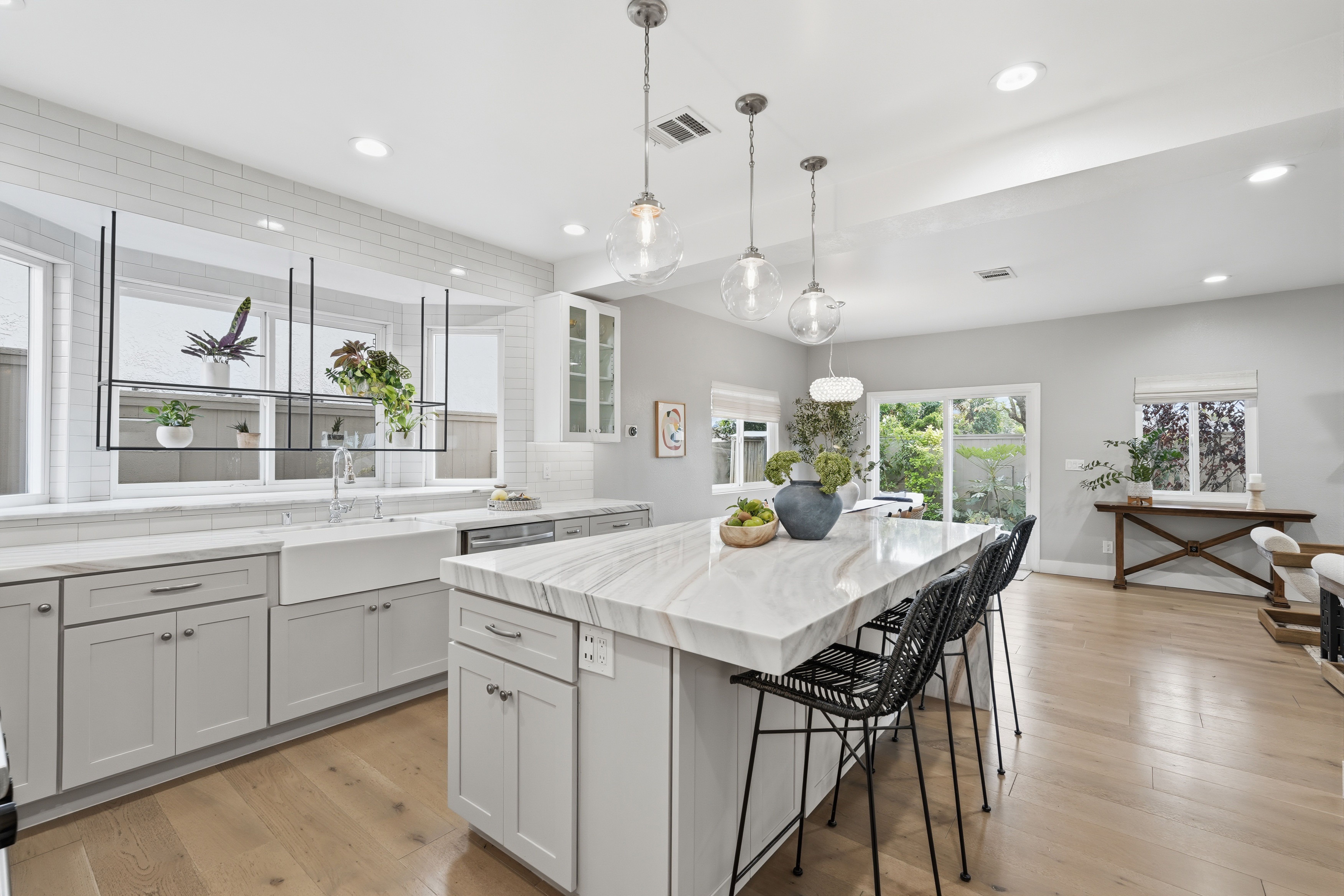 Nestled in the vibrant community of North Redondo Beach, this completely remodeled townhome offers a stunning blend of modern updates and timeless elegance. Spanning 2,137 square feet (BTV), this gorgeous home features 4 spacious bedrooms, 3 luxurious bathrooms, two family rooms. The gourmet kitchen is a chef’s dream, equipped with high-end stainless-steel appliances, sleek Bianco Lasa marble countertops, ample cabinetry, and a center island that combines functionality with elegance. Whether you’re hosting a formal dinner or enjoying a casual meal with loved ones, the adjacent dining area provides the perfect space for creating lasting memories. Ascending the stairs, you’ll discover the luxurious primary suite, a true sanctuary of tranquility. This generously sized suite boasts two walk-in closets and a private en-suite bathroom with a spa-like atmosphere, complete with a soaking tub and a separate glass-enclosed shower. Three additional well-appointed bedrooms, each with its own unique charm, a shared bathroom with modern fixtures and finishes, and a large spacious deck for relaxing and soaking up the California sun complete the upper level of this exceptional townhome. Outside, a beautifully landscaped private patio awaits, ideal for enjoying your morning coffee or hosting intimate gatherings. A turnkey South Bay home located near Manhattan Beach and Hermosa Beach in the heart of North Redondo Beach, this home offers close proximity to award-winning schools, local parks, shopping, dining, and some of the South Bay’s best beaches. With easy access to major freeways and nearby employment hubs, it’s a rare opportunity to enjoy both lifestyle and convenience in one of the area’s most sought-after neighborhoods.