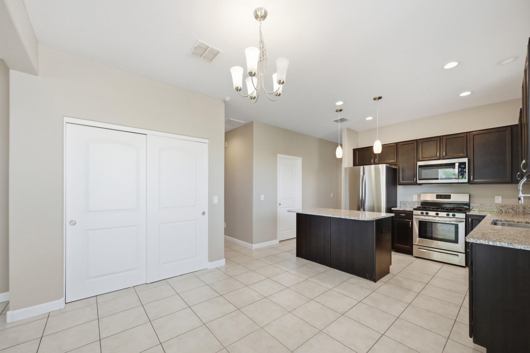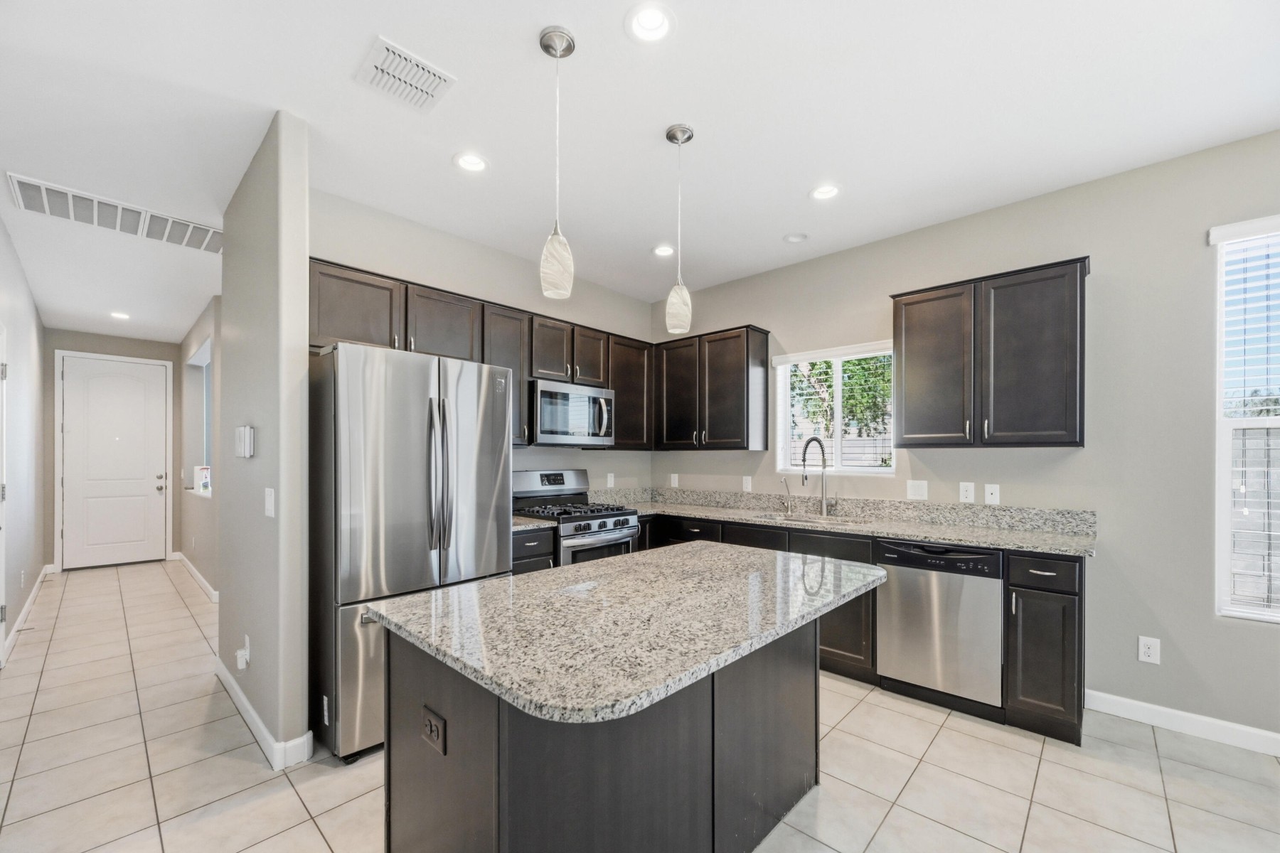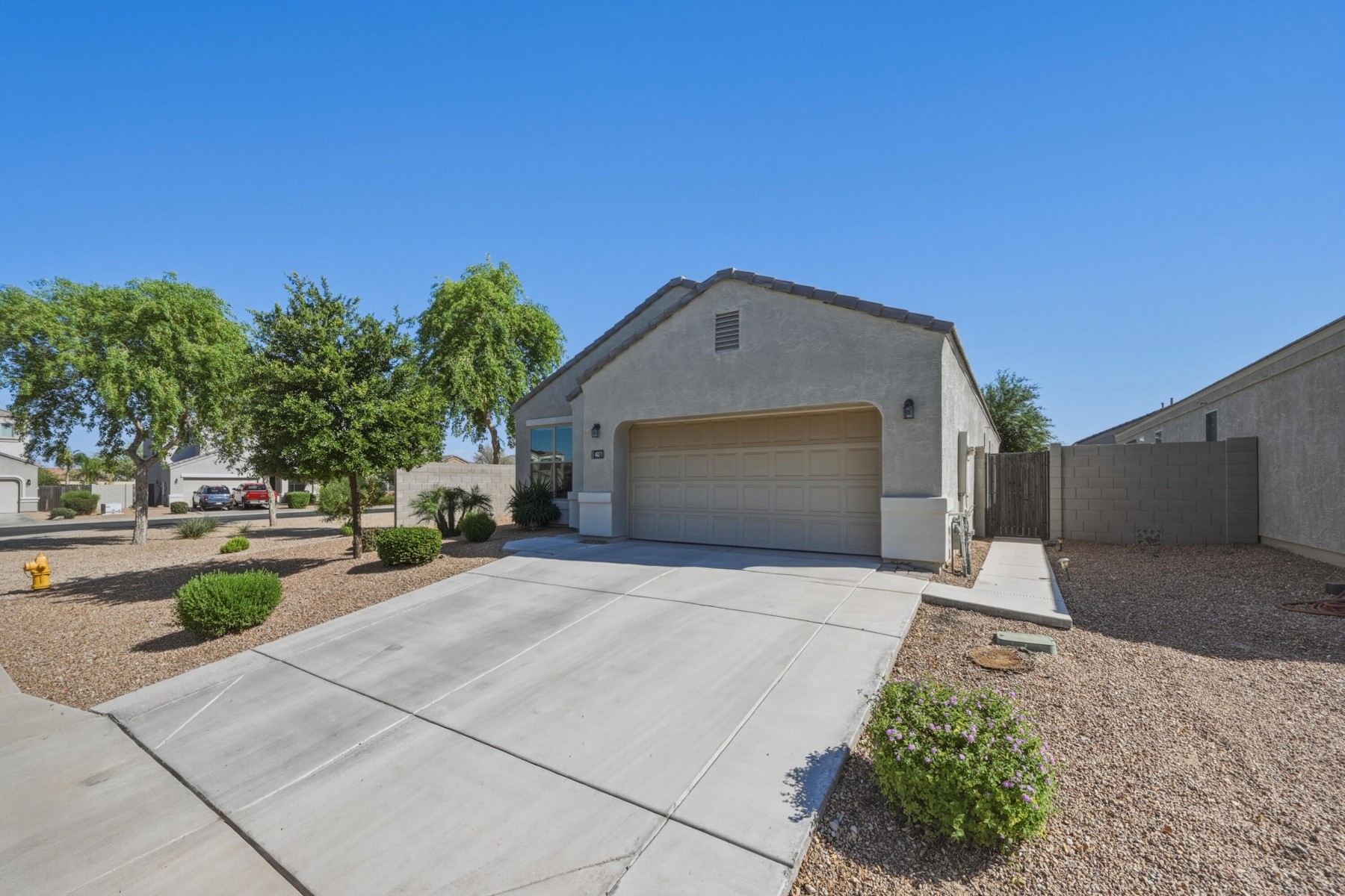 Living the Sweet Life in San Tan Heights...Welcome to this beautiful home offering an exceptional floorplan w/ 4 bedrooms, 2.5 bathrooms, and a 2-car garage, perfectly situated on a desirable corner lot. From the moment you arrive, you'll notice the charming curb appeal and inviting presence. Step inside to a light-filled interior featuring fresh paint, brand-new carpet, and a modern neutral palette throughout. The home is enhanced with recessed lighting and ceiling fans in the great room and all bedrooms for year-round comfort. The open-concept layout is ideal for both everyday living and entertaining. The gourmet kitchen showcases granite countertops, rich espresso cabinetry, a center island with breakfast bar, and eat-in dining area--all flowing seamlessly into the spacious great room Retreat to the luxurious primary suite, complete with a generously sized bedroom and a spa-like bathroom featuring a separate soaking tub, oversized walk-in shower, and a large walk-in closet.The backyard is designed for relaxation and enjoyment, with a covered patio perfectly positioned for shaded living space. The landscaped yard includes pygmy palms, hibiscus, fruit trees, and a sizable side yard offering additional versatility. Residents enjoy access to a wide range of HOA amenities, including a community pool and center, parks and green spaces, playgrounds, and scenic biking and walking trails. Plus, with close proximity to San Tan Mountain Regional Park, outdoor adventure is just moments away.This is a truly exceptional opportunity to enjoy comfort, style, and community living at its finest.