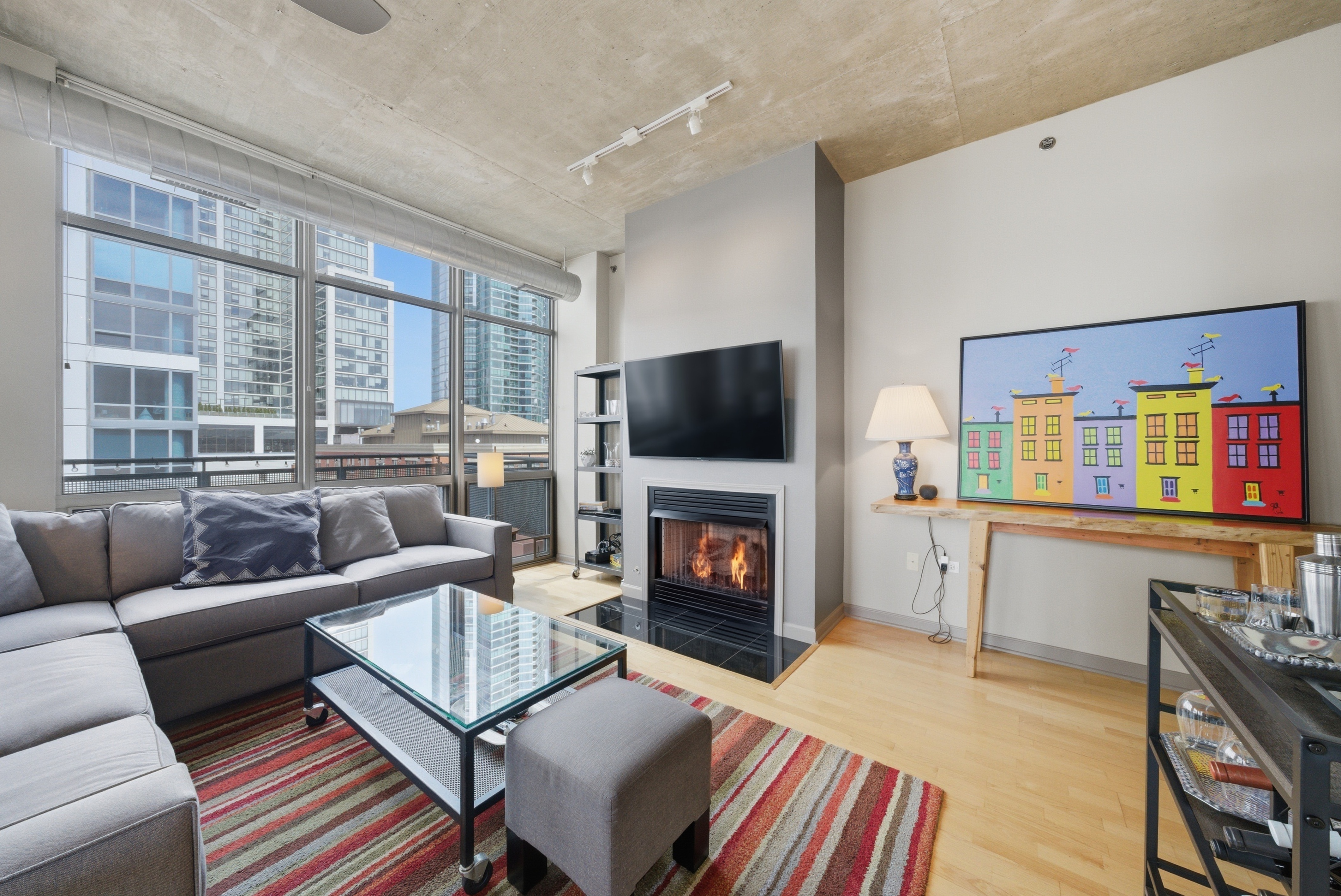 NOW SHOWING! Welcome to your One of a Kind 2 Bed- 2 Bath Museum Park Penthouse Loft, featuring your own 800 square foot PRIVATE TERRACE with stunning Lake and Cityscape views! Soaring floor to ceiling windows in this North West corner lends an abundance of natural light. Other highlights include newer in unit washer and dryer (2024), gas fireplace, Hunter Douglas blinds, and brand-new carpet in both bedrooms. The kitchen features granite countertops, stainless-steel appliances and plenty of storage including full pantry. Museum Park Lofts amenities include a fitness center, full size storage cage and assigned bike rack. Enjoy LOW Assessments and optional access to the Museum Park Clubhouse and Outdoor Pool. The location speaks for itself-steps to the Lakefront, Museum Campus, Grant Park, and Soldier Field. Easy access to major expressways and public transit. Heated Garage Parking available for $35,000. Explore our 3D tour and Video under "Other Media".