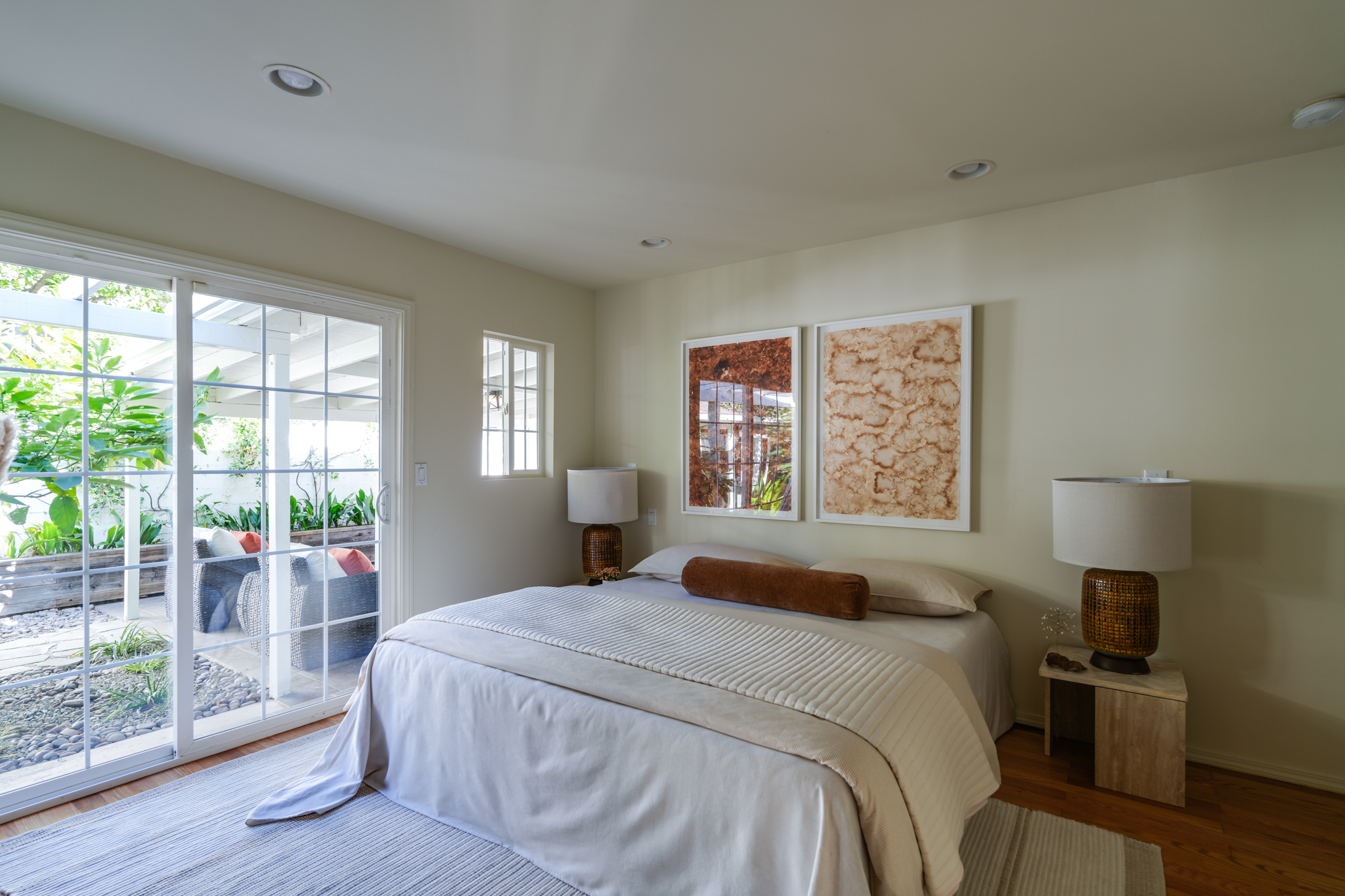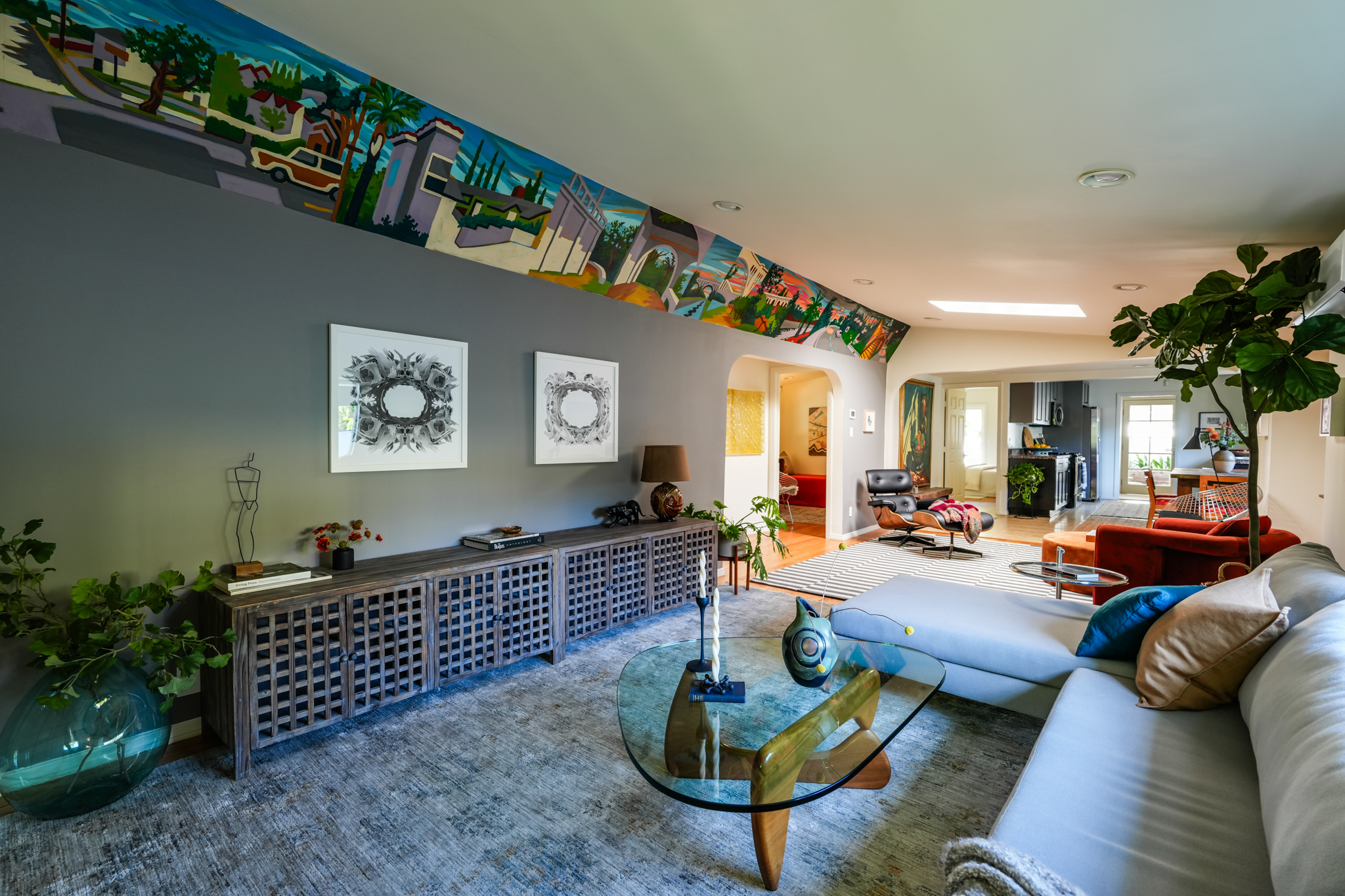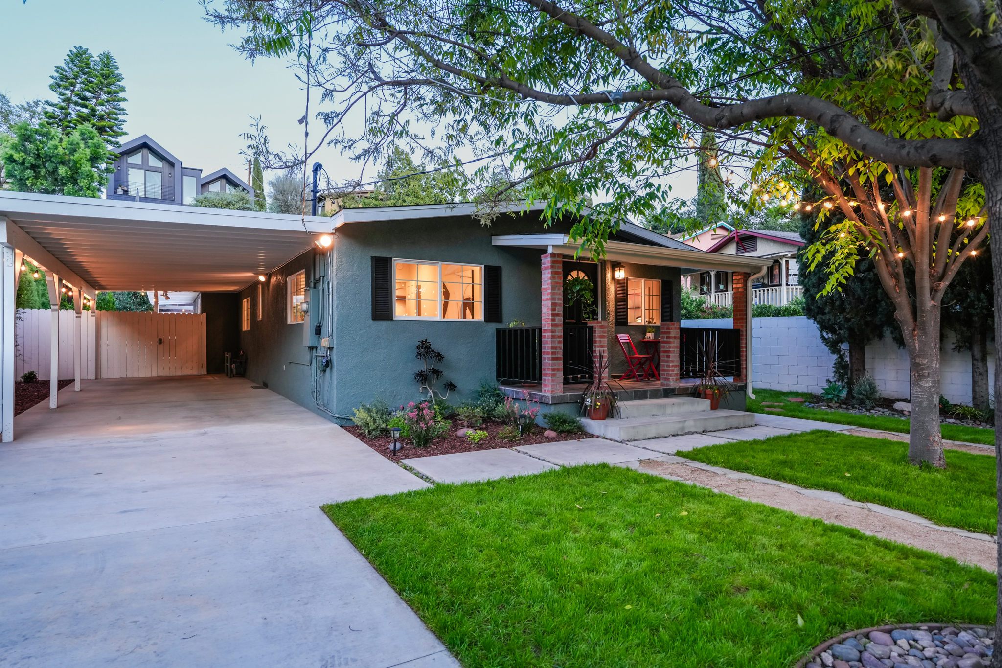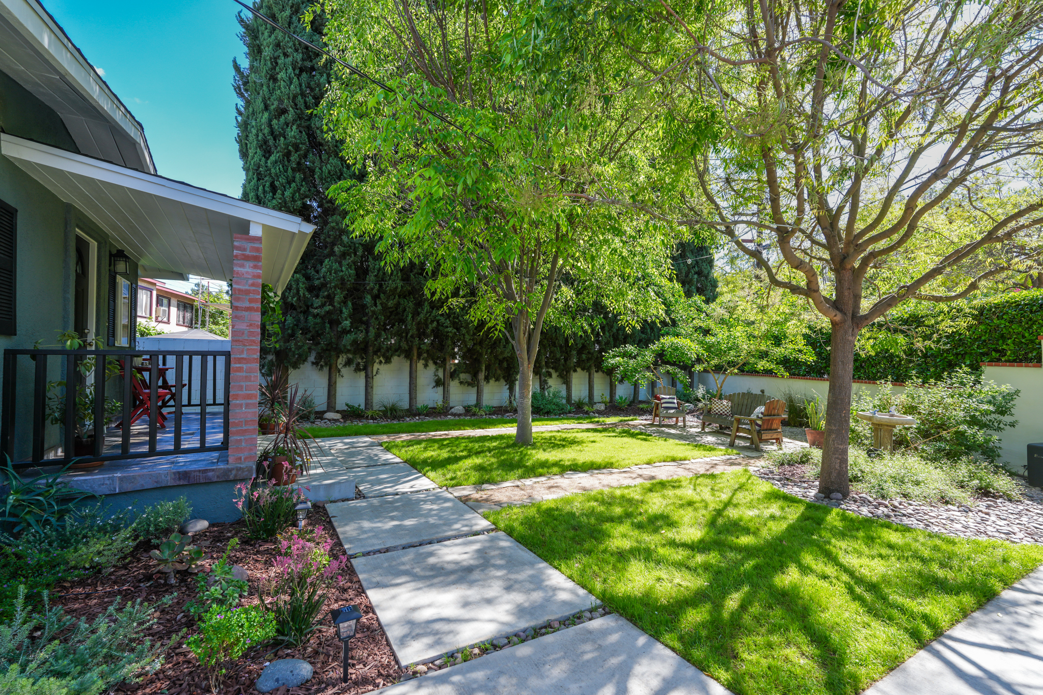 Gated on a quiet cul-de-sac, this eclectic Eagle Rock retreat feels like a hidden garden...lush, private, and quietly magical. Fragrant jasmine, flowering trees, and a row of cypress create a verdant backdrop, while river rock paths and layered plantings unfold across the front, side, and rear grounds. Outdoor spaces are a dream for those with a green thumb: raised beds brimming with vegetables, a vibrant fruit-producing orange tree, and open space to expand, cultivate, or simply enjoy. Mornings are for coffee among the birds; evenings invite al fresco dinners under the stars. Inside, a bright, open floor plan flows with ease, offering connection and flexibility. Multiple living areas create natural zones for gathering, relaxing, or creative pursuits...whether a cozy media area, reading room, or dining area that opens to the kitchen for effortless entertaining. Updated bathrooms, sparkling hardwood floors, and a striking mural add character and style. A rare blend of privacy and accessibility, just moments from Eagle Rock's shops, cafes, and community. Located within sought-after Eagle Rock Junior/Senior High with its acclaimed IB program. Bonus studio in back!