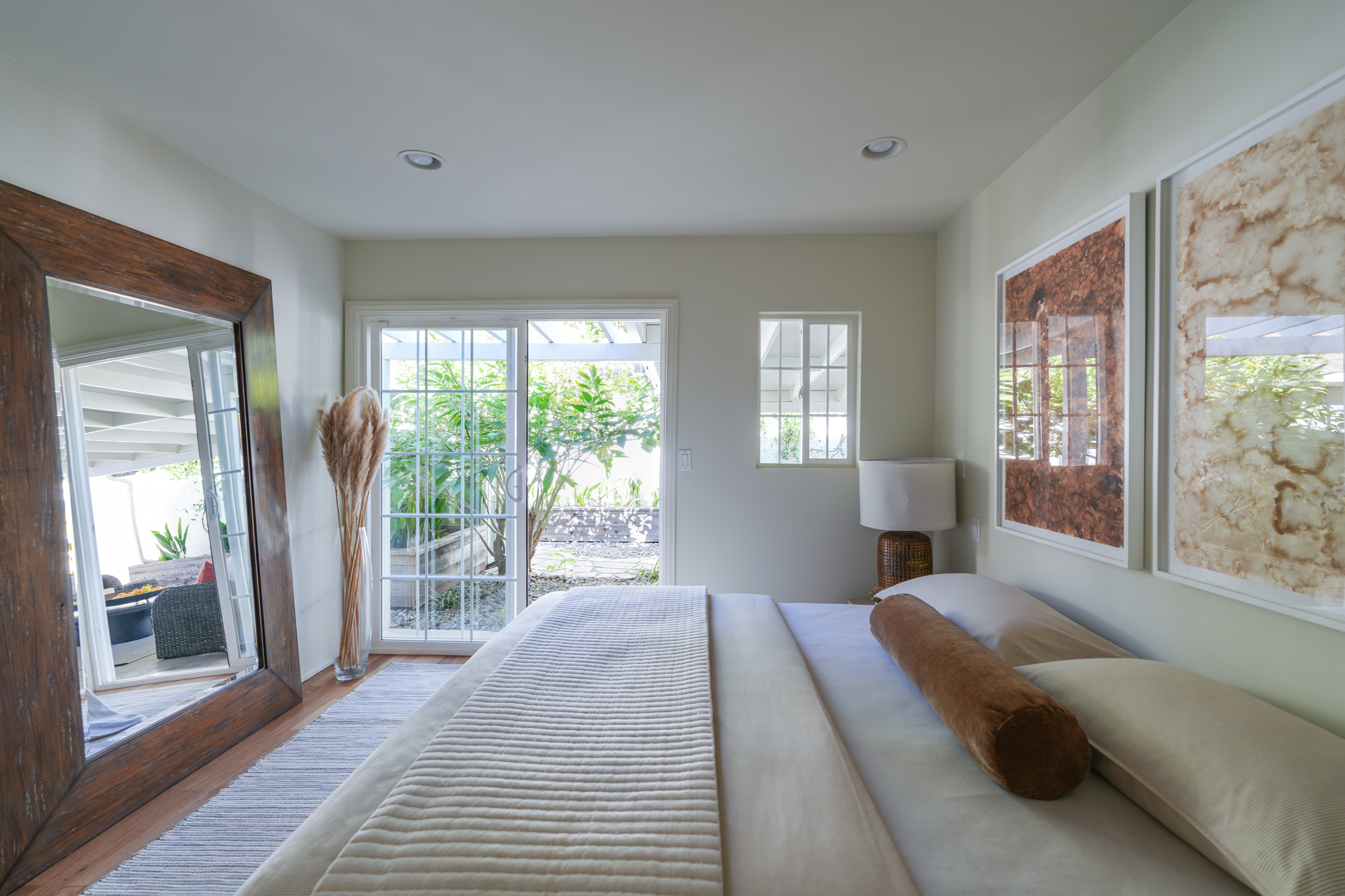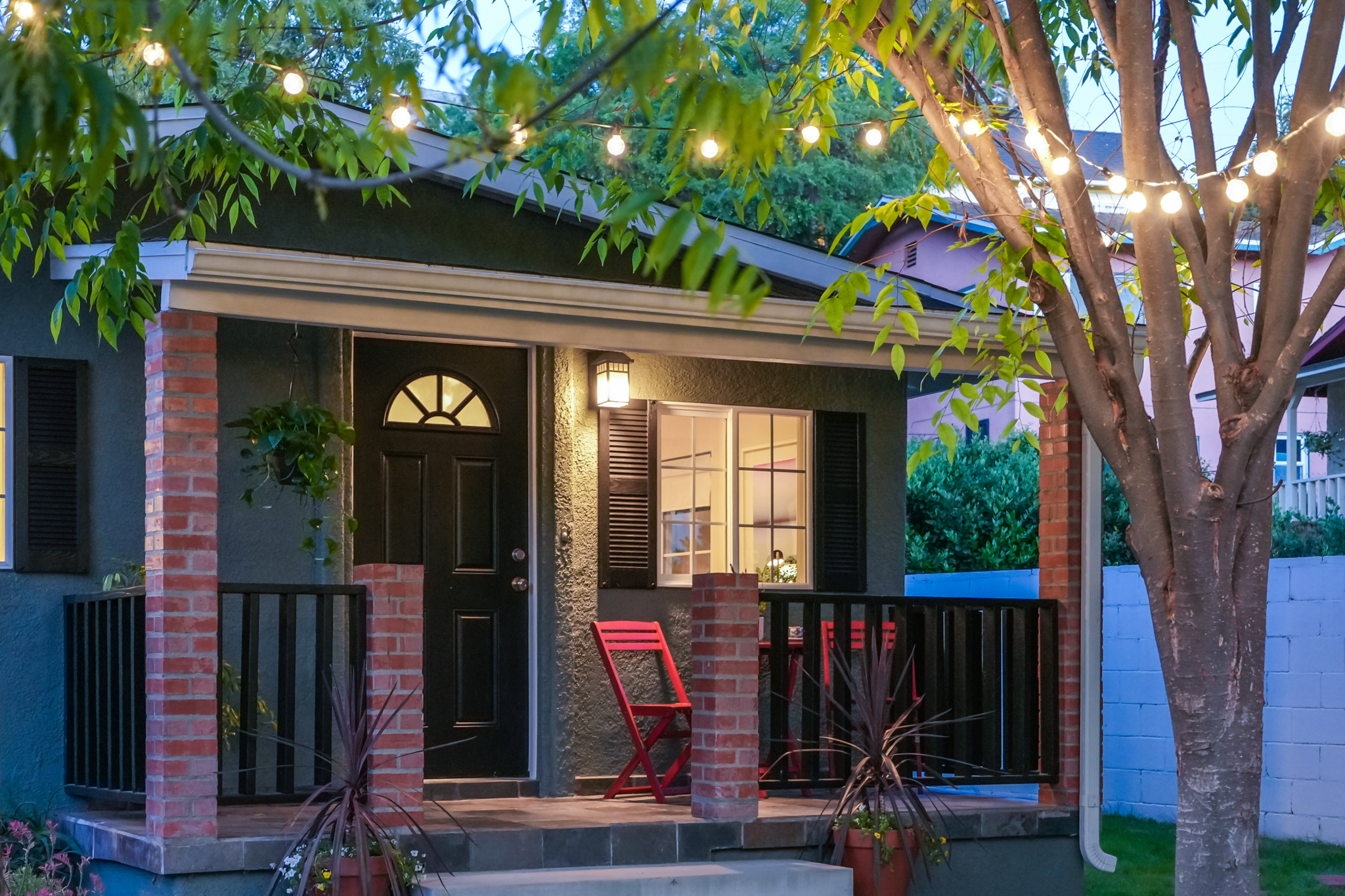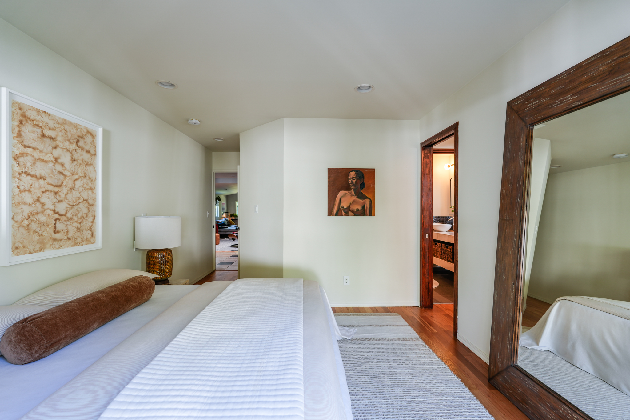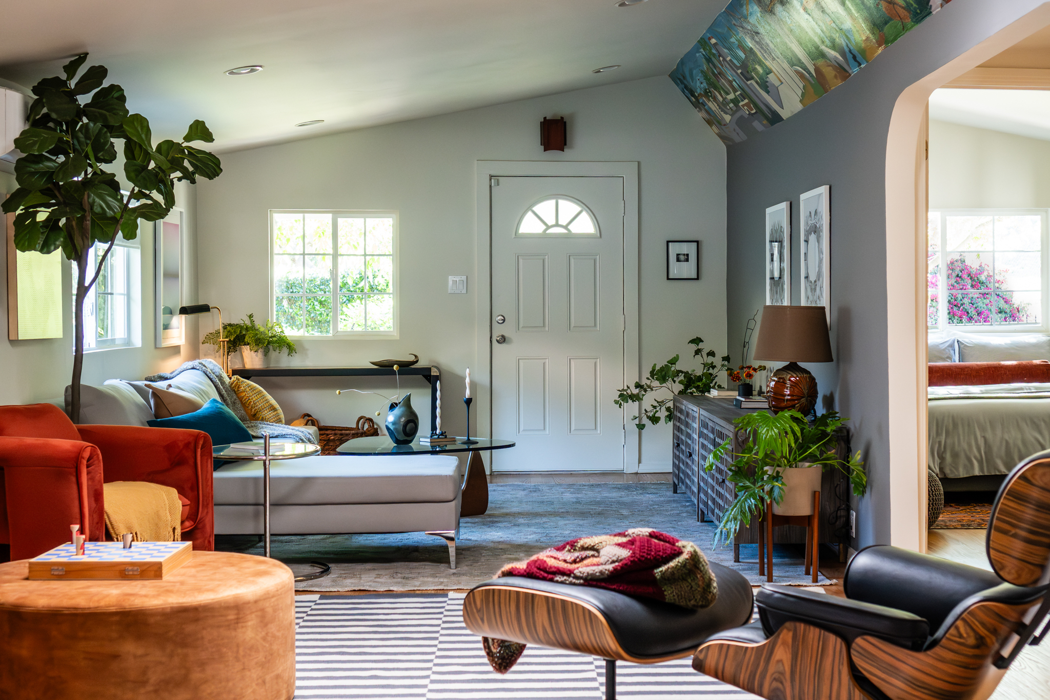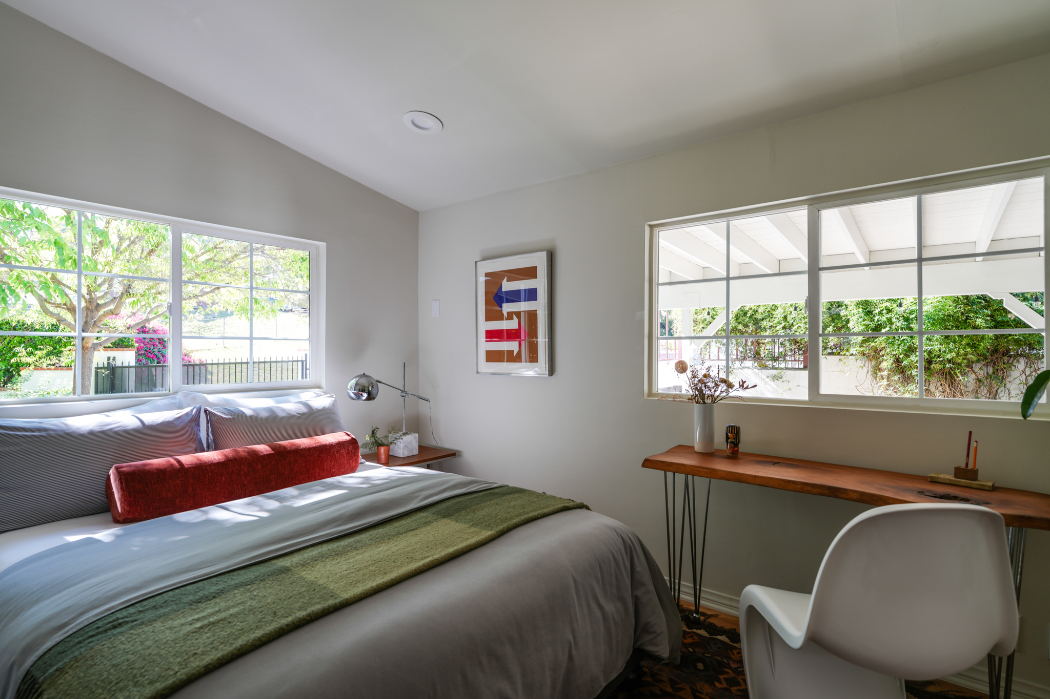 Gated on a quiet cul-de-sac, this eclectic Eagle Rock retreat feels like a hidden garden...lush, private, and quietly magical. Fragrant jasmine, flowering trees, and a row of cypress create a verdant backdrop, while river rock paths and layered plantings unfold across the front, side, and rear grounds. Outdoor spaces are a dream for those with a green thumb: raised beds brimming with vegetables, a vibrant fruit-producing orange tree, and open space to expand, cultivate, or simply enjoy. Mornings are for coffee among the birds; evenings invite al fresco dinners under the stars. Inside, a bright, open floor plan flows with ease, offering connection and flexibility. Multiple living areas create natural zones for gathering, relaxing, or creative pursuits...whether a cozy media area, reading room, or dining area that opens to the kitchen for effortless entertaining. Updated bathrooms, sparkling hardwood floors, and a striking mural add character and style. A rare blend of privacy and accessibility, just moments from Eagle Rock's shops, cafes, and community. Located within sought-after Eagle Rock Junior/Senior High with its acclaimed IB program. Bonus studio in back!