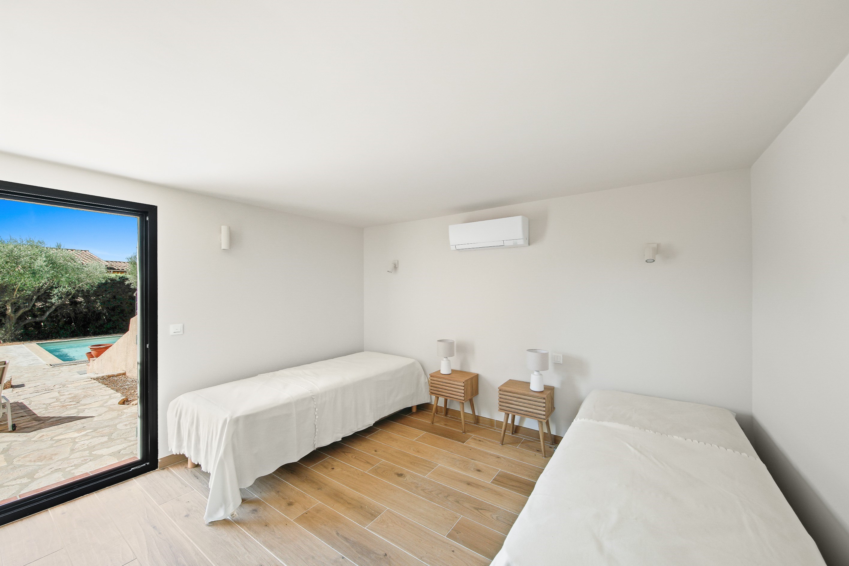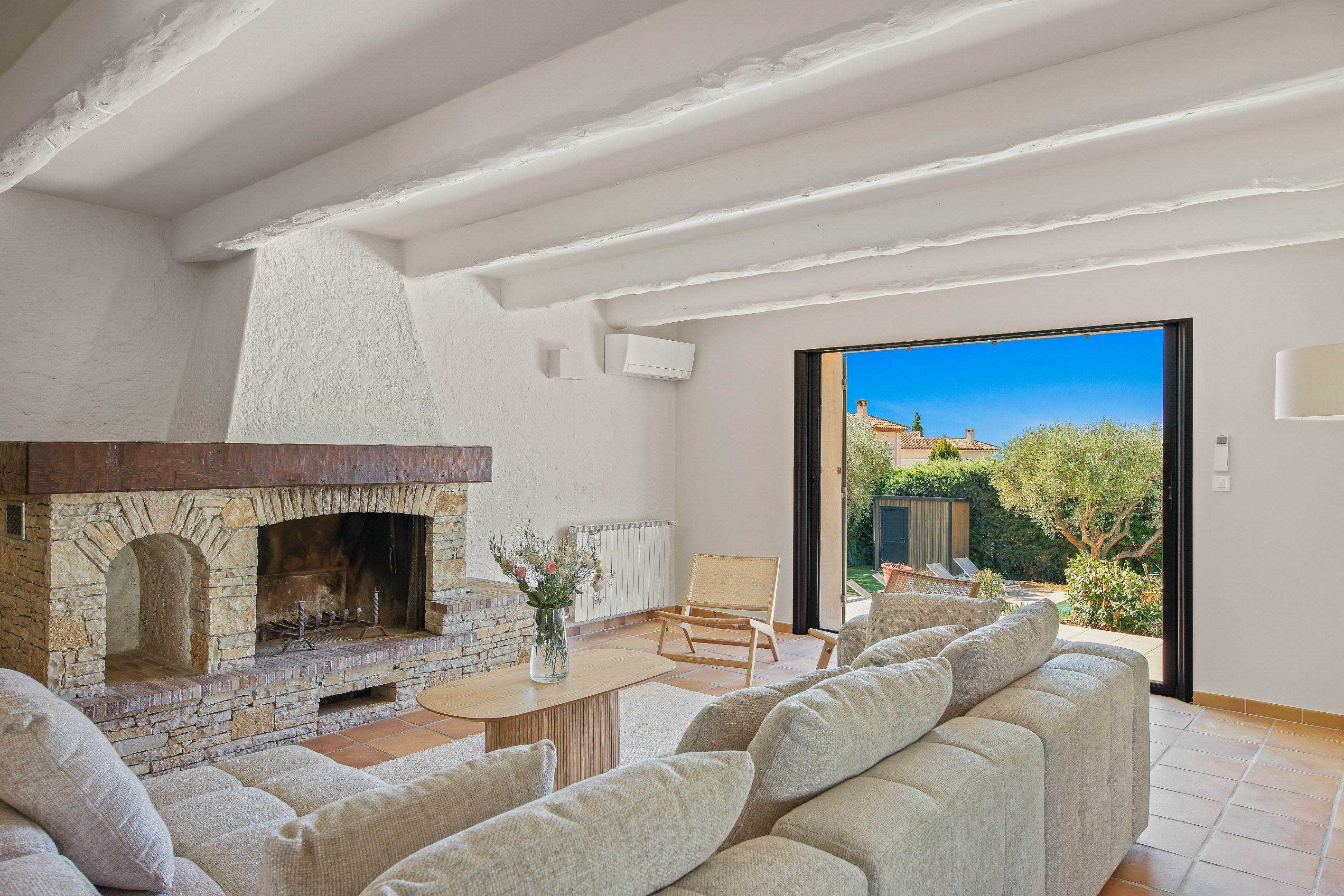 Exclusive Listing – For rent, between Sanary-sur-Mer and Bandol, just a 20-minute walk from La Gorguette beach, this 180 sqm Provençal house, fully renovated in 2025, is located in the heart of a quiet, sought-after residential neighborhood. Nestled in a 2,212 sqm south-facing Mediterranean garden, it combines the charm of tradition (exposed beams, fireplace, terracotta tiles) with modern comfort (reversible air conditioning, air-to-water heat pump, aluminum joinery, alarm system). The spacious, light-filled Bo Concept living room opens onto a south-facing terrace, while the dining room connects to a veranda. The brand-new Cuisinella kitchen is fully equipped (American-style fridge, induction hob, oven, dishwasher). The house offers four air-conditioned bedrooms: two on a split level, including one with a sea-view terrace, and two on the garden level, each opening onto a terrace with a pool view. It features a bathroom with bathtub and walk-in shower, two shower rooms, and generous storage space. Outside, you can enjoy a large saltwater swimming pool with diving board and a garage with laundry area. A rare rental opportunity — bright and ideally located to savor the Provençal art of living just steps from the Var coastline. Rent excluding utilities: €4,000 / month Utilities: €380 / month including water, electricity, internet, and alarm system.