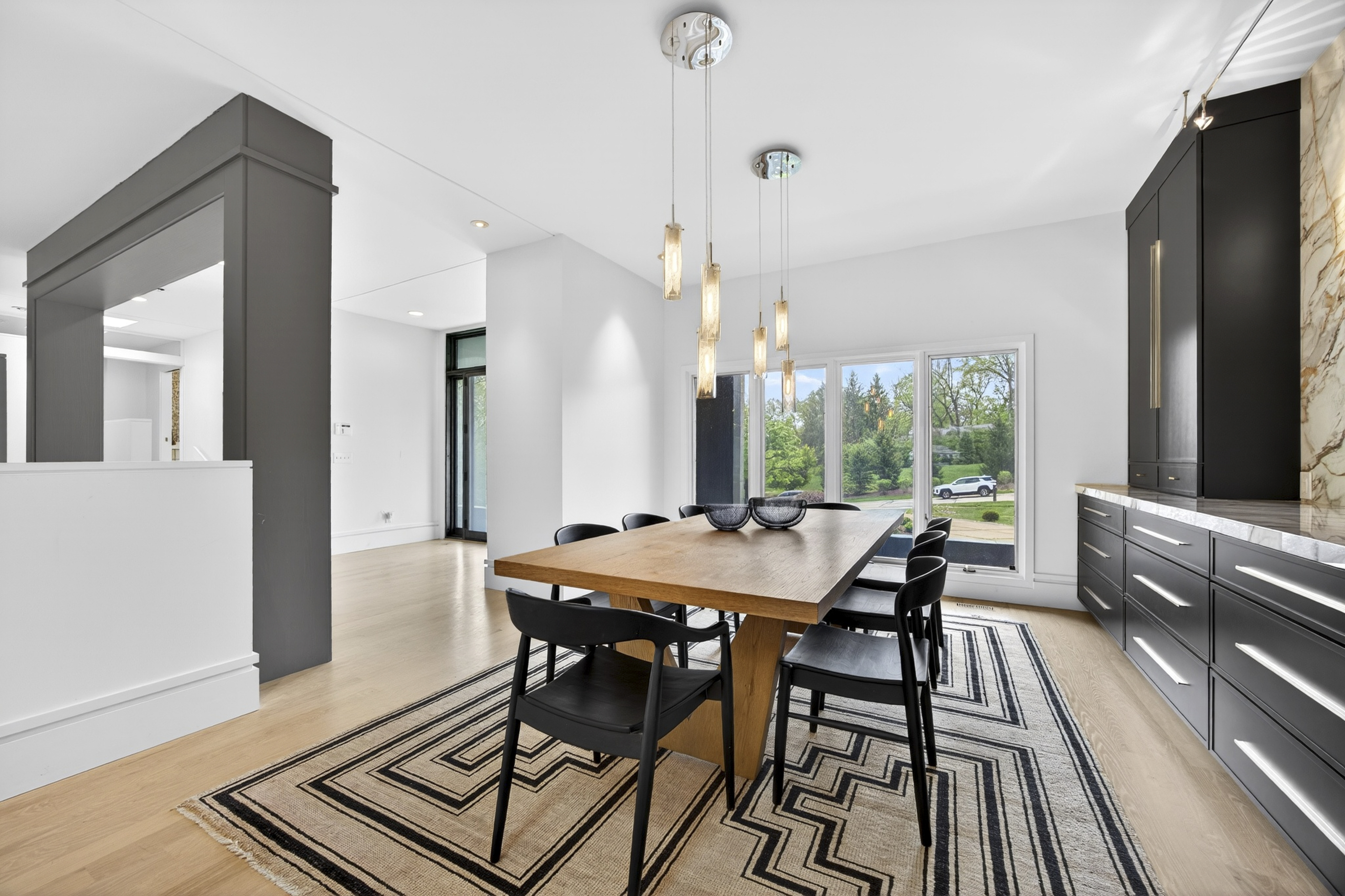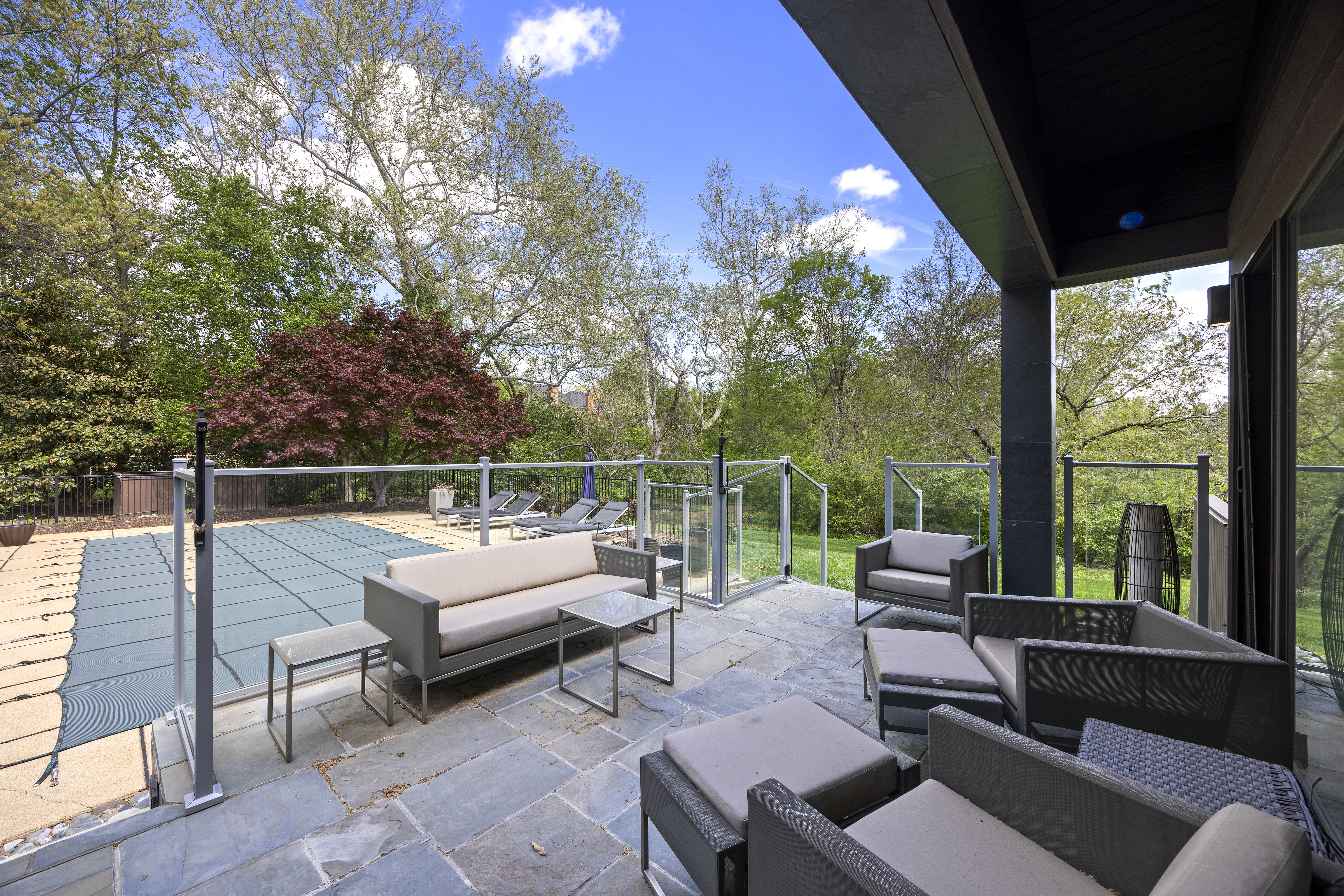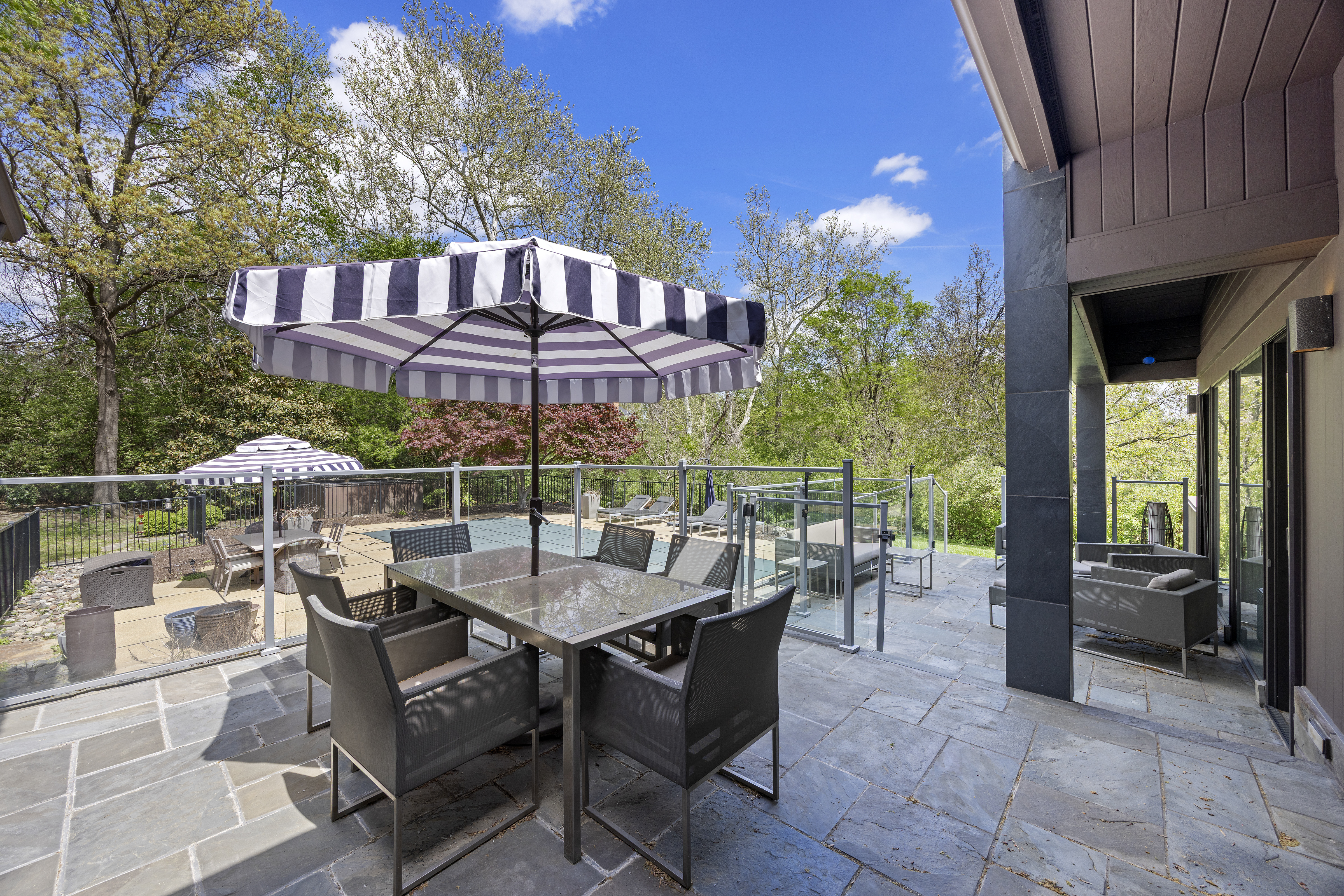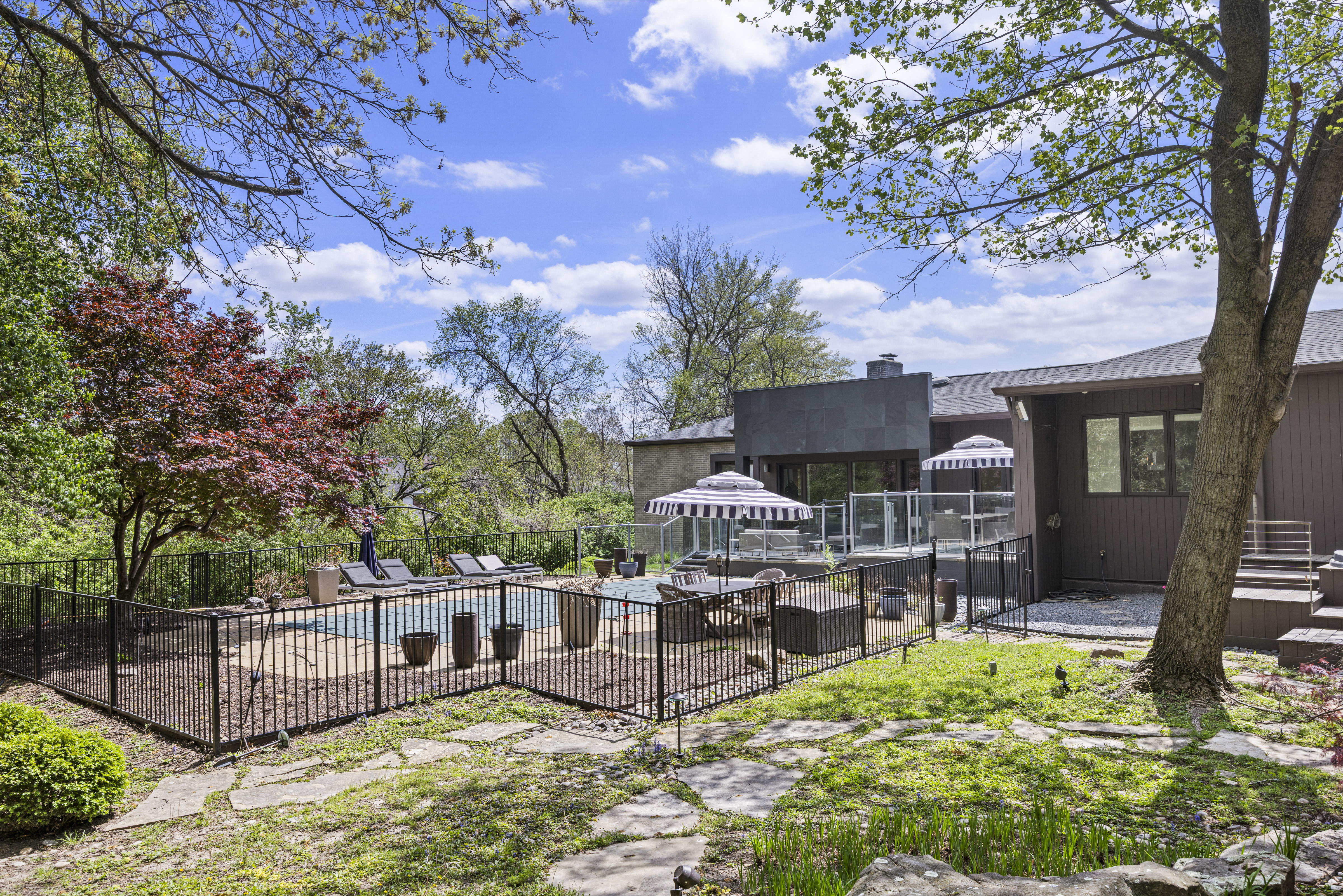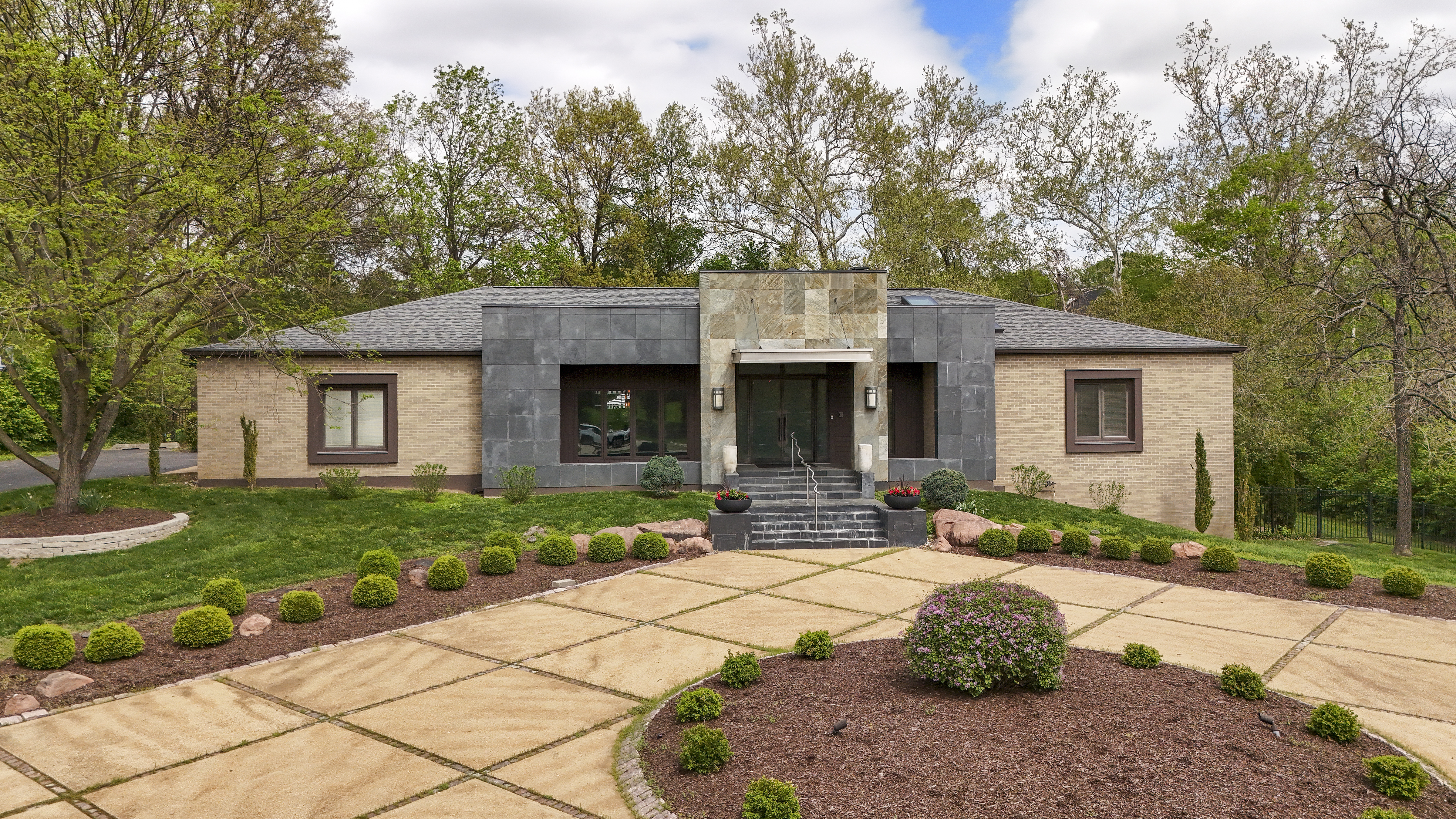 Architecturally striking contemporary home by Arthur Sitzwohl, crafted for effortless luxury living. Expansive walls of glass flood the home with natural light and create a seamless connection to the slate patio and saltwater pool. Thoughtfully curated with art lighting and gallery-like spaces to showcase a prized collection, every detail elevates the everyday. A sunken living room with a gas fireplace and an elegant dining area with custom built-ins and striking Neolith surfaces set the tone for sophisticated entertaining. The chef’s kitchen features Brazilian quartzite countertops, Wolf and Sub-Zero appliances, and white oak flooring throughout much of the main level. The reimagined primary suite is a serene retreat with a sitting room or office, a stunning spa-inspired bath, a custom walk-in closet, and a private deck with a hot tub overlooking a tranquil waterfall. The east wing offers an en-suite bedroom, two additional bedrooms, and a full bath. Renovated in 2023, the walk-out lower level includes built-ins, a full bath, and generous storage, opening directly to the backyard and pool—creating the ultimate setting for relaxation or entertaining. A rare opportunity to own a home in Ladue Schools where design, light, and lifestyle come together—an experience you won’t want to miss.