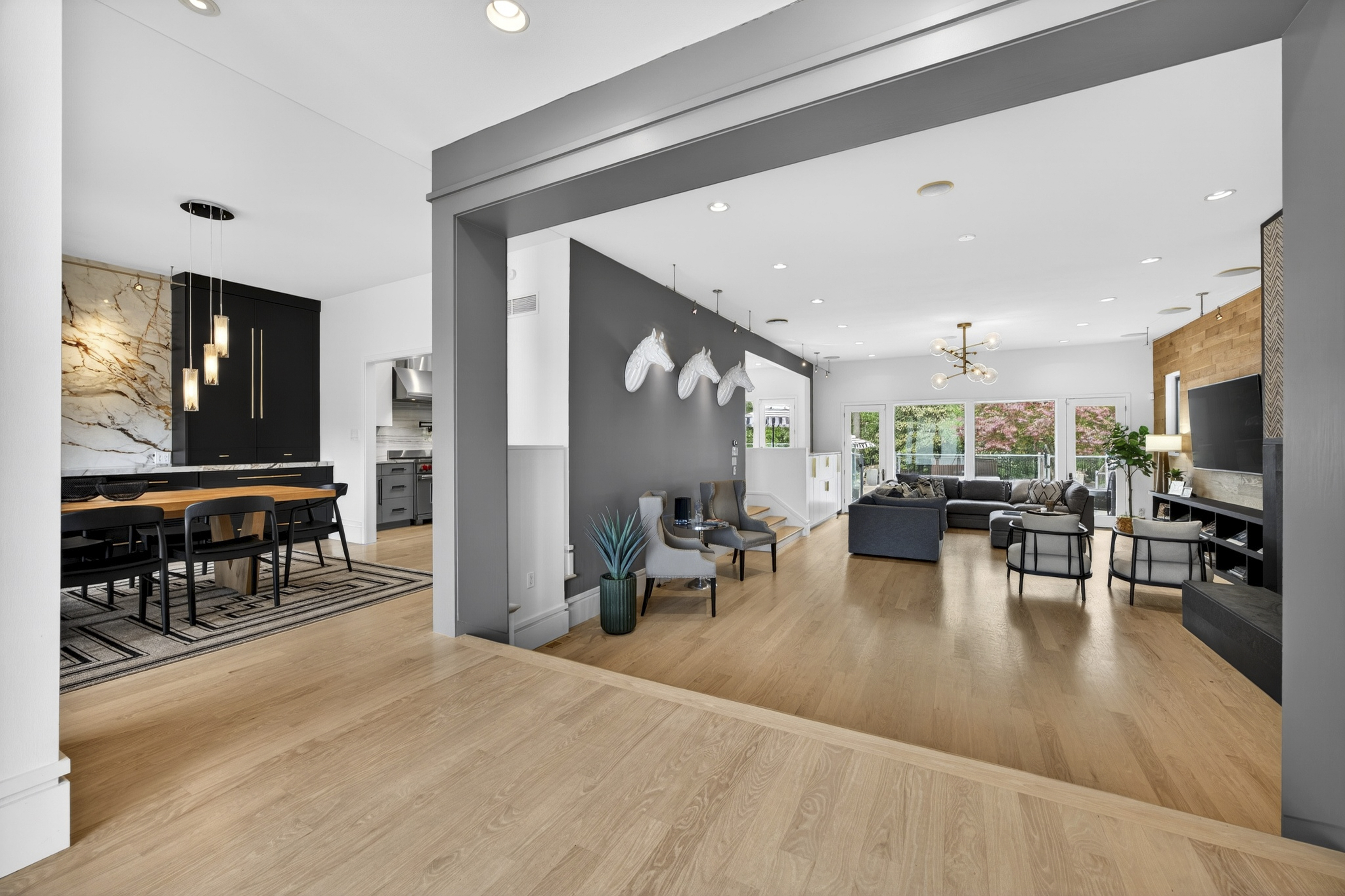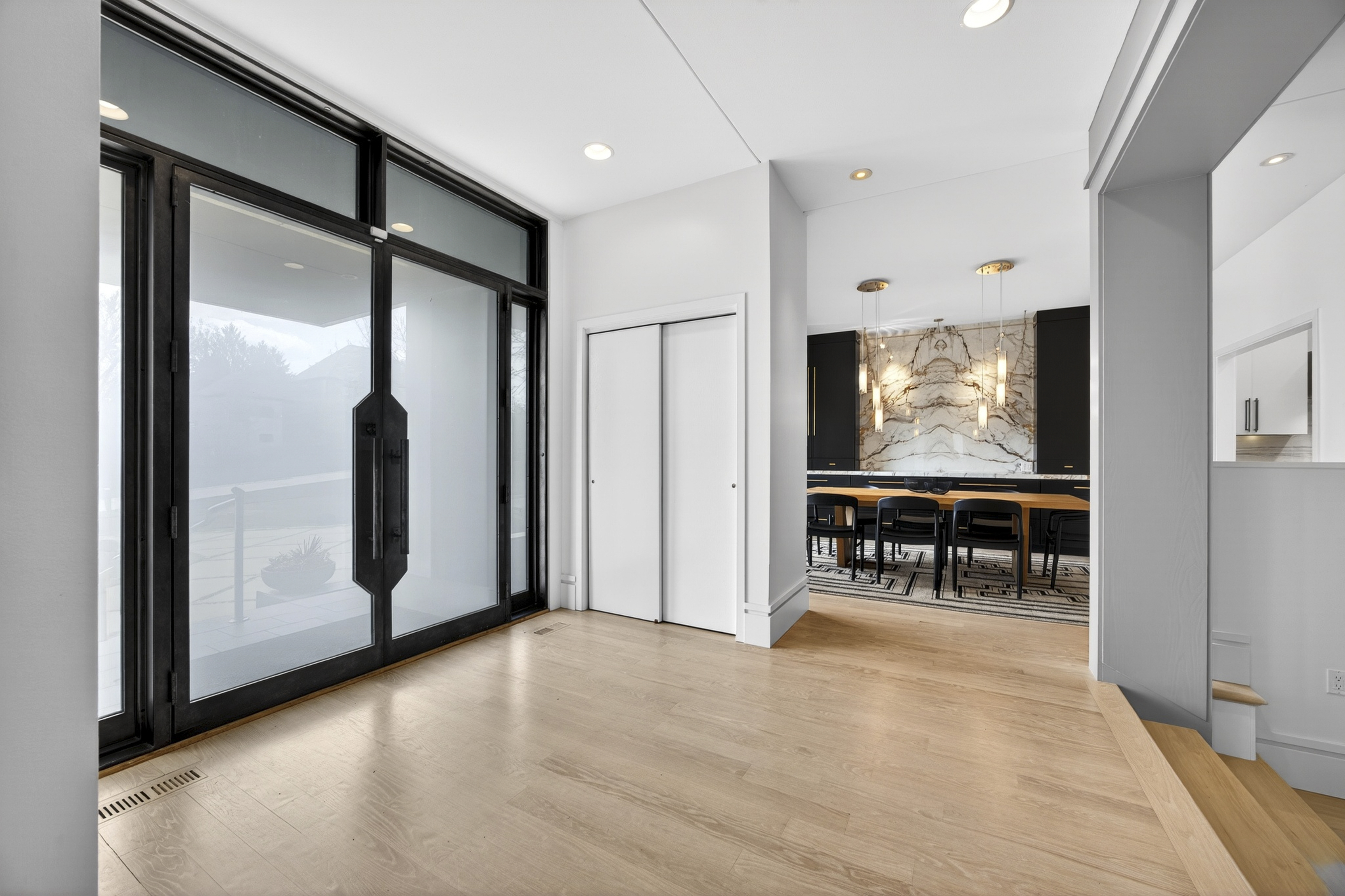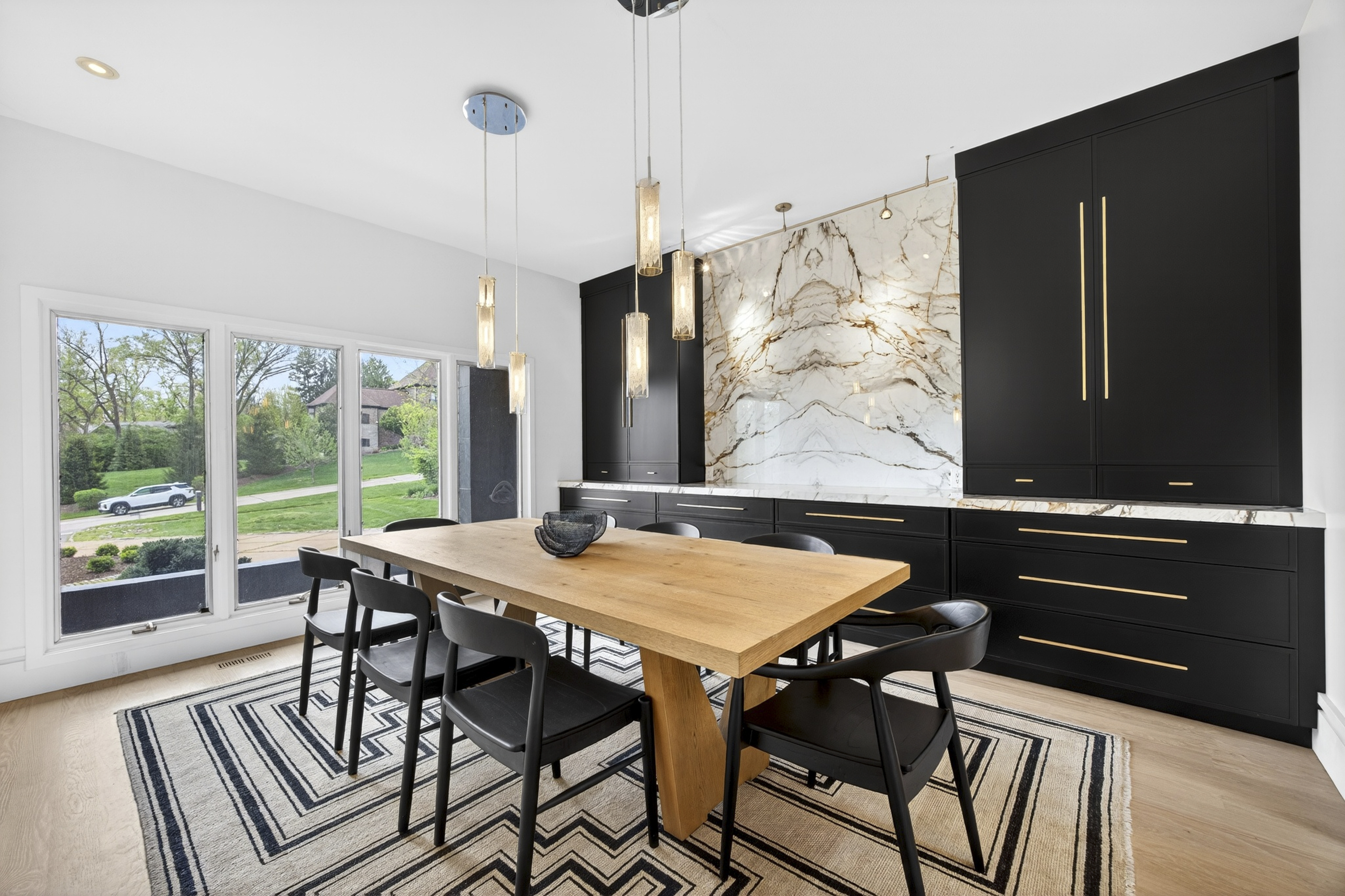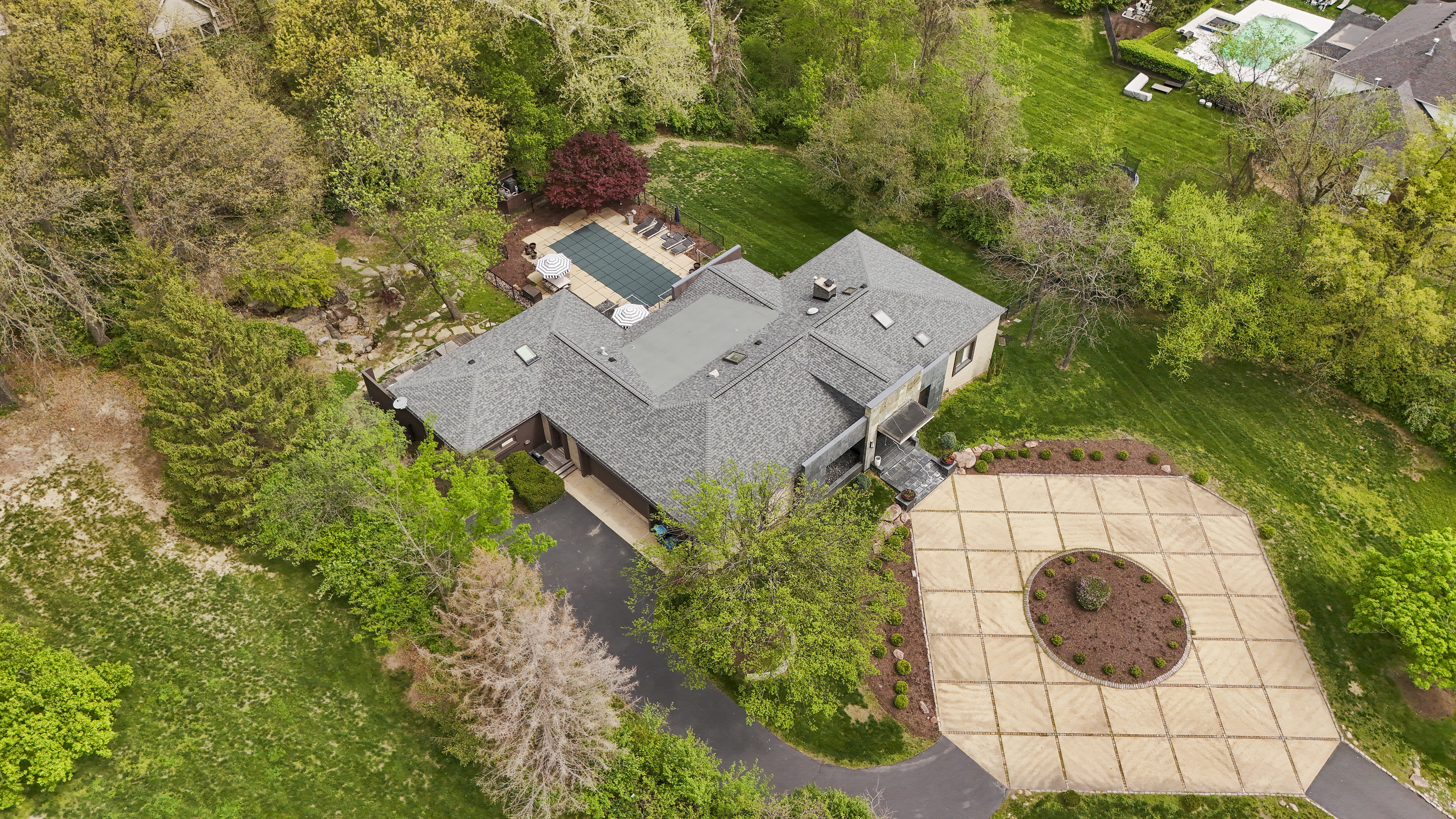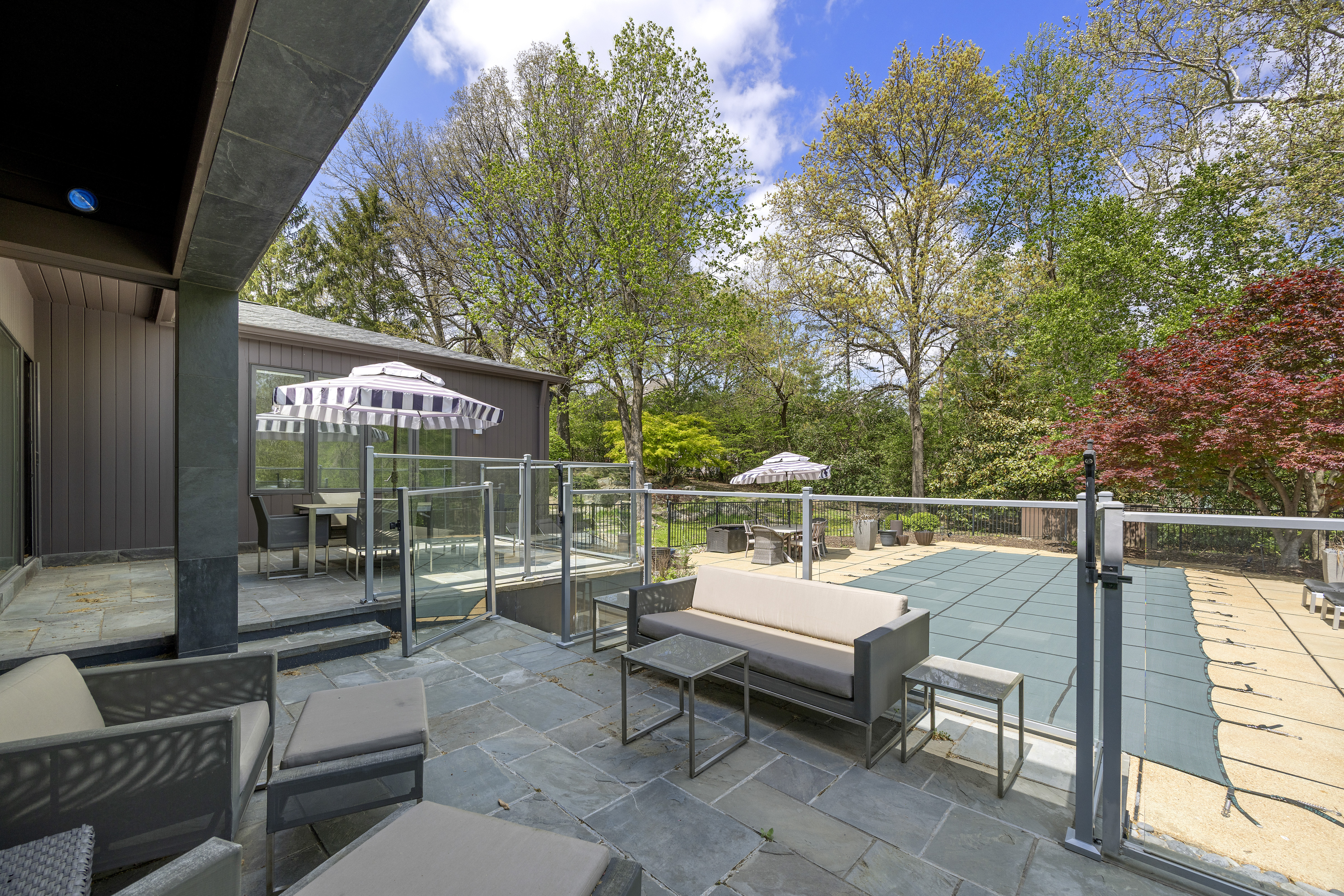Architecturally striking contemporary home by Arthur Sitzwohl, crafted for effortless luxury living. Expansive walls of glass flood the home with natural light and create a seamless connection to the slate patio and saltwater pool. Thoughtfully curated with art lighting and gallery-like spaces to showcase a prized collection, every detail elevates the everyday. A sunken living room with a gas fireplace and an elegant dining area with custom built-ins and striking Neolith surfaces set the tone for sophisticated entertaining. The chef’s kitchen features Brazilian quartzite countertops, Wolf and Sub-Zero appliances, and white oak flooring throughout much of the main level. The reimagined primary suite is a serene retreat with a sitting room or office, a stunning spa-inspired bath, a custom walk-in closet, and a private deck with a hot tub overlooking a tranquil waterfall. The east wing offers an en-suite bedroom, two additional bedrooms, and a full bath. Renovated in 2023, the walk-out lower level includes built-ins, a full bath, and generous storage, opening directly to the backyard and pool—creating the ultimate setting for relaxation or entertaining. A rare opportunity to own a home in Ladue Schools where design, light, and lifestyle come together—an experience you won’t want to miss.
