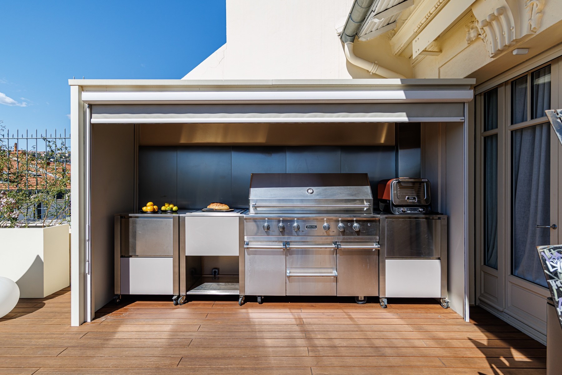 This one-of-a-kind six-suite penthouse, featuring an extraordinary wooden terrace facing the sea, is set within a prestigious Belle Époque bourgeois building in a prime location, just steps from the iconic Hotel Negresco in the Carré d’Or, Nice. The property offers the lifestyle of a private villa in the heart of the city, right by the sea, within walking distance of all amenities, including bakeries, boutiques, beaches, and more. With over 715 m2 of exclusive indoor and outdoor private space, this penthouse offers 280 m2 of Carrez Law living area, enhanced by a 435 m2 open-air terrace, creating a lovely indoor-outdoor living experience. This exceptional apartment was conceived from the very beginning, at the time of the building’s construction in 1927. In an extremely rare configuration, it has remained undivided ever since. Today, it has been entirely restored to the highest standards of luxury and high-end finishes by a renowned architect. Carrara marble, bespoke woodwork, solid oak parquet flooring in Versailles pattern in the reception areas and herringbone pattern in the bedrooms, custom-made dressing rooms, and wood paneling throughout. Period features such as cornices and decorative moldings have been meticulously restored Occupying the entire top floor of the building this exceptional residence comprises a bright entrance hall, a spacious double living room with a fireplace, and direct access to the expansive terrace, which wraps around the south and west sides of the property. A beautiful and functional high-end kitchen allows for large family gatherings and is complemented by a back kitchen and a beautiful wine cellar. A laundry room and a caretaker’s room with its own bathroom complete this area. The terrace also features a fully equipped outdoor kitchen with BBQ and a generous dining space. A corridor lined with custom-made bookshelves, wardrobes, and ample storage leads to five comfortable en-suite bedrooms, each with access to a balcony or terrace. The terrace is beautifully landscaped with lighting, flowers, two fountains, fruit trees, and an herb garden, offering multiple relaxation areas and additional storage. The views are breathtaking: the sea and the Negresco to the south, and the city and mountains to the west and north. The property benefits from all exposures. Sold fully furnished, this exceptional property also includes a large cellar and four underground parking spaces equipped with electric charging stations if needed. It features integrated reversible air conditioning, a full alarmsystem, a BO sound system and parquet flooring throughout. The building has an elevator and a service entrance. For further information or to arrange a confidential viewing, please contact Côte d’Azur Sotheby’s International Realty.