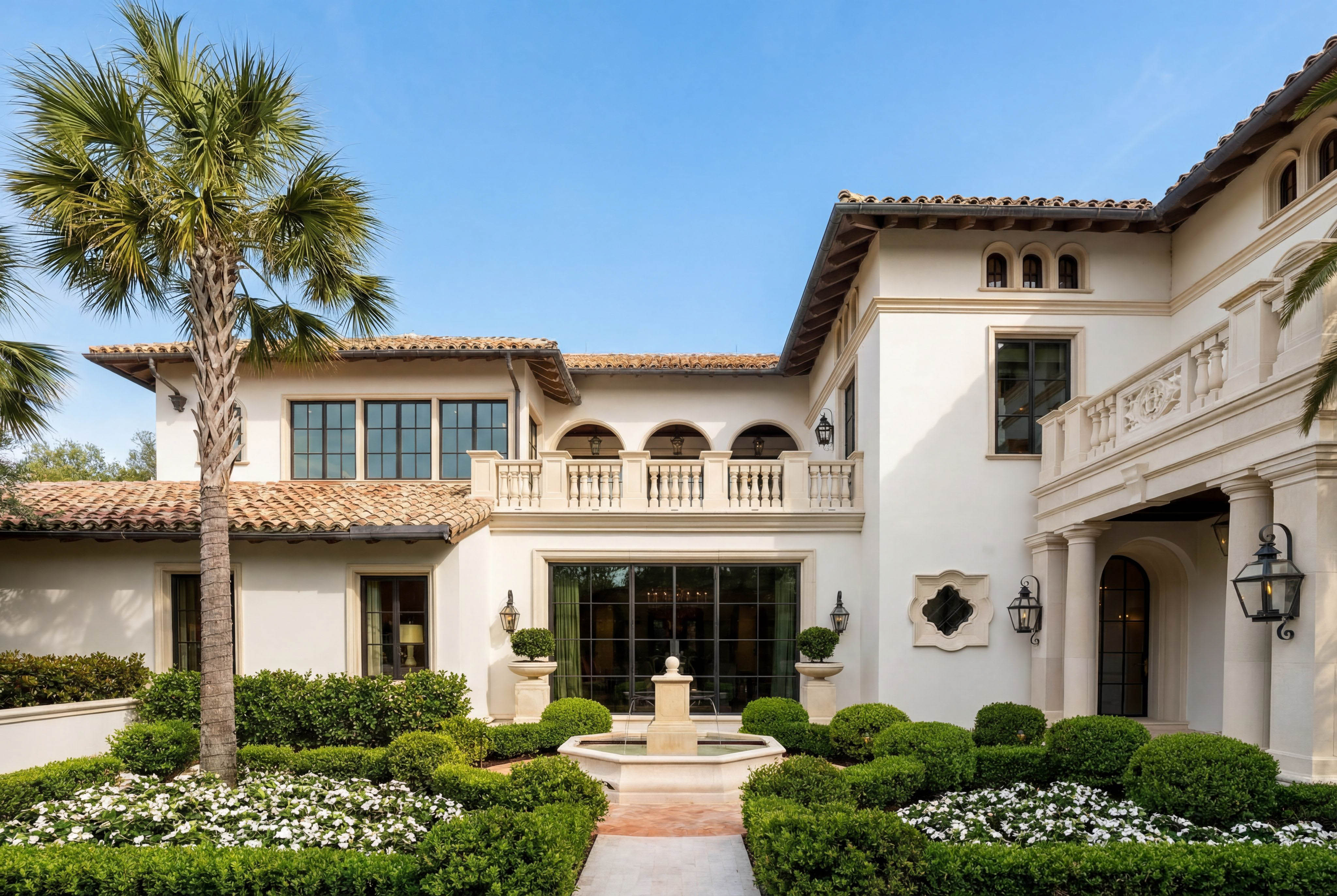 Outdoor living is equally exceptional, featuring a signature quatrefoil pool, pergola, and climate-controlled covered loggia with retractable screens and heated flooring. Multiple garden and fountain settings create a resort-like sense of privacy and serenity, while seamless indoor-outdoor flow accommodates entertaining on any scale.