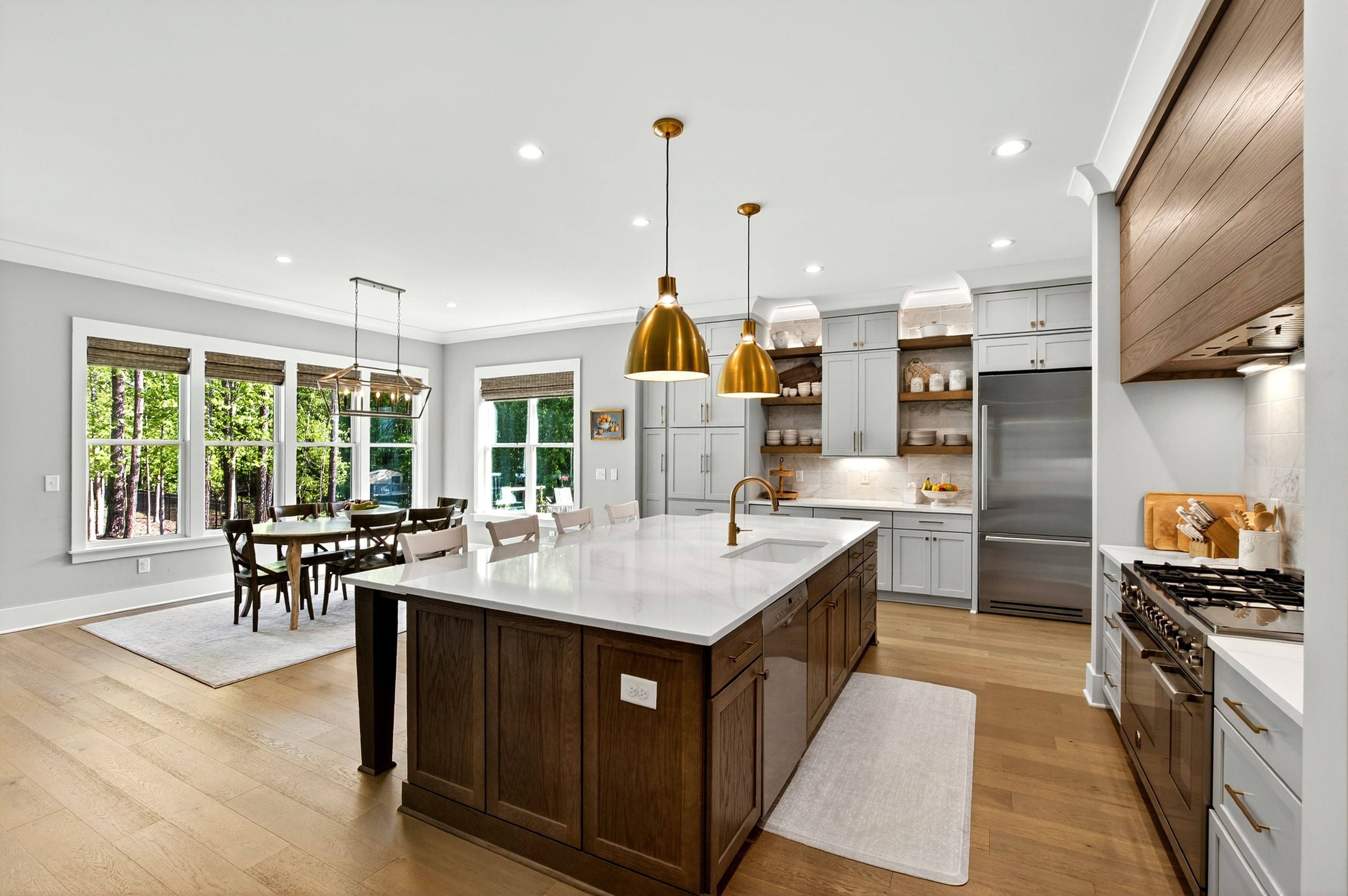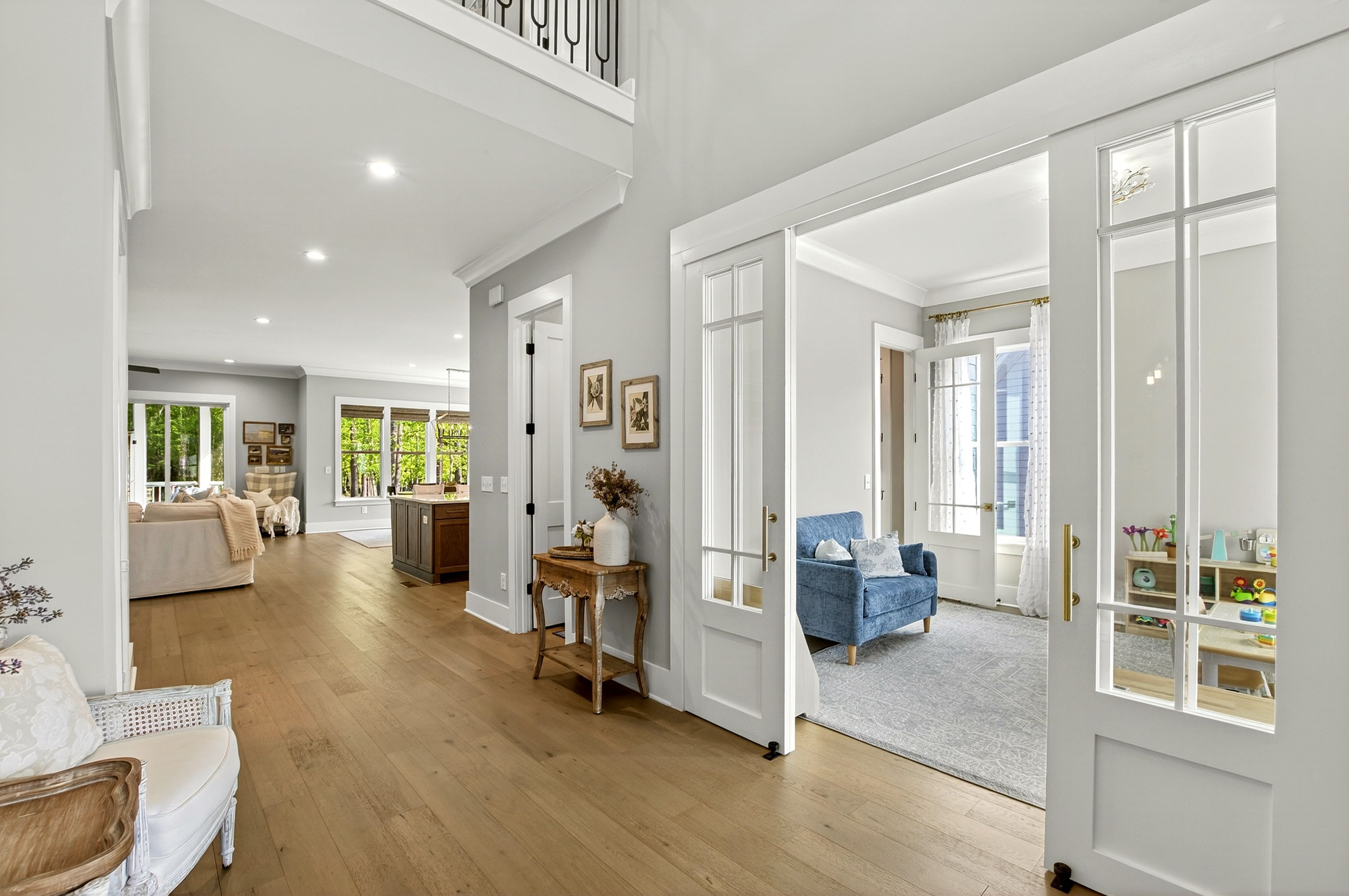 Welcome to 7717 Dover Hills Drive, a beautifully crafted 6-bedroom home in Camberly - one of Wake Forest's most sought-after custom neighborhoods. Designed with space, flexibility and privacy in mind, this unique home is the perfect choice for families who need room to grow or spread out. Featuring expansive living areas and thoughtfully designed spaces that adapt to your lifestyle, this 2022 Herring Home is perfect for hosting gatherings, offering multiple work-from-home setups, or carving out dedicated play, fitness, and hobby zones. The kitchen is a standout with custom cabinetry, hood vent, walk-in pantry, bar and coffee setup, oversized island with seating, and upgraded appliances. A convenient first-floor primary suite features a tray ceiling, a spacious primary bathroom, and a walk-in closet with immediate access to the first-floor laundry room and drop zone. Upstairs, discover four dedicated bedrooms, two options for bonus space creating no lack of options for space planning. A standout third floor was fully permitted and completed just a couple years ago highlighting dedicated bedroom or office area with custom built ins, full bathroom and easily accessible walk-in storage. Step outside and discover a truly special flagstone screen porch with fireplace and one of a kind backyard - flat, private, and fully fenced - ideal for kids, pets, and outdoor activities. There's plenty of room to run, relax, and enjoy peaceful evenings surrounded by nature. Enjoy quick access to Falls Lake, where trails, water activities, and natural beauty are just minutes away or enjoy neighborhood amenities including clubhouse and pool. If you're is looking for space to live, work, and play - both inside and out - this exceptional Camberly home delivers it all.