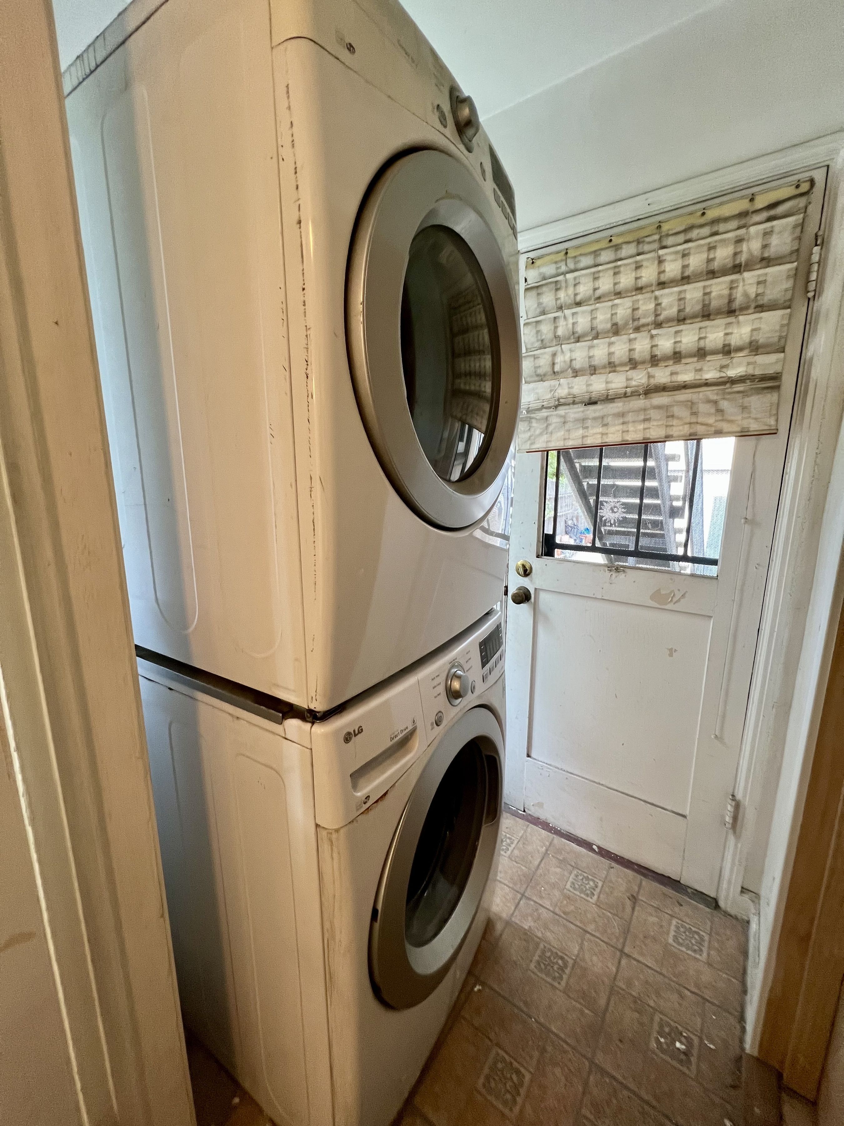 Charming unit in beautiful 4-plex building, located on peaceful tree-lined street. This 1st floor unit has gorgeous hardwood floors, beautiful moldings, double pane windows, AC units, ceiling fans, laundry, etc. The spacious living room has a detailed decorative fireplace, gorgeous crown moldings, 2 closets, built-in shelving & large window for great natural light. The dining area with AC unit and wainscoting flows to the open kitchen with stone countertops and stainless-steel appliances. Off the kitchen in the laundry room, which is shared with only 1 other unit. The hall bathroom has a separate tub & shower, newer white tilework & built-in shelving for linens & storage. Both bedrooms are spacious & equipped with AC units & ceiling fans. The bedrooms are on either side of the bathroom, so do not share walls with each other. Unit also comes with a single parking space within a shared 2-car garage on clicker. Charming curb appeal with marvelous architectural character & new landscaping. Centrally located.