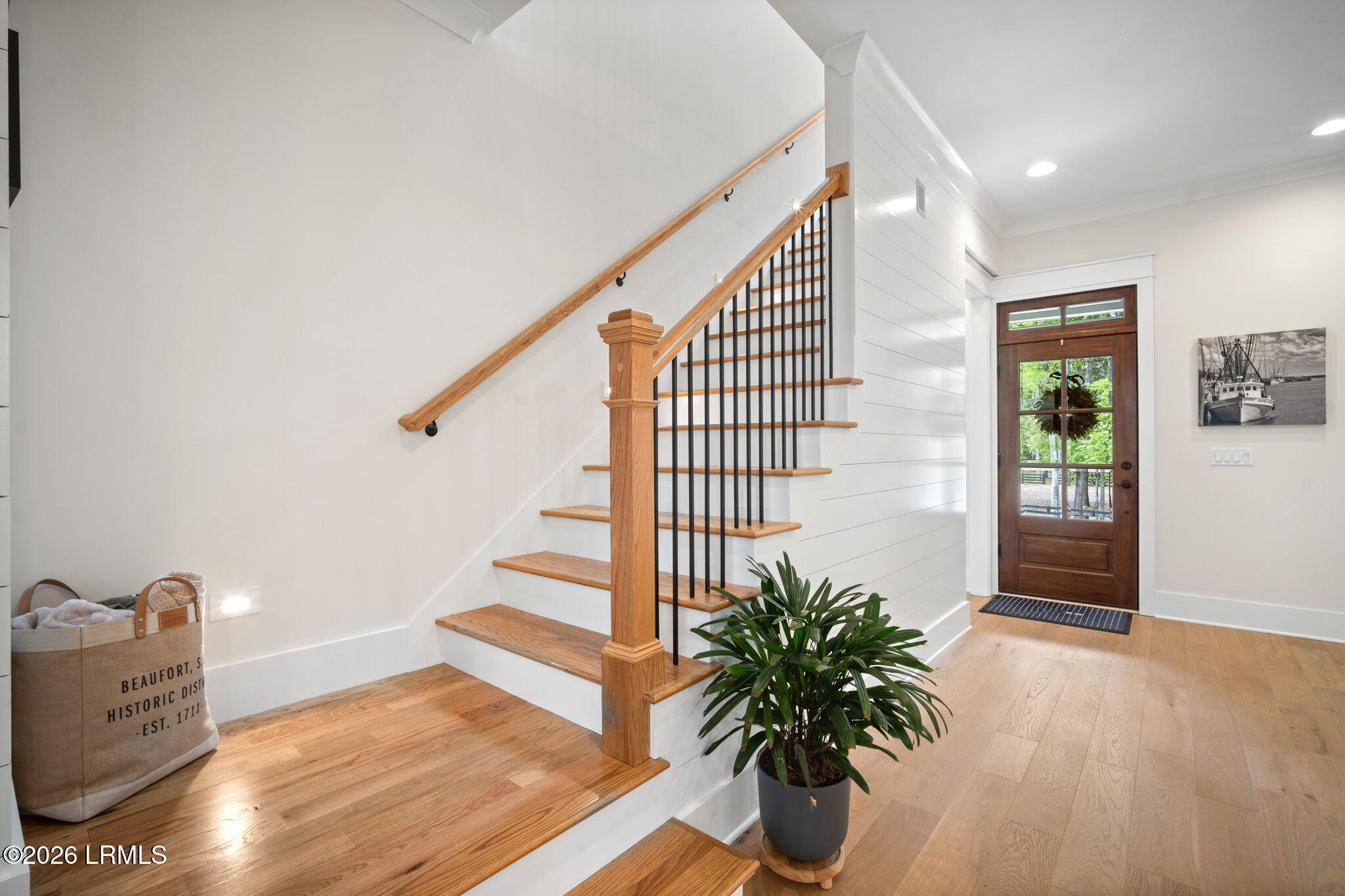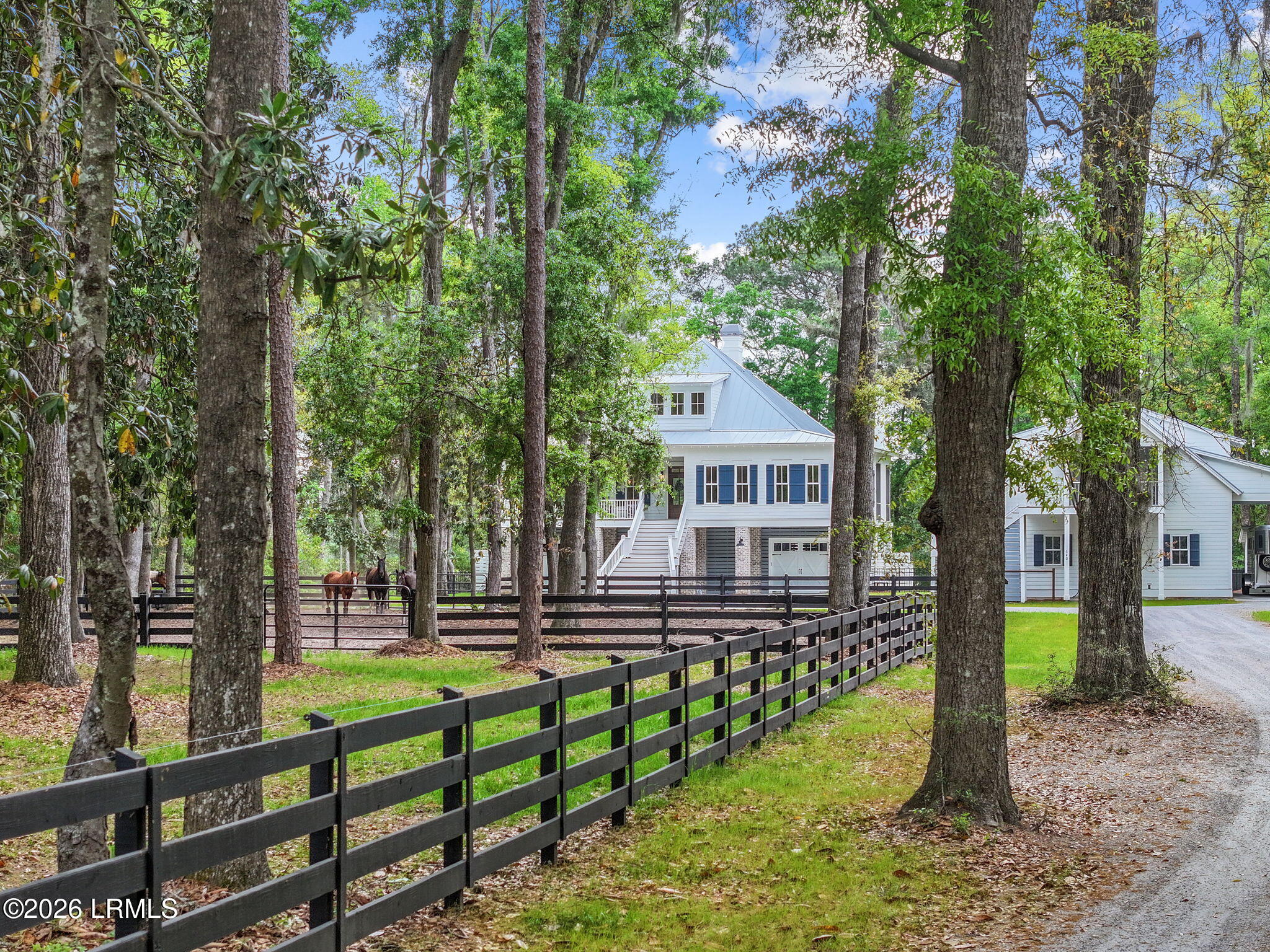 Tucked away along the serene tidal waters of Beaufort, 540 Sams Point Road is a rare Lowcountry retreat where luxury living meets an exceptional equestrian lifestyle. Set on approximately 5 acres, this one-of-a-kind horse farm features a private dock on a picturesque tidal creek--ideal for boating, kayaking, or simply enjoying breathtaking coastal sunsets. The thoughtfully designed main residence offers 2,759 heated square feet (3,744 total under roof), blending timeless architecture with modern functionality. The first floor showcases an inviting open layout with a chef's kitchen, breakfast area, formal dining room, spacious living room, private study, and a luxurious primary suite with a spa-like bath and walk-in closets. A convenient elevator, located just off the kitchen, Read more. provides seamless access from the ground level to the main living floor. The living room and primary suite each feature their own fireplace, creating warmth and ambiance in both spaces. Upstairs, two additional bedrooms and a full bath offer comfortable accommodations for family or guests. The kitchen is beautifully appointed with premium appliances, including a KitchenAid 36" Smart Commercial-Style Dual Fuel Range, counter-depth French door refrigerator, automatic icemaker, and a Bosch 800 Series dishwasher. Additional KitchenAid appliances extend into the utility room and carriage house, while the laundry room is equipped with a Maytag front-load washer and dryer with pedestals. Designed for both durability and classic Lowcountry charm, the home features cement fiber siding, metal roofing, brick veneer foundation, and decorative shutters. Outdoor living is exceptional, with a screened porch, front porch, and a spacious rear deck complete with an outdoor kitchen and fireplace--perfect for entertaining or unwinding in a private setting. The in-ground 30' saltwater pool with spa jets, propane heating, and Hayward OmniLogic system is surrounded by elegant pavers, creating a true backyard oasis. The property is also equipped with a whole-house Generac generator, thoughtfully sized to power both the main residence and the carriage house--offering peace of mind and uninterrupted comfort. The detached garage and carriage house provide incredible versatility, including over 750 heated square feet of living space above with a bedroom, bath, living area, and private deck. The garage is also equipped with a 30-amp outlet, ideal for RV use or as a charging station. Equestrian enthusiasts will appreciate approximately 3 acres of meticulously maintained pasture, enclosed with Kentucky 4-board fencing and divided into four seeded paddocks with solar-powered hot wire. The property includes multiple run-in sheds, a hay shed, water access points, and a fully equipped tack room with utility sink, hitching post, and covered trailer parking. Blending refined coastal living with thoughtfully designed equestrian amenities, this extraordinary waterfront property offers privacy, beauty, and versatility--just minutes from historic downtown Beaufort.