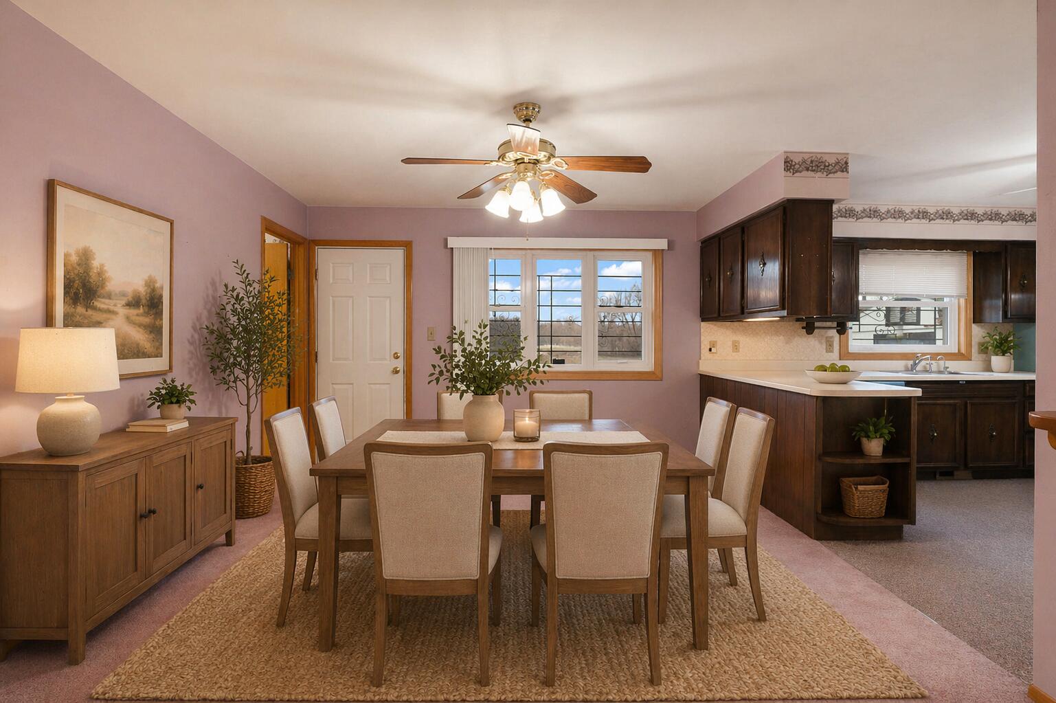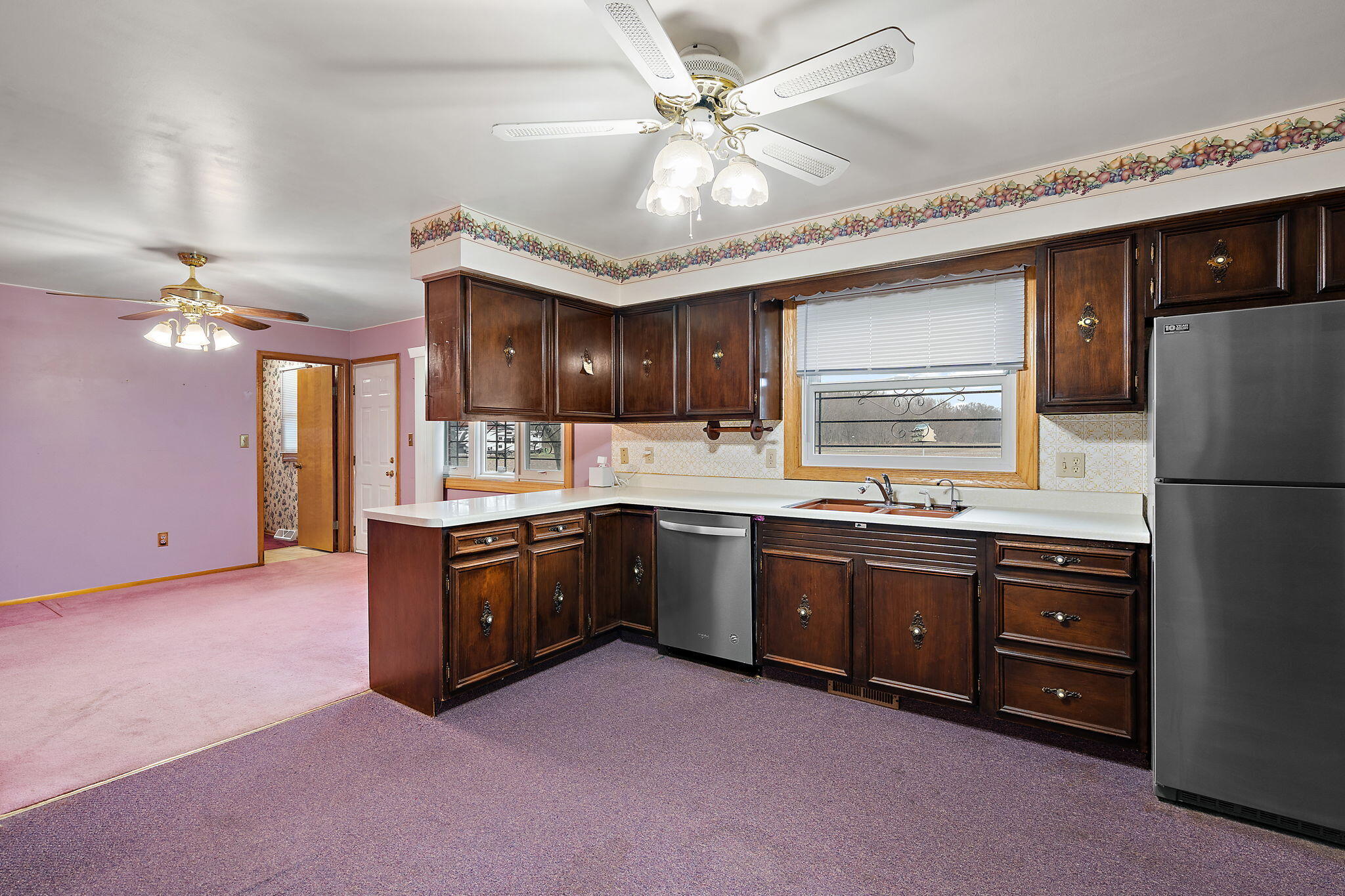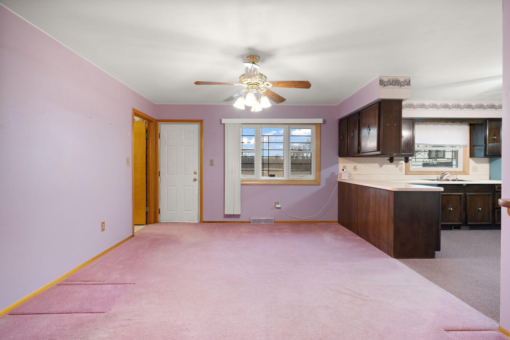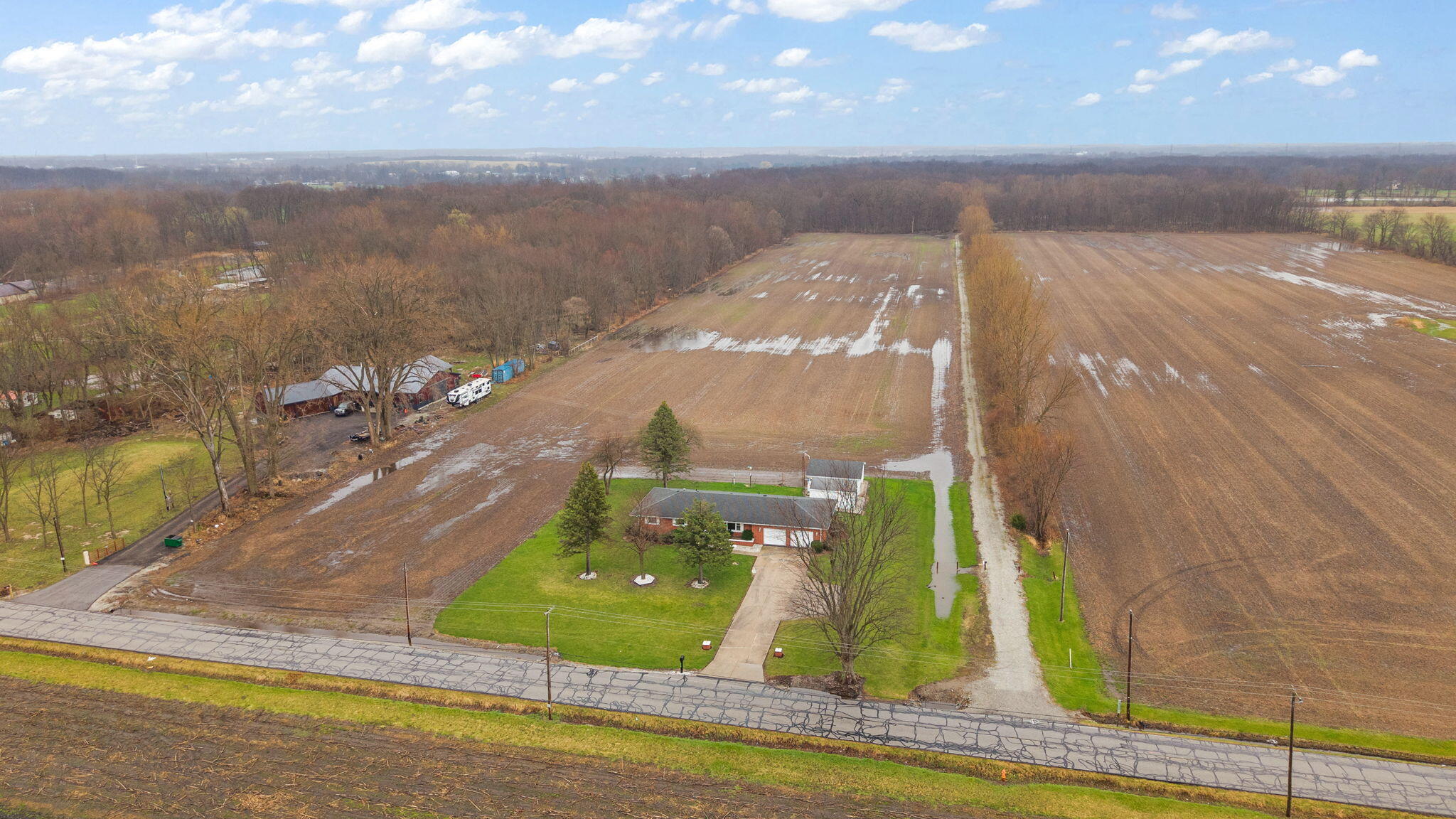 Vintage charm meets endless opportunity on 17 scenic acres--offered for the first time! This all-brick ranch features 3 bedrooms and 2 baths with desirable main-level living. The spacious living room and dining room both offer hardwood flooring under the carpet and flow seamlessly into the kitchen. The primary bedroom includes a walk-in closet and access to a 3/4 bath. Two additional bedrooms, a full bath, and main-level laundry complete the interior. A full unfinished basement provides excellent storage or future finishing potential. Exterior features include a 2-car detached garage, oversized storage shed, and additional parking area. Estate sale; property is being sold as-is.