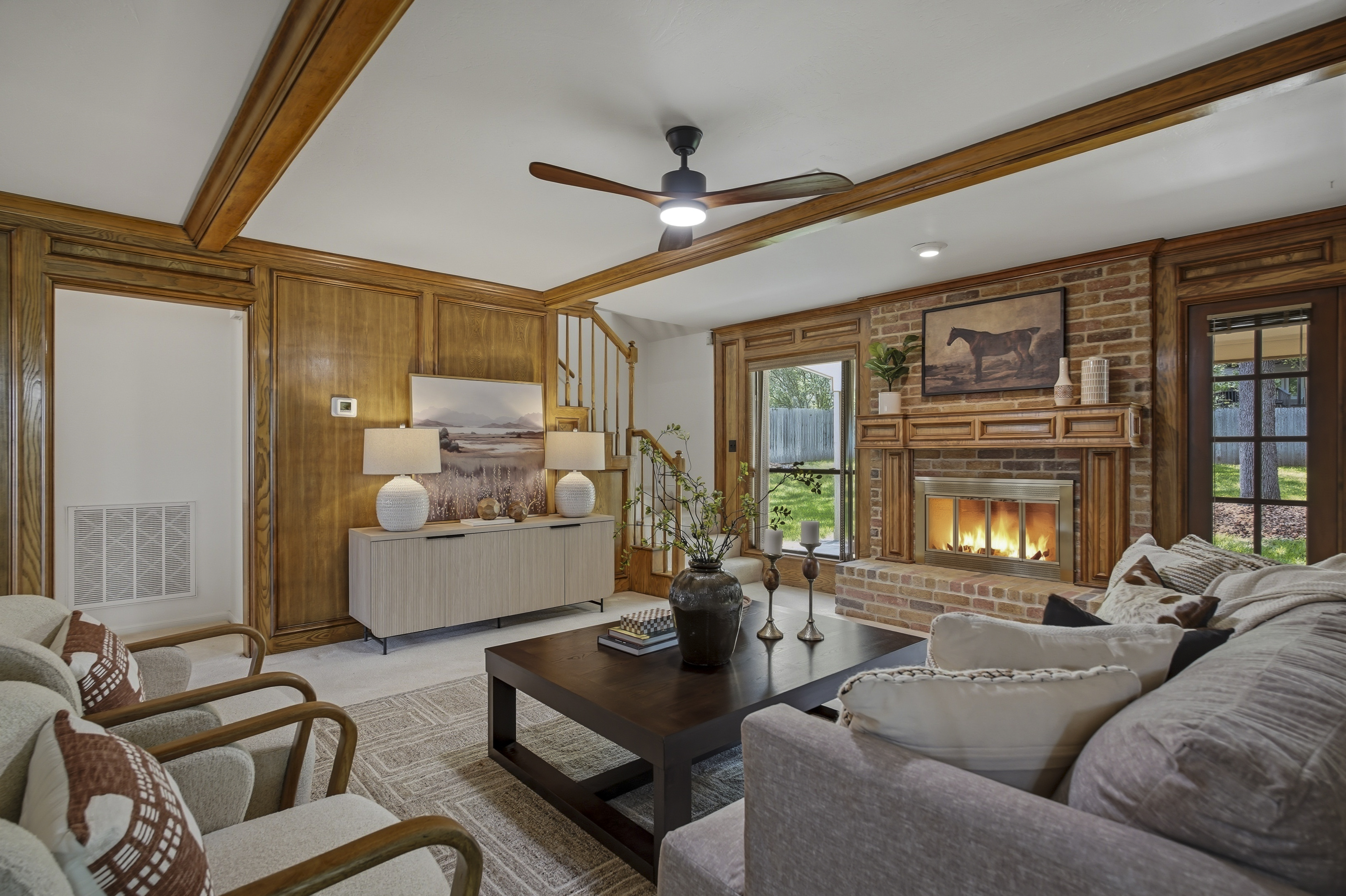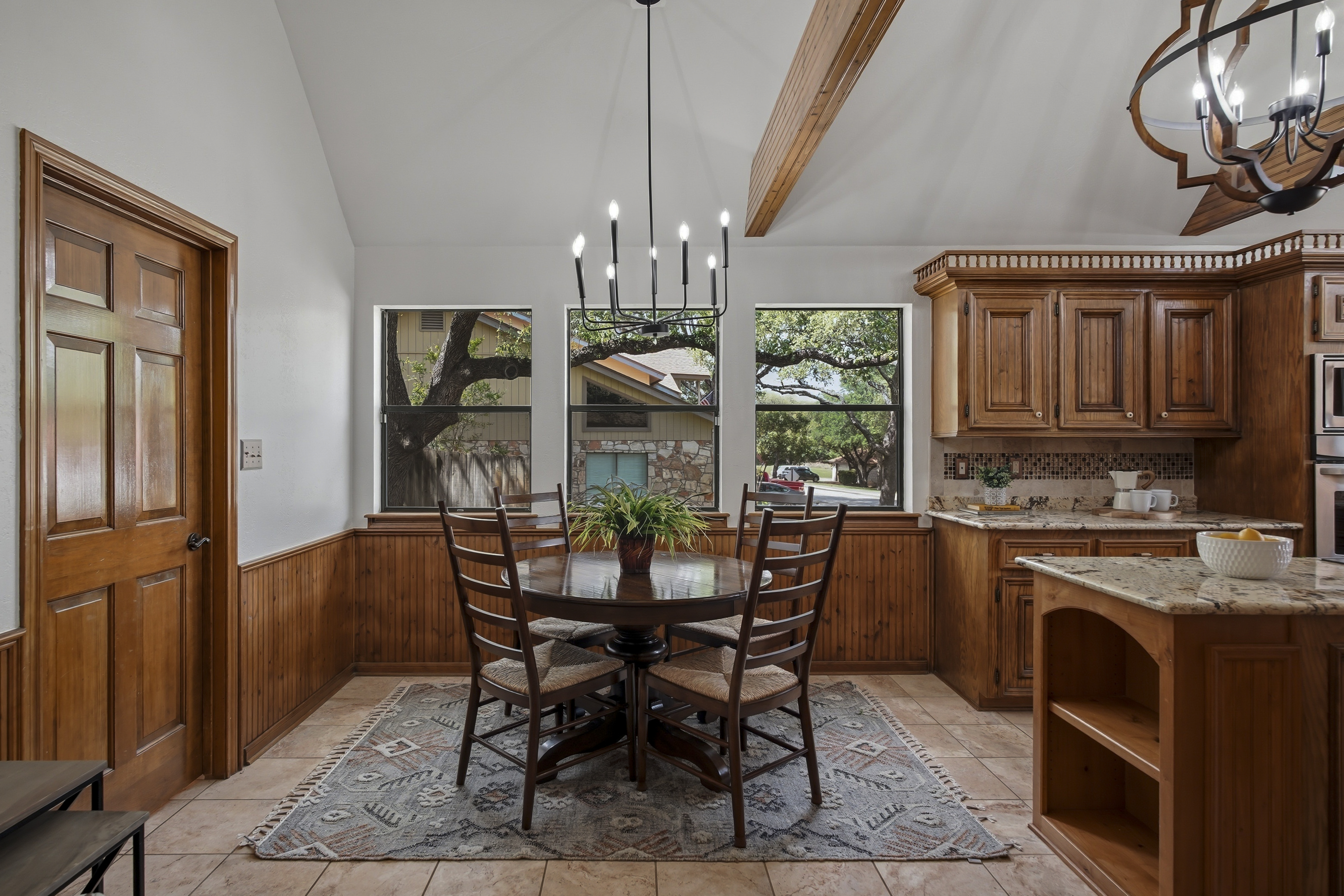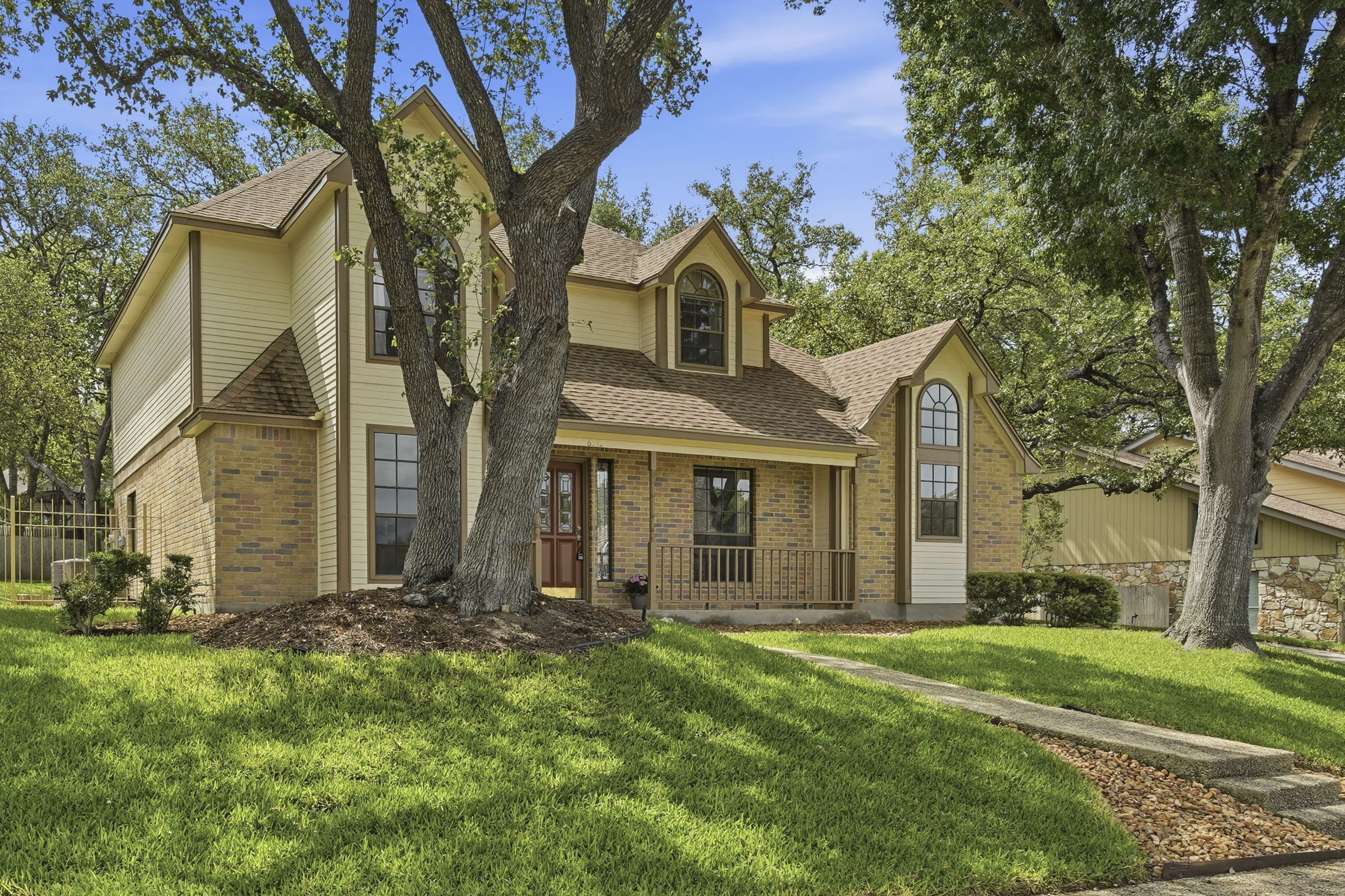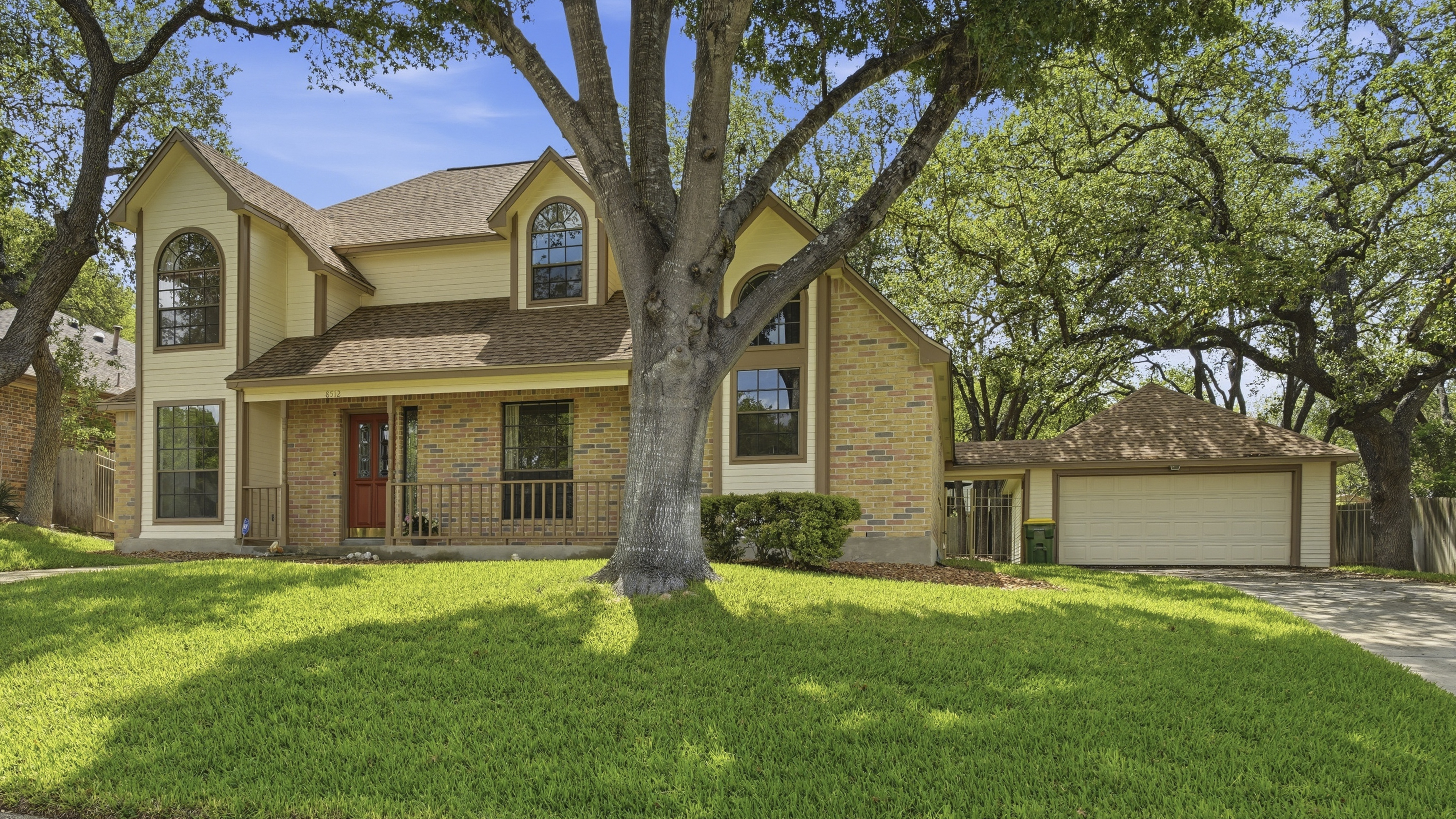 Nestled on over a quarter-acre in the desirable Olympia Hills, this stunning custom home is surrounded by mature shade trees and thoughtful curb appeal. An open eat-in kitchen features soaring cathedral ceilings with exposed wood beams and a decorative chandelier, flowing into a cozy living area with a brick fireplace and wet bar, perfect for entertaining. A separate formal dining room adjoins the kitchen for family gatherings. The oversized primary suite on the first floor offers a tasteful bath with double vanities, separate shower and tub, and his-and-her closets. Upstairs, a versatile loft provides an ideal second living area or home office, while three spacious secondary bedrooms offer abundant natural light and ample closet space. Practical amenities include a large laundry room and a downstairs half bath. The WOW factor is the large private backyard with a covered patio and mature trees; it is a showstopper with plenty of room for a pool. The home sits back from the street with a long driveway leading to a detached garage and covered walkway. This neighborhood has larger lots with more privacy and space between homes. Lower city taxes, conveniently located near a military base, major highways, Costco, shopping, and tons of restaurants. Schedule your showing today to see this exceptional Olympia Hills home.