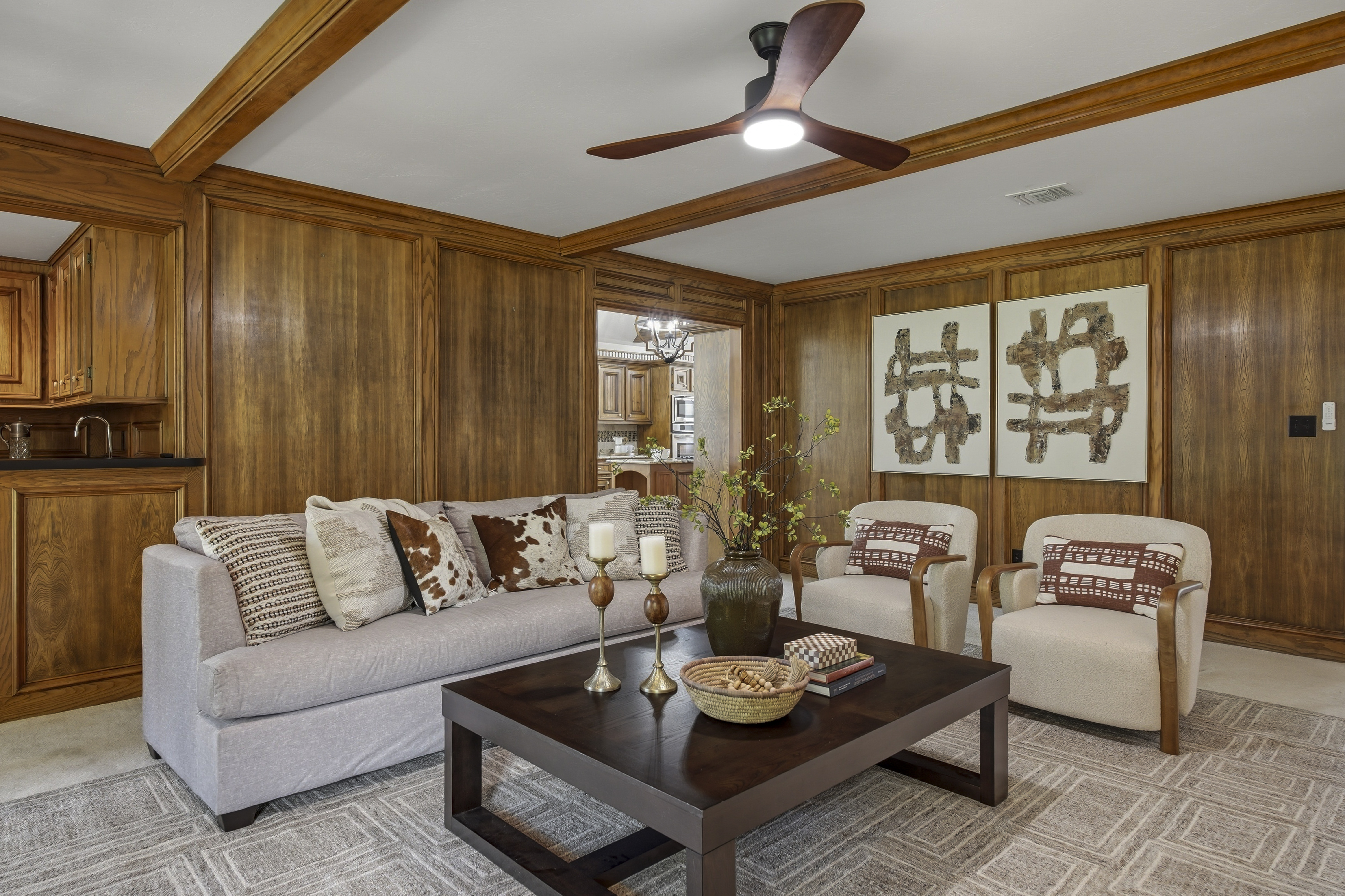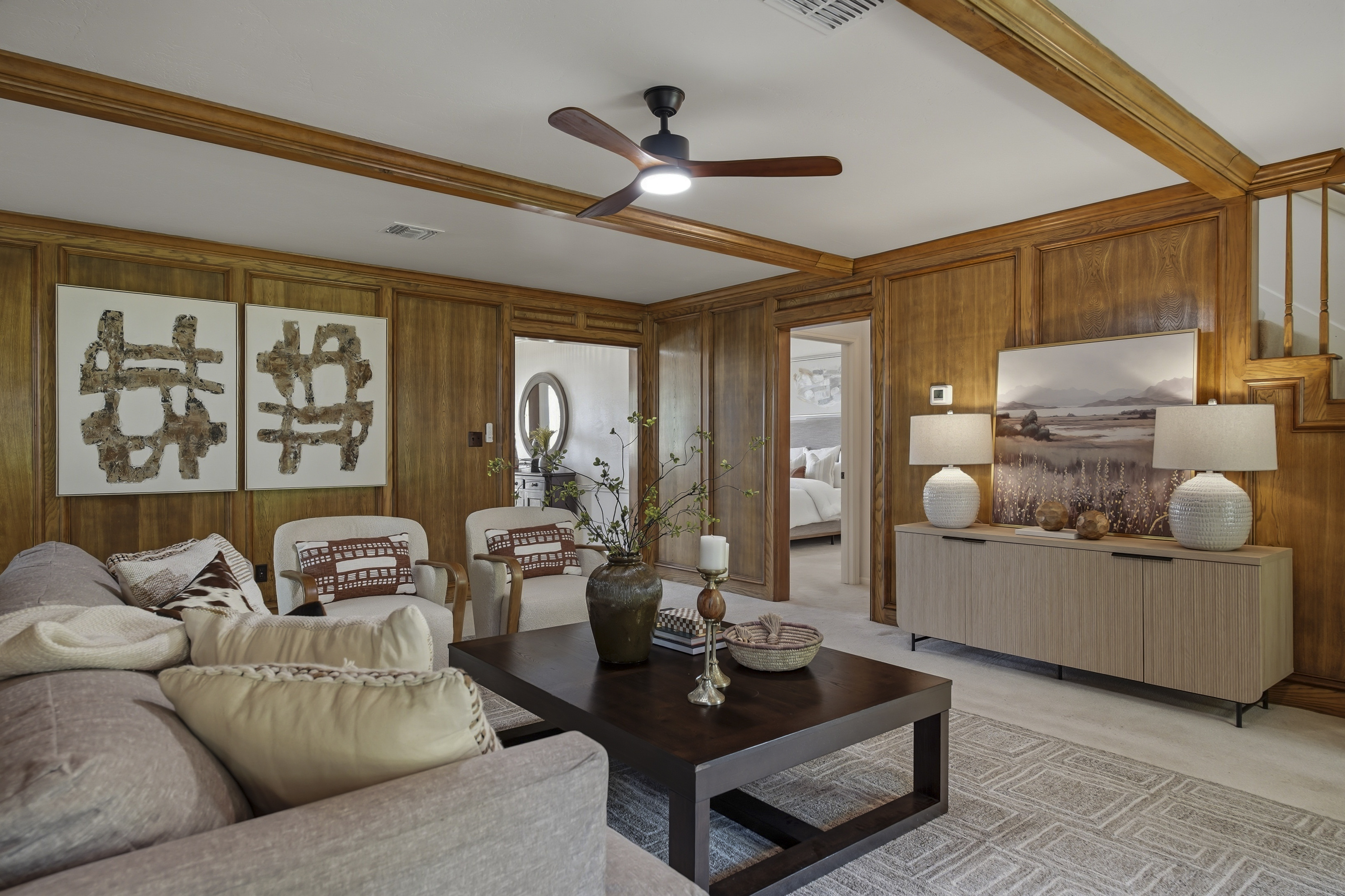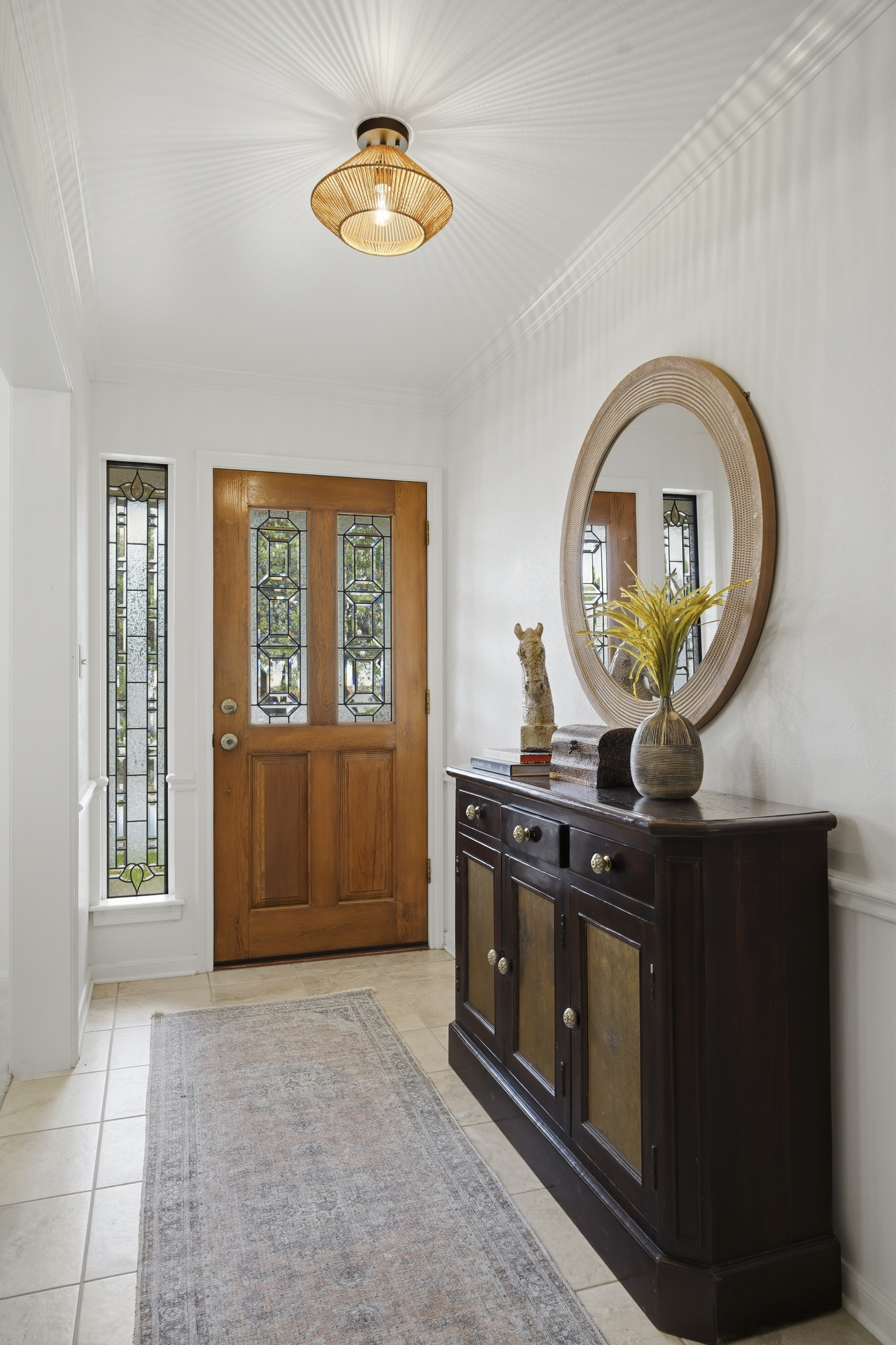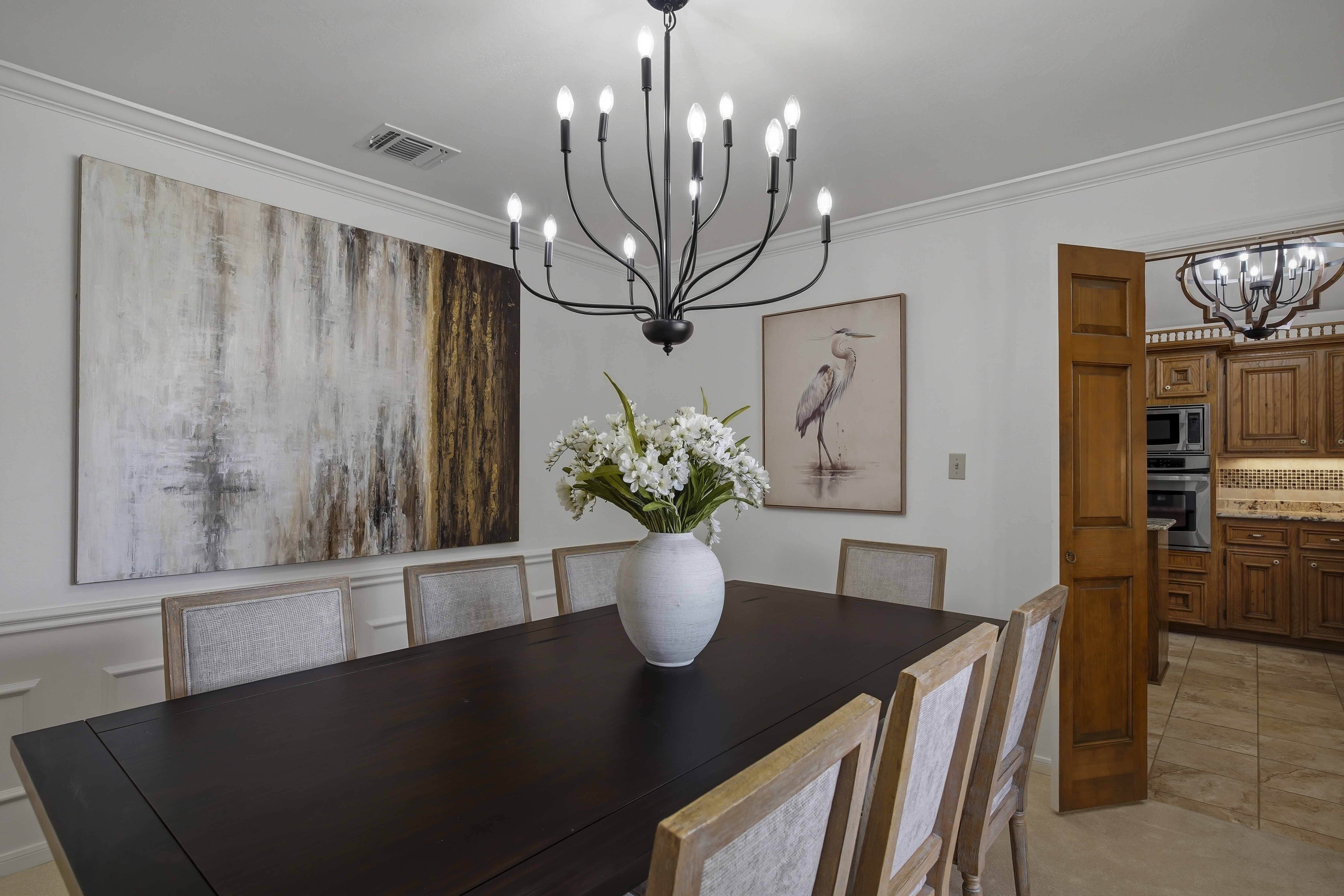 Nestled on over a quarter-acre in the desirable Olympia Hills, this stunning custom home is surrounded by mature shade trees and thoughtful curb appeal. An open eat-in kitchen features soaring cathedral ceilings with exposed wood beams and a decorative chandelier, flowing into a cozy living area with a brick fireplace and wet bar, perfect for entertaining. A separate formal dining room adjoins the kitchen for family gatherings. The oversized primary suite on the first floor offers a tasteful bath with double vanities, separate shower and tub, and his-and-her closets. Upstairs, a versatile loft provides an ideal second living area or home office, while three spacious secondary bedrooms offer abundant natural light and ample closet space. Practical amenities include a large laundry room and a downstairs half bath. The WOW factor is the large private backyard with a covered patio and mature trees; it is a showstopper with plenty of room for a pool. The home sits back from the street with a long driveway leading to a detached garage and covered walkway. This neighborhood has larger lots with more privacy and space between homes. Lower city taxes, conveniently located near a military base, major highways, Costco, shopping, and tons of restaurants. Schedule your showing today to see this exceptional Olympia Hills home.