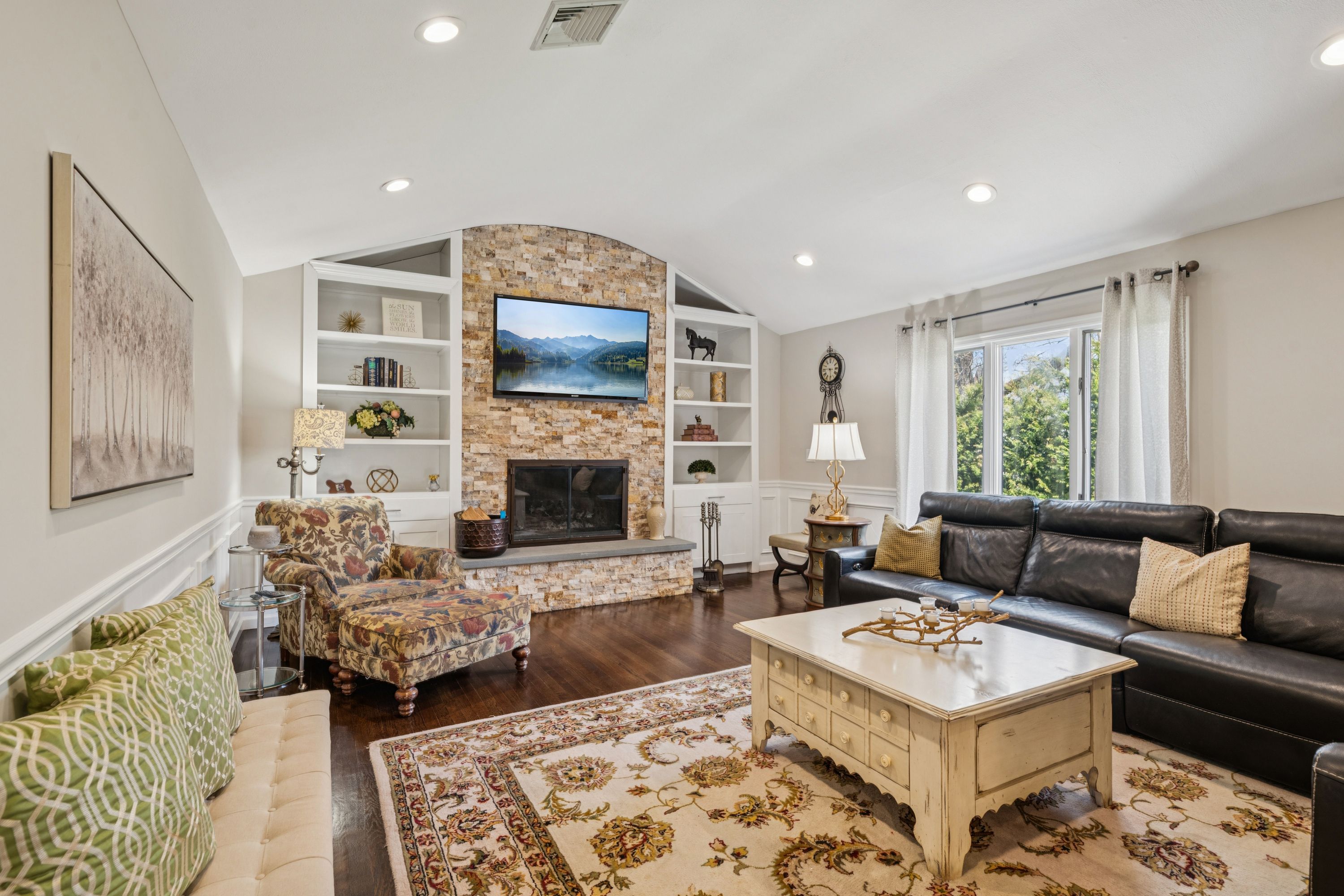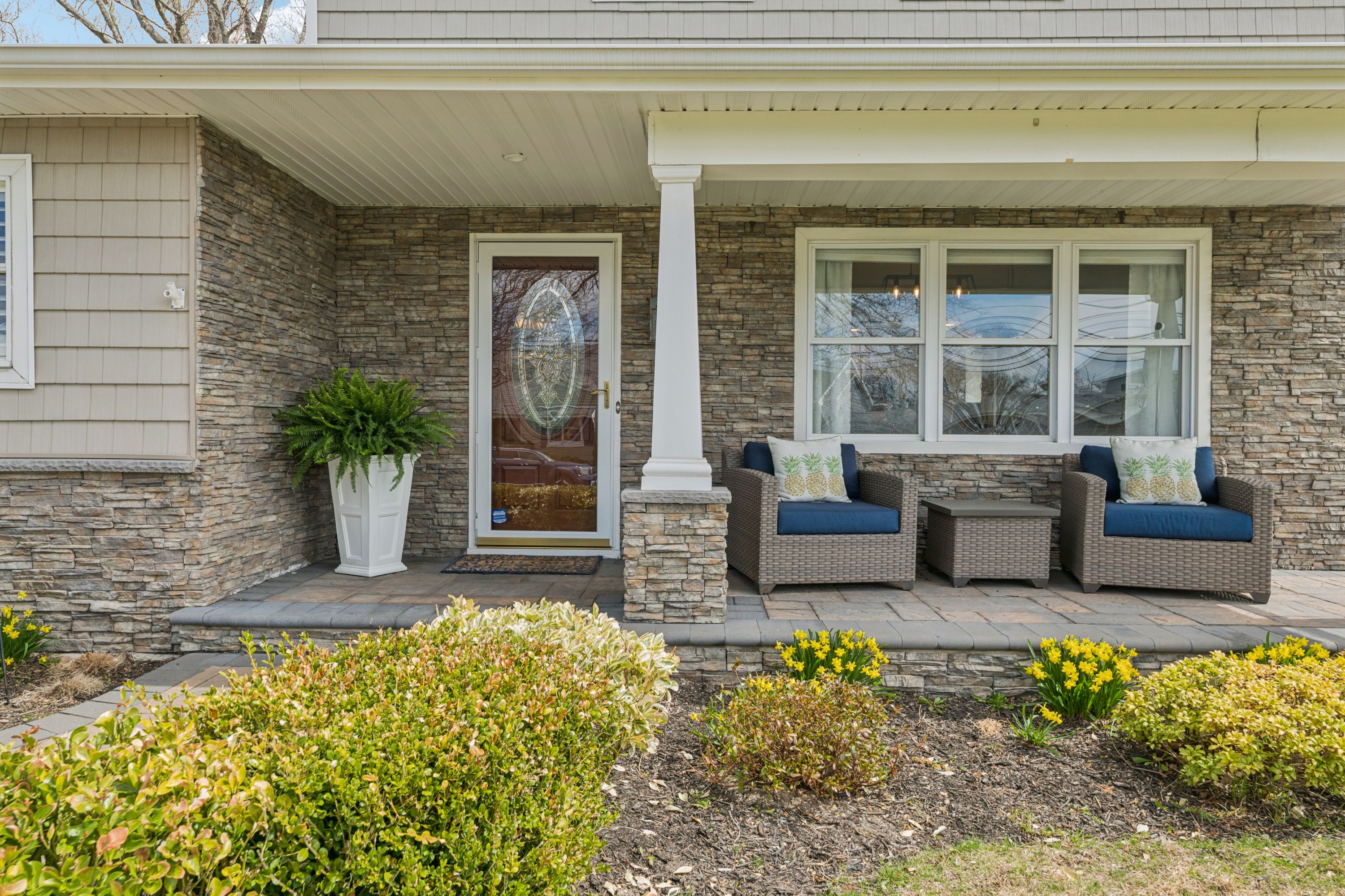 Beautifully updated home in a desirable South Sayville location near the Great South Bay. This spacious 4-bedroom, 3-bath residence offers bright living spaces and thoughtful updates throughout. The kitchen flows into an open dining area, creating a comfortable setting for everyday living and entertaining.The home features a warm and inviting den with high ceilings, a stone gas fireplace, and built-in shelving. A first-floor bedroom and full bathroom provide flexible living space for guests or extended family, along with the convenience of first-floor laundry.Upstairs are three additional bedrooms, including a primary bedroom with an en suite bathroom. The finished basement offers additional living space.Outside, enjoy the covered front porch and a private backyard with an in-ground pool and hot tub, ideal for relaxing or entertaining.Situated on beautifully maintained property in sought-after South Sayville, close to Sayville’s vibrant downtown, shops, restaurants, parks, and the LIRR.