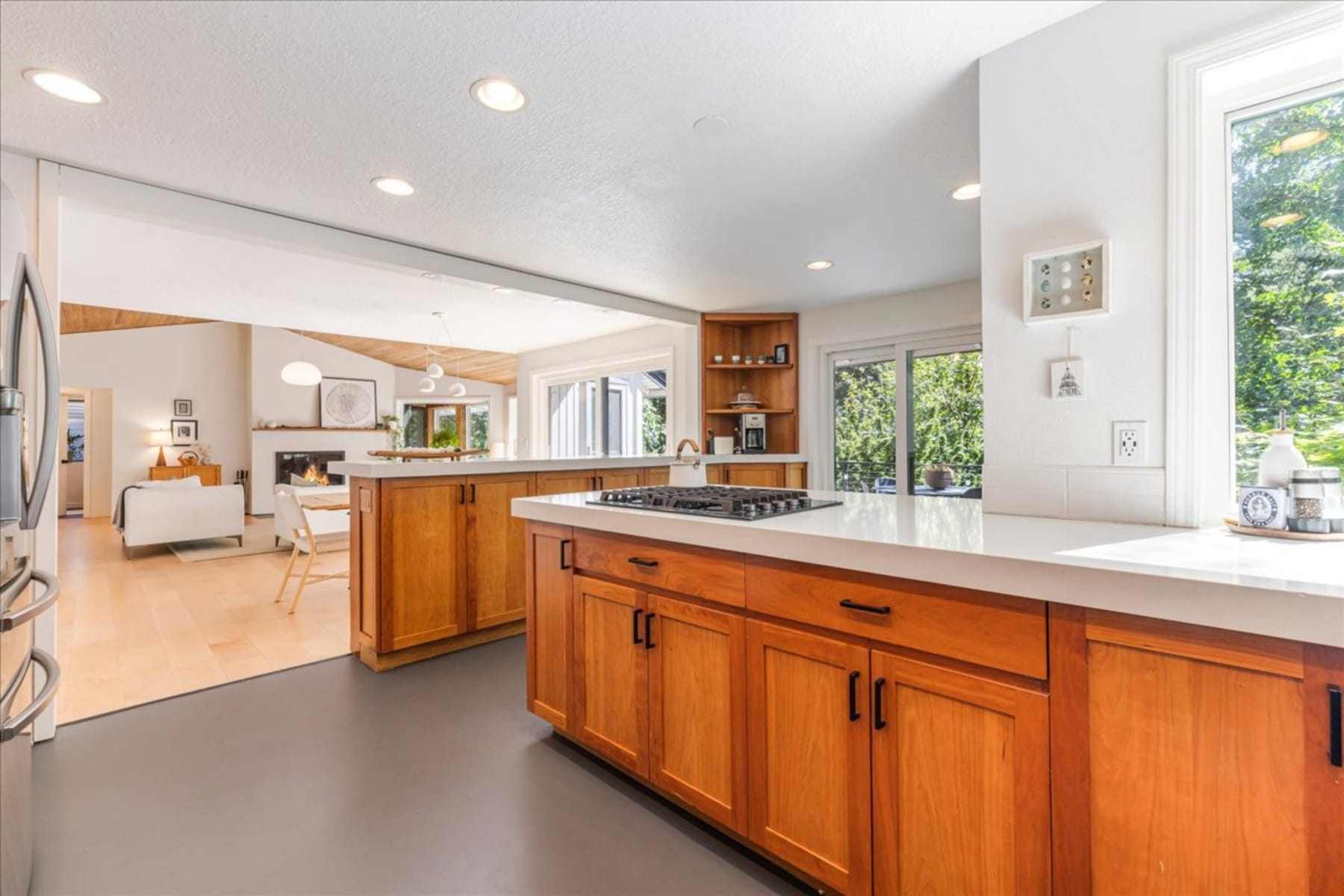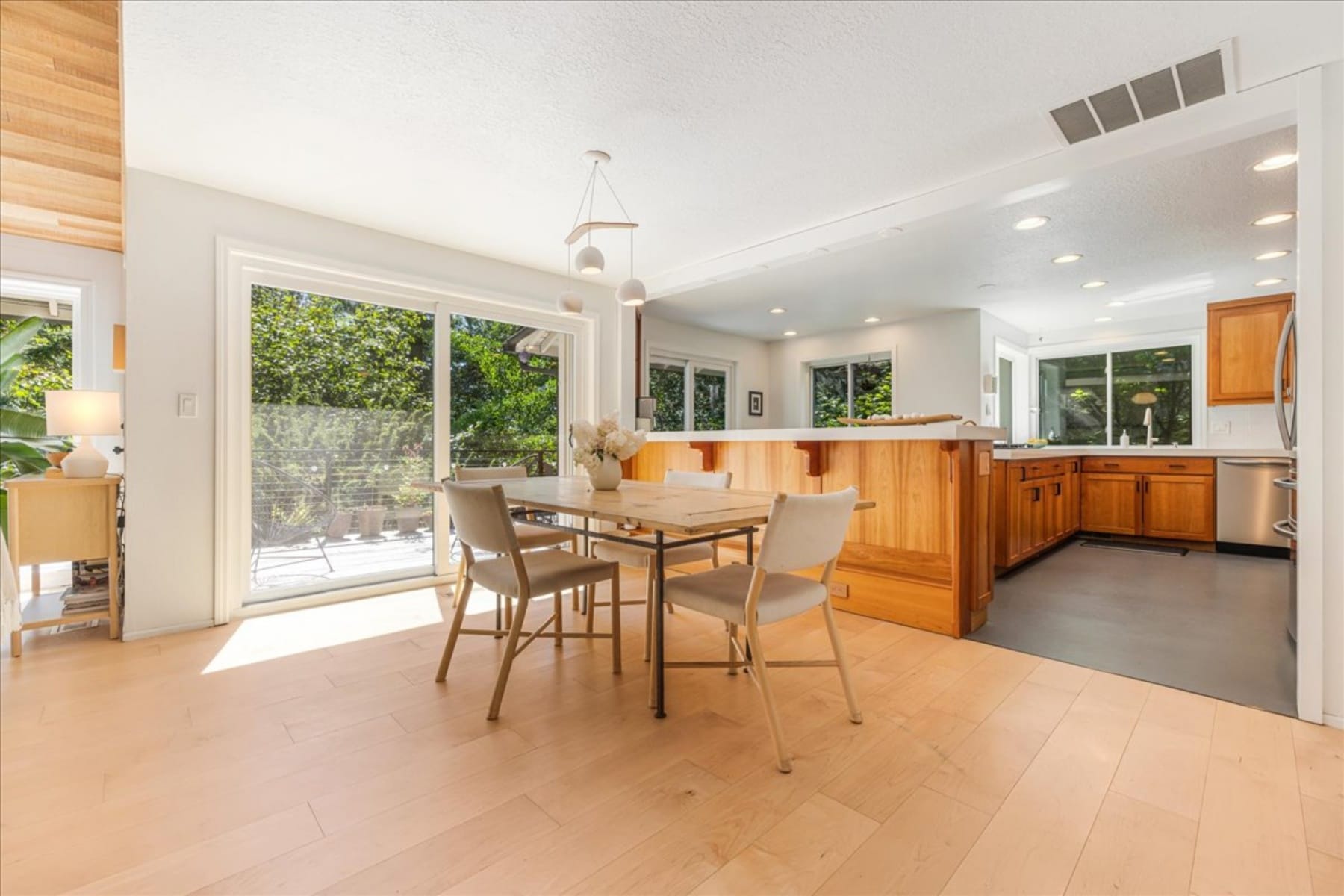 This may well be the most lovely home you've seen. The modern organic design of this home brings together soft, organic shapes and the beauty of natural materials with the clean, peaceful lines of organic design. Enjoy easy, main level living with the garage, kitchen, dining, living room, a bedroom and full bath all on the entry level (simply add one door to create a primary suite on the main), along with an expansive deck that sets you among the trees as if ensconced in the most wonderful treehouse ever. On the lower level, find additional living space with 2 bedrooms and 2 full bathrooms (the primary suite is on this level), in addition to a living room and an extraordinary, light filled solarium. Outside the door in the lower living room, you'll find TWO BONUS ROOMS (total of 5 potential bedrooms) that could be anything you need: two more bedrooms, a media room, craft room, office, or add a bathroom to create an ADU--so many options! There are literally too many updates to list here (new HVAC, flooring, appliances, to start), reach out for a full detail. A second deck off the primary offers private respite and the yard is large, natural and beautifully landscaped--what a very special home! The HOAs include full access to the Mountain Park Rec center for the household--a newly remodeled fitness center, lap pool, slide, and lazy river, tennis courts, and meeting rooms. Trails abound in Mountain Park, making it easy to access the outdoors right from your neighborhood. The restraint of the design choices and clean, simple lines and quality materials come together in a symphony that will never age out of style: sophisticated enough to entertain any guest, yet soft and comforting as a cashmere blanket.