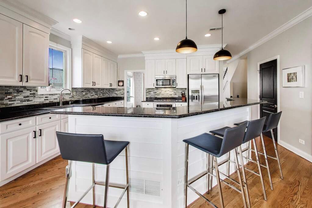 Welcome home to this beautifully decorated and well-appointed residence in Glenview's highly coveted Glen neighborhood. This home blends style, comfort, and functionality in an exceptional location offering a true "city living in the suburbs" lifestyle. A dedicated foyer welcomes you inside, leading to spacious formal living and dining rooms perfect for both everyday living and entertaining. The bright white kitchen is a true cook's delight, featuring abundant cabinetry, a large pantry, and an ideal layout for hosting or preparing meals. The kitchen is open to a cozy family room complete with gorgeous built-ins providing direct access to a private, fenced backyard for easy indoor-outdoor living and a two car detached garage. A convenient half bath completes the main level. Upstairs, the primary suite offers a relaxing retreat with an ensuite bath featuring a double vanity, separate shower, and a large soaking tub. Three additional bedrooms share a well-appointed hall bath, and the second-floor laundry adds everyday convenience. The finished basement expands your living space with a large recreation area, dry bar, an additional bedroom, full bathroom, and ample storage. The lower level is ideal for guests, a home office, exercise area or flexible living needs. Ideally located within walking distance to everything The Glen has to offer, including Gallery Park with scenic walking and running paths, playgrounds, Lake Glenview, park district facilities, and the shops and restaurants of The Glen. Just blocks from the Metra's Glen/North Glenview station and located within award-winning Districts 34 and 225, this home offers the perfect combination of luxury, convenience, and lifestyle.