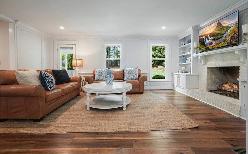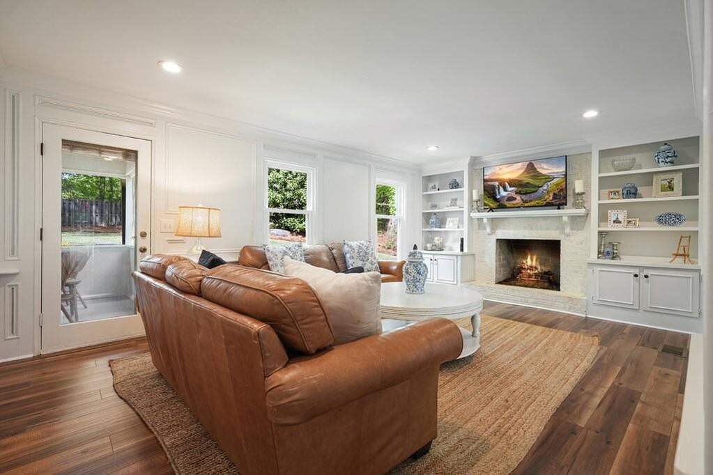Welcome home to 1075 Willow Bend - a beautifully updated 4-bed, 3.5-bath traditional brick home situated on a spacious, fenced 1-acre lot in Roswell's desirable Willow Run subdivision. Tucked off highly sought-after Bowen Road, this property offers easy access to Historic Roswell's shopping and dining while backing directly up to Blessed Trinity & Queen of Angels schools. Built in 1977 and extensively renovated, this home delivers just under 4,000 square feet of living space, including a recently finished basement. Inside, wide-plank hardwood floors greet you throughout the main level. The bright kitchen showcases white soft-close cabinets, elegant quartz countertops, a new gas range, under-cabinet lighting, floating shelves, and a handy mini bar ideal for entertaining. The kitchen opens to a breakfast area and flows into the family room, anchored by a wood-burning brick fireplace flanked by built-in bookcases. A separate dining room comfortably seats 12+, and additional main level highlights include a recently updated powder room and a main-level laundry room. Upstairs, the spacious primary suite offers a private retreat with dual vanities, a tub/shower combo, and an impressive three walk-in closets. Three additional large secondary bedrooms, a full bathroom, and a versatile bonus room provide ample comfort. The finished basement adds even more flexible living space ideal for a home gym, theater, guest suite, or craft room as well as a full bath. Outside, the screened porch overlooks the highlight: one of Roswell's most private, wooded backyards. This flat, expansive lot is perfect for play, gardening, or quiet relaxation. Nearly $100k in thoughtful updates include the finished basement (2021), newer roof (2020), all new windows (2025), new driveway (2026), renovated powder room (2024), and new carpet upstairs (2026). Zoned for top-rated Fulton County schools - Mountain Park Elementary, Crabapple Middle, and Roswell High with no HOA. Don't miss this rare combination of space, privacy, and modern updates in a prime Roswell location.