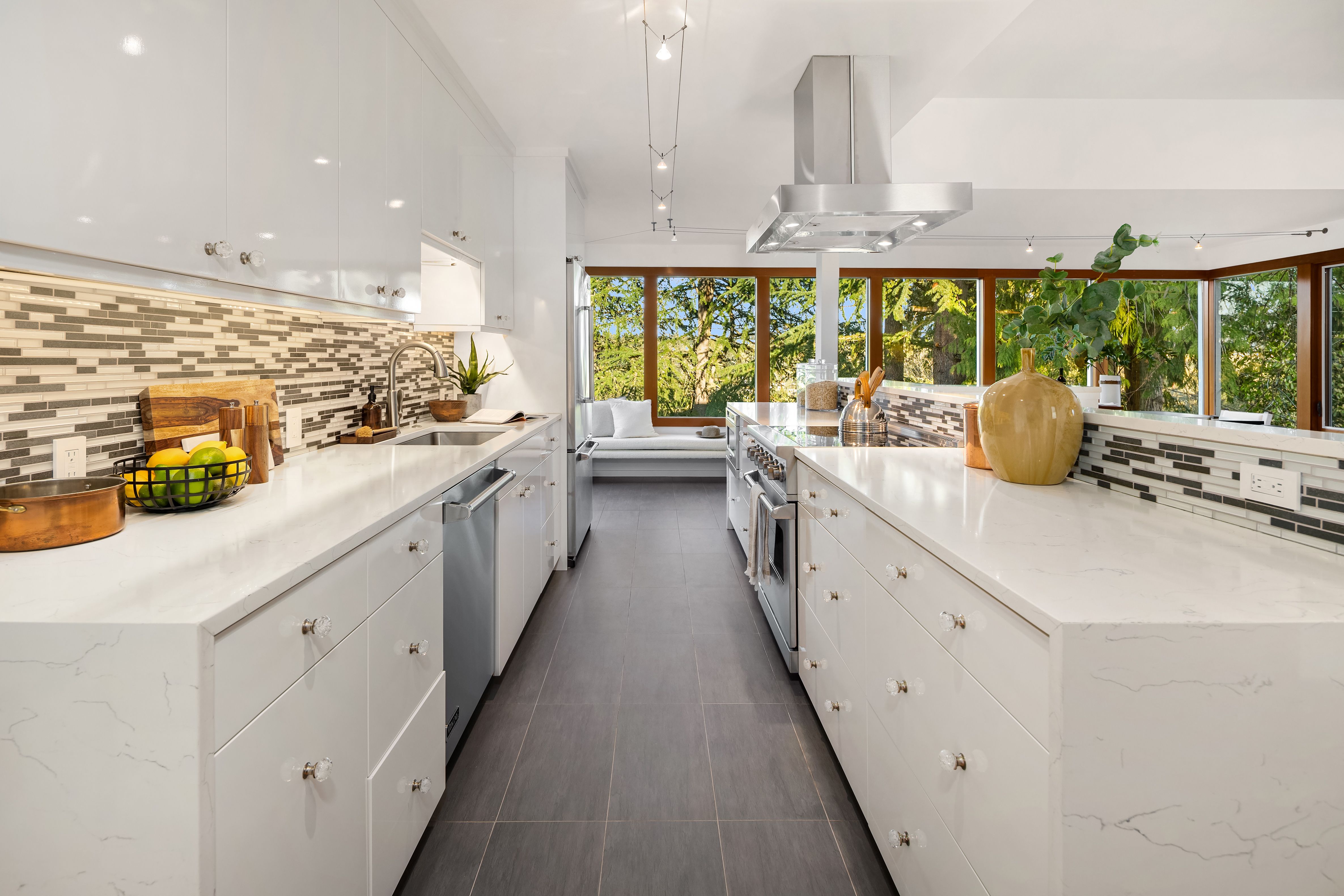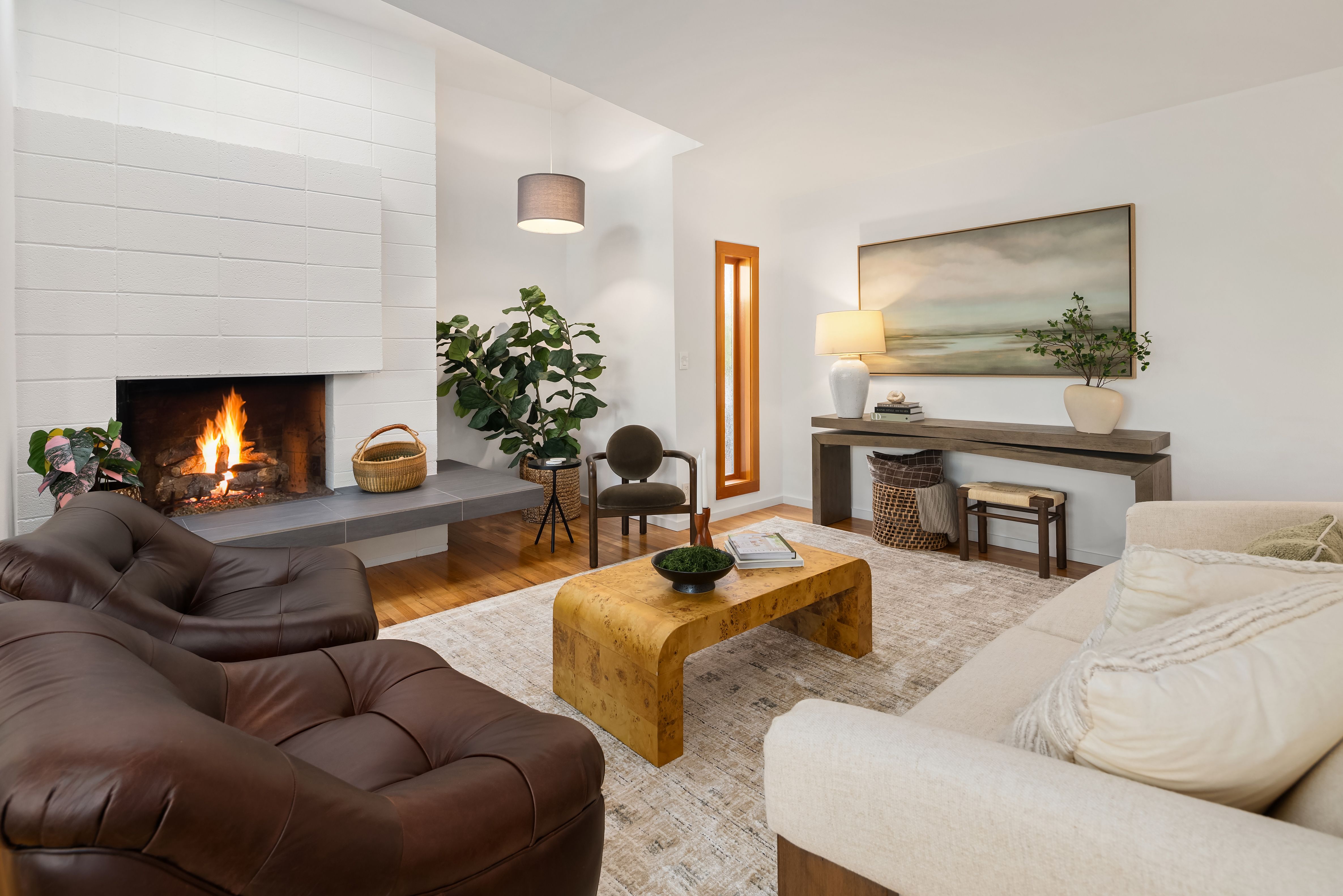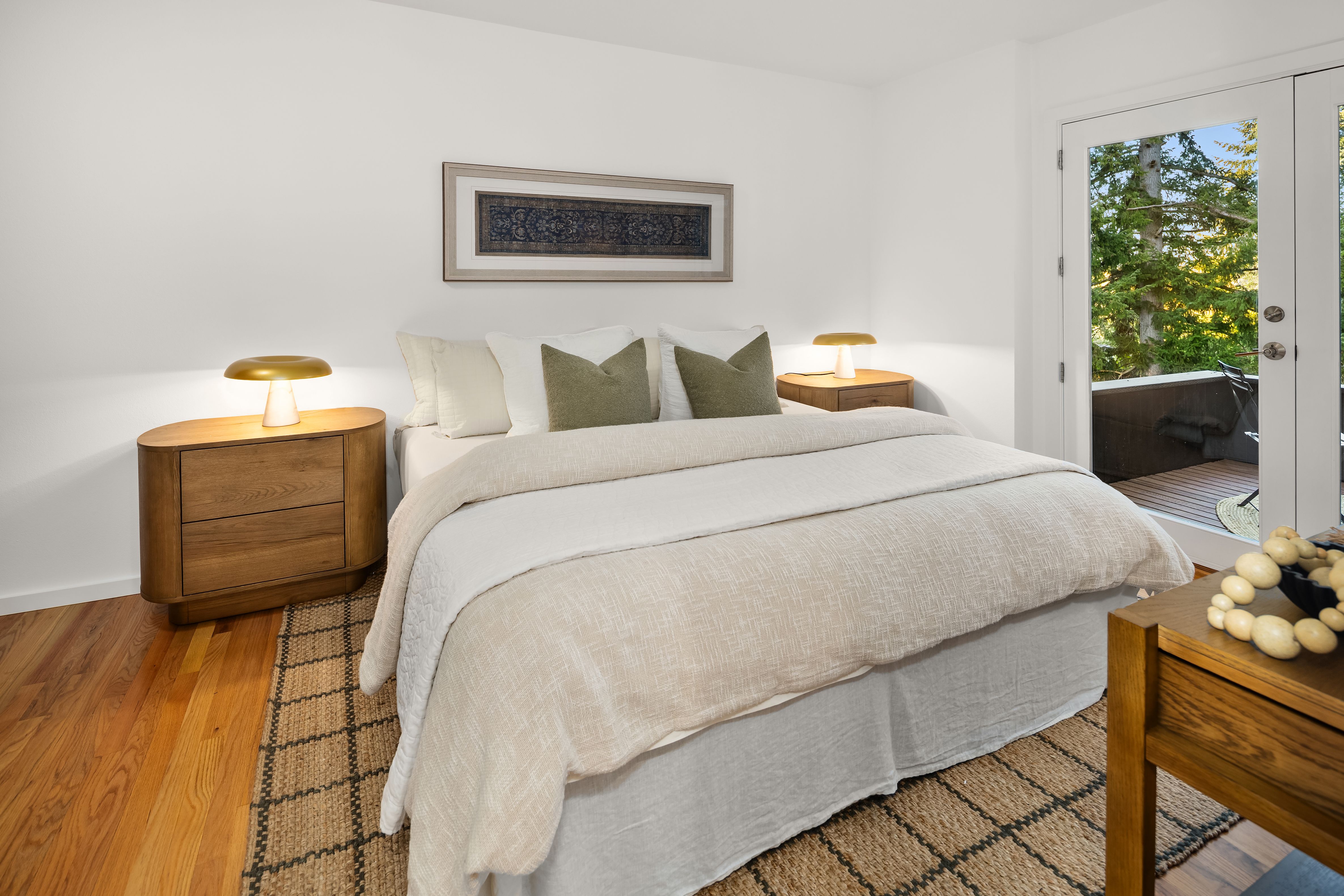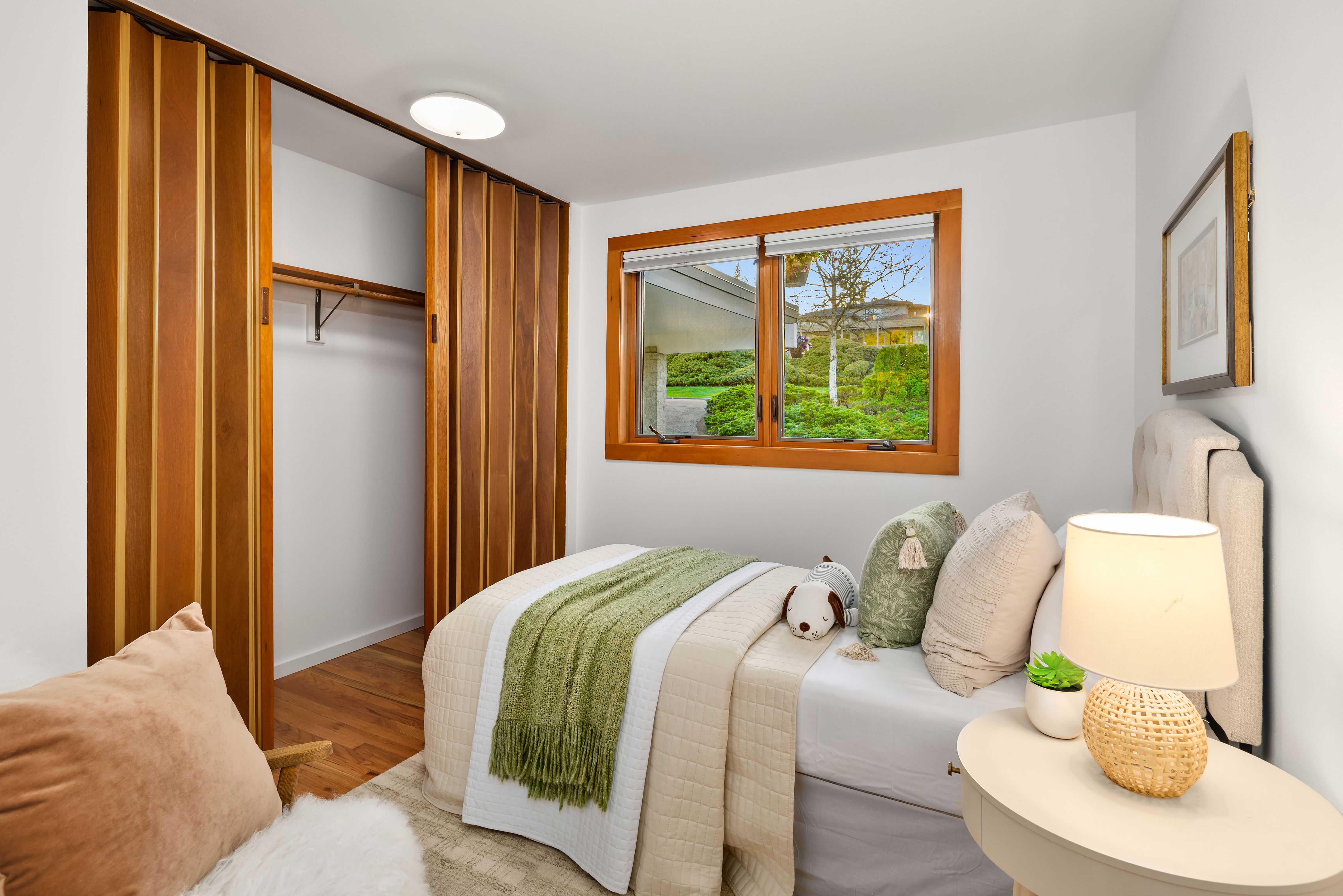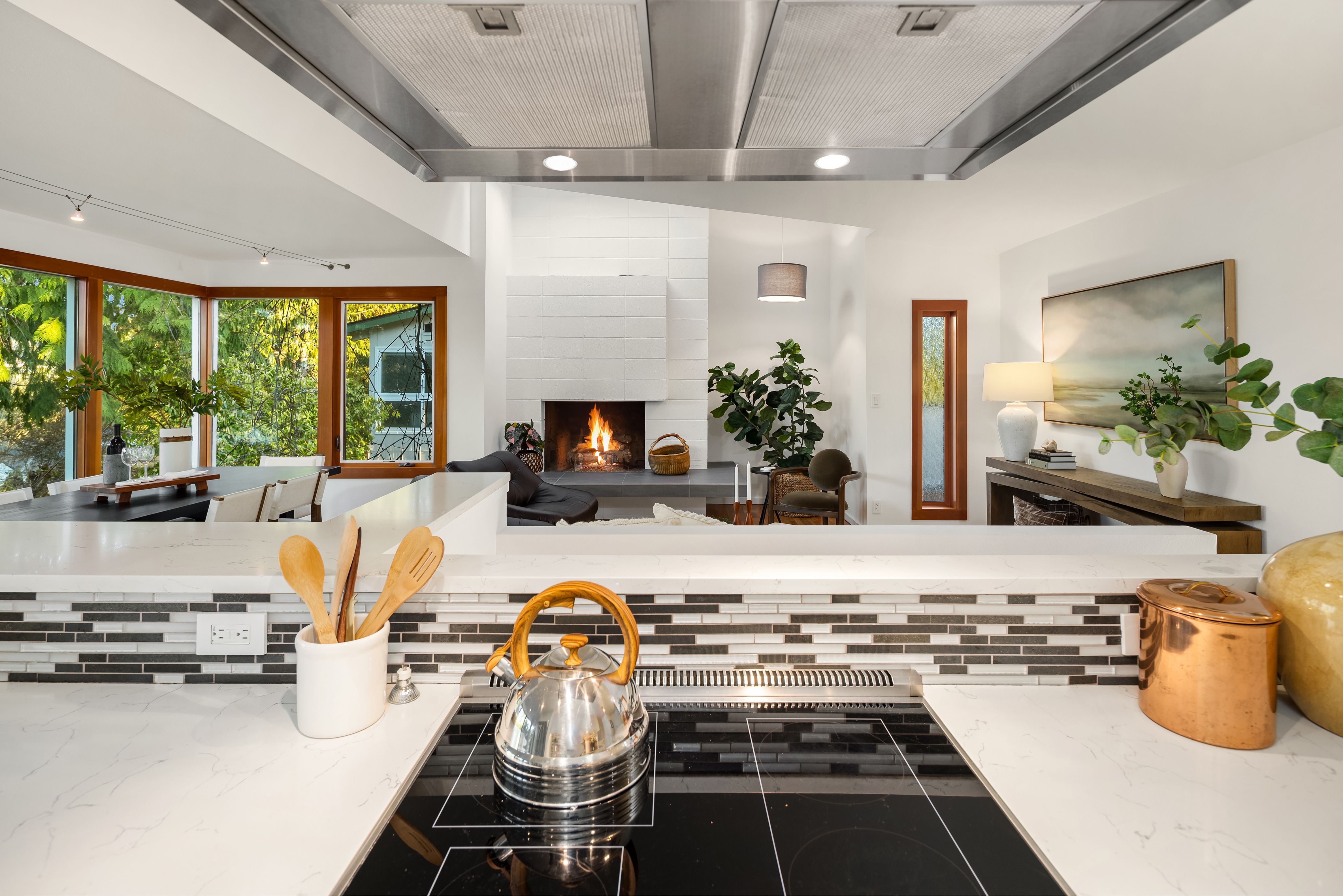 A rare offering in the heart of Norwood Village, this exquisitely restored mid-century jewel box blends timeless architecture with sophisticated modern living. Thoughtfully reimagined, the home showcases elevated finishes throughout—from heated floors underfoot to a state-of-the-art chef’s kitchen designed for both beauty and performance. Walls of glass frame serene, private gardens, creating a seamless connection between indoor and outdoor living. Dual fireplaces anchor each level with warmth and elegance, while the lower level presents a luxurious retreat-ideal as a primary suite, executive office, or private guest quarters. Freshly curated inside and out, the home features new paint, refined landscaping, expansive decks designed for effortless entertaining. A striking grape arbor crowns the main deck, overlooking a tranquil setting of hot tub, manicured lawn, and mature trees that offer exceptional privacy. Vaulted ceilings and skylights bathe the main living spaces in natural light, enhancing the home’s architectural character and airy ambiance. Perfectly positioned at the intersection of Norwood Village and Woodridge, this residence offers unparalleled access to community amenities including pools, tennis and basketball courts, and Woodridge Elementary—all just moments away. Enjoy the rare combination of peaceful neighborhood living with immediate proximity to downtown Bellevue, major freeways, and transit. This is a refined expression of Eastside living—private, connected, and effortlessly elegant.