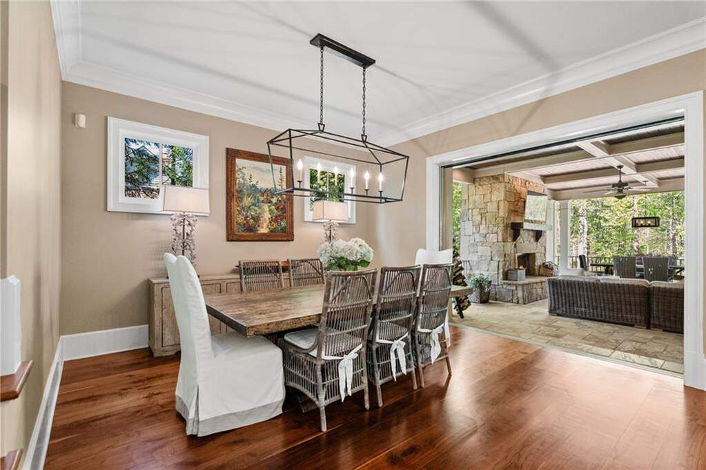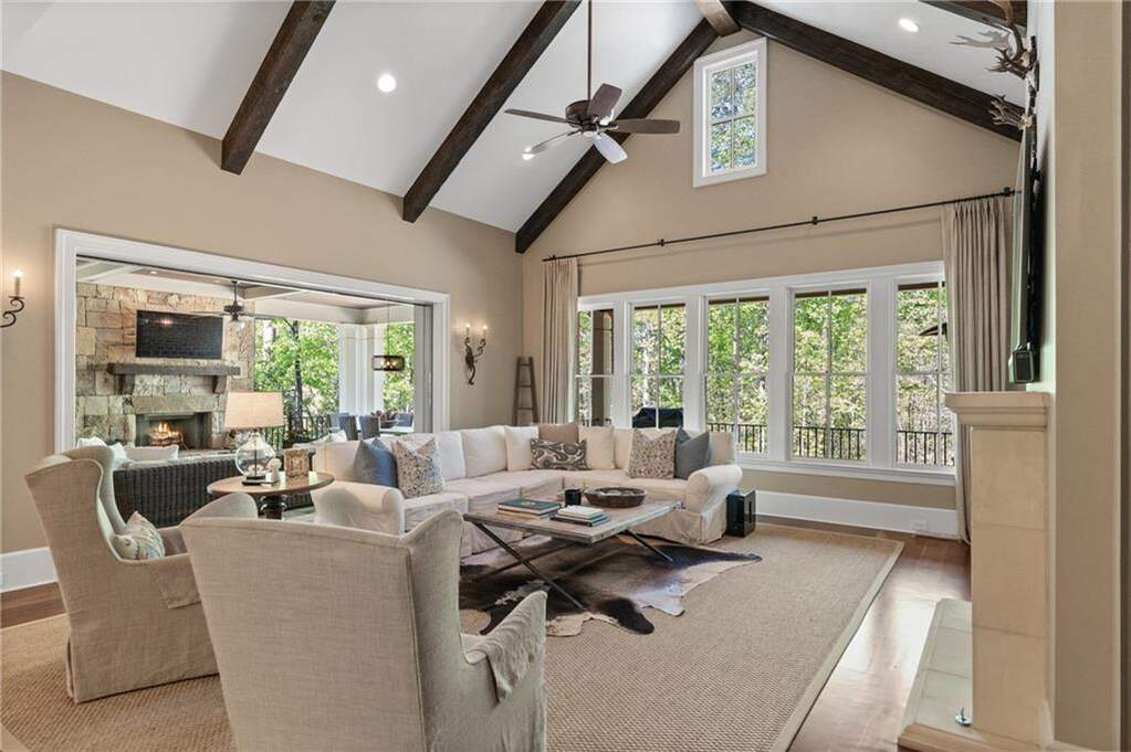 Nestled on nearly 1 acre of pristine, private grounds in Suwanee's prestigious River Club, this exceptional brick, stone|shingle residence-designed by Caldwell & Cline Architects-offers a seamless blend of timeless architecture and casual elegance. A gracious covered front porch welcomes you into an elegant foyer w/marble|wood floor and double French doors reveal a sunlit study | formal living room. Wide-plank walnut floors extend throughout the main, setting the tone for the home's warm yet sophisticated aesthetic. The open-concept design unfolds into a stunning great room highlighted by a soaring beamed cathedral ceiling, cast-stone fireplace, custom built-ins, and expansive retractable sliding doors that open to the covered outdoor living spaces. The gourmet kitchen is a true showpiece, featuring marble and granite countertops, a six-burner Wolf range w/double ovens, Sub-Zero refrigeration, Wolf microwave, ceiling-height cabinetry, and an oversized walk-in pantry. The large center island provides generous seating and serves as the heart of the home, seamlessly connecting to a spacious dining area ideal for both intimate dinners and grand entertaining. A second wall of retractable doors further enhances the indoor-outdoor lifestyle. The wraparound covered porch is designed for year-round enjoyment, complete w/a stone fireplace, multiple seating and dining areas, and tranquil wooded views-creating the perfect backdrop for relaxing or entertaining. The main-level primary suite featuring a spa-inspired bath w/a zero-entry shower, freestanding soaking tub, dual vanities, and expansive dual closets with direct access to the laundry room. An additional ensuite bedroom, a thoughtfully designed mudroom w/built-in cabinetry, and a powder room complete the main floor. Upstairs, three generously sized ensuite bedrooms provide comfort and privacy, complemented by a charming library-style hallway feature and a spacious media loft. A large finished bonus space above the garage offers endless flexibility as a home office, studio, guest suite, playroom or 4th bedroom. The terrace level is thoughtfully designed for both entertaining and everyday living, featuring a game room, flex space, powder room, and a well-appointed bar/kitchen with warming drawer, ice maker, microwave, and a large leathered granite island with mitered edges. The walkout family room-accented by wood beams and shiplap-opens to a covered patio with space to expand for a future pool, outdoor living area, or fireplace. A private guest suite with ensuite bath completes this level. Additional highlights include solid 8' doors and a Control4 Smart Home System throughout the residence, a heated/cooled workshop w/epoxy floors and exterior access, built-in speakers, outdoor lighting, and a spacious three-car garage. The expansive pool-ready backyard offers the perfect canvas for resort-style outdoor living. A pool design is already complete courtesy of Neptune Pools and is available for viewing at the property. There is something special about living behind the gates of The River Club, where residents enjoy an unparalleled lifestyle. Whether you're looking to join a group for a round of golf on the Greg Norman-designed championship golf course, host an event at the elegant clubhouse, visit the full-service spa, or get a good workout in at the lakeside sports center with state-of-the-art fitness facilities, you'll feel the resort-style living that comes along with living at The River Club. In the summer you'll enjoy the resort-style pool with cabana kitchen and waterslide, and eight professionally maintained tennis and pickleball courts and year around activities hosted by the best staff around. Scenic walking trails along the Chattahoochee River offer breathtaking natural beauty and peaceful escapes. 4388 Lochsa Lane is more than a home-it is a statement of refined living in one of North Atlanta's most coveted community, truly a hidden gem!