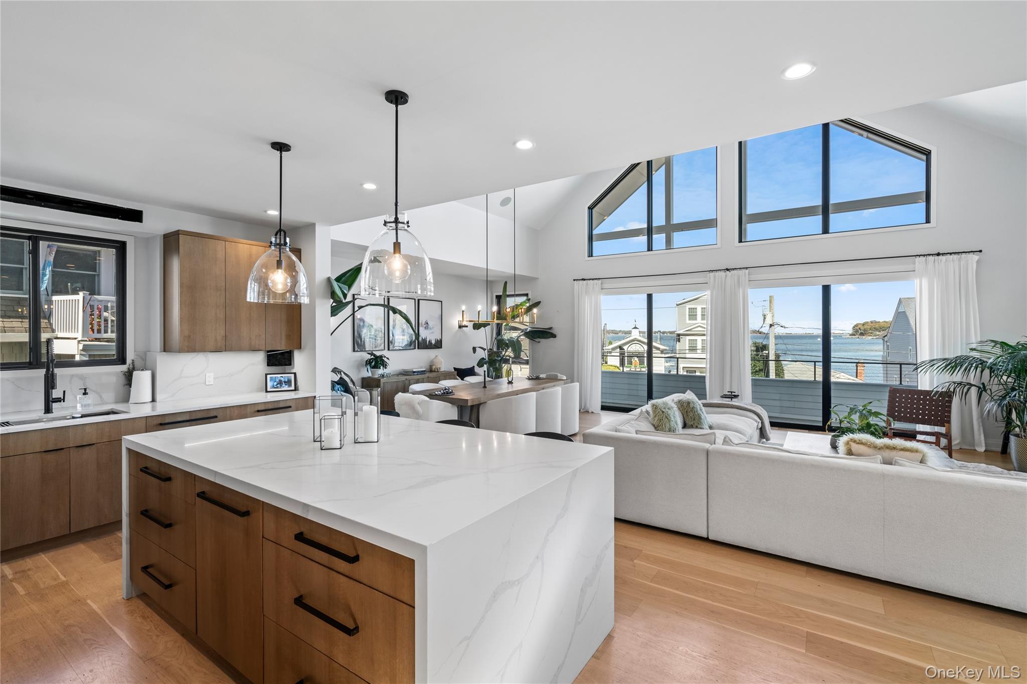 It’s all about the lifestyle! Breathtaking water views surround this custom contemporary home, built in 2022, and perfectly designed to embrace the very best of coastal living. Enjoy membership in the HBCA with access to a clubhouse, mooring rights, dock, summer parties, events and more (fee required). Paddle boarding, kayaking, boating, swimming, and waterfront living are all just outside your doorstep. The exciting floor plan offers exceptional attention to detail, quality craftsmanship and beautiful millwork throughout. Featuring 3 bedrooms and 5 baths, the home includes an open-concept living room, dining room, and kitchen, ideal for both everyday living and entertaining. The finished lower-level media room provides additional living space, while the covered outdoor porch with fireplace is perfect for relaxing year-round. An added bonus is the separate water view cottage/studio with its own covered porch. Additional features include high-end Thermador appliances, a built-in Miele coffee maker, one wood-burning fireplace, two gas fireplaces, a 3-story glass elevator, Generac generator, radiant heat, outdoor shower, security system, Weather Shield windows and Hardie Plank lap siding.