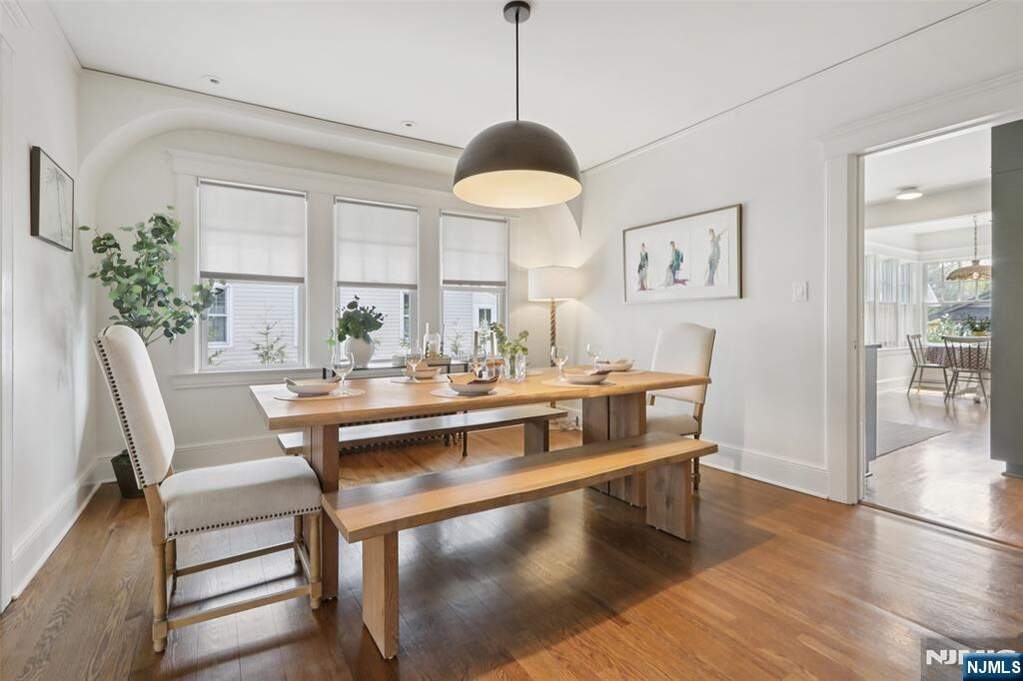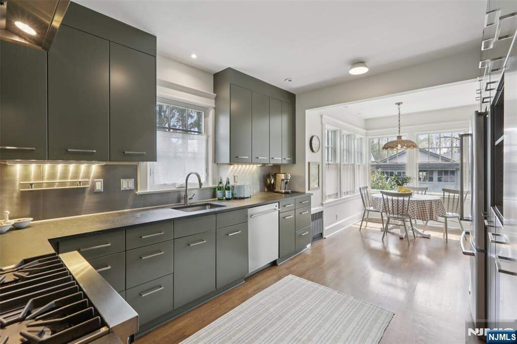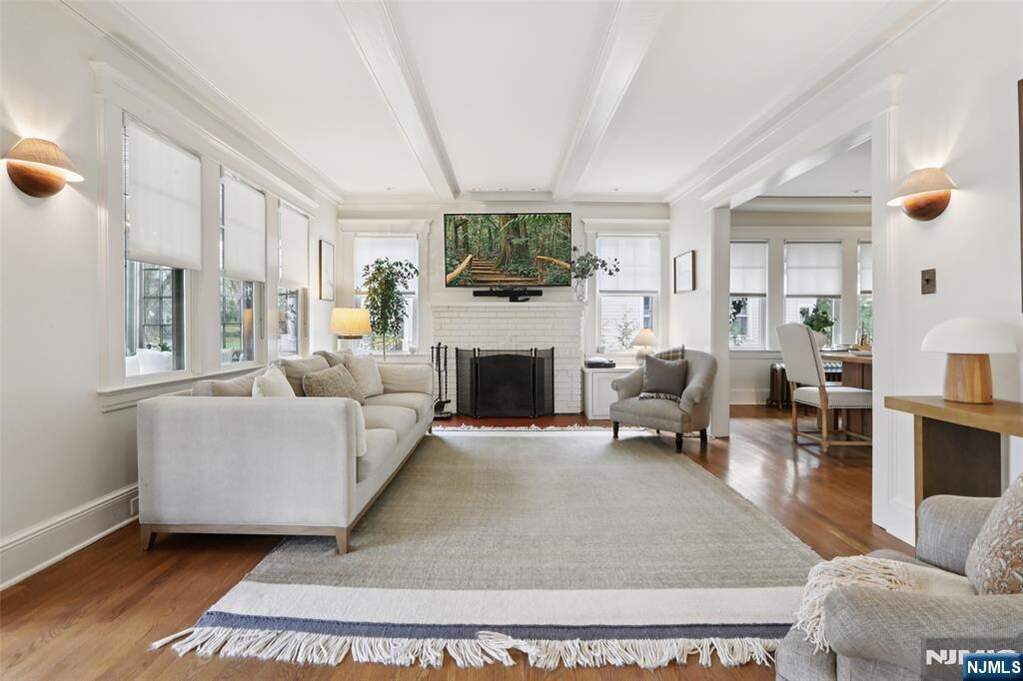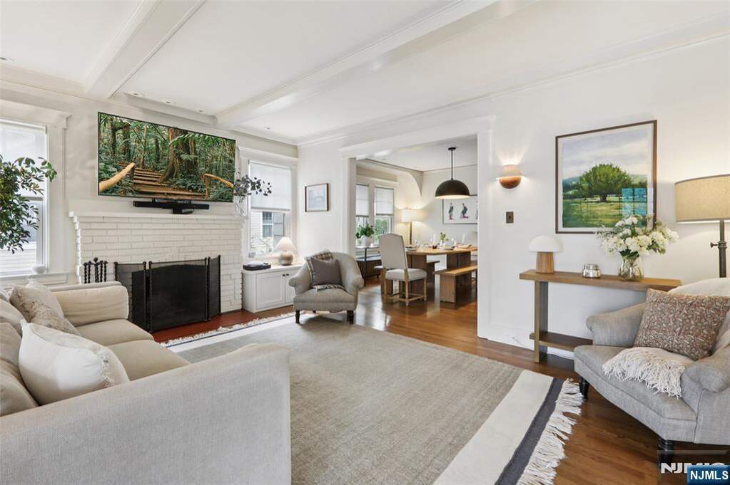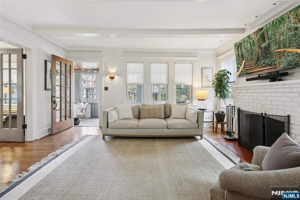 Prepare to fall in love with this effortlessly chic turn-key Craftsman-style home in Glen Rock, set on an expansive park-like double lot of approximately 0.65 acres, ideally located near vibrant downtown Glen Rock. An inviting enclosed mahogany front porch extends the living space and offers a warm lounge, reading retreat, or easy hosting area, welcoming you into a light-filled interior with a move-in-ready feel throughout. Seamless flow from the living room with beamed ceiling and wood-burning fireplace to the dining room and a beautiful modern custom kitchen with breakfast nook, versatile den with French doors and custom built-ins, and a powder room. Four spacious bedrooms, including a rare first-floor primary suite with a generous closet, updated ensuite bath, and French doors opening to a private rear porch aEUR"upstairs features three well-proportioned bedrooms and a full bath. Additional highlights are a newer roof, central AC, recessed lighting, a recently refinished lower level, and almost all windows recently replaced, plus hardwood floors throughout and a two-car garage. Outdoors, find a patio for dining and entertaining and sprawling backyard setting providing a serene retreat where the possibilities are countless, all close to top-rated schools, parks, and NYC transit.