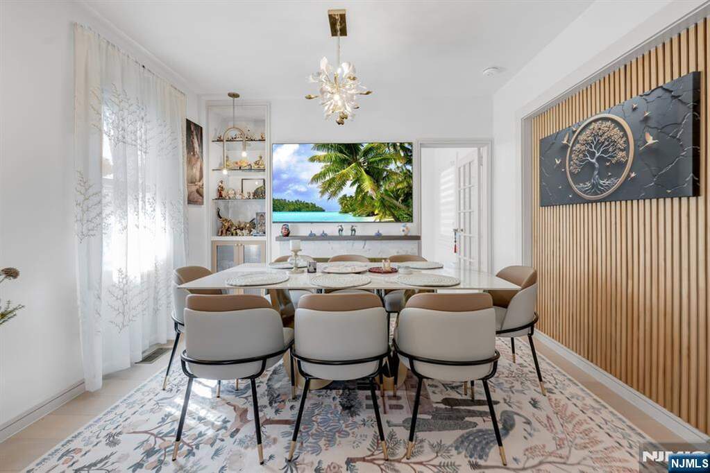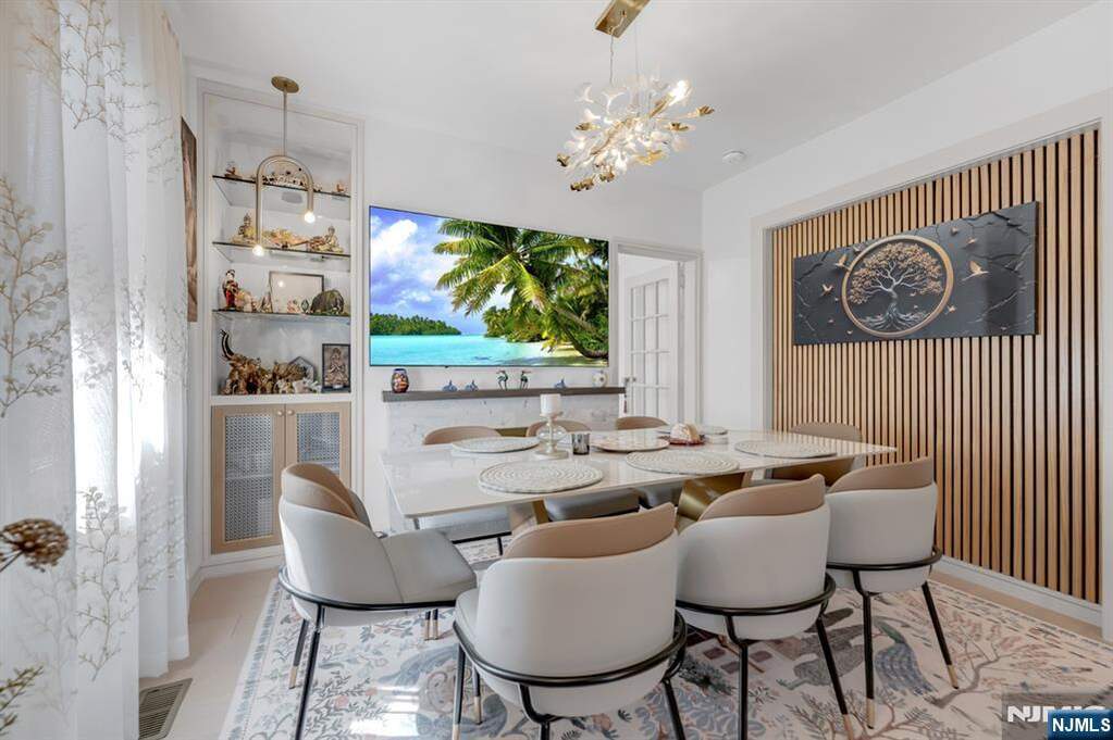 Stunning 4 bedroom, 3 full bathroom colonial set in a prime Teaneck location, completely reimagined with an exceptional level of design and craftsmanship. This home is truly a piece of art, thoughtfully redesigned from top to bottom with a level of detail rarely seen in todayaEURs market. The contractor behind the transformation has been featured in publications such as Architectural Digest, a testament to the quality and vision throughout. The 1st, 2nd, and 3rd floors were fully gutted and rebuilt, incorporating high-end finishes, many of which were custom and imported, creating a one-of-a-kind living experience. The 1st floor offers a welcoming foyer with two custom closets, leading into an open concept living room & dining room. A private office / bonus room provides flexibility, along with a spacious bedroom and full bathroom. The kitchen is beautifully updated with quartz countertops and a breakfast bar. The 2nd level features 2 bedrooms, one with a custom WIC, & a beautifully finished full bath. The 3rd floor is fully finished and offers incredible versatility as an additional bedroom, recreation space, or retreat, plus ample storage. The property itself is equally impressive, offering a large lot, long driveway, detached 2 car garage, and a spacious deck overlooking a flat, grassy backyard. Finished basement with a summer kitchen, central air, so much more. Unlike anything else on the market, this home is the epitome of design significance and style.