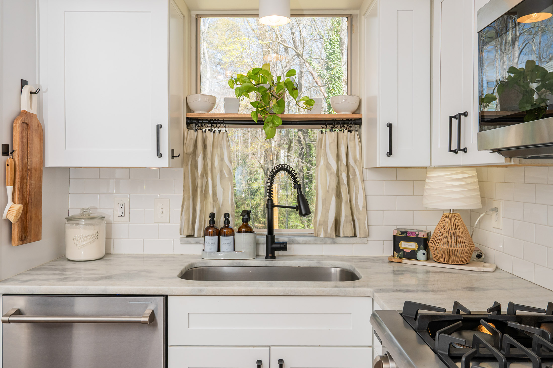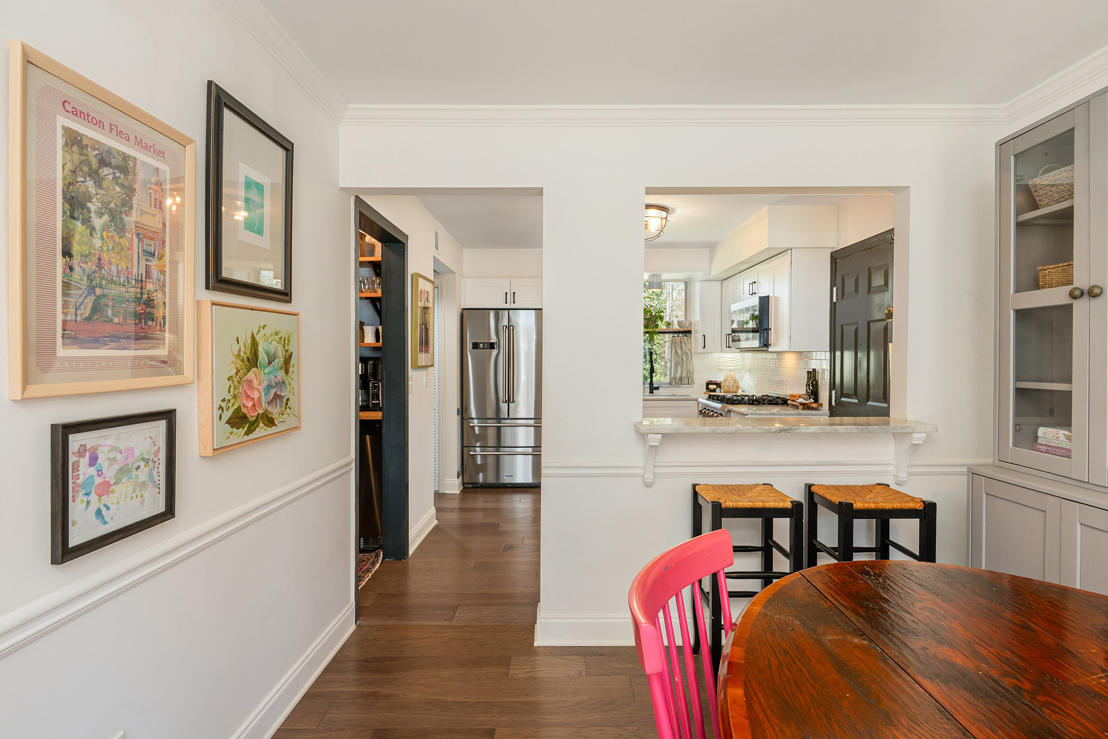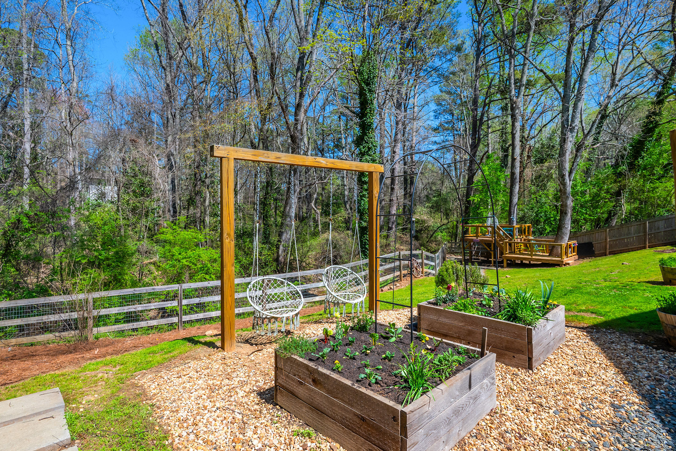 Designer Charm in Downtown Roswell. Moments to Canton Street from this charming, updated Roswell home just ½ mile from the shops, restaurants, and nightlife of historic downtown Roswell. Surrounded by stunning new construction homes valued at $2M+, this home offers a unique chance to enjoy the coveted Canton Street lifestyle in an affordable, charming, and private setting. Tucked into the desirable Park Bridge neighborhood on a quiet cul-de-sac street, the home combines walkability with direct access to the outdoors—complete with a private neighborhood bridge connecting to Roswell Area Park, where miles of trails, playgrounds, tennis courts, and recreation await just steps from your door. Inside, the home features wide-plank hardwood floors throughout the main level and a bright white kitchen with marble countertops, subway tile backsplash, soft-close cabinetry, updated appliances, and HydroIV under-the-sink water filter. A built-in dining banquette with ample storage creates the perfect everyday gathering space, while the walk-in pantry doubles as a coffee and beverage station with built-in wine rack, Opal nugget ice maker, and beverage refrigerator. Upstairs, the spacious primary suite features vaulted beamed ceilings, dual closets, and an updated bath with dual vanity and walk-in rain shower. Two additional bedrooms offer walk-in closets and newer carpet, and the guest bath features Carrara marble basketweave flooring, marble vanity, and subway tile tub/shower. The outdoor living space is where this home truly shines, making it one of the most enjoyable homes in the neighborhood. A large vaulted screened porch, multiple deck and patio areas, and a private fenced creekside backyard create a setting that is functional, relaxing, and hard to find at this price point so close to downtown. The backyard also includes a kitchen garden and a custom Firefly Fort play structure (2022) with swings, monkey bars, climbing rope, and dual platforms—perfect for both entertaining and everyday living. Additional updates include new HVAC and furnace (2025), new kitchen appliances (2022), built-in laundry/mudroom (2022), and new interior window trim (2022) throughout. Opportunities this close to Canton Street—one of the most sought-after and rapidly appreciating areas—with this combination of updates, privacy, and outdoor living rarely come available at this price point. Don't miss it!