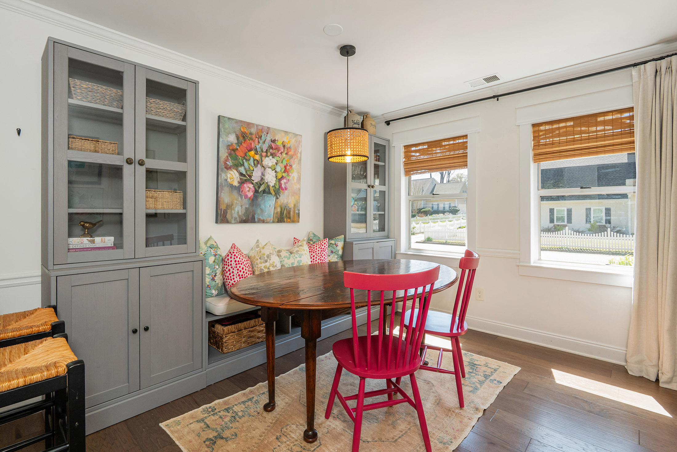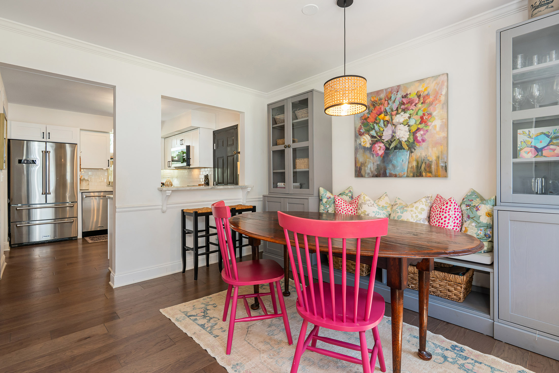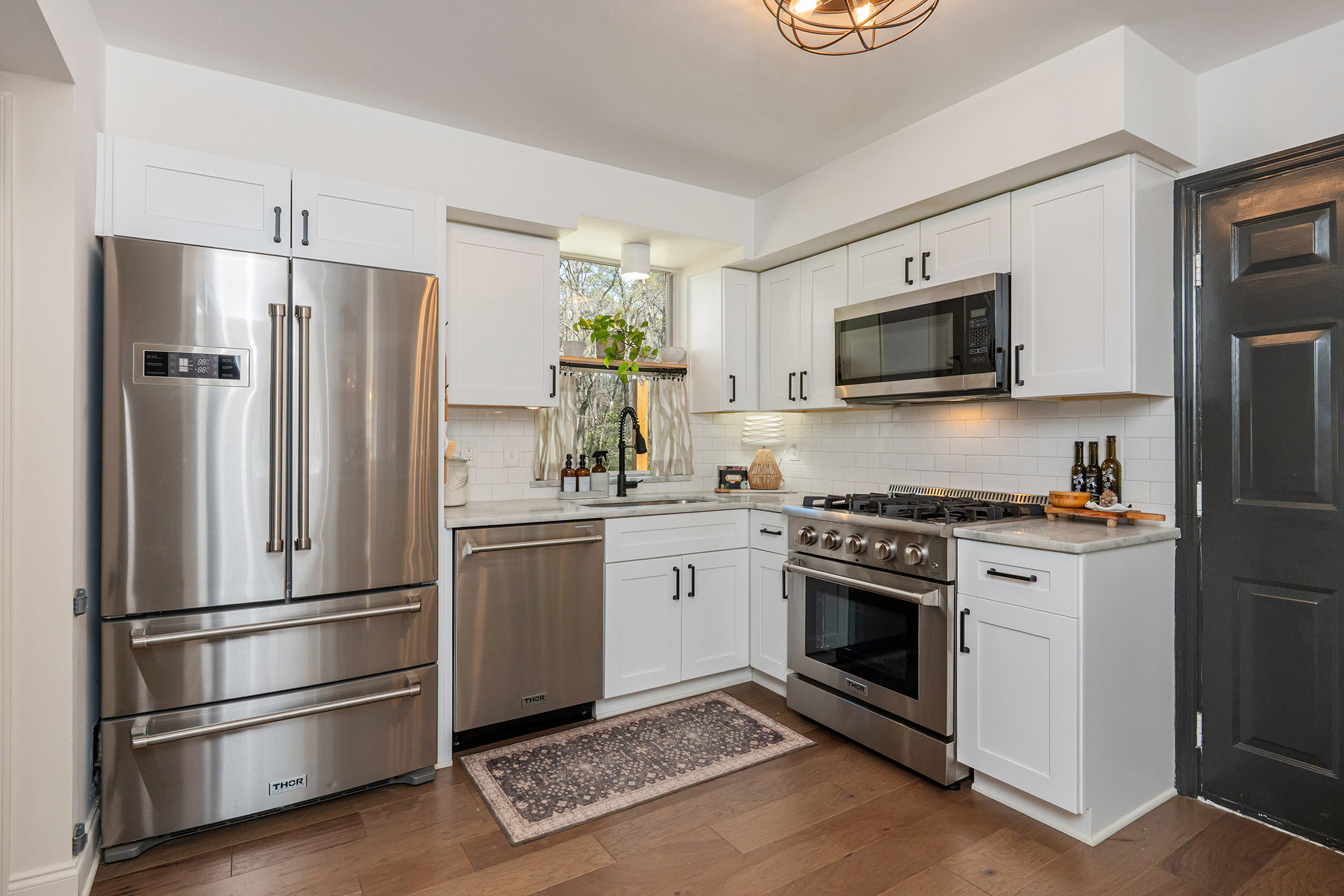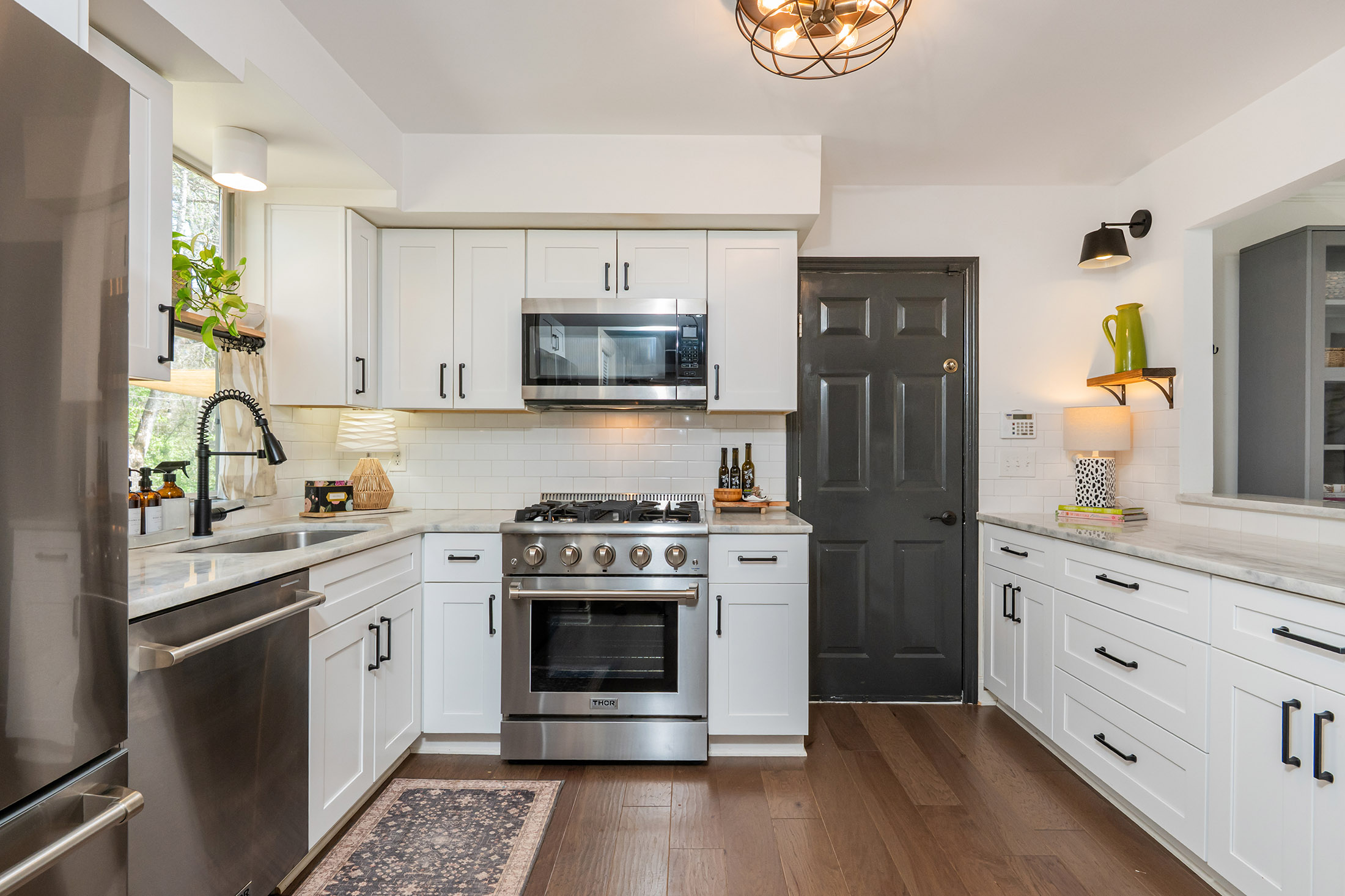 Designer Charm in Downtown Roswell. Moments to Canton Street from this charming, updated Roswell home just ½ mile from the shops, restaurants, and nightlife of historic downtown Roswell. Surrounded by stunning new construction homes valued at $2M+, this home offers a unique chance to enjoy the coveted Canton Street lifestyle in an affordable, charming, and private setting. Tucked into the desirable Park Bridge neighborhood on a quiet cul-de-sac street, the home combines walkability with direct access to the outdoors—complete with a private neighborhood bridge connecting to Roswell Area Park, where miles of trails, playgrounds, tennis courts, and recreation await just steps from your door. Inside, the home features wide-plank hardwood floors throughout the main level and a bright white kitchen with marble countertops, subway tile backsplash, soft-close cabinetry, updated appliances, and HydroIV under-the-sink water filter. A built-in dining banquette with ample storage creates the perfect everyday gathering space, while the walk-in pantry doubles as a coffee and beverage station with built-in wine rack, Opal nugget ice maker, and beverage refrigerator. Upstairs, the spacious primary suite features vaulted beamed ceilings, dual closets, and an updated bath with dual vanity and walk-in rain shower. Two additional bedrooms offer walk-in closets and newer carpet, and the guest bath features Carrara marble basketweave flooring, marble vanity, and subway tile tub/shower. The outdoor living space is where this home truly shines, making it one of the most enjoyable homes in the neighborhood. A large vaulted screened porch, multiple deck and patio areas, and a private fenced creekside backyard create a setting that is functional, relaxing, and hard to find at this price point so close to downtown. The backyard also includes a kitchen garden and a custom Firefly Fort play structure (2022) with swings, monkey bars, climbing rope, and dual platforms—perfect for both entertaining and everyday living. Additional updates include new HVAC and furnace (2025), new kitchen appliances (2022), built-in laundry/mudroom (2022), and new interior window trim (2022) throughout. Opportunities this close to Canton Street—one of the most sought-after and rapidly appreciating areas—with this combination of updates, privacy, and outdoor living rarely come available at this price point. Don't miss it!