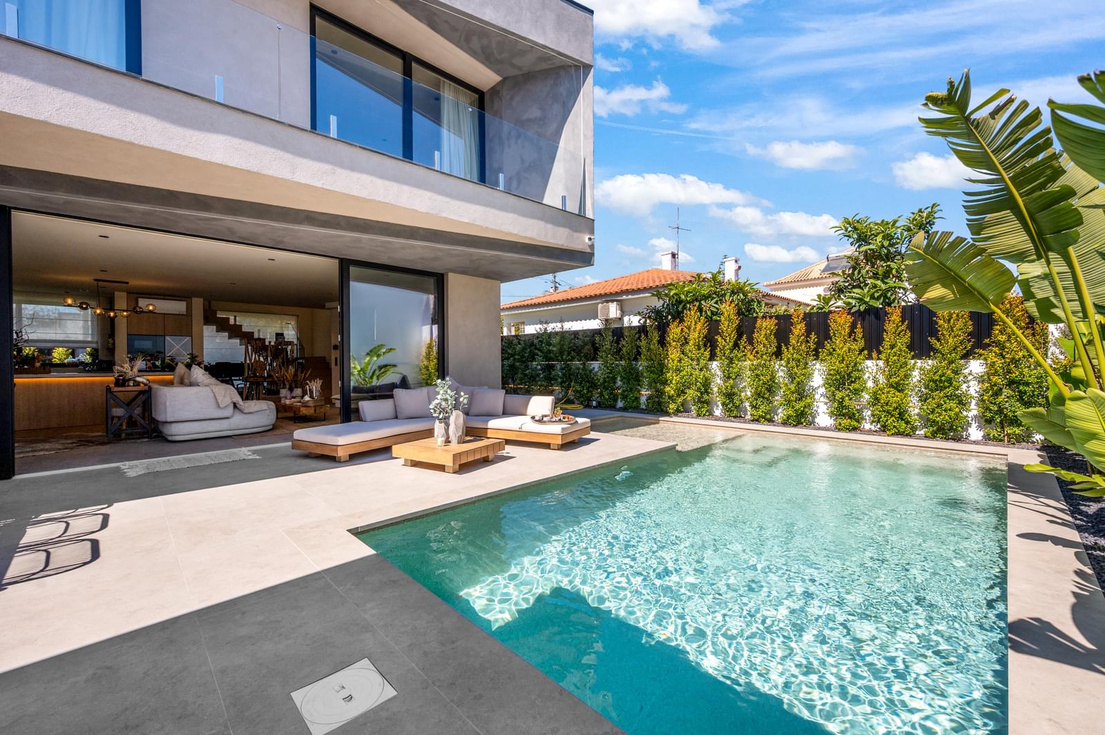 Modern 3+1 Bedroom Villa with Pool in Prestigious AroeiraDiscover this elegant contemporary 3+1-bedroom villa, located in one of the most exclusive areas of Aroeira. Designed with clean lines and a minimalist approach, this property offers a perfect balance between comfort, privacy, and modern living.Set in a privileged environment, it is just 5 minutes from Praia da Fonte da Telha and close to the stunning beaches of Costa da Caparica, while surrounded by lush pine forests.Highlights•