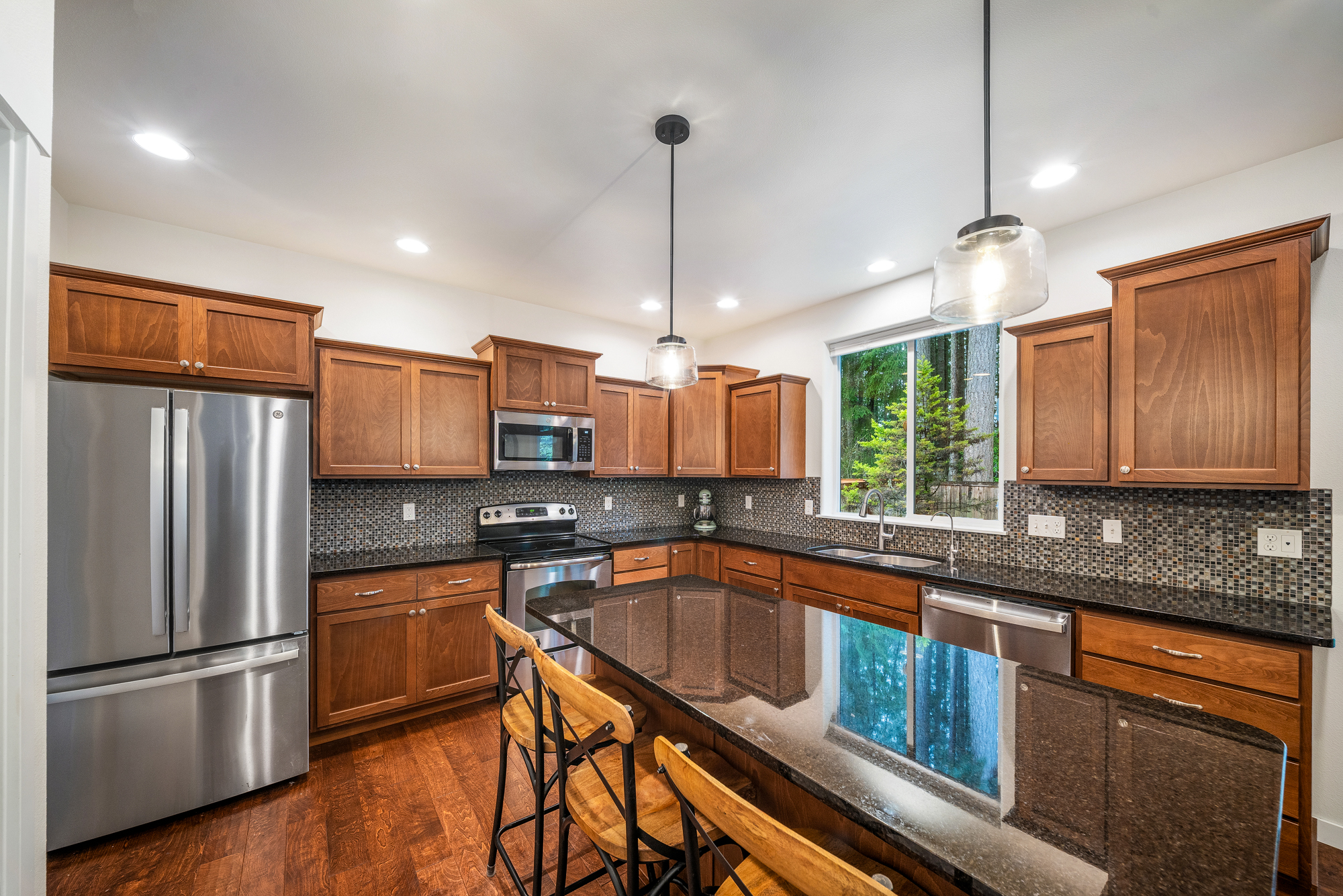Nestled in West Olympia’s coveted Bay Hill community, this exceptional 2,996 SF residence blends comfort, style, and functionality. The thoughtfully designed floorplan offers 4 bedrooms, a den/office, and an expansive upstairs bonus room. Craftsman-inspired details include a formal dining room, butler’s pantry, and a beautifully appointed kitchen open to the inviting family room with gas fireplace. Recent updates include air conditioning, carpeting, refrigerator, dishwasher, microwave, and interior paint. Refined finishes such as hardwood floors, wainscoting, arched doorways, shaker cabinetry, granite countertops, and island seating make this home truly move-in ready. Upstairs features a spacious loft landing, oversized bonus room, three additional bedrooms, and a vaulted primary suite with walk-in closet and luxurious five-piece bath. The private fenced backyard offers a sprinkler system and covered patio perfect for entertaining. Ideally located near West Olympia favorites, top schools, Evergreen State College, I-5, and Highway 101.